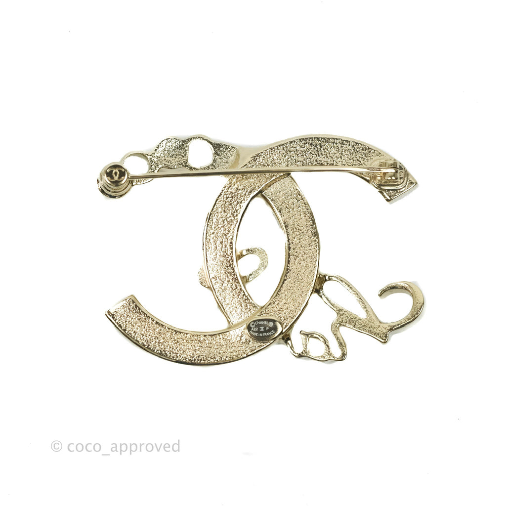 Chanel CC Coco Chanel Crystal Brooch Gold Tone 22P