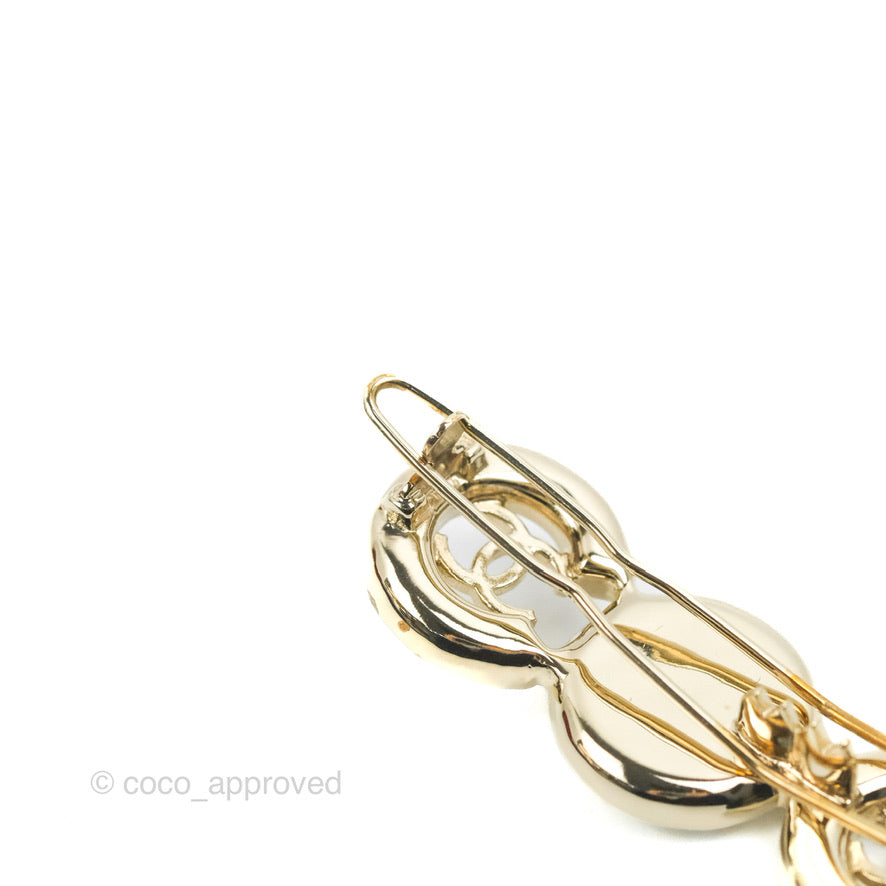 Chanel CC Coco Pearl Hair Clip Gold Tone 21P