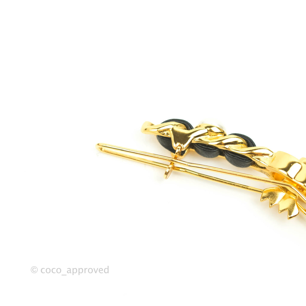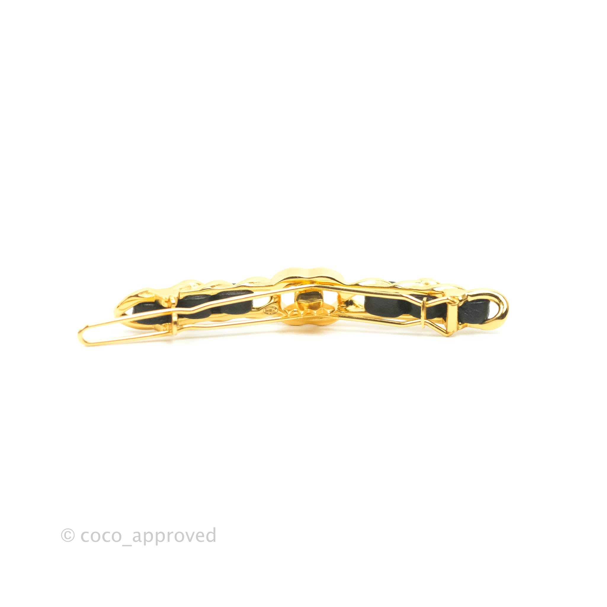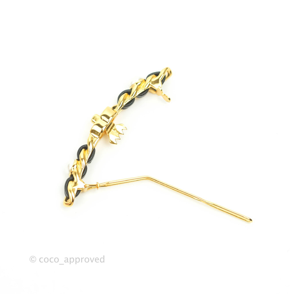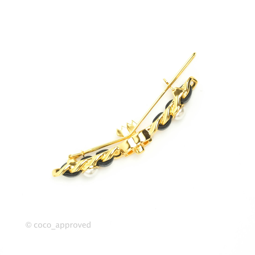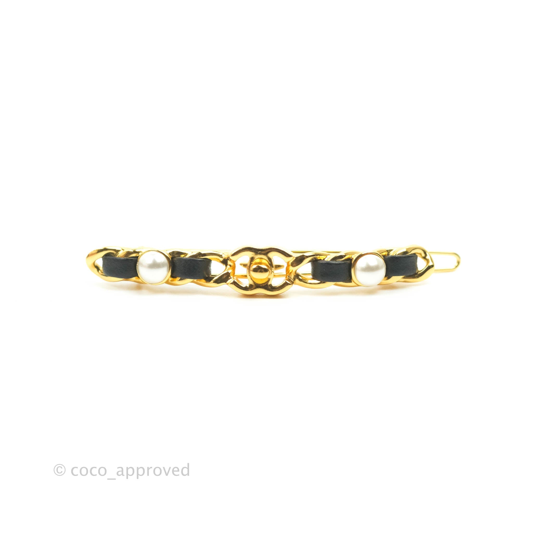 Chanel CC Lock Pearl Chain Hair Clip Gold Tone 20A