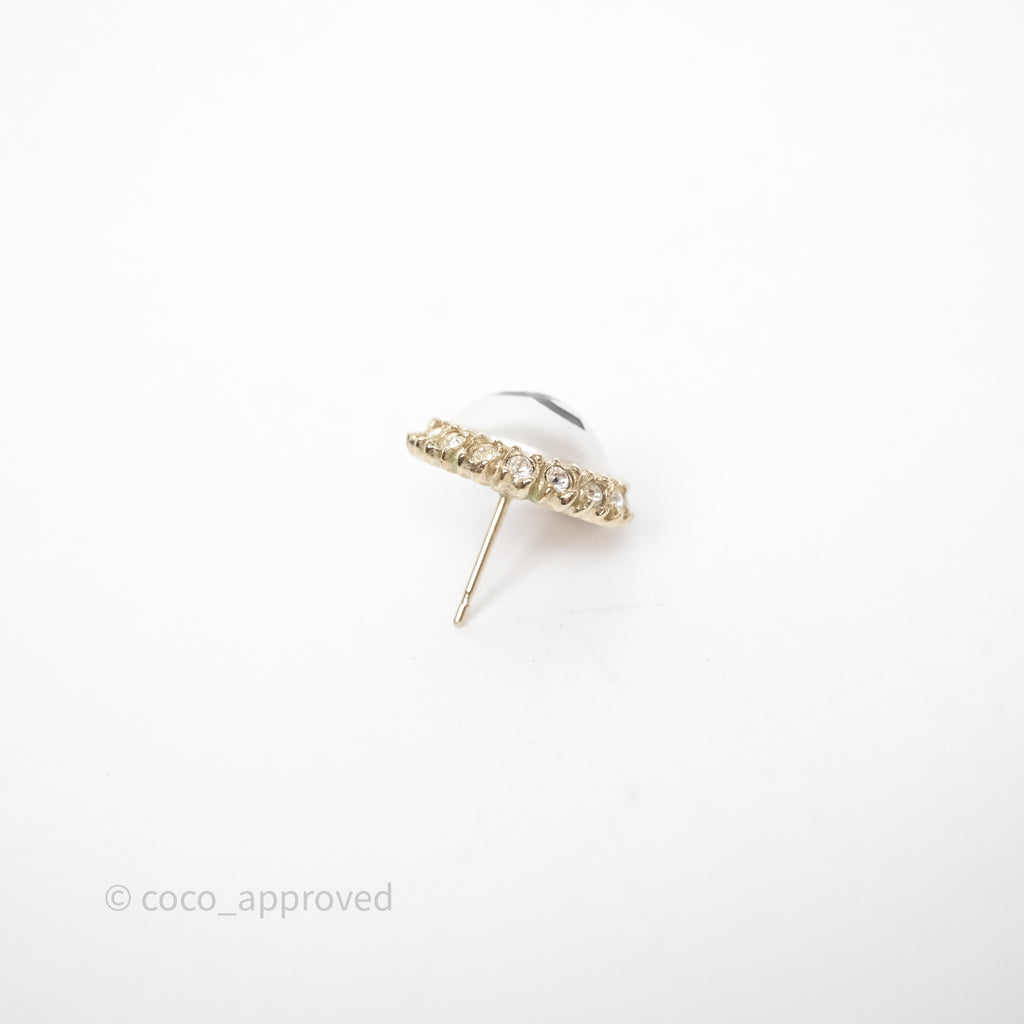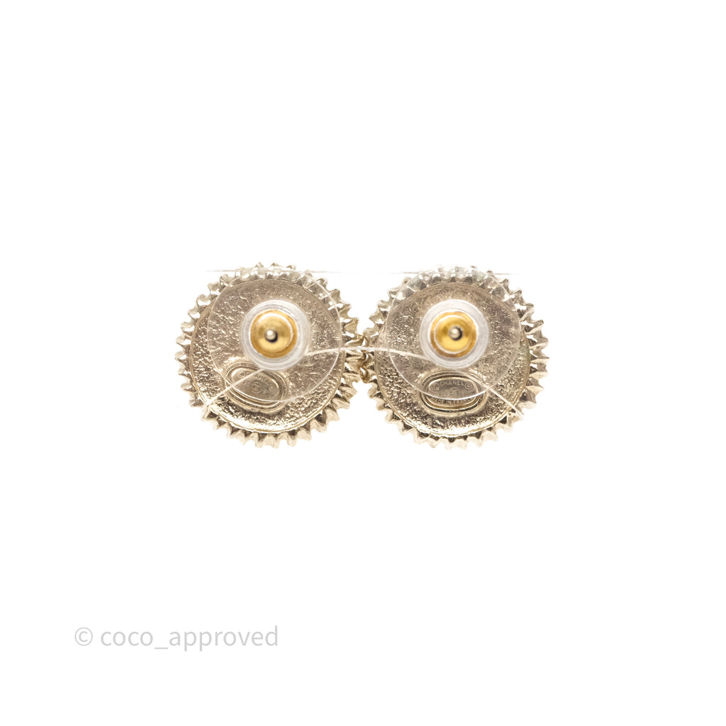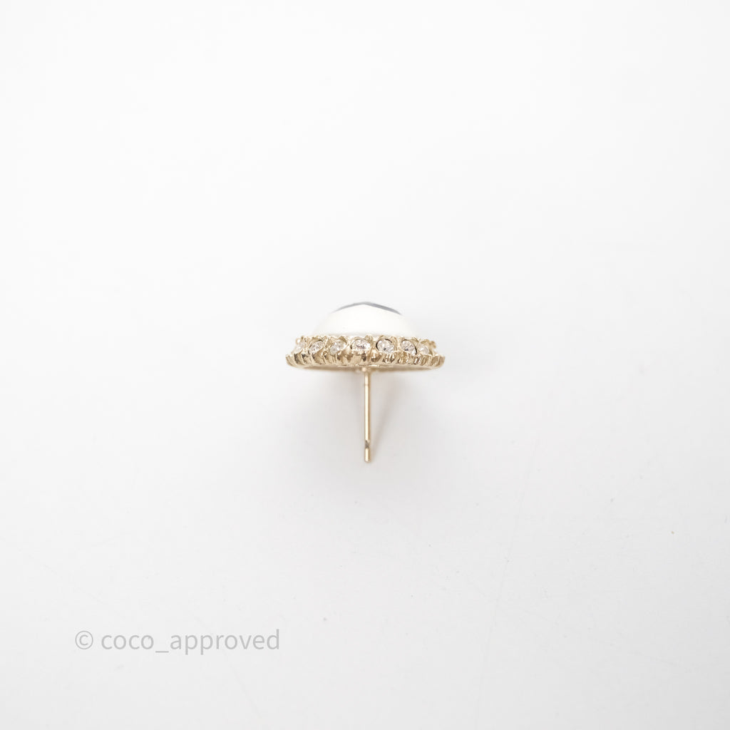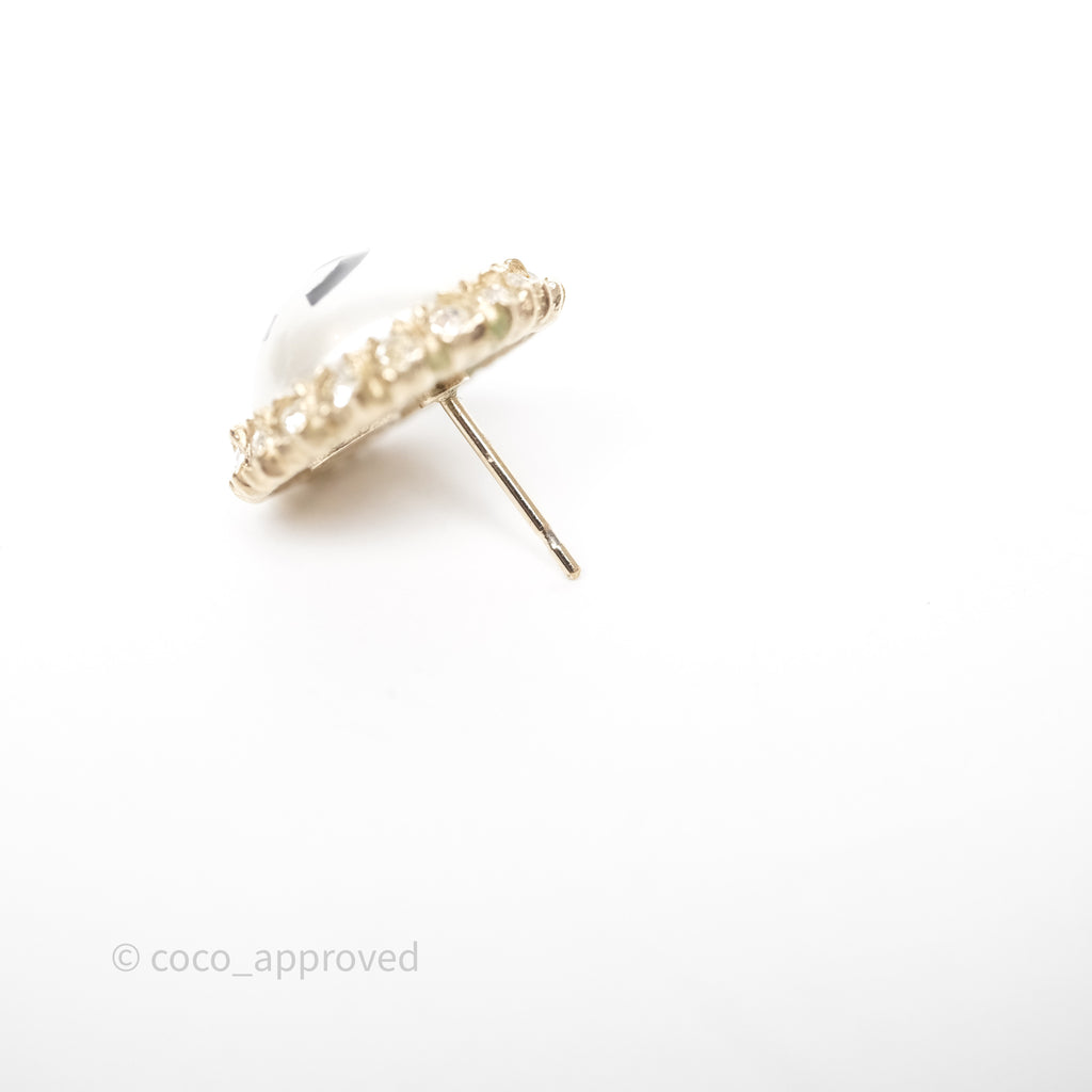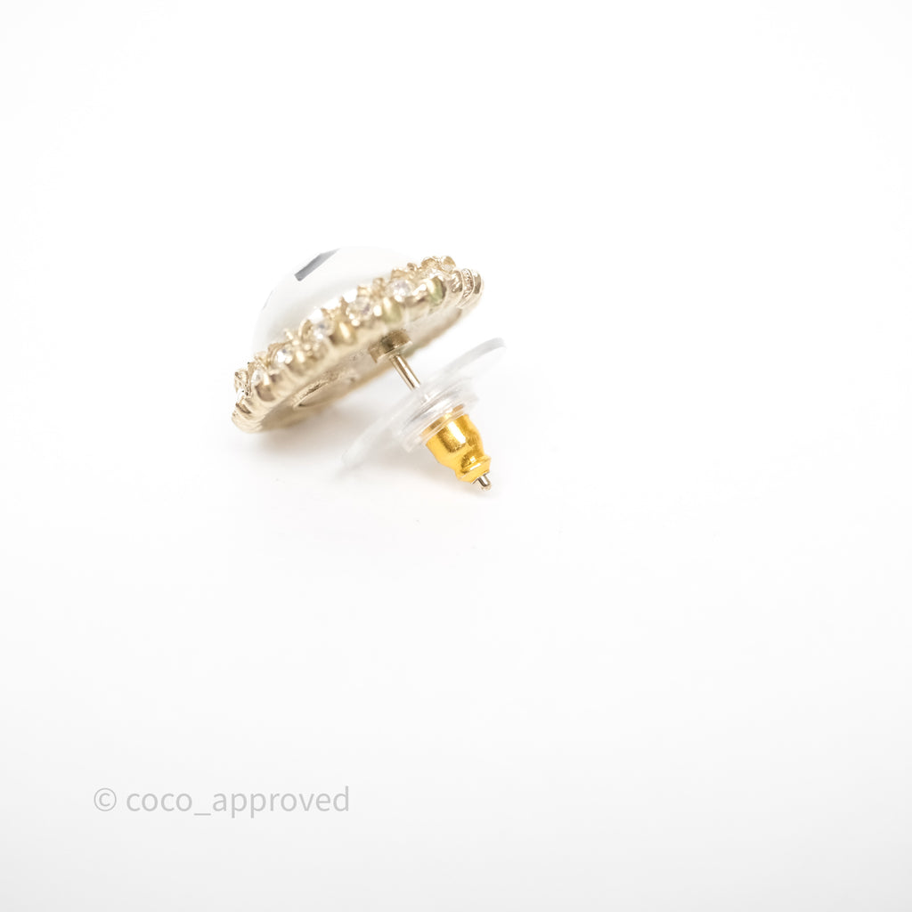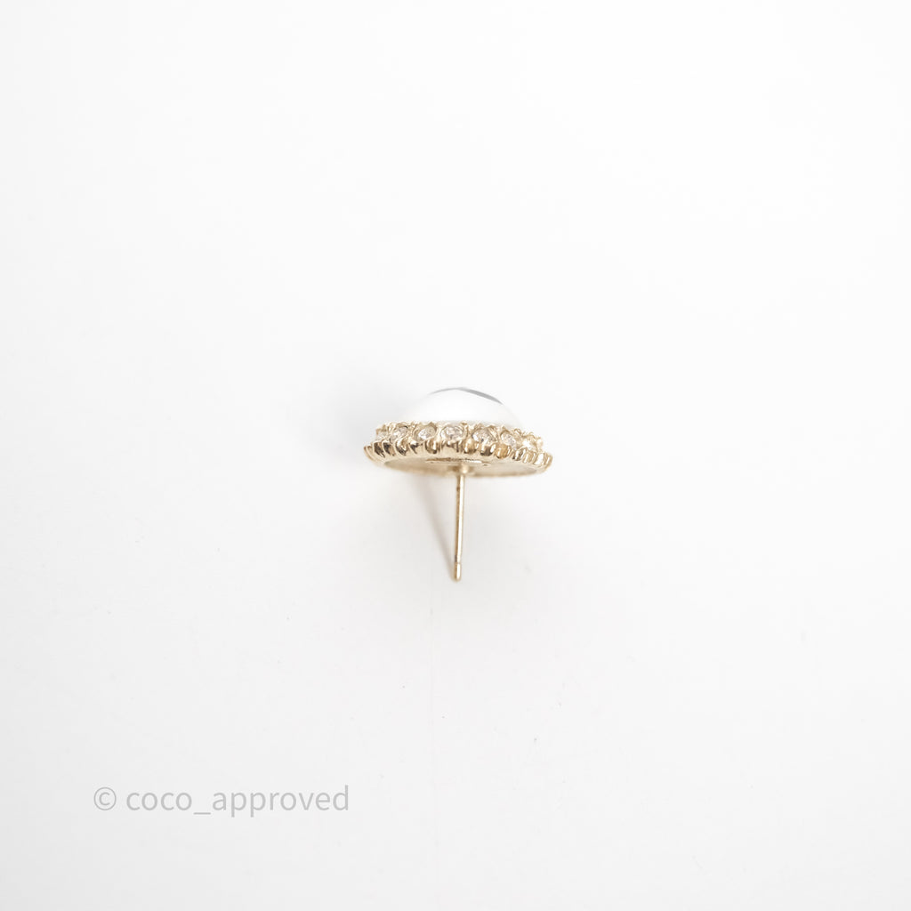 Chanel CC Pearl Crystal Round Earrings Gold Tone 20P