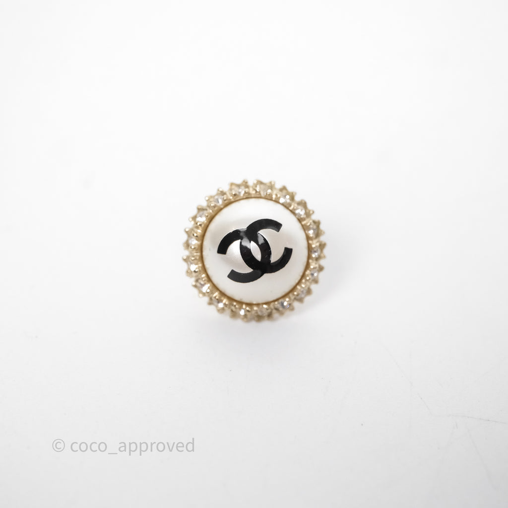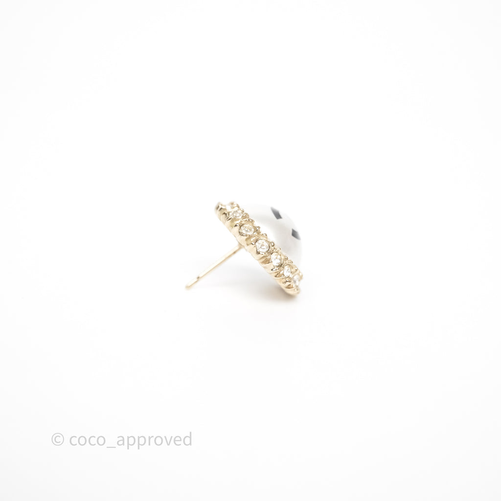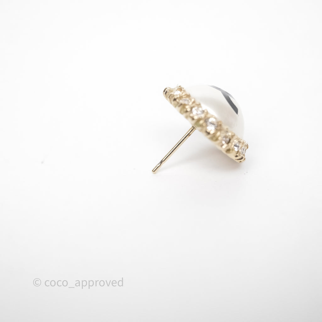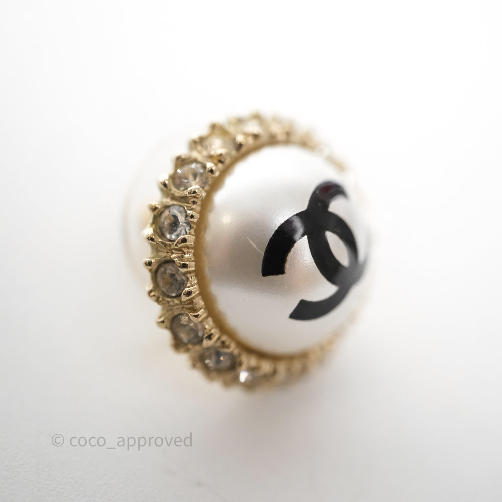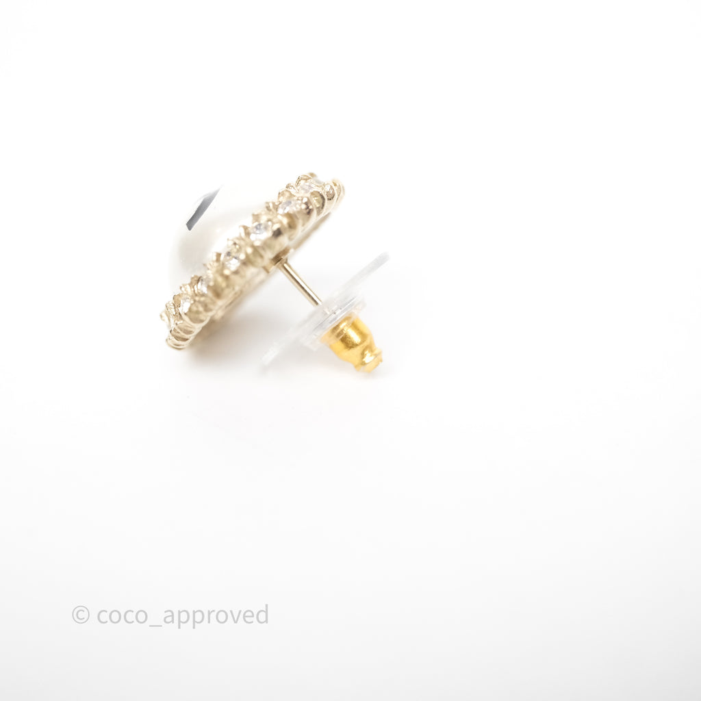 Chanel CC Pearl Crystal Round Earrings Gold Tone 20P