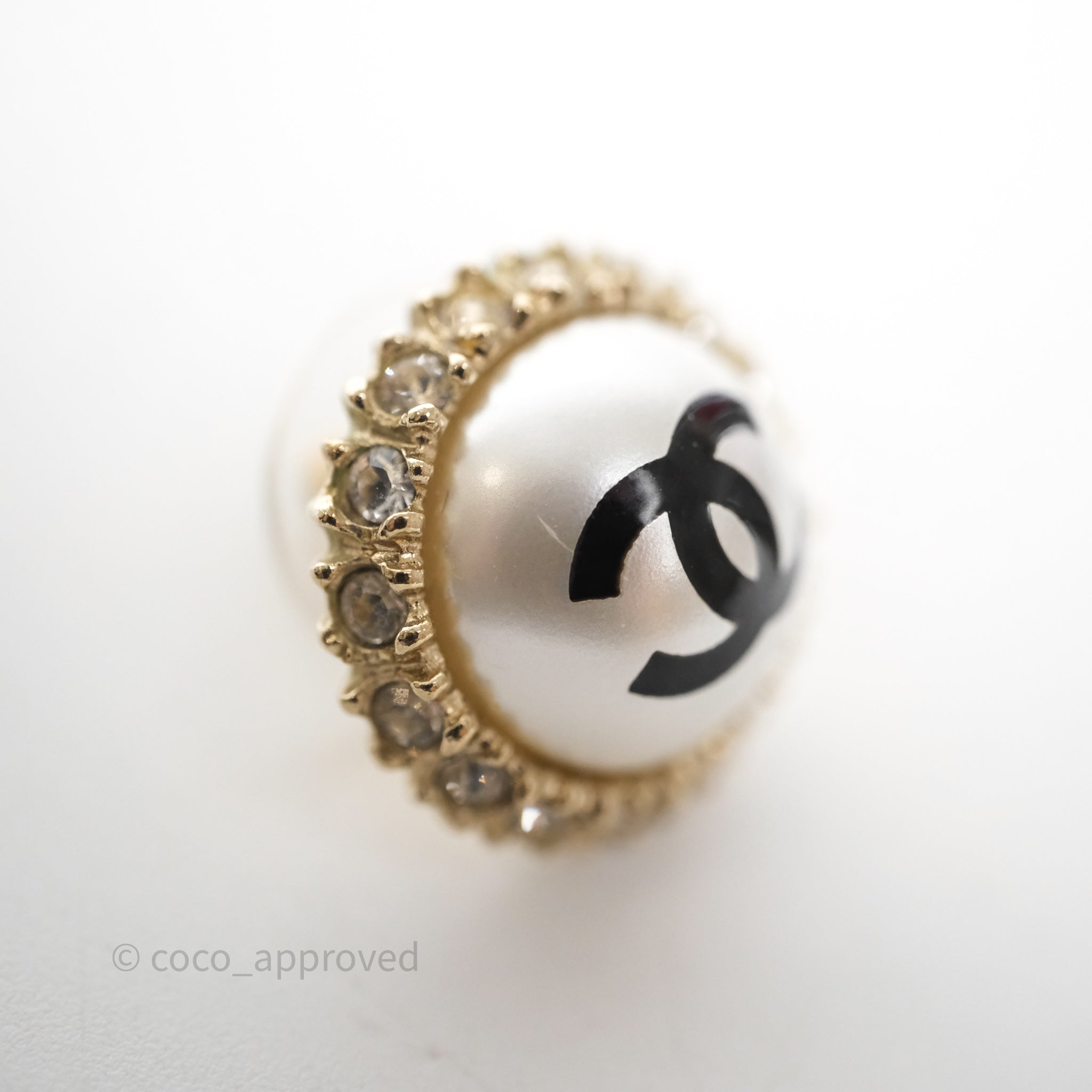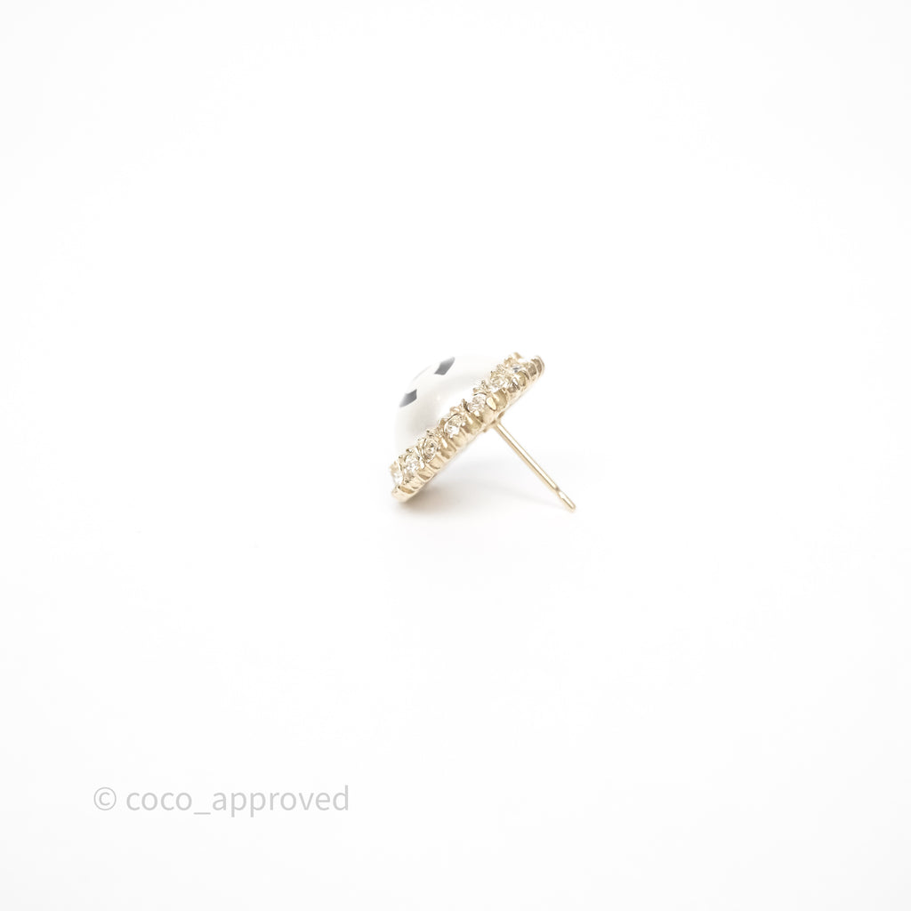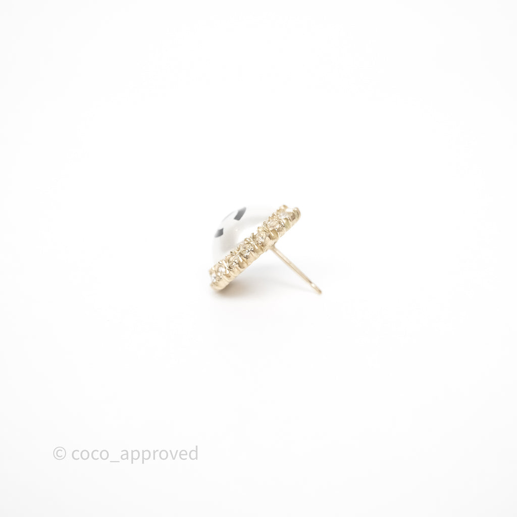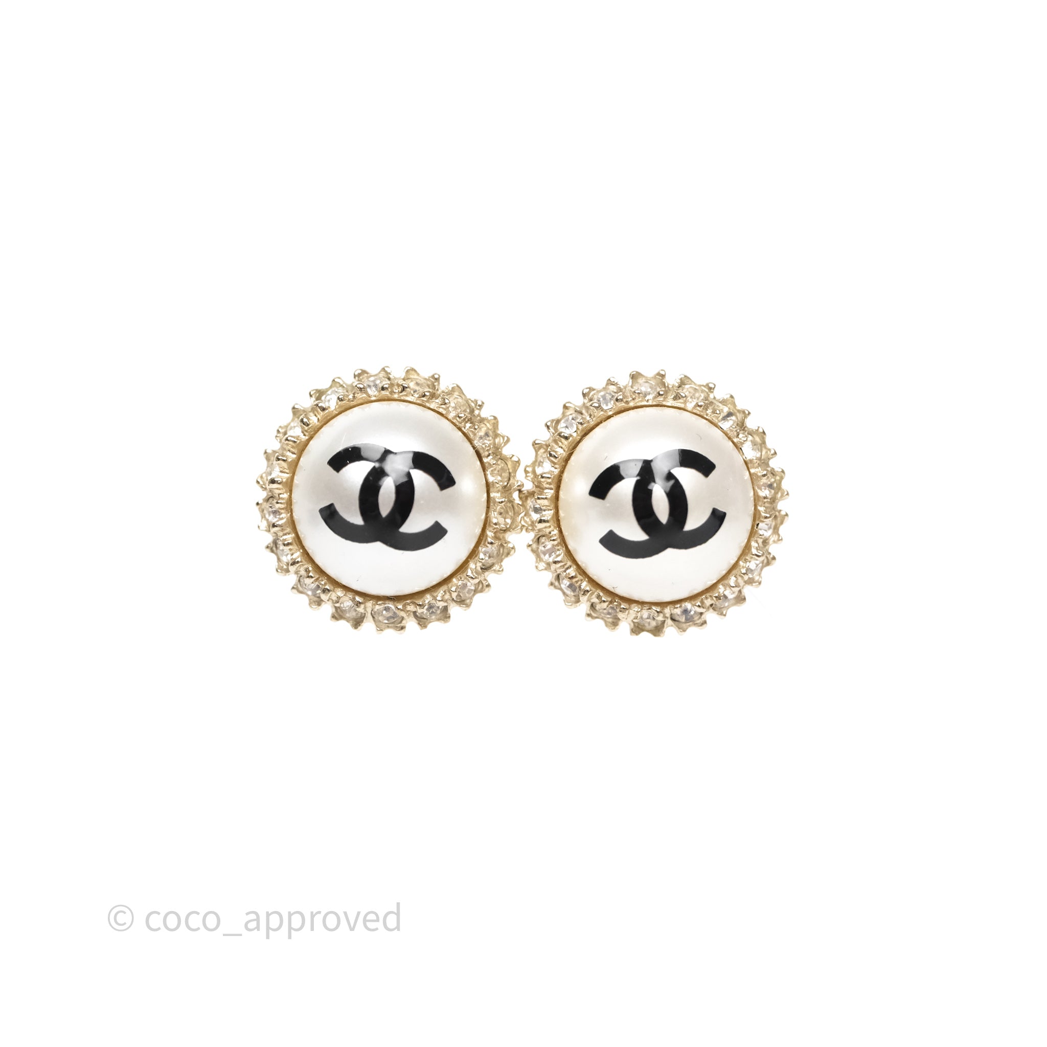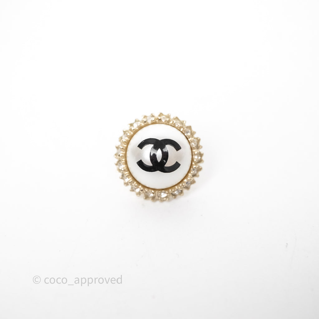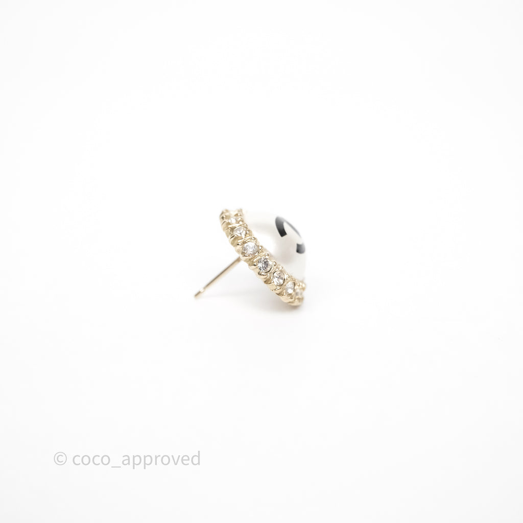 Chanel CC Pearl Crystal Round Earrings Gold Tone 20P