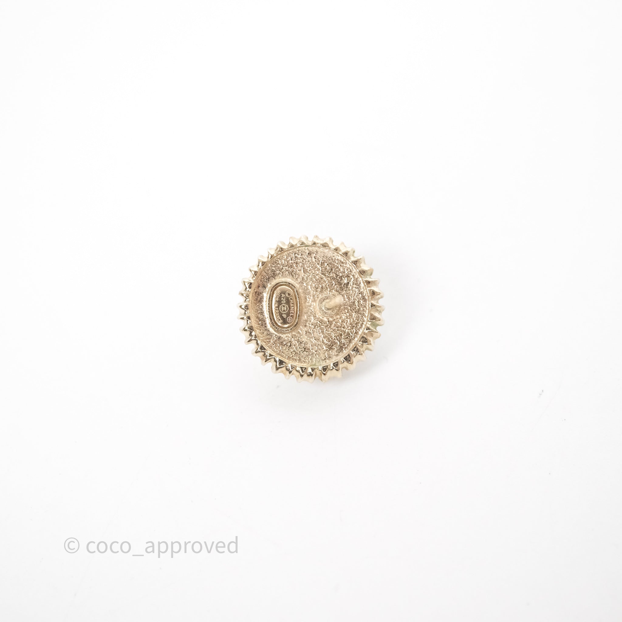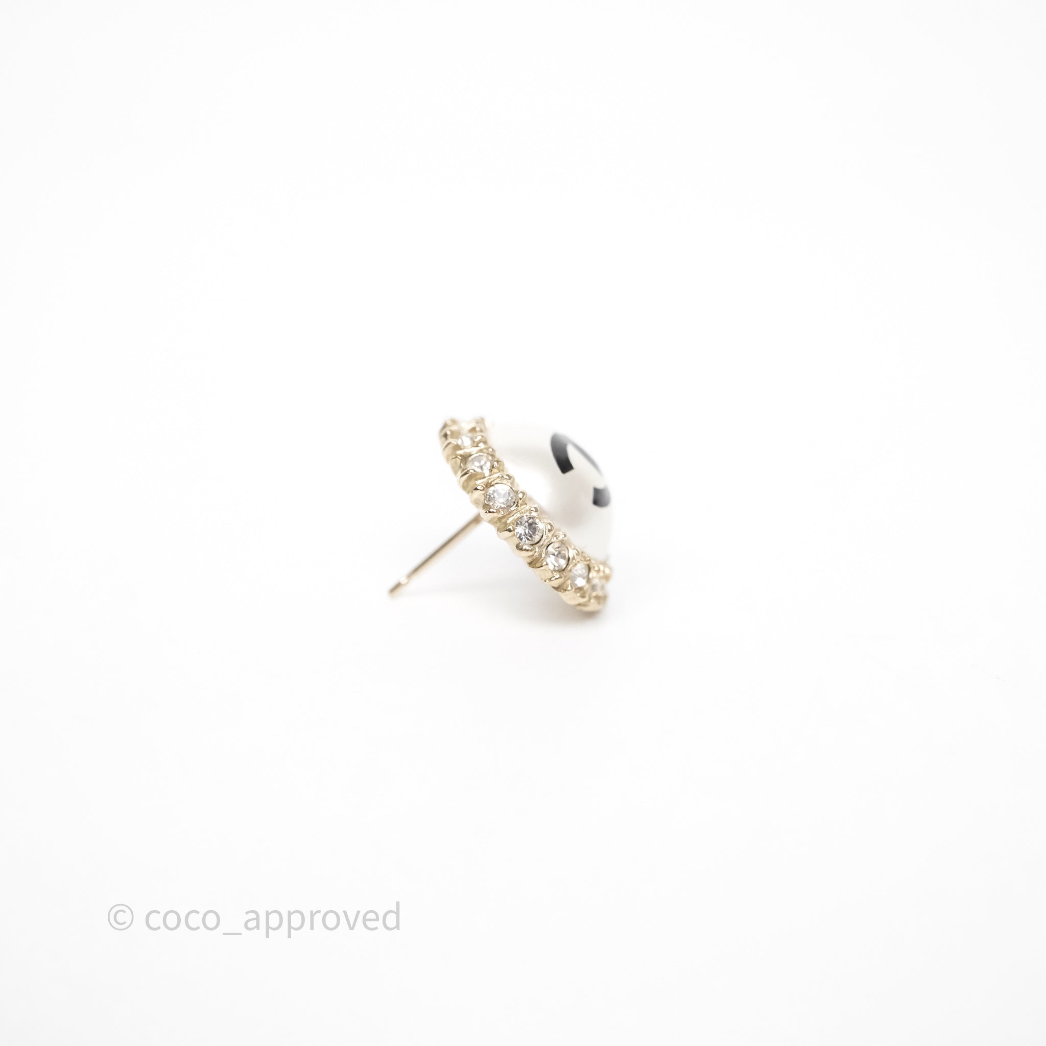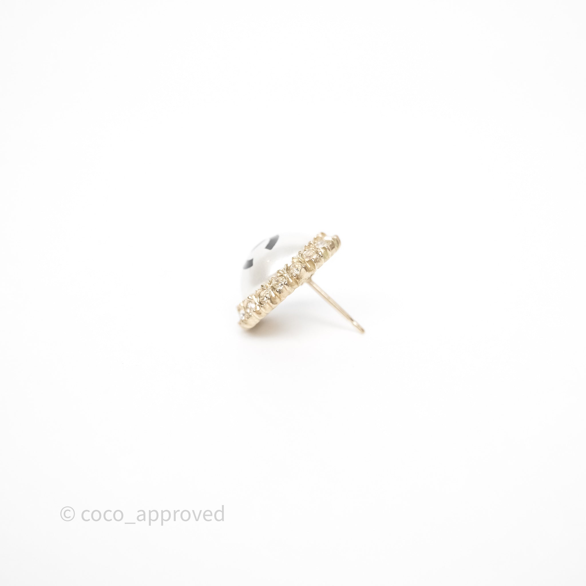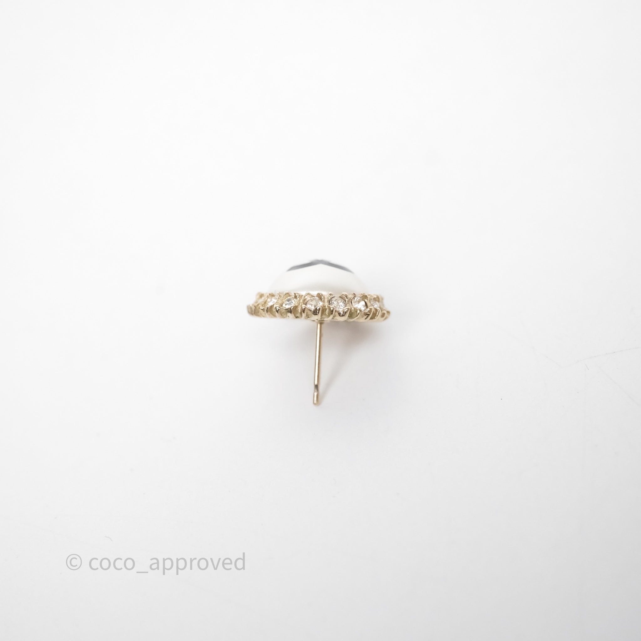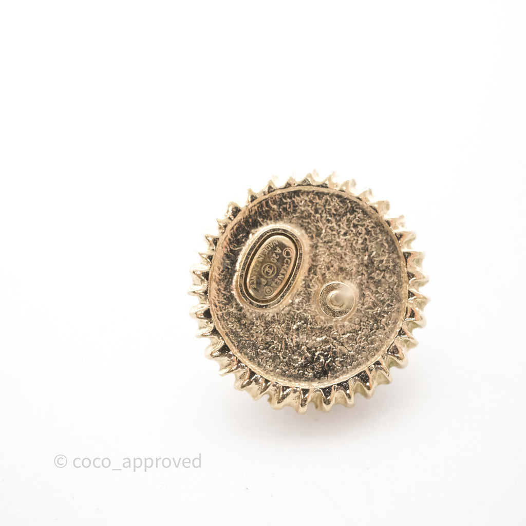 Chanel CC Pearl Crystal Round Earrings Gold Tone 20P