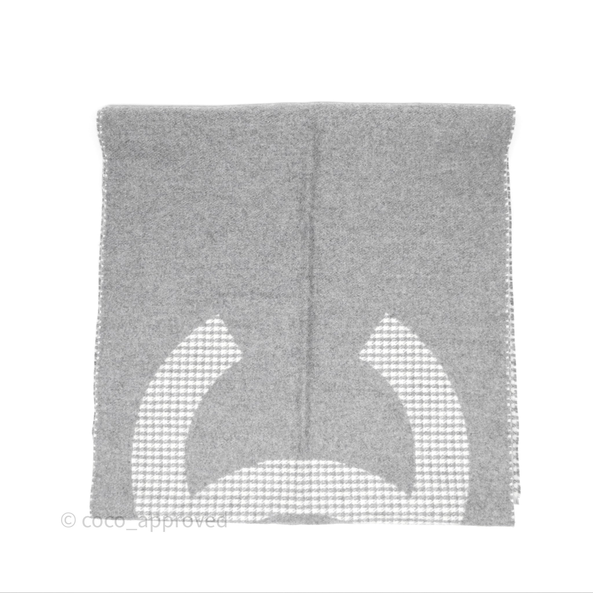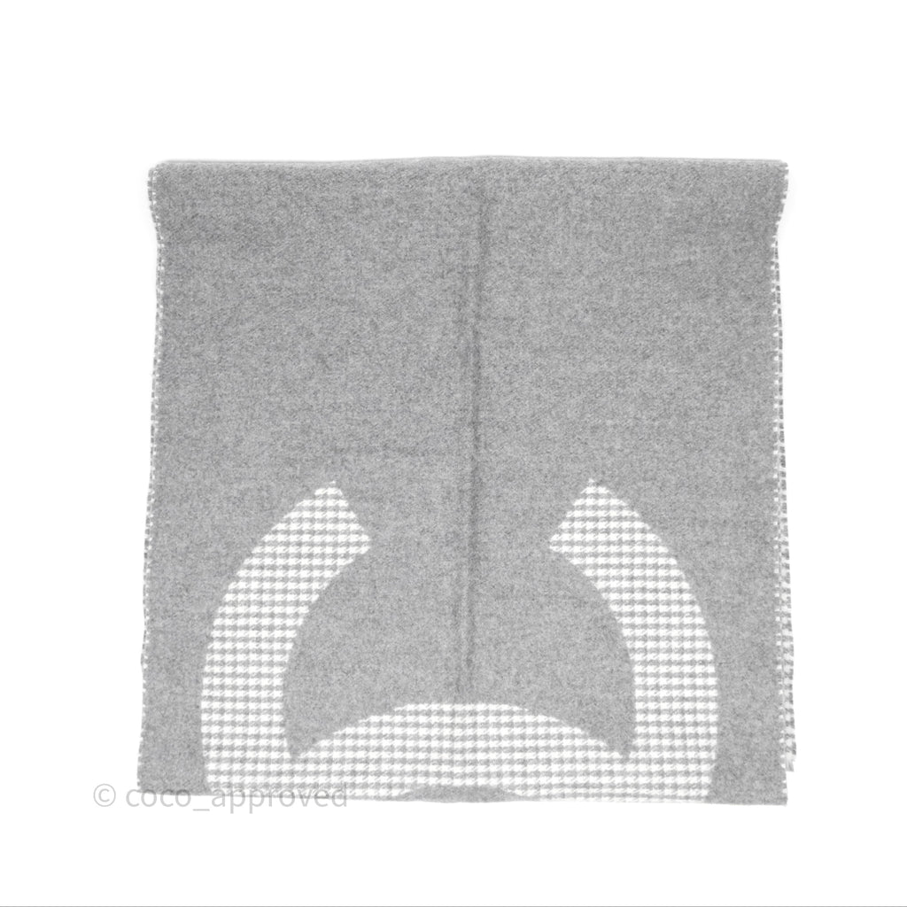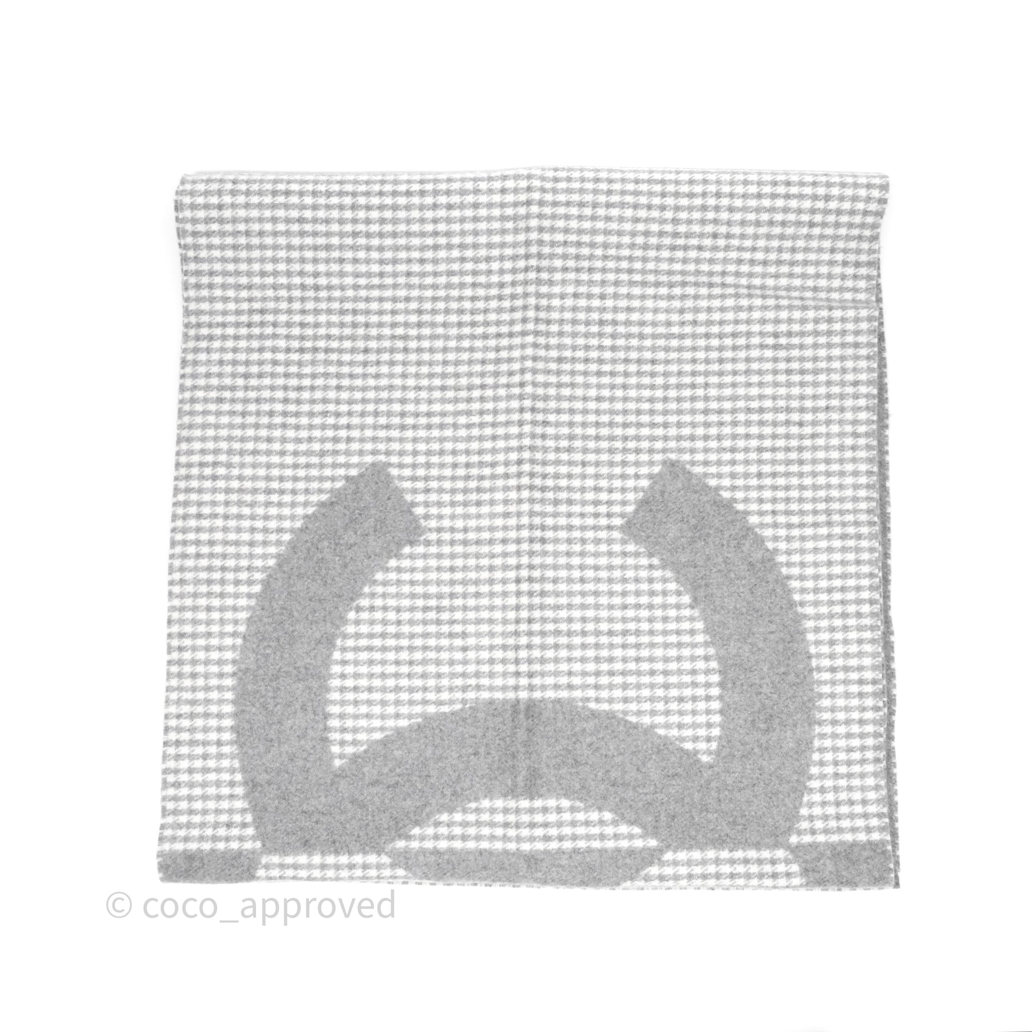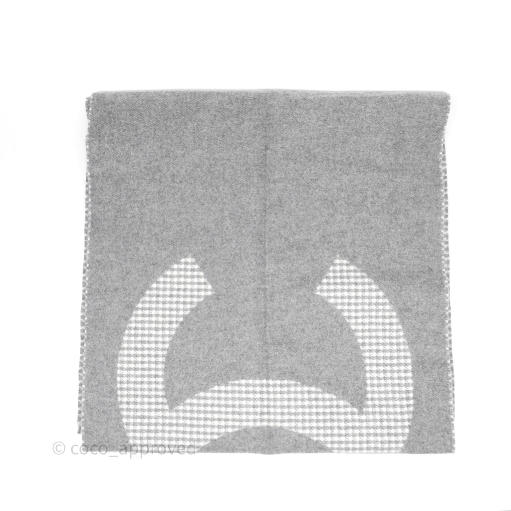 Chanel CC Reversible Cashmere Scarf Grey/ White 23B