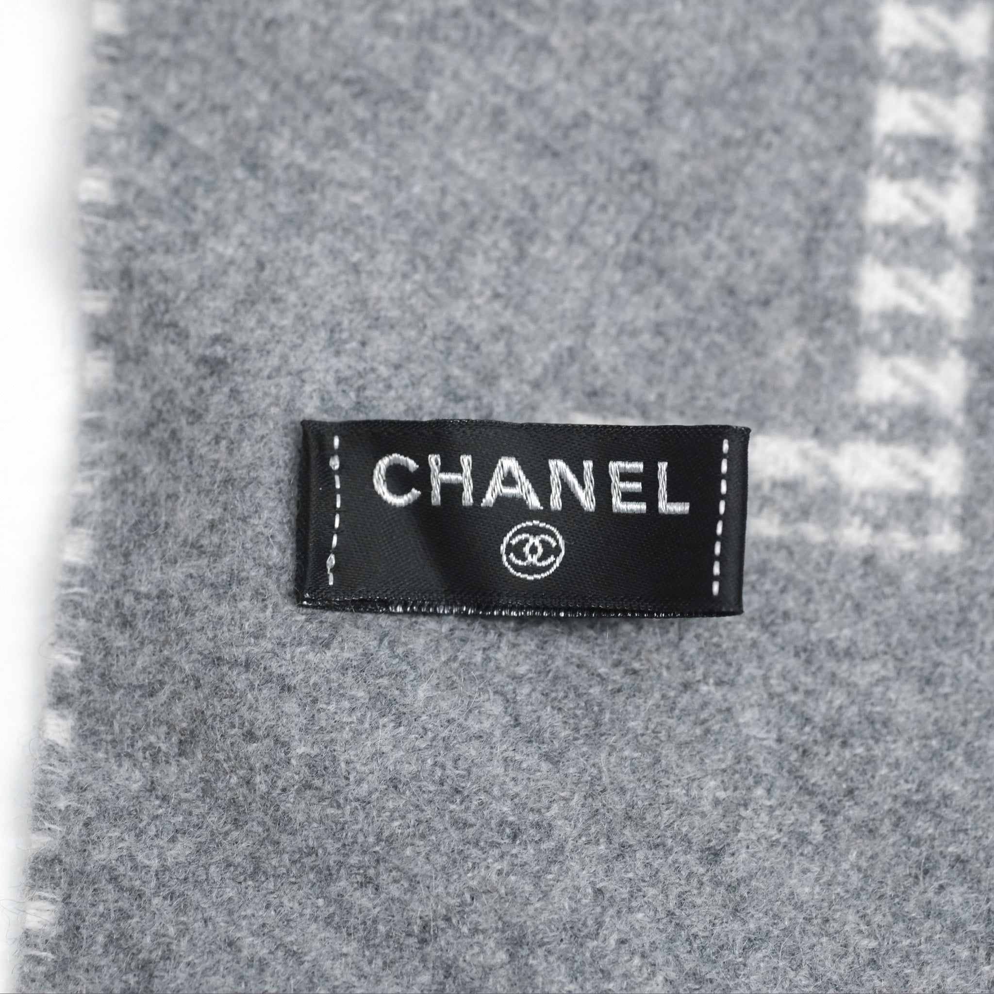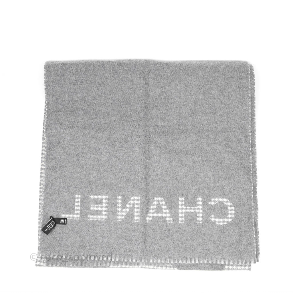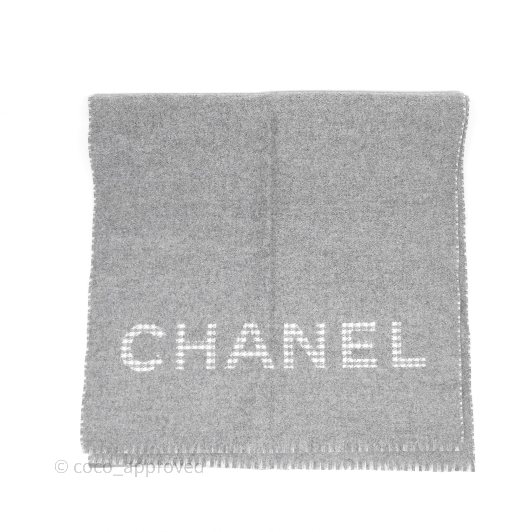 Chanel CC Reversible Cashmere Scarf Grey/ White 23B