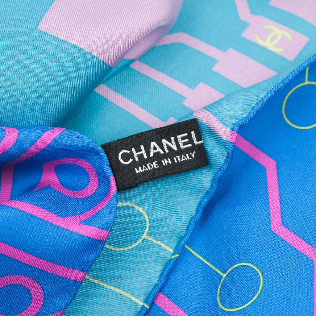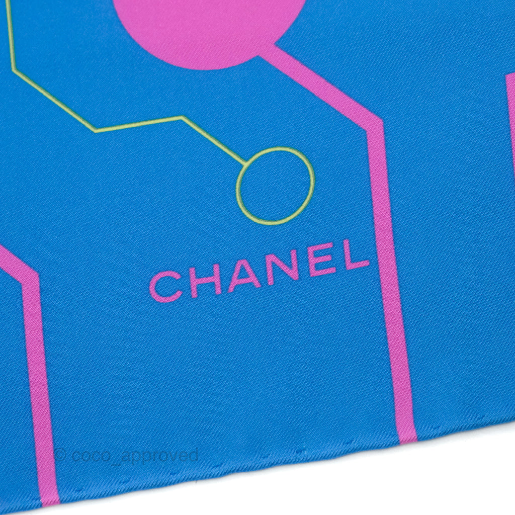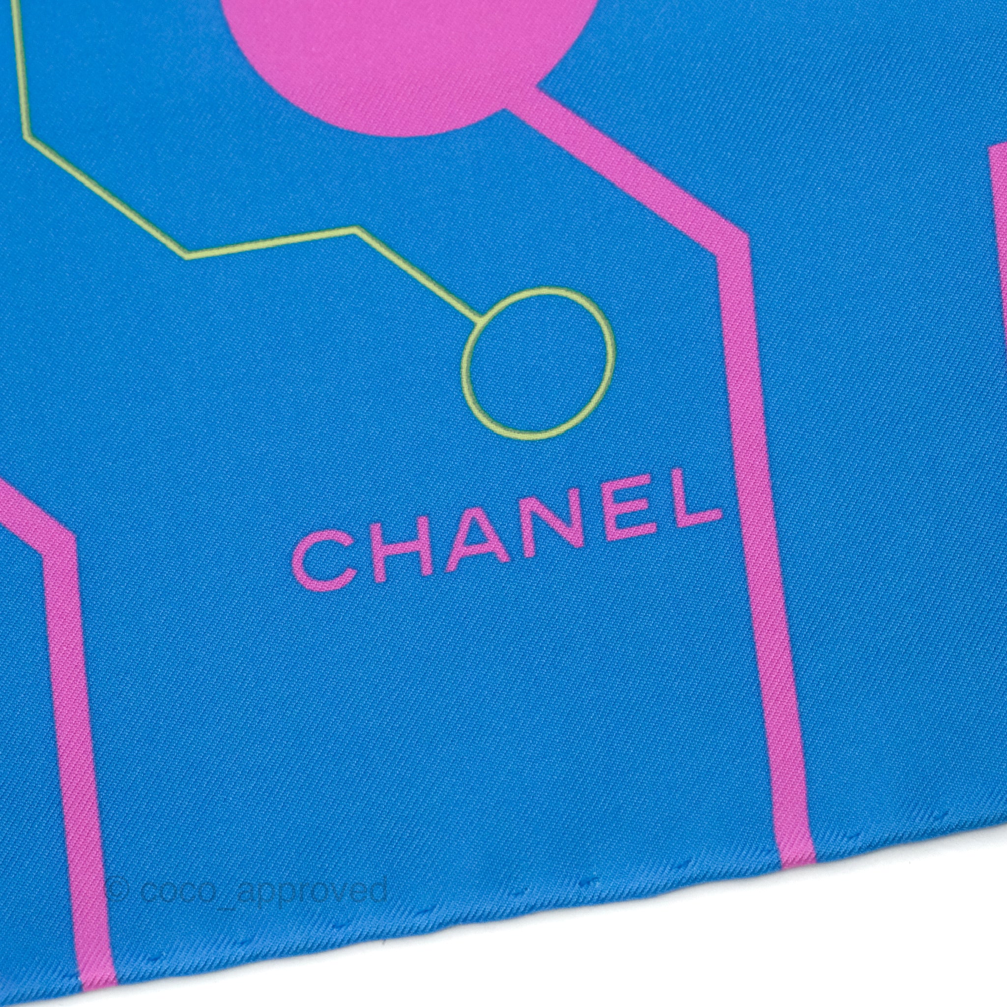 Chanel CC Square Silk Scarf Blue/Pink/Yellow
