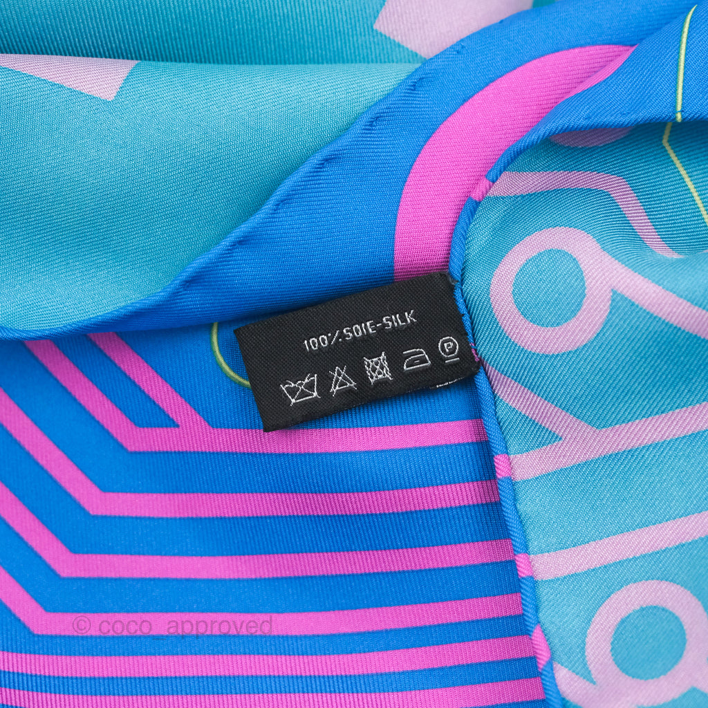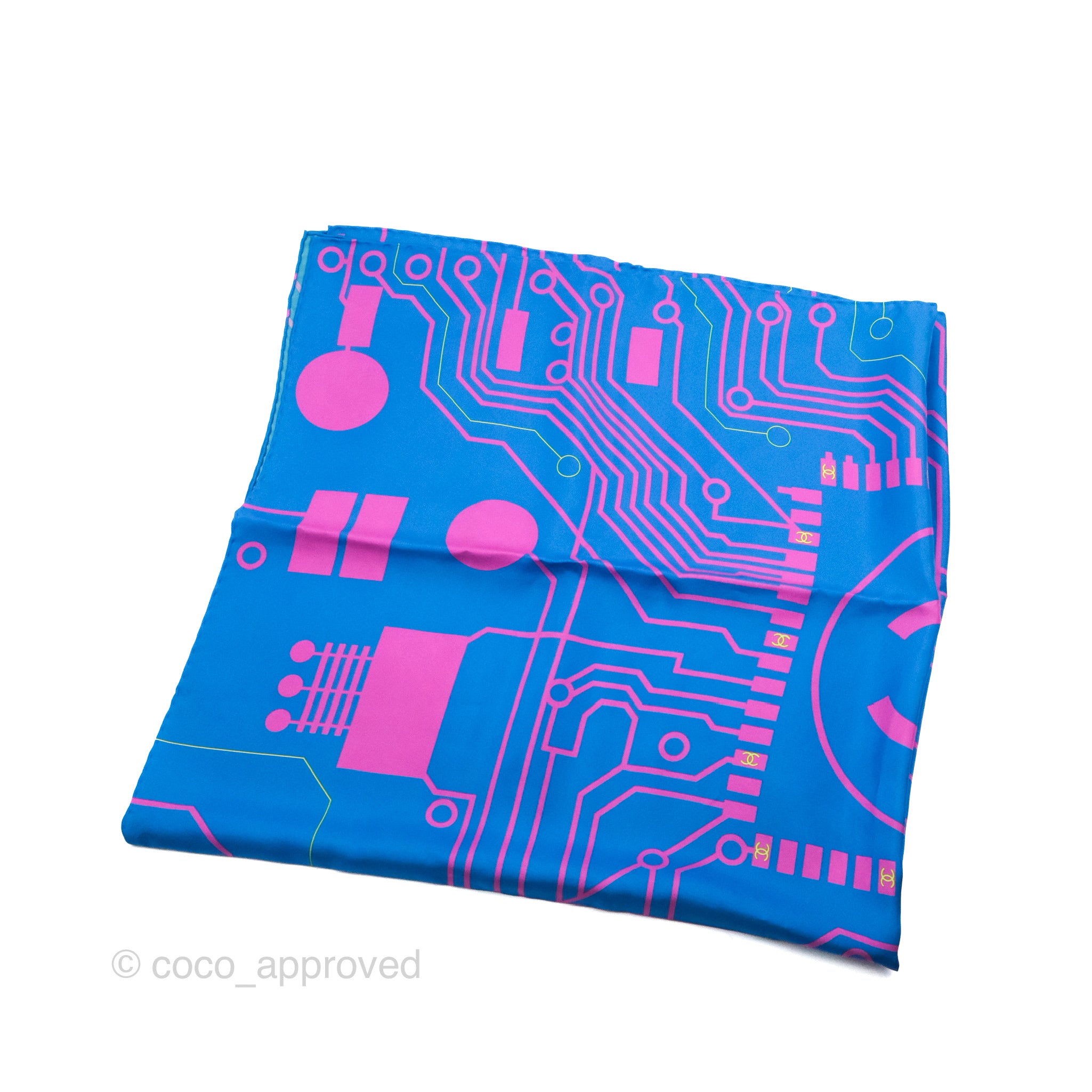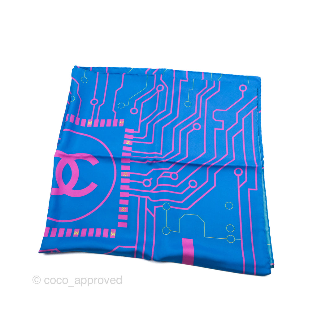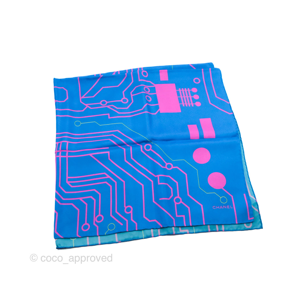 Chanel CC Square Silk Scarf Blue/Pink/Yellow