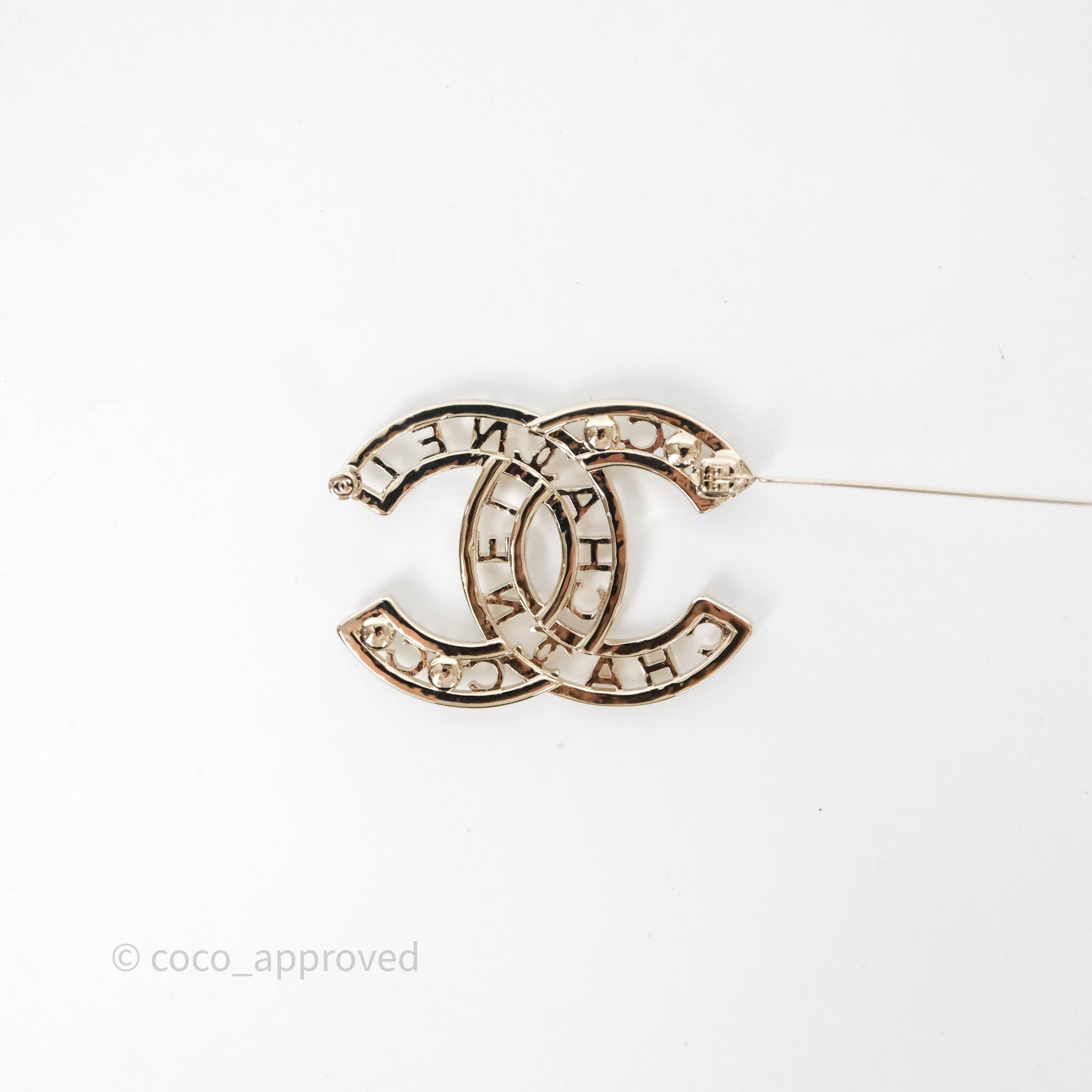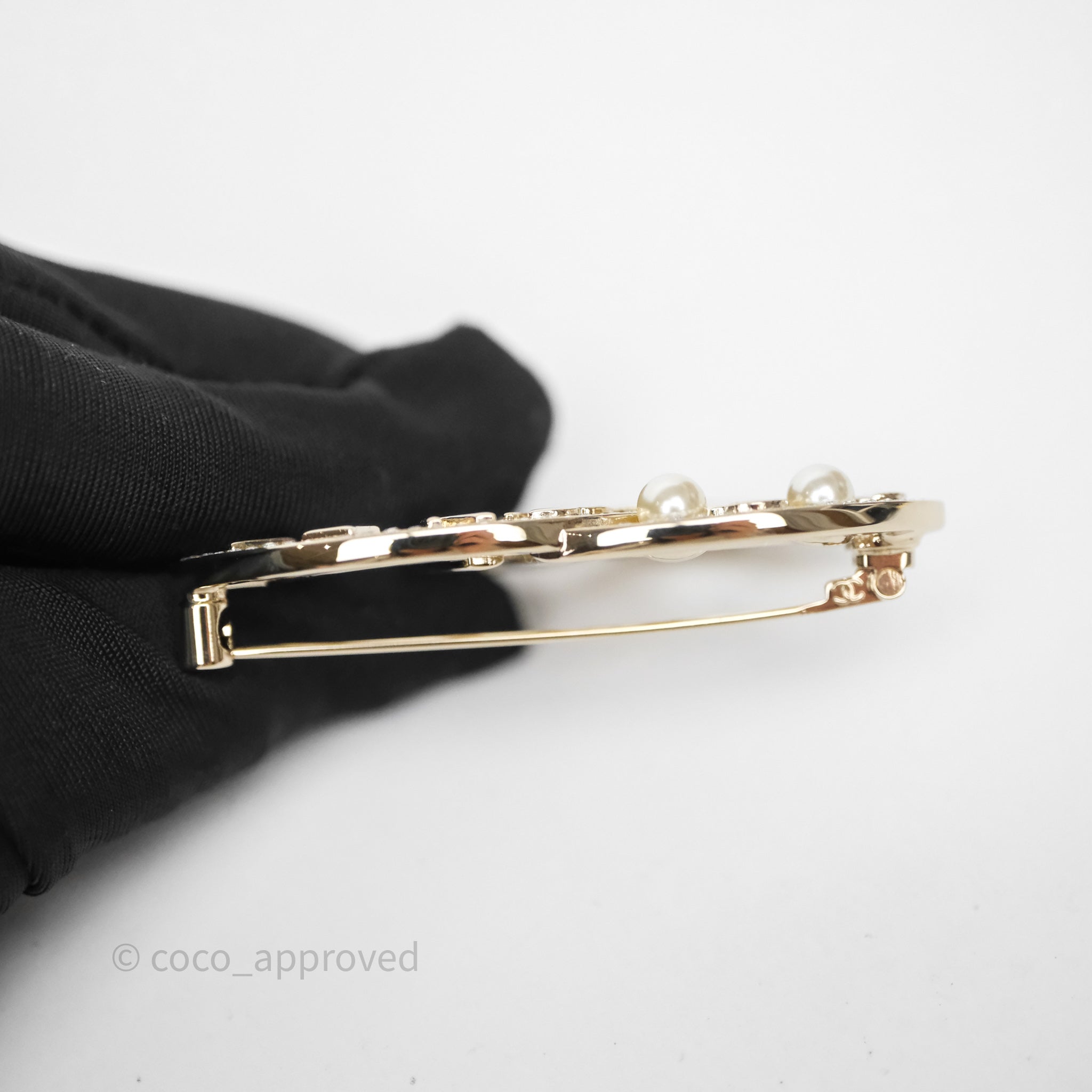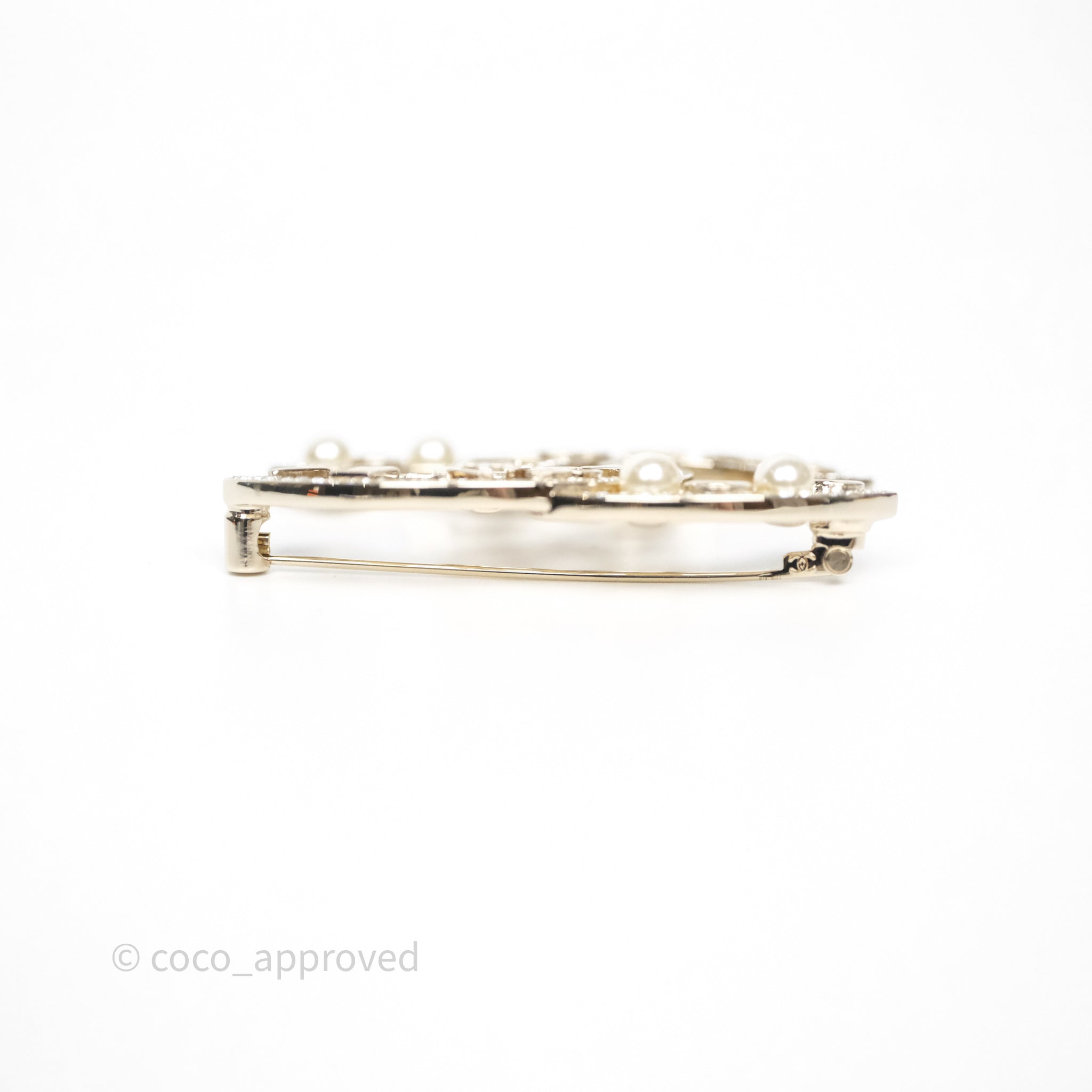 Chanel Crystal Pearl CC Logo Brooch Gold Tone 25V