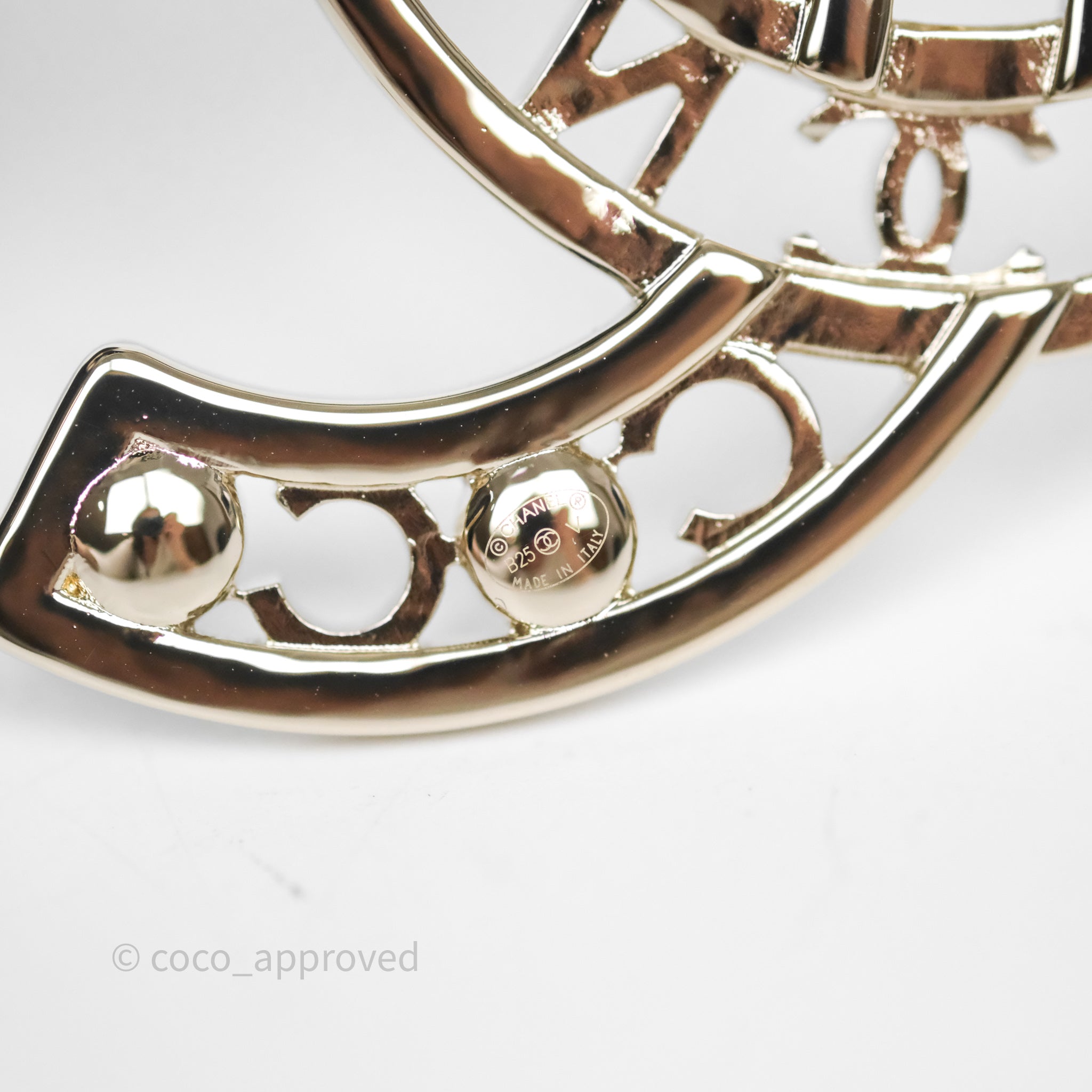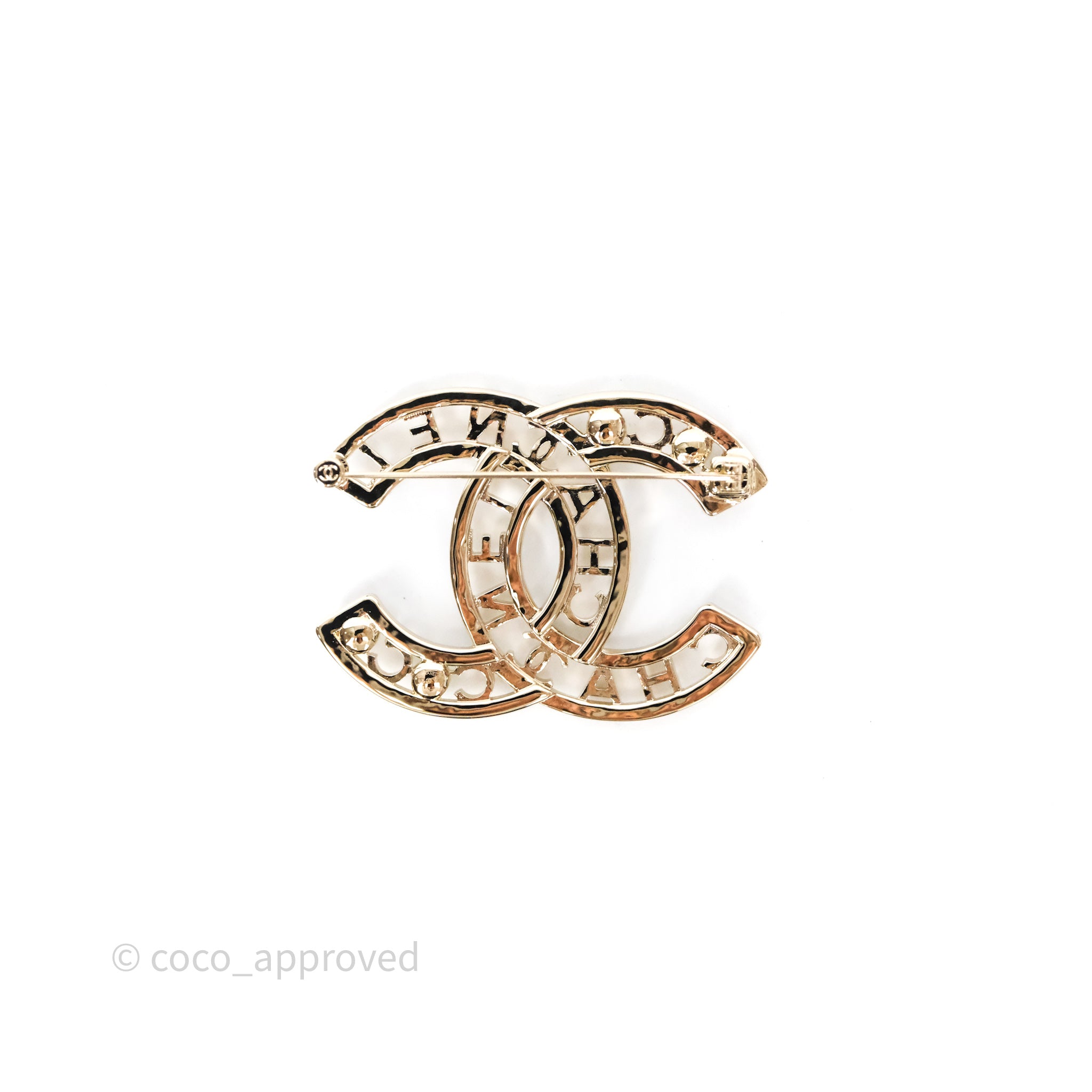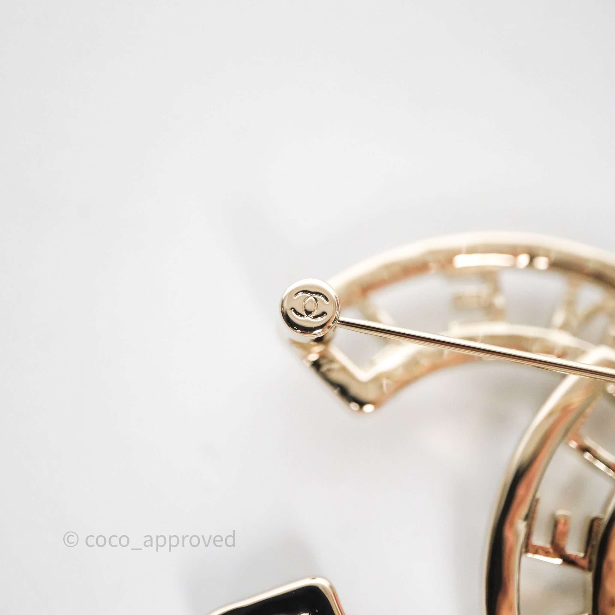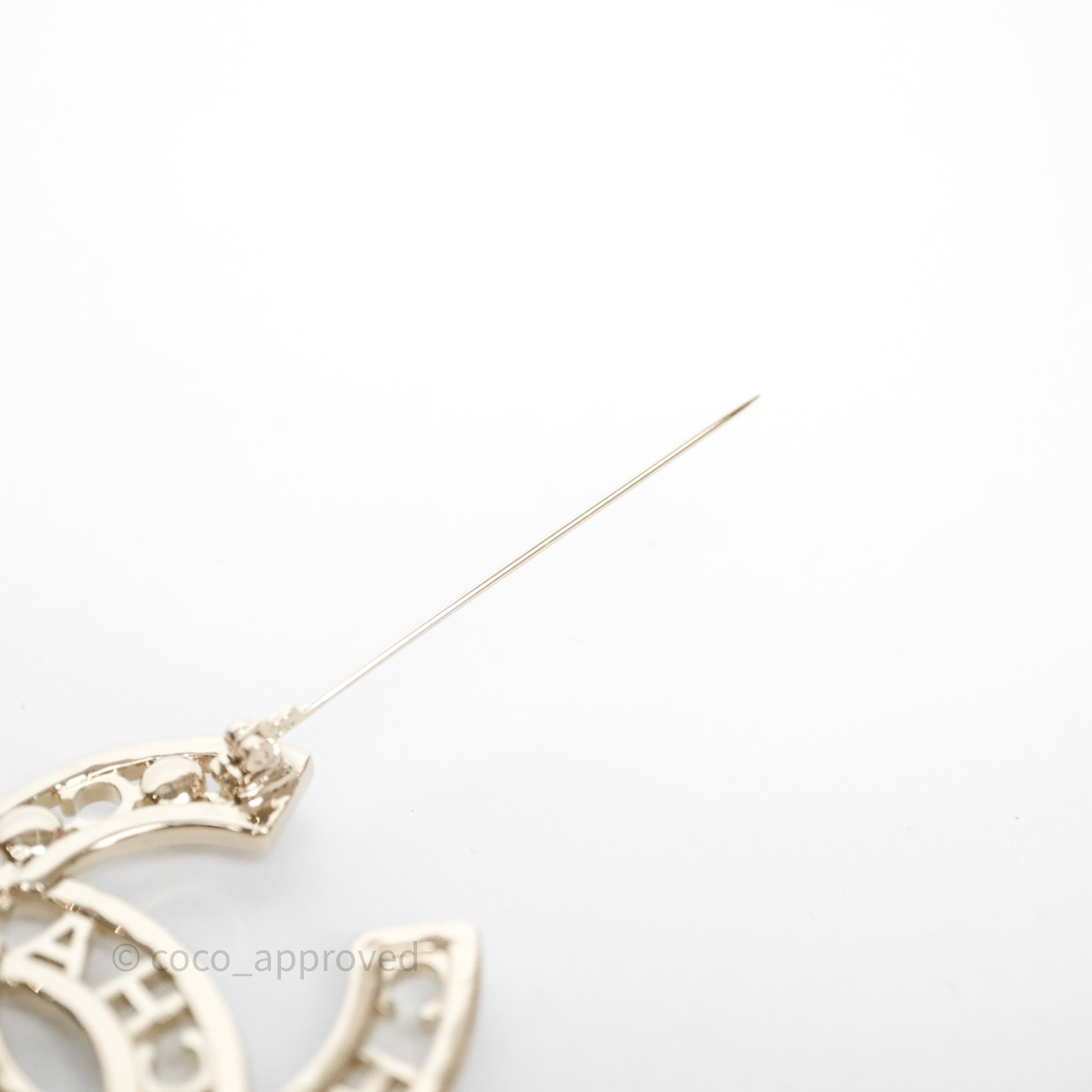 Chanel Crystal Pearl CC Logo Brooch Gold Tone 25V