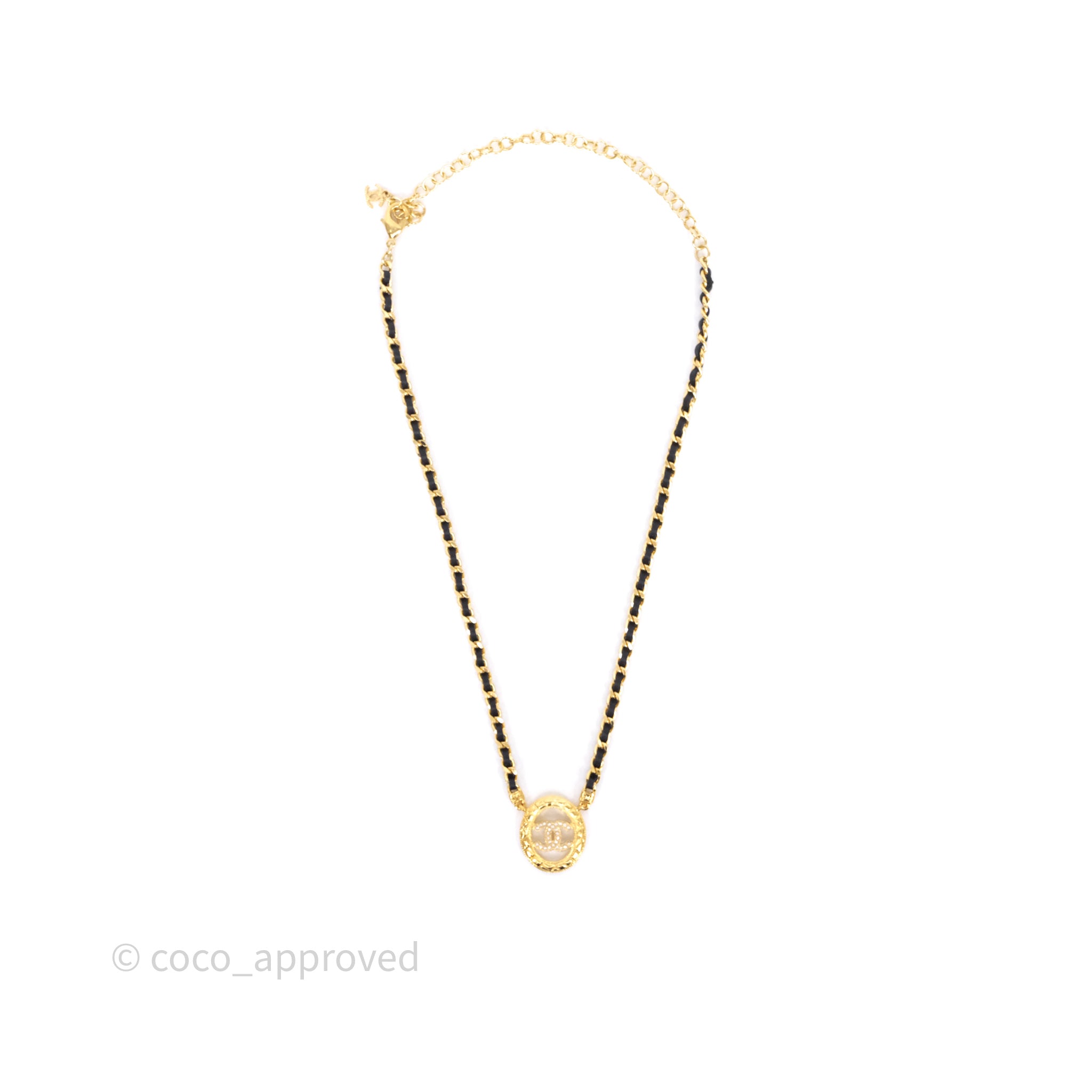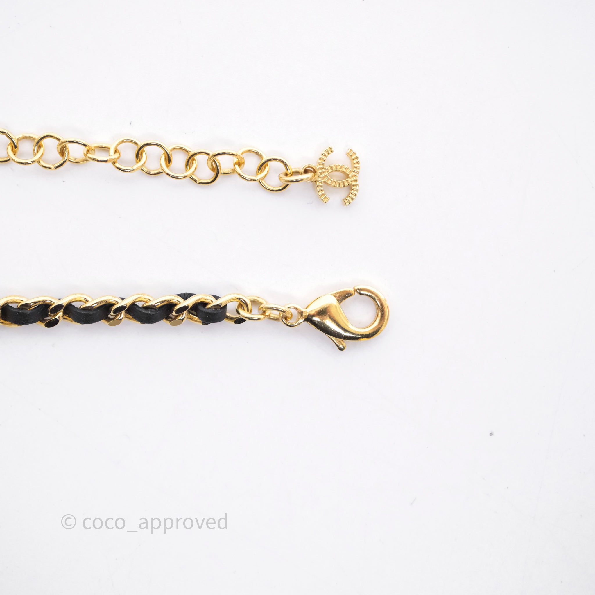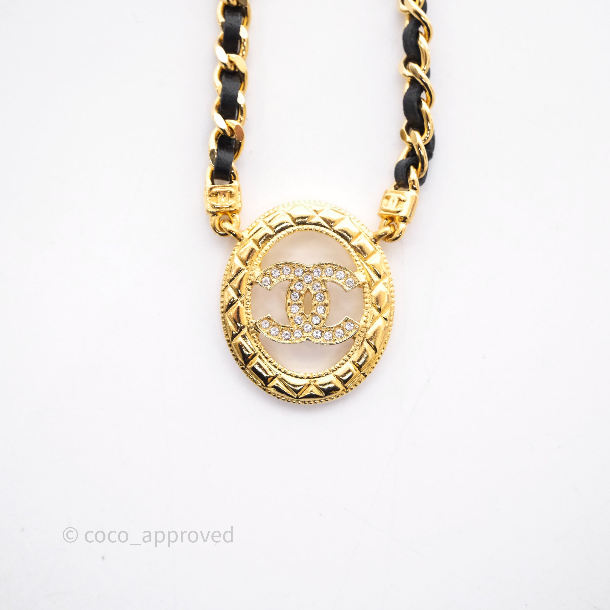 Chanel Oval Crystal CC Leather Chain Necklace Gold Tone 24A