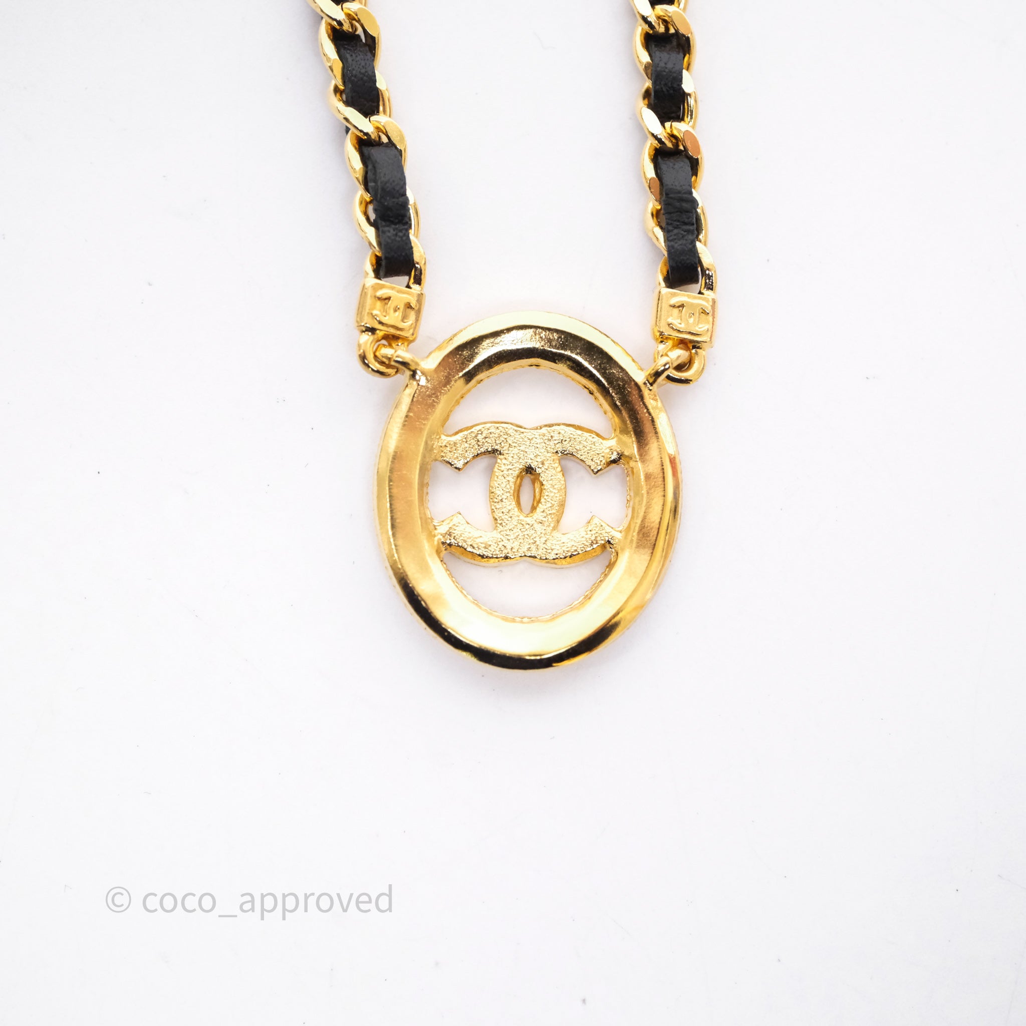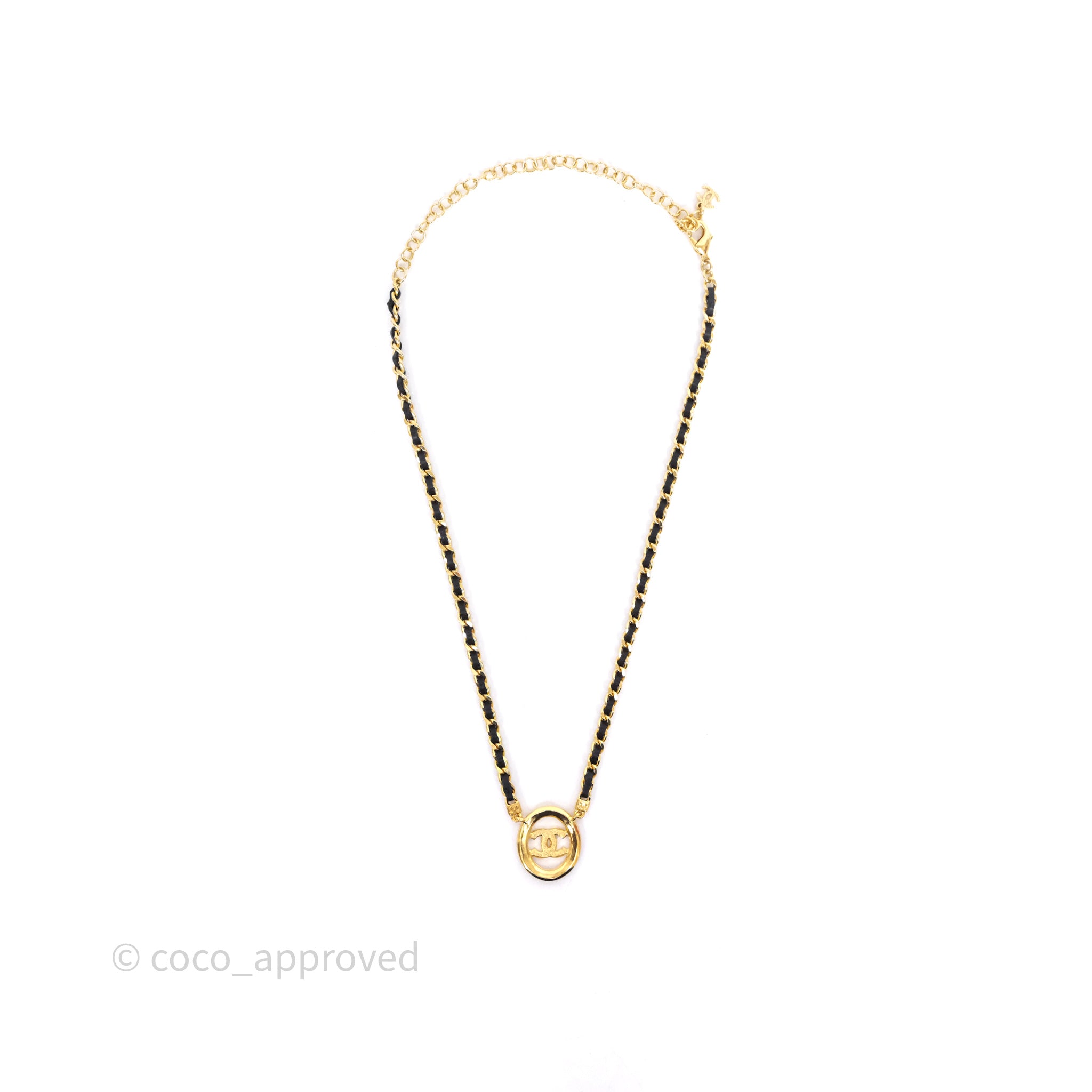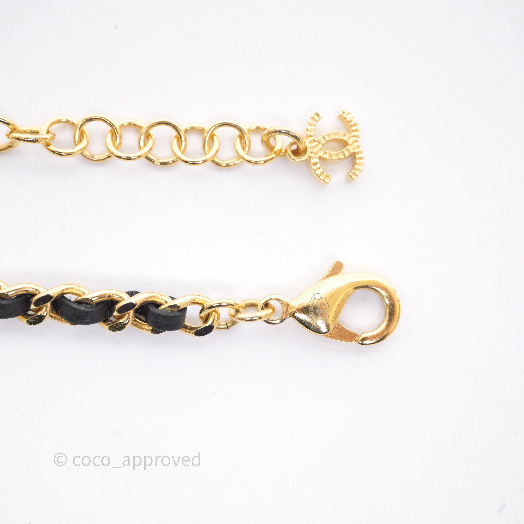 Chanel Oval Crystal CC Leather Chain Necklace Gold Tone 24A