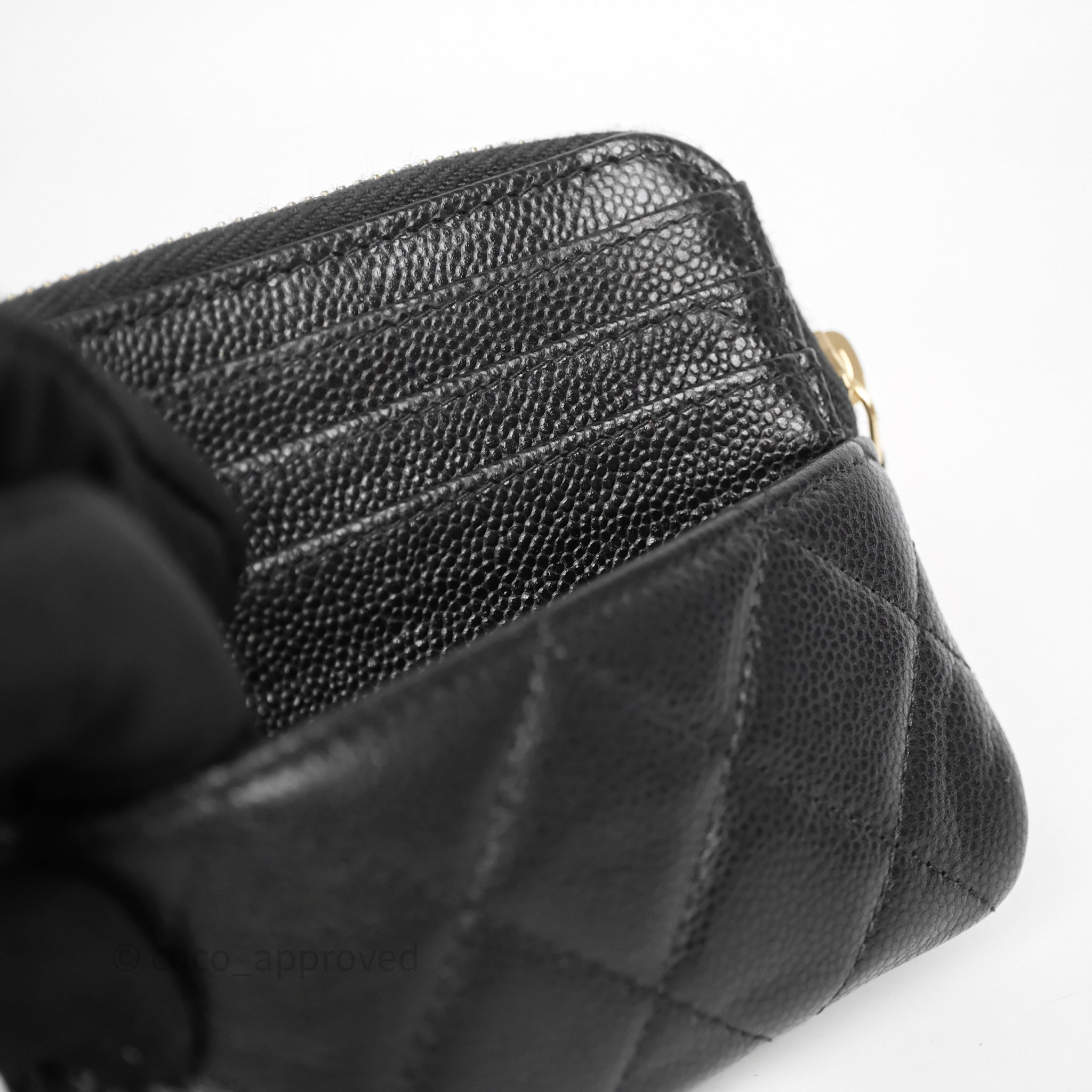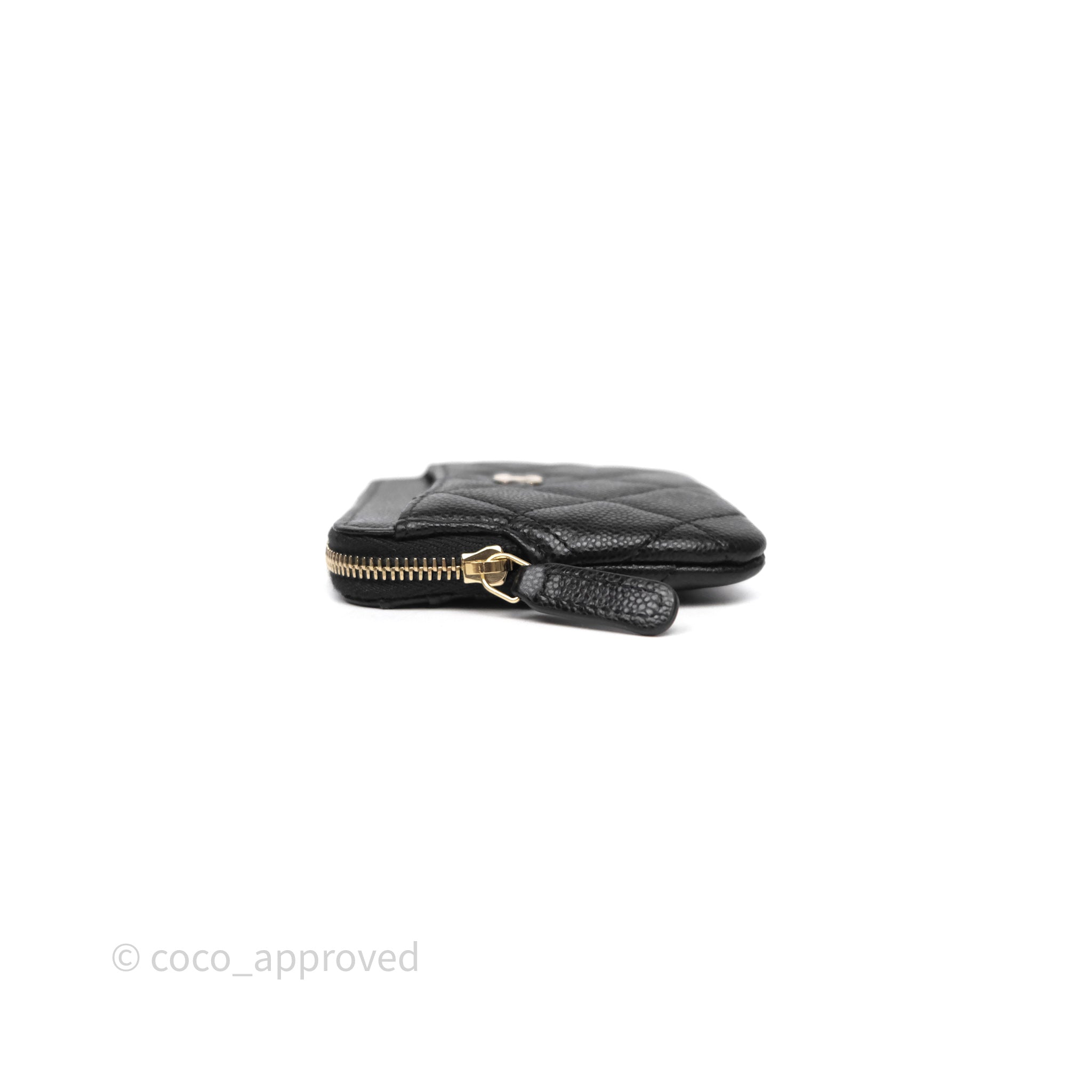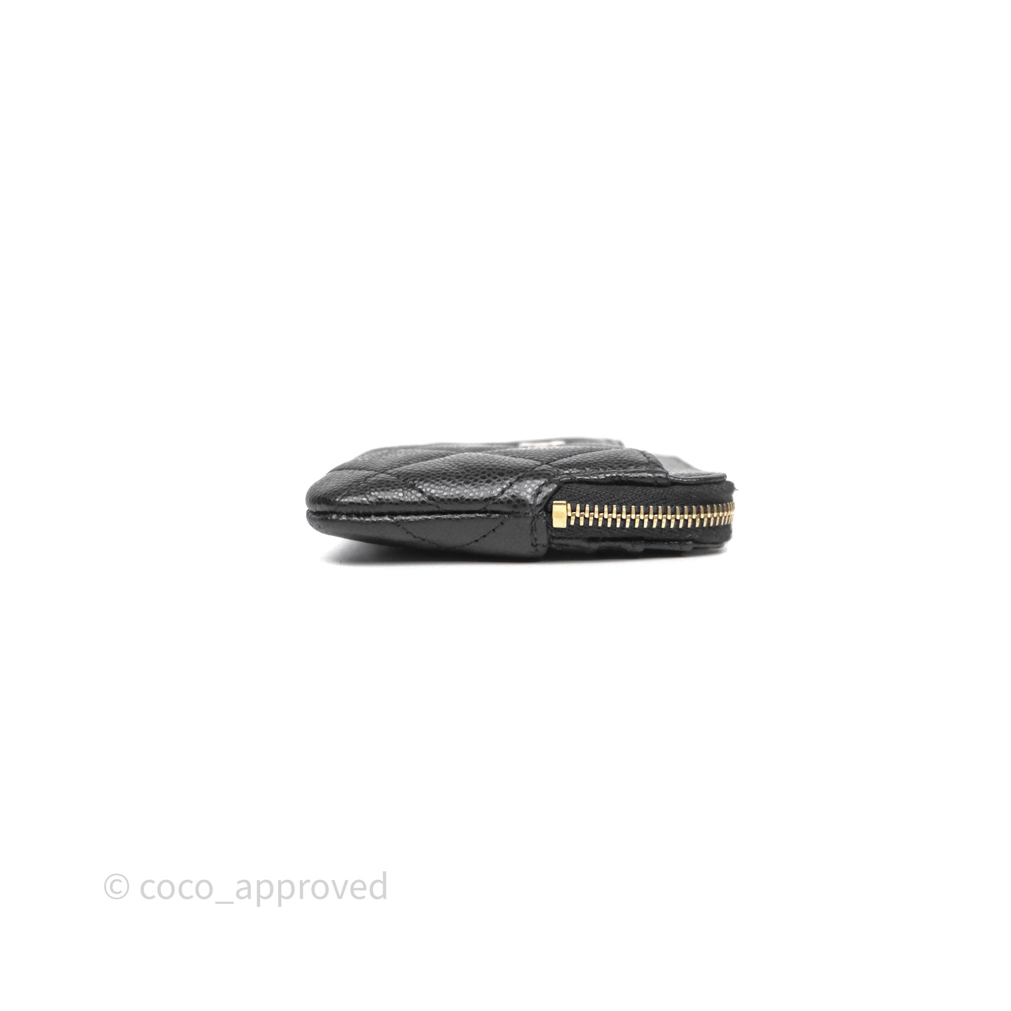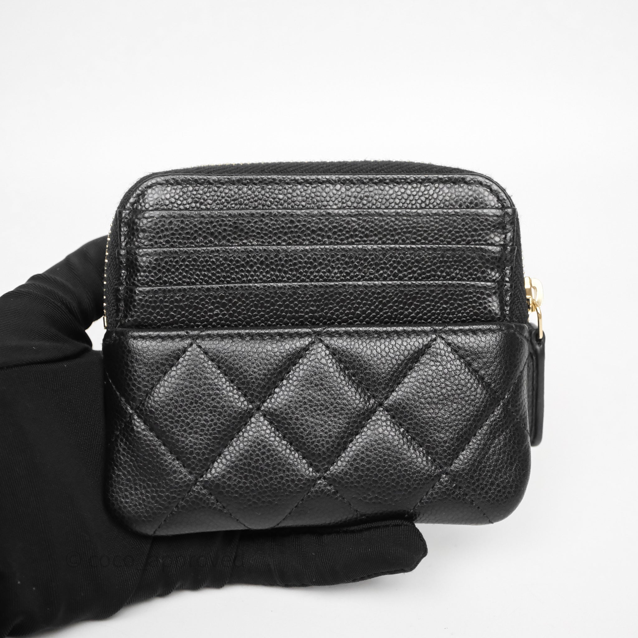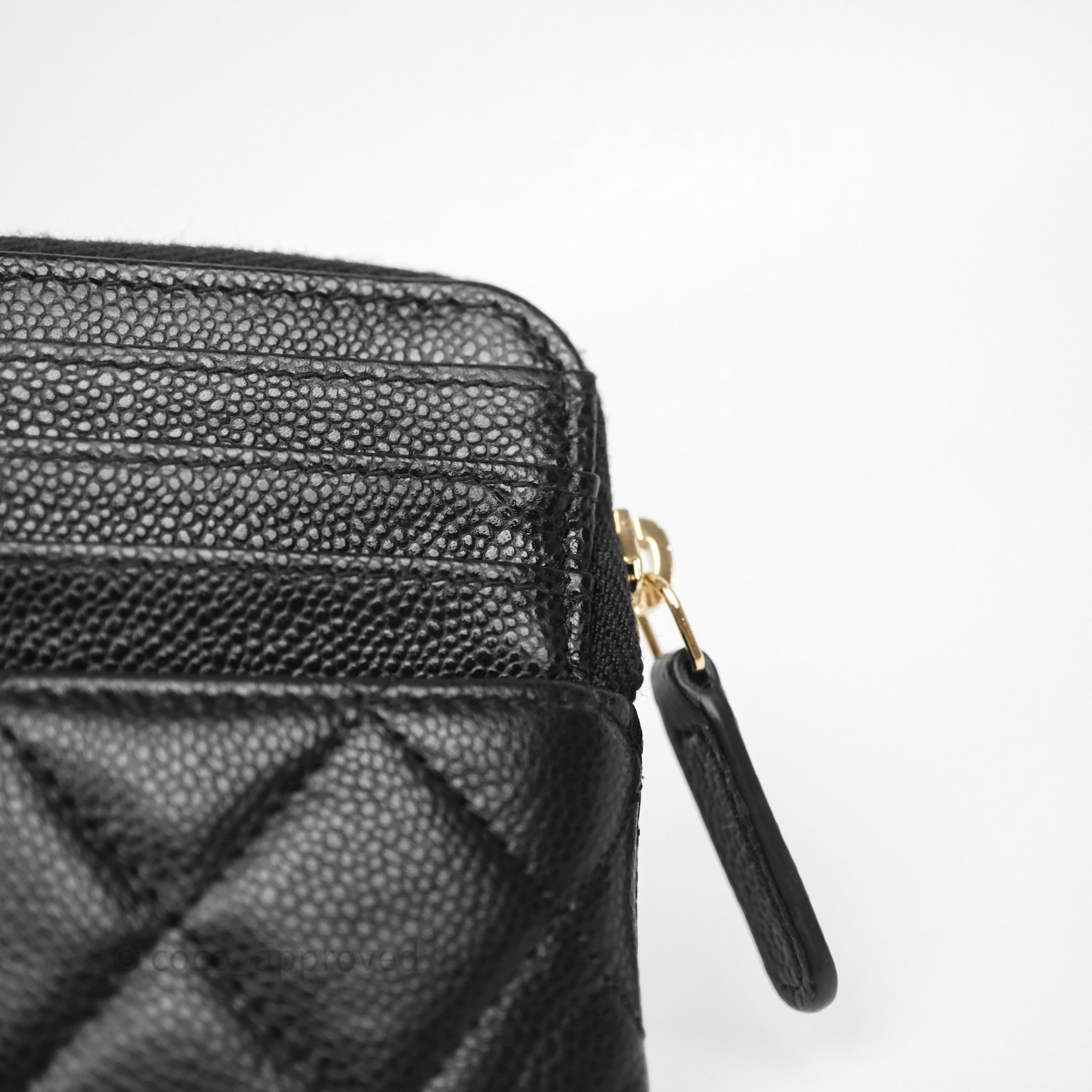 Chanel Quilted Classic Zip Card Holder Wallet Black Caviar Gold Hardware