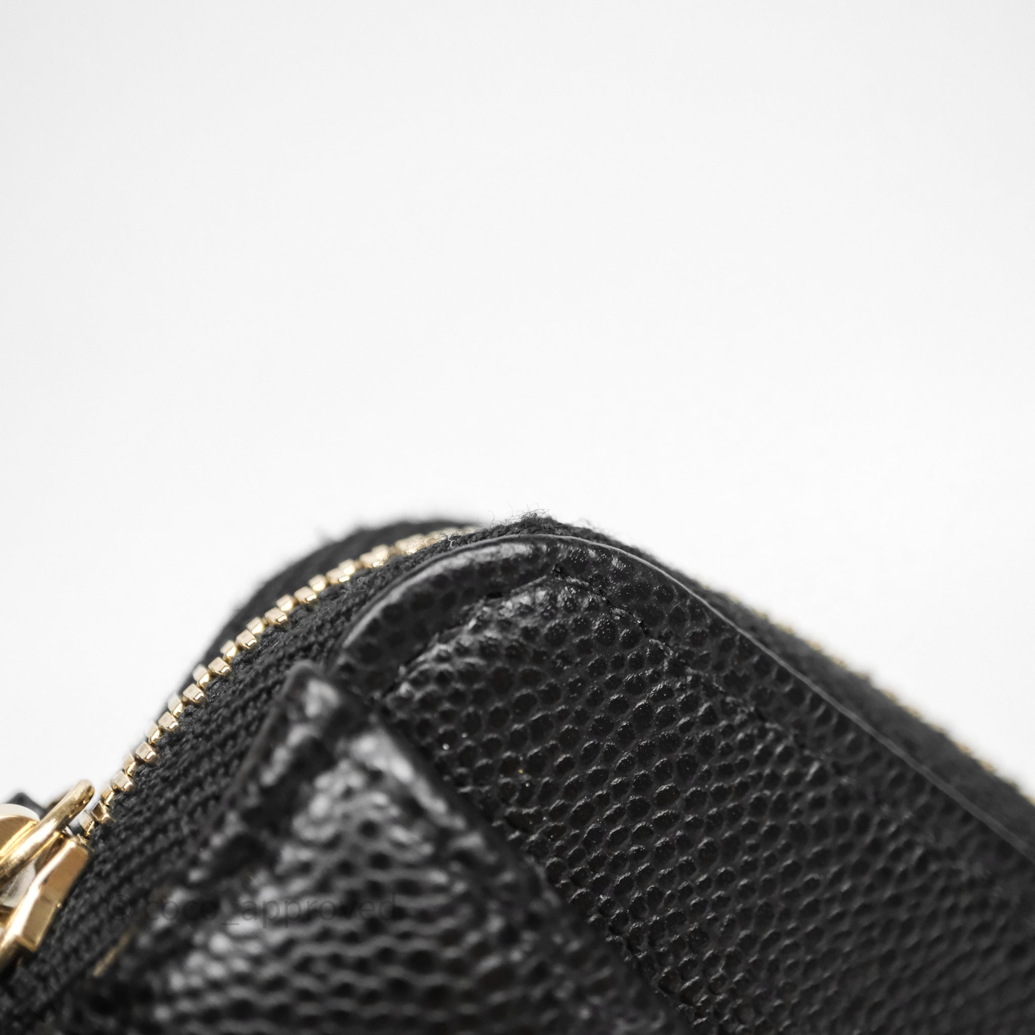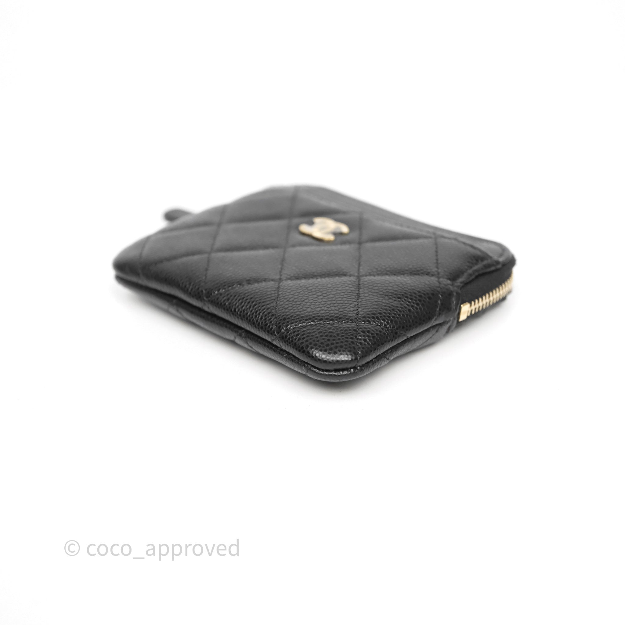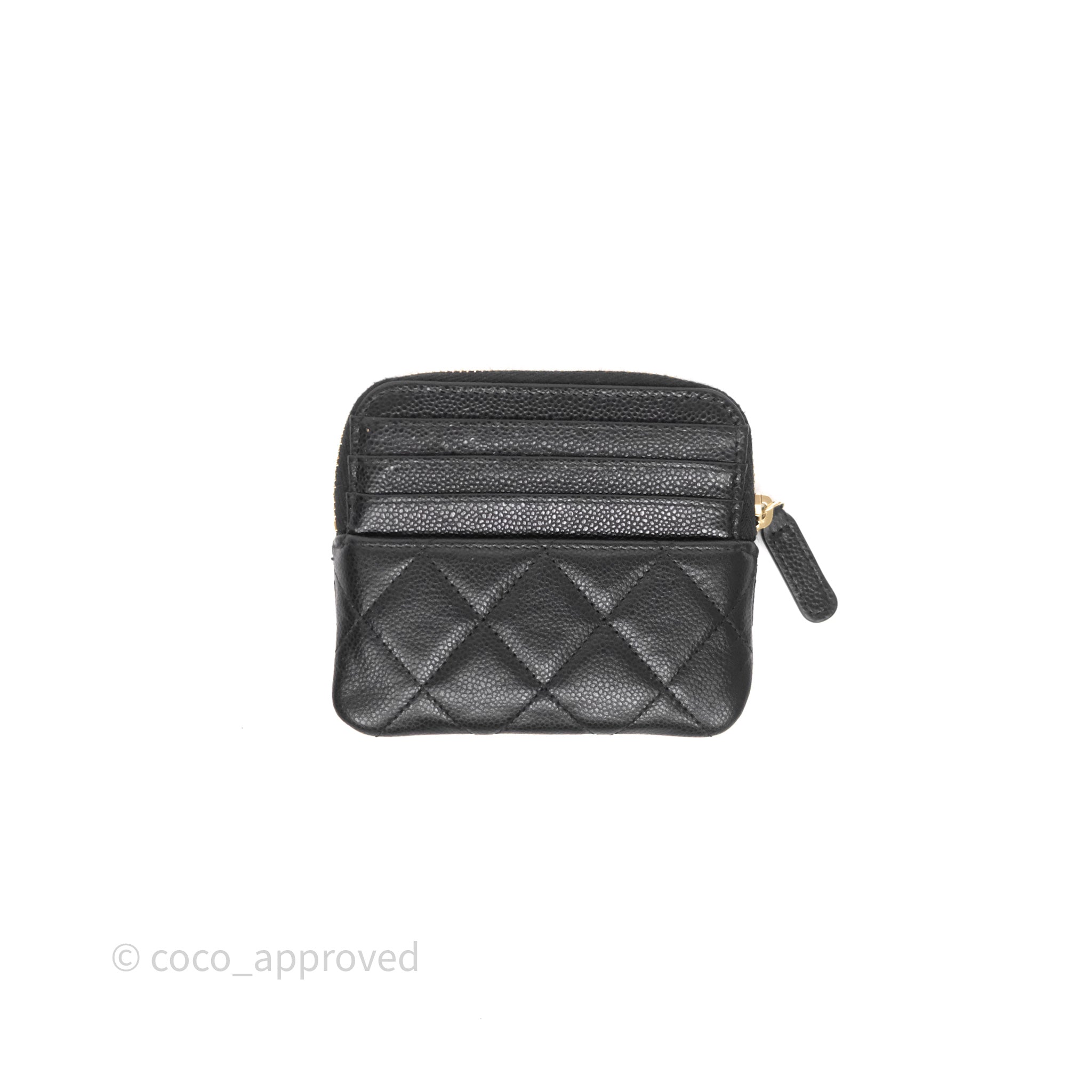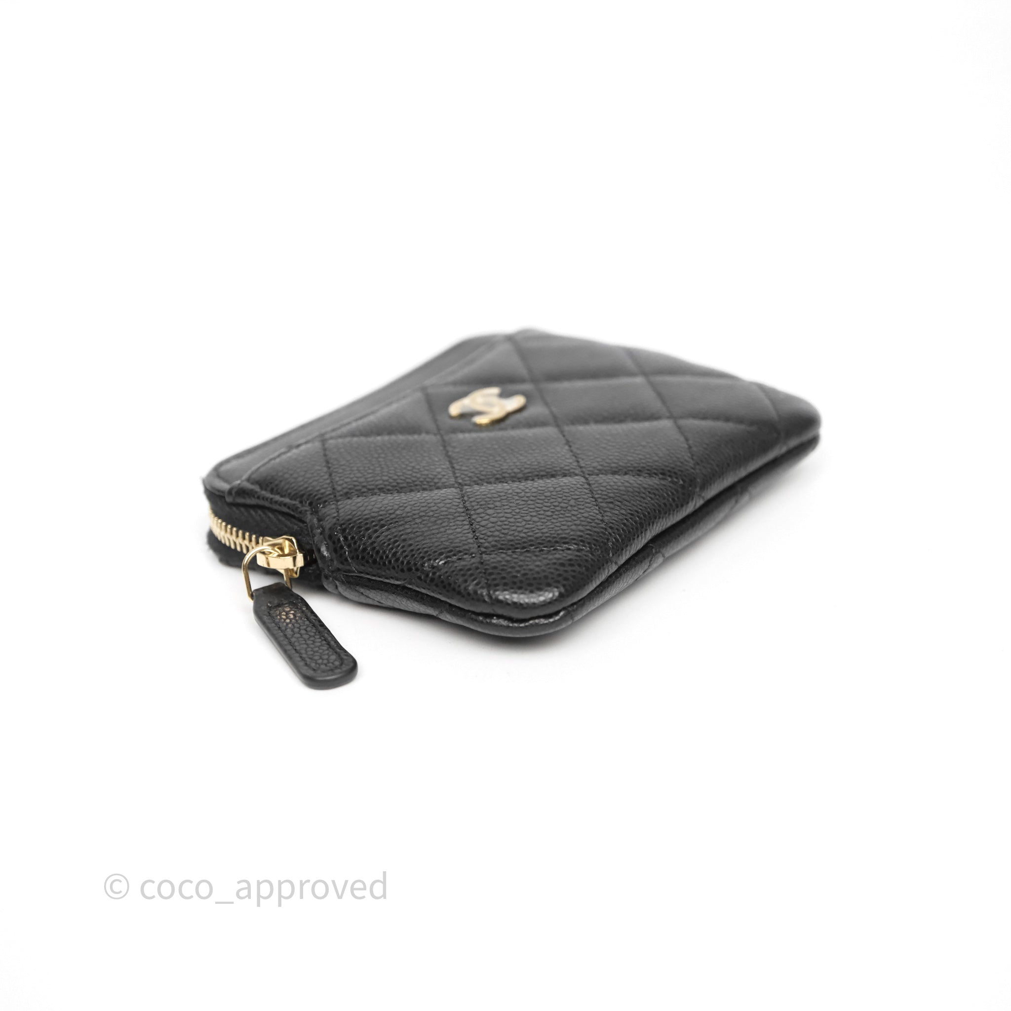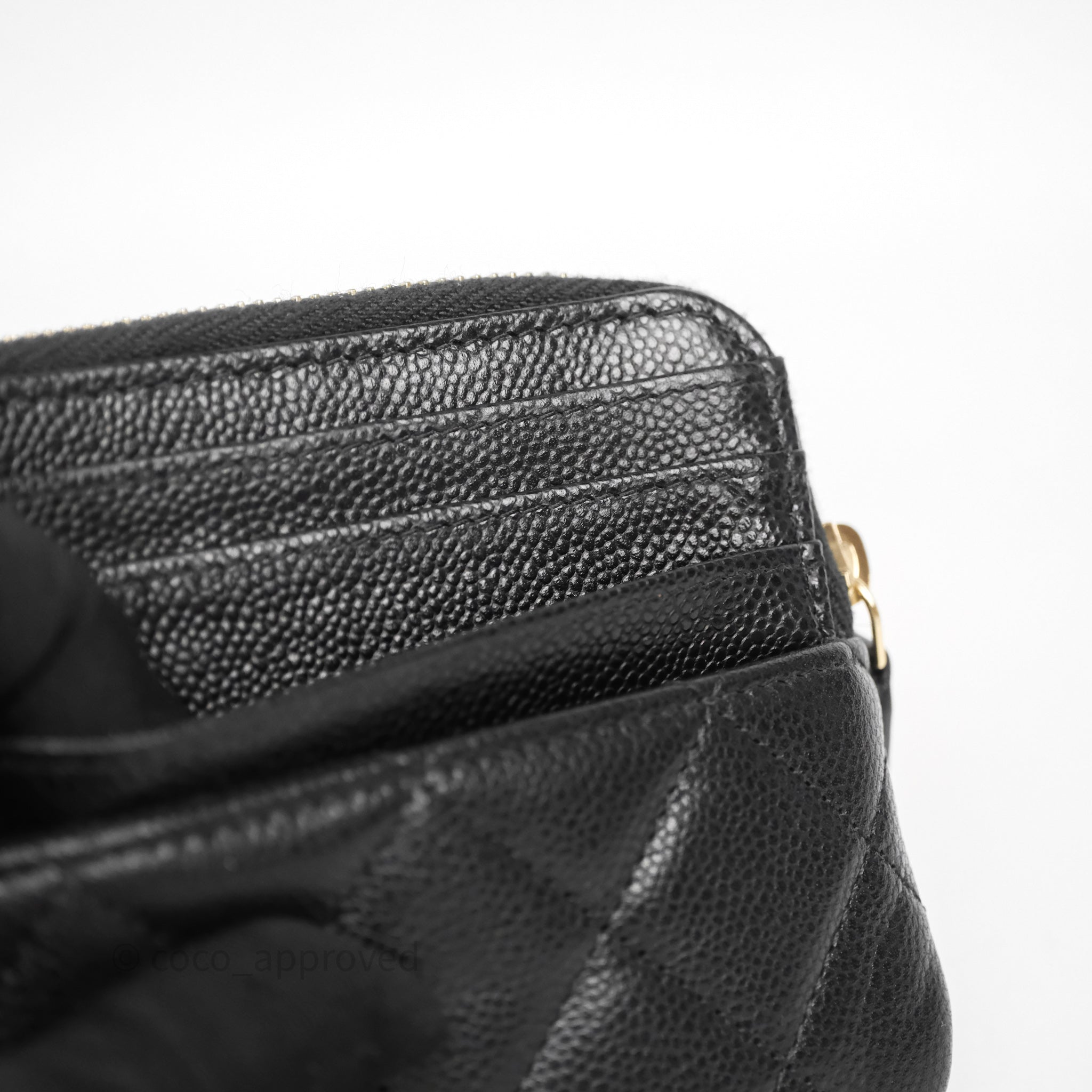 Chanel Quilted Classic Zip Card Holder Wallet Black Caviar Gold Hardware