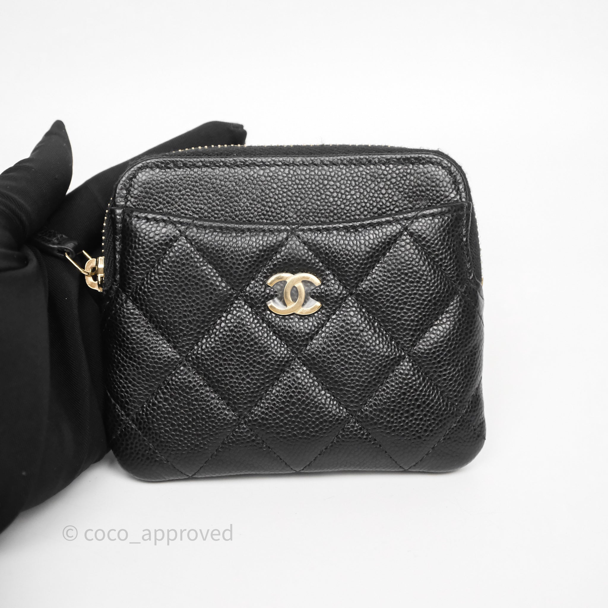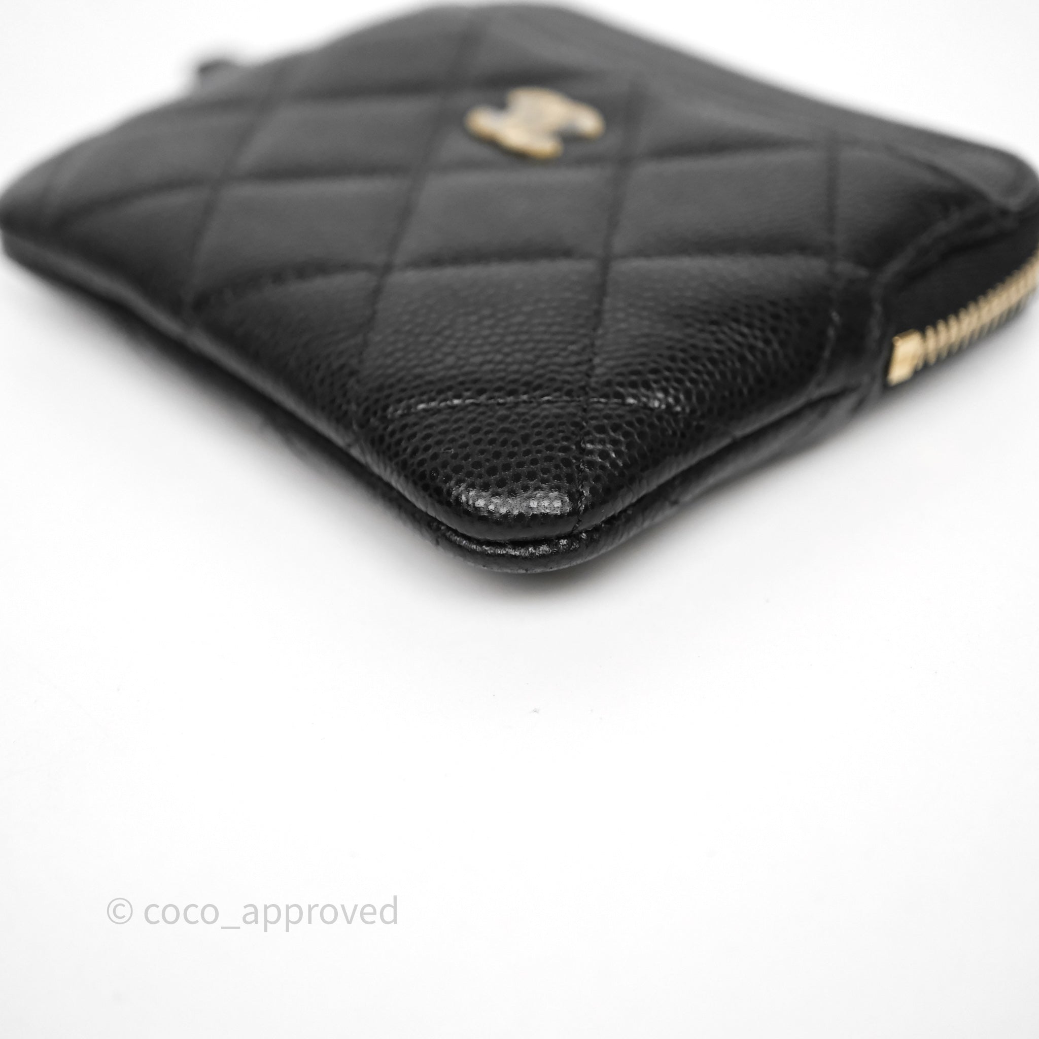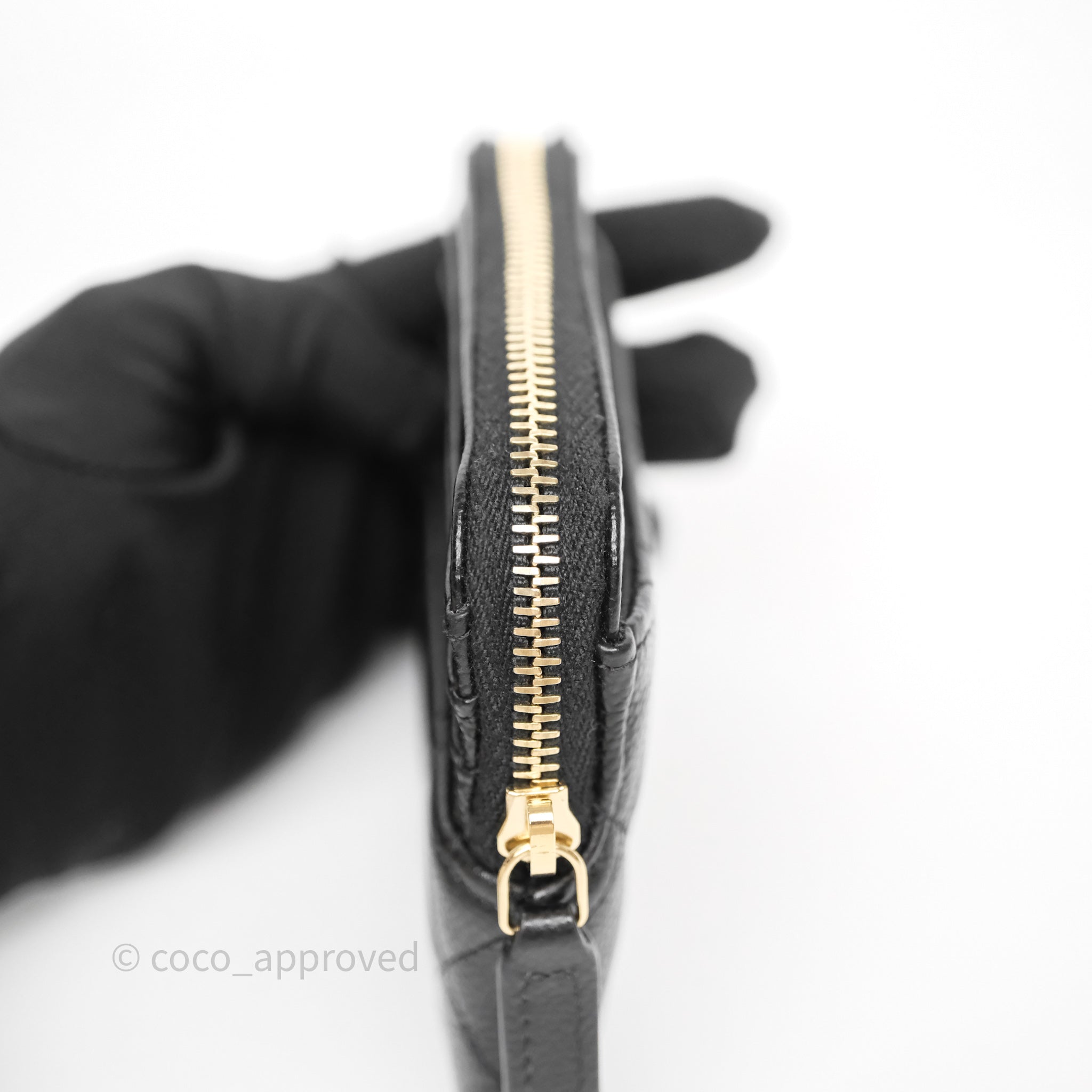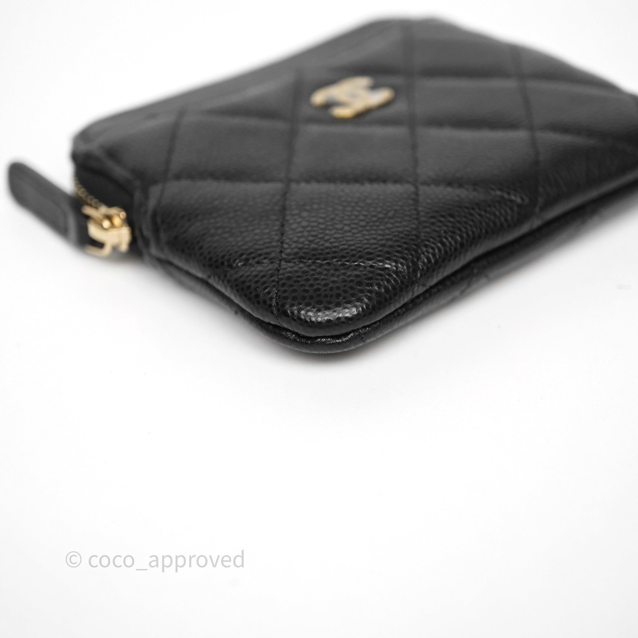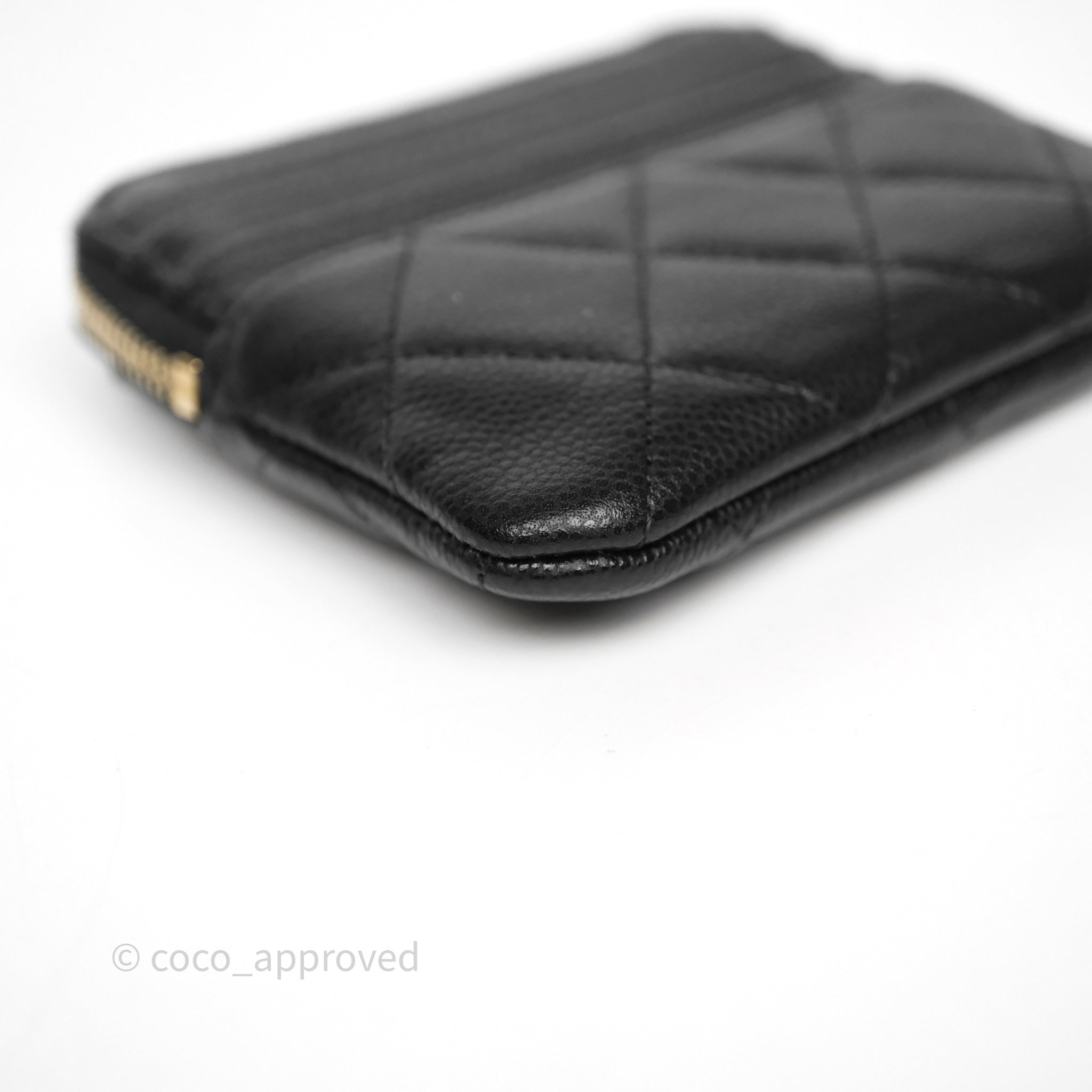 Chanel Quilted Classic Zip Card Holder Wallet Black Caviar Gold Hardware