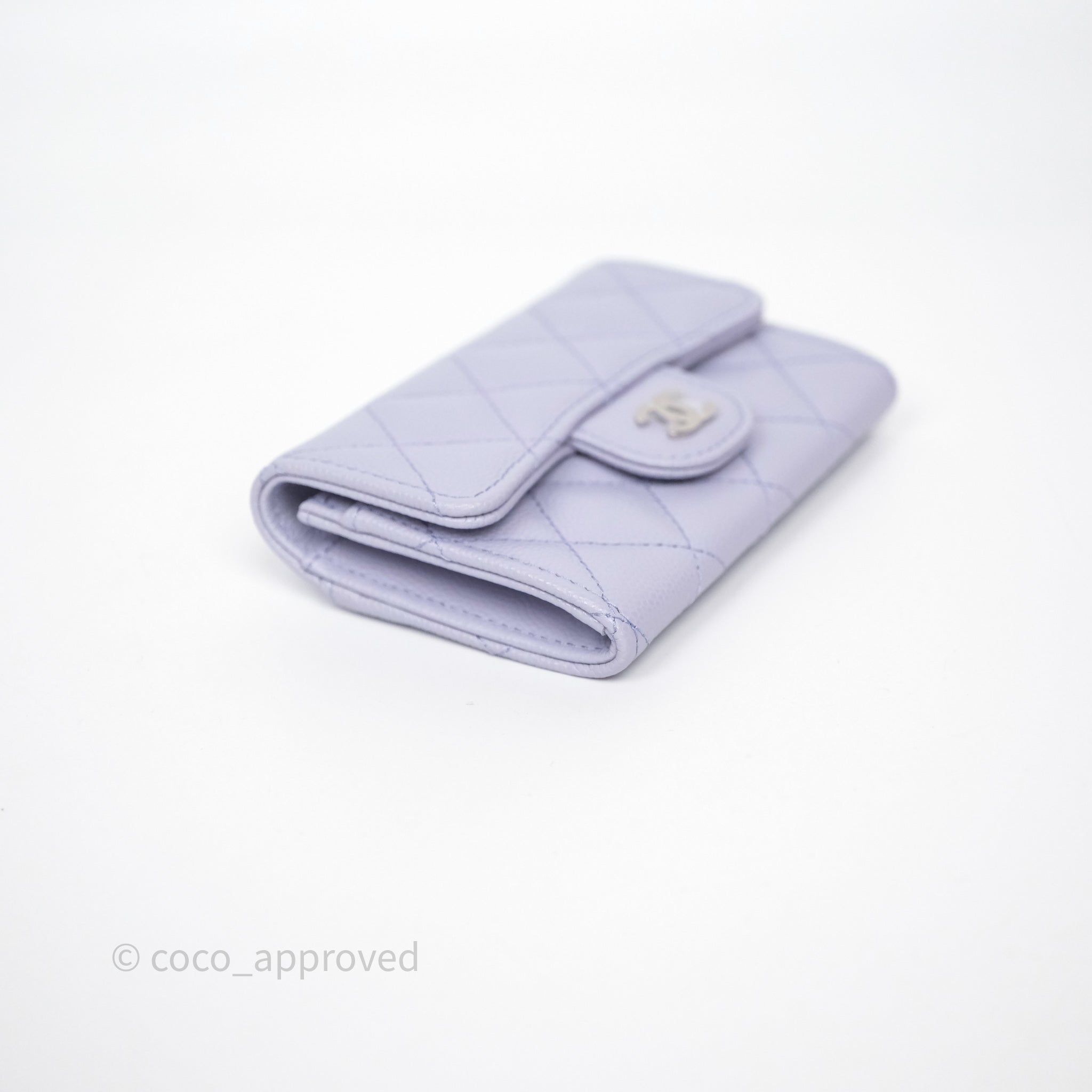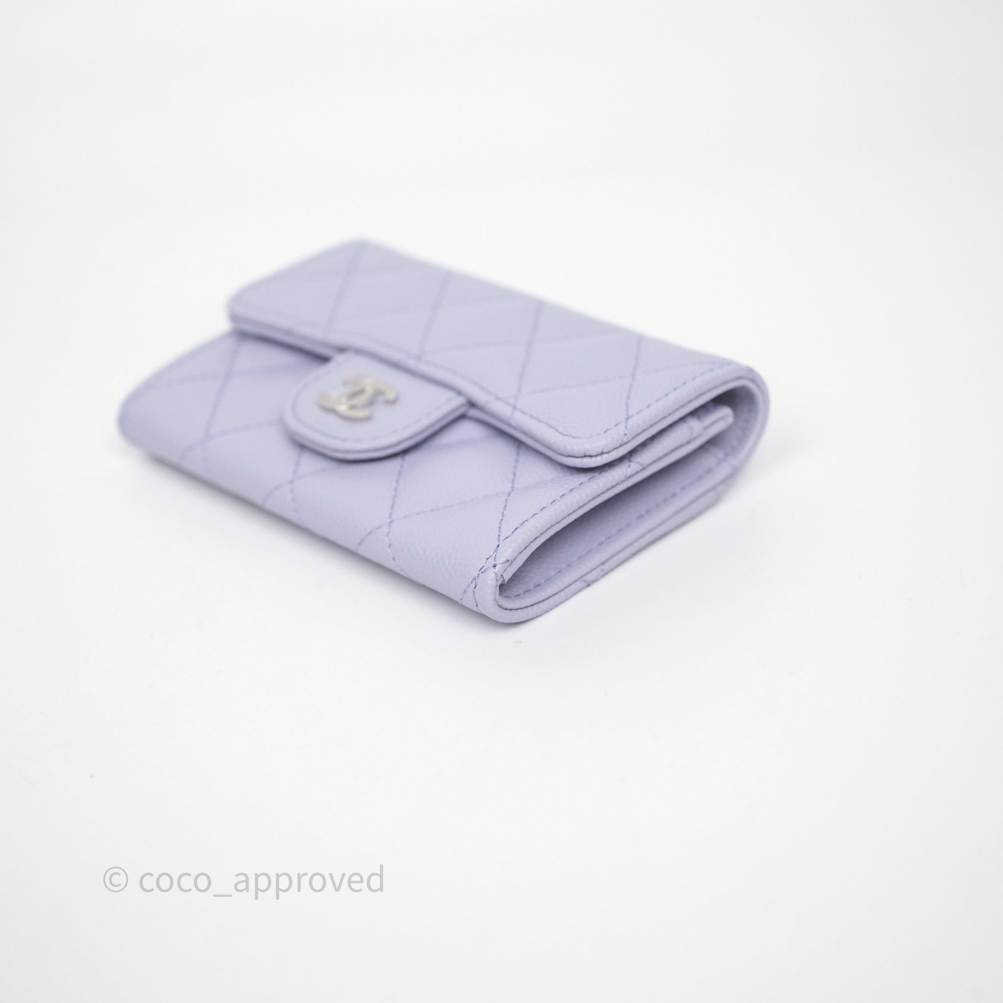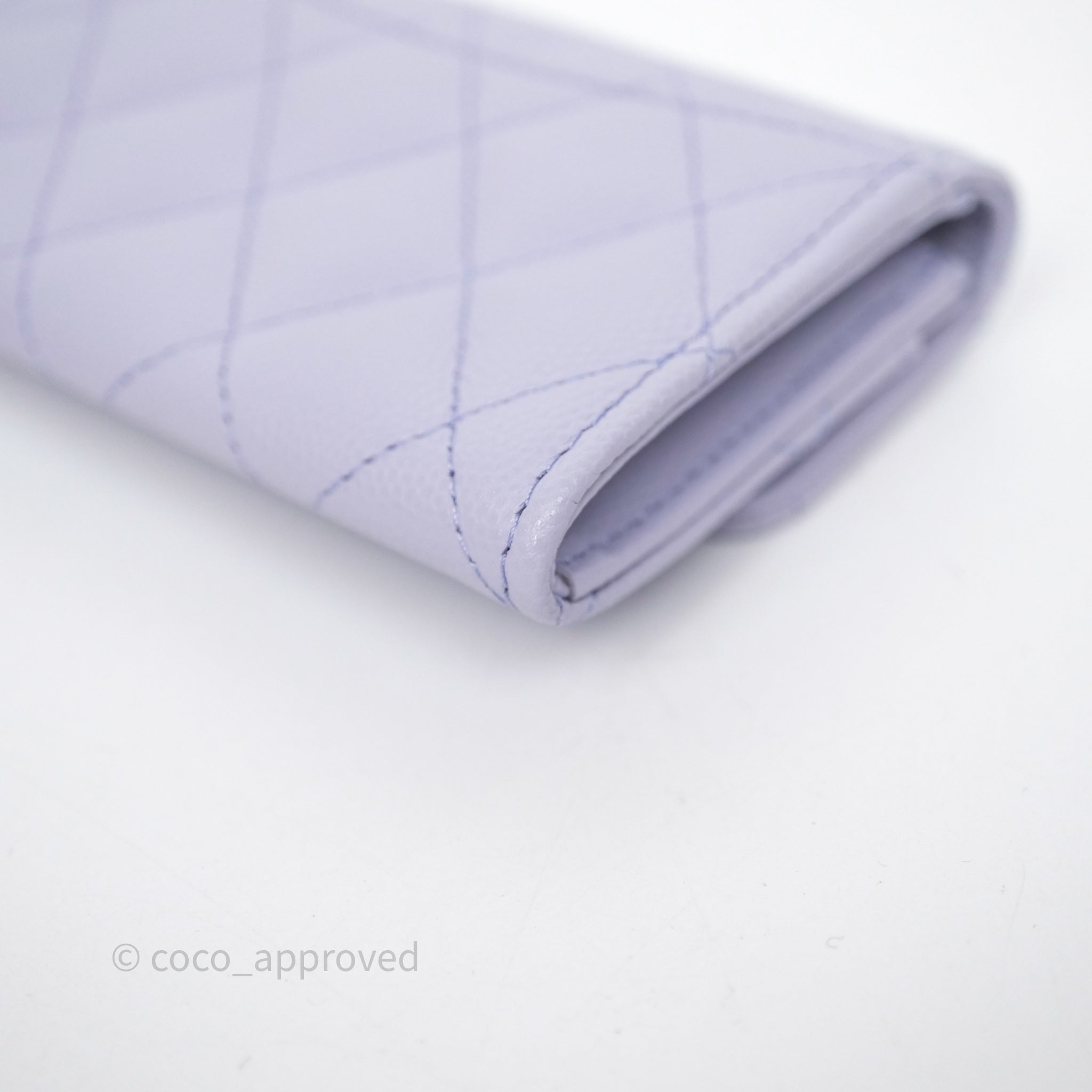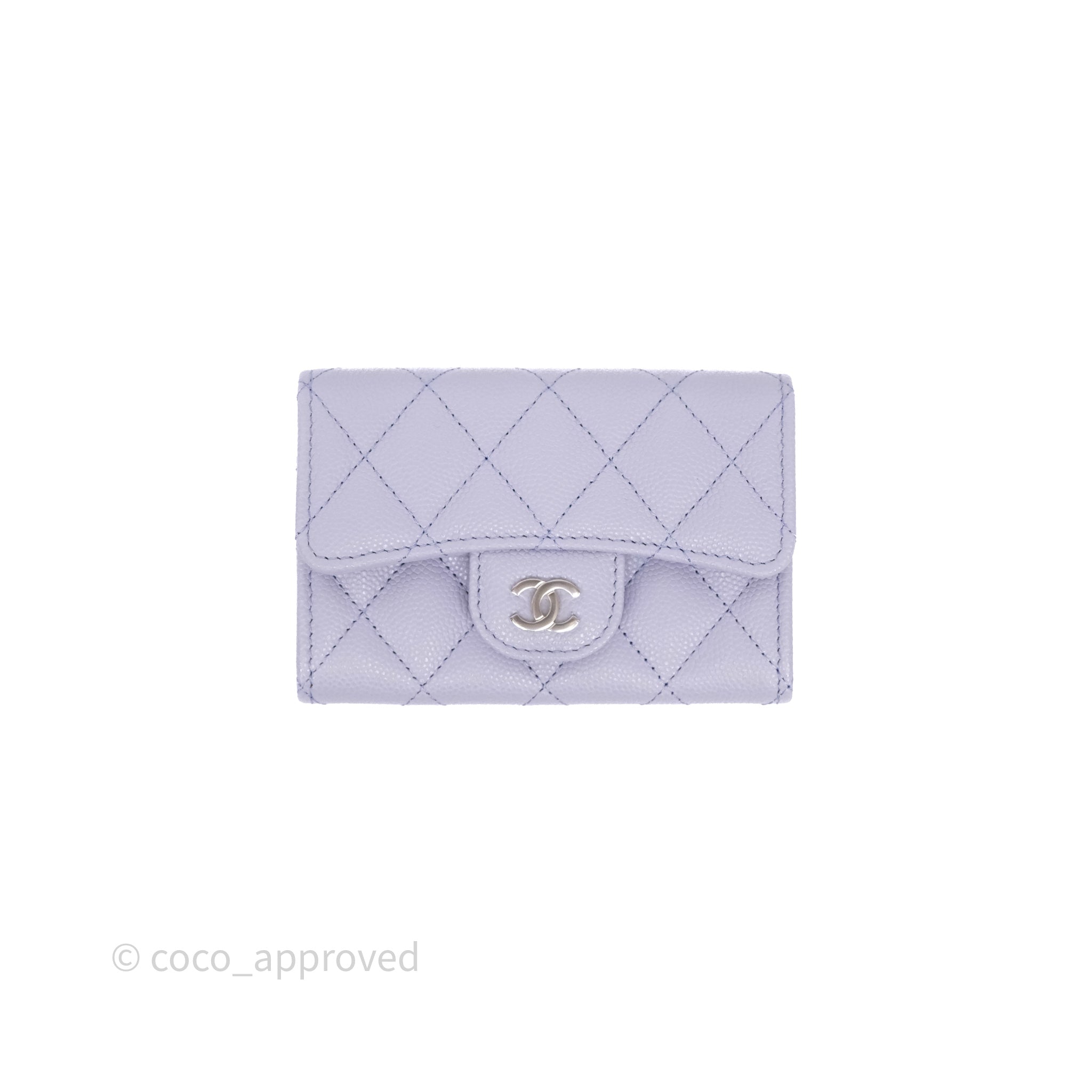 Chanel Quilted Flap Card Holder Lilac Caviar Silver Hardware