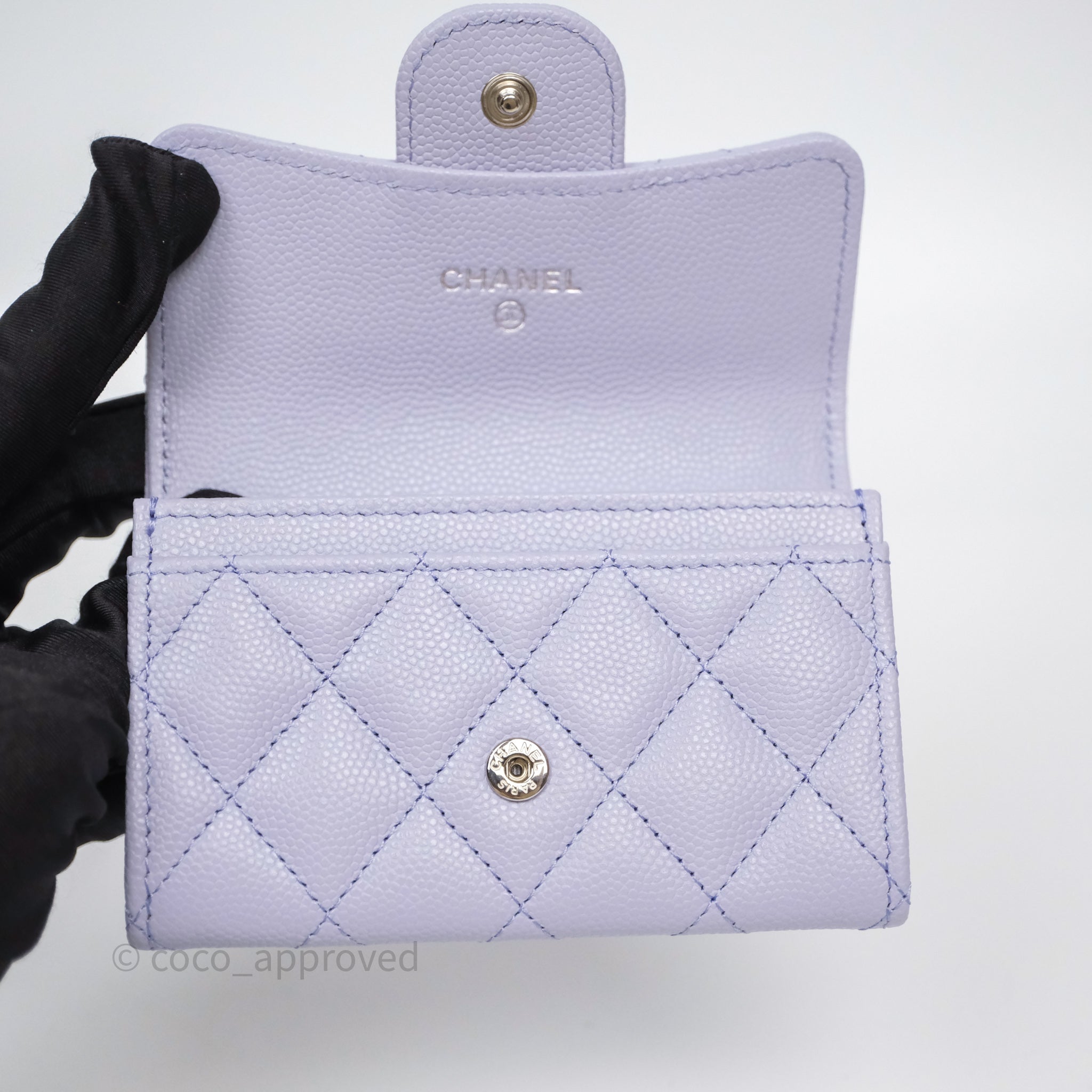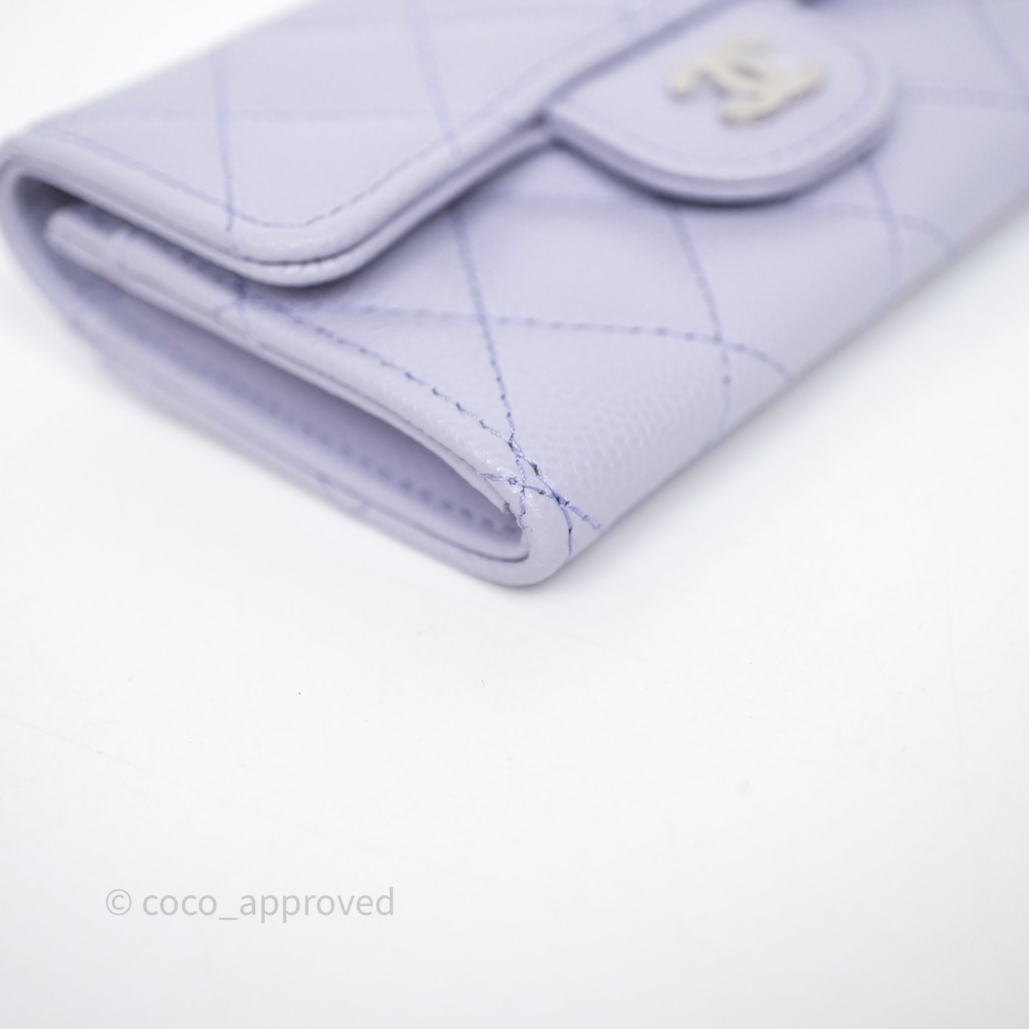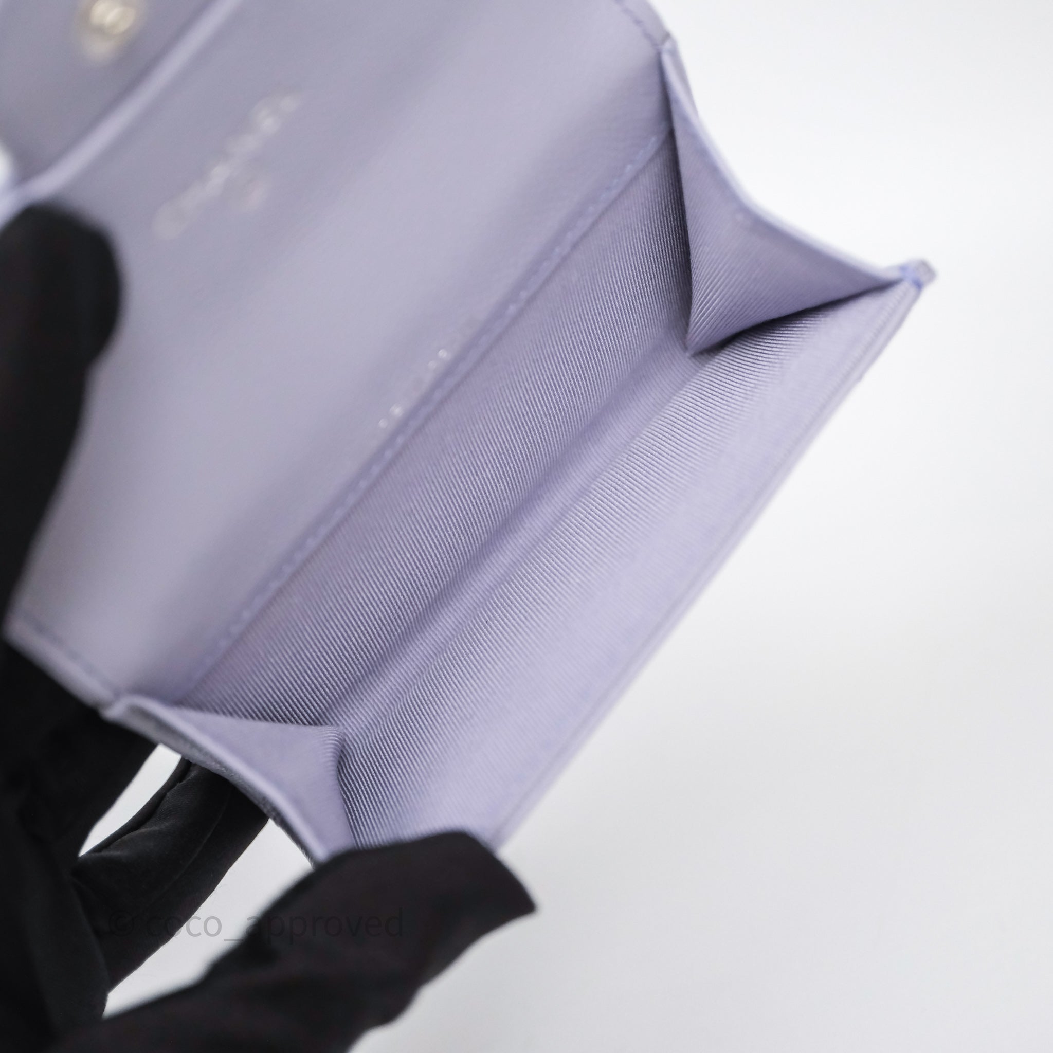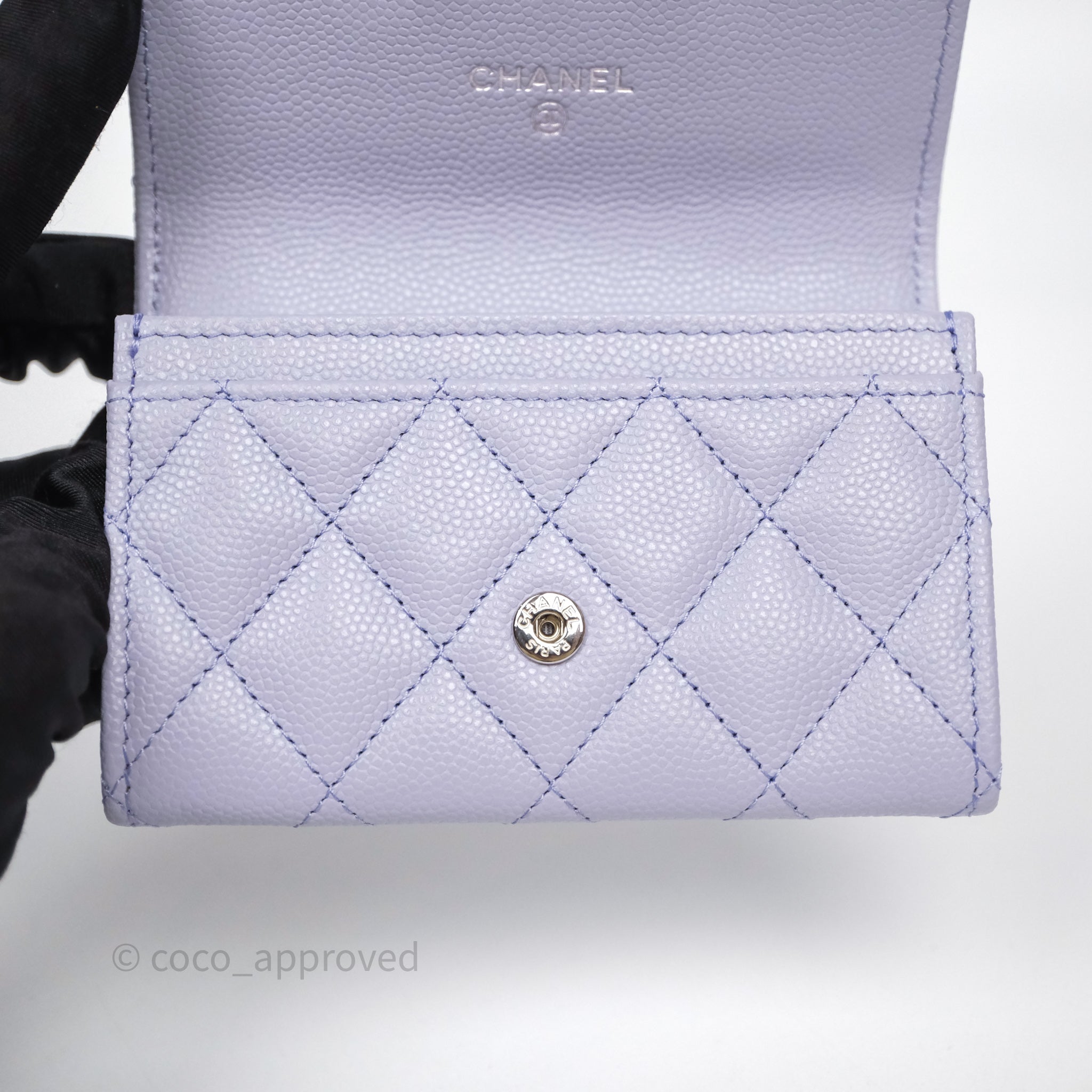Chanel Quilted Flap Card Holder Lilac Caviar Silver Hardware