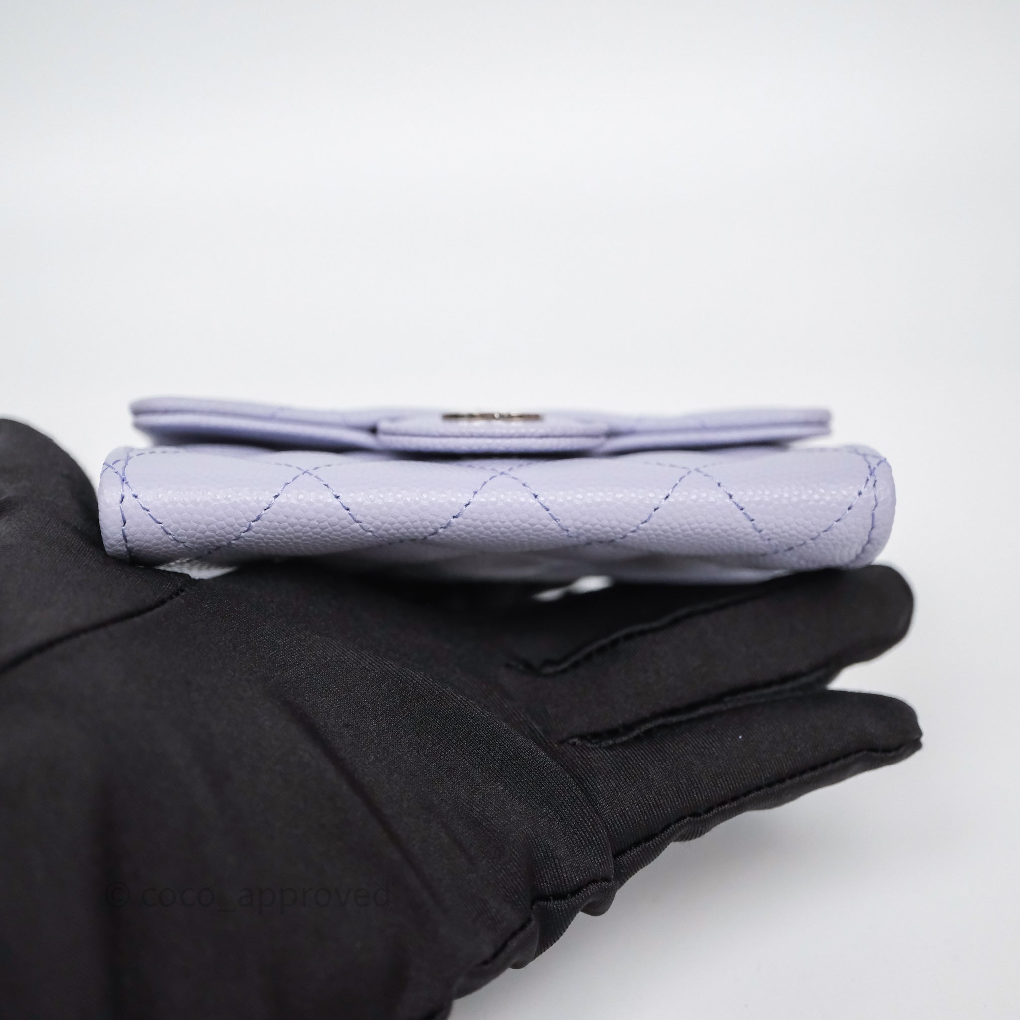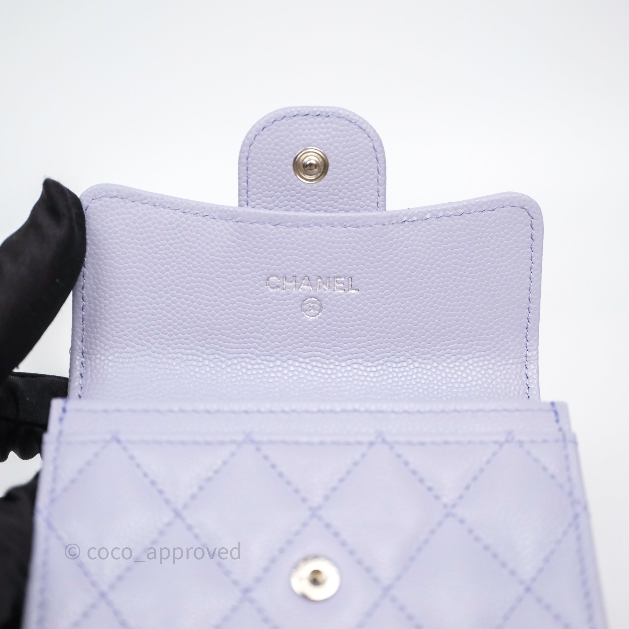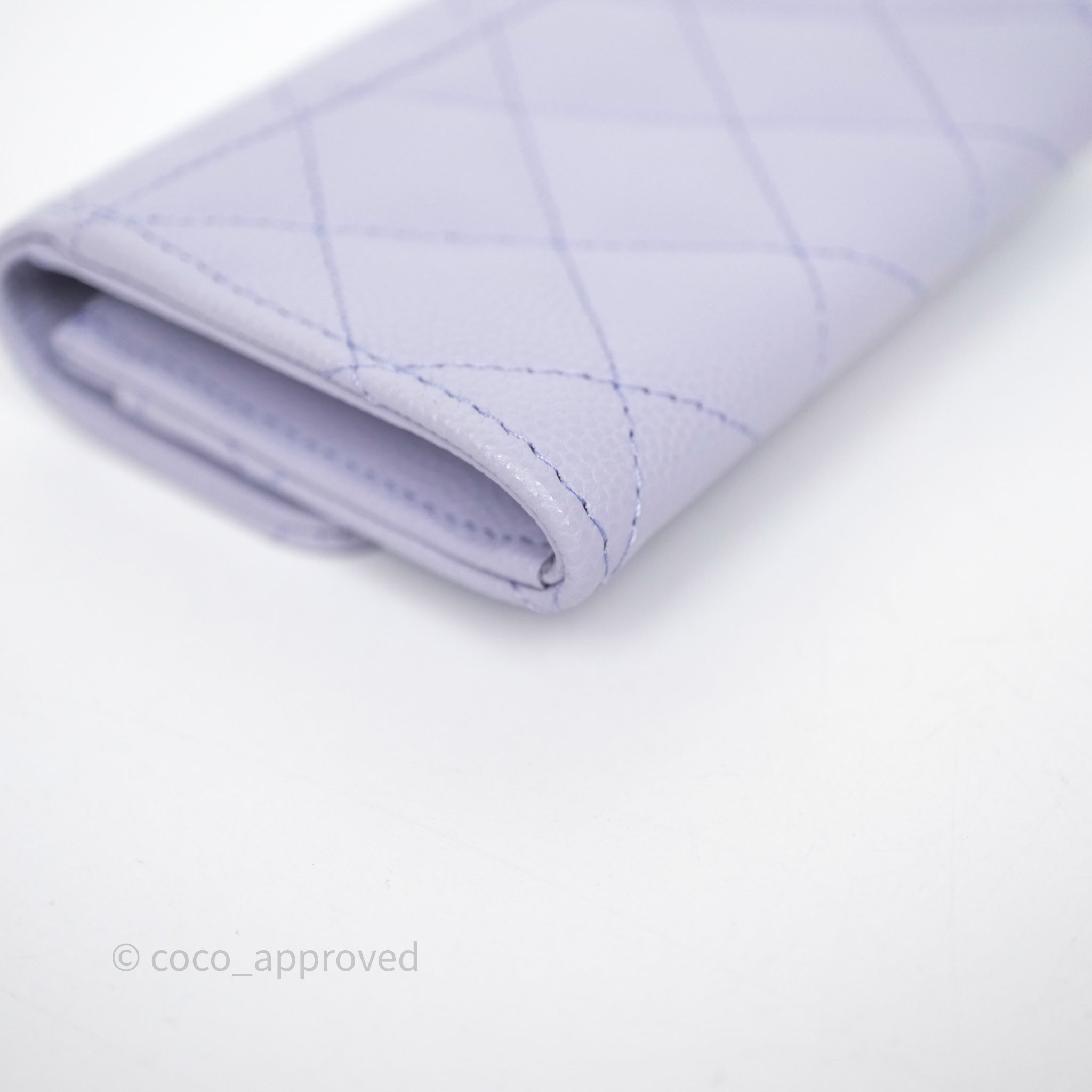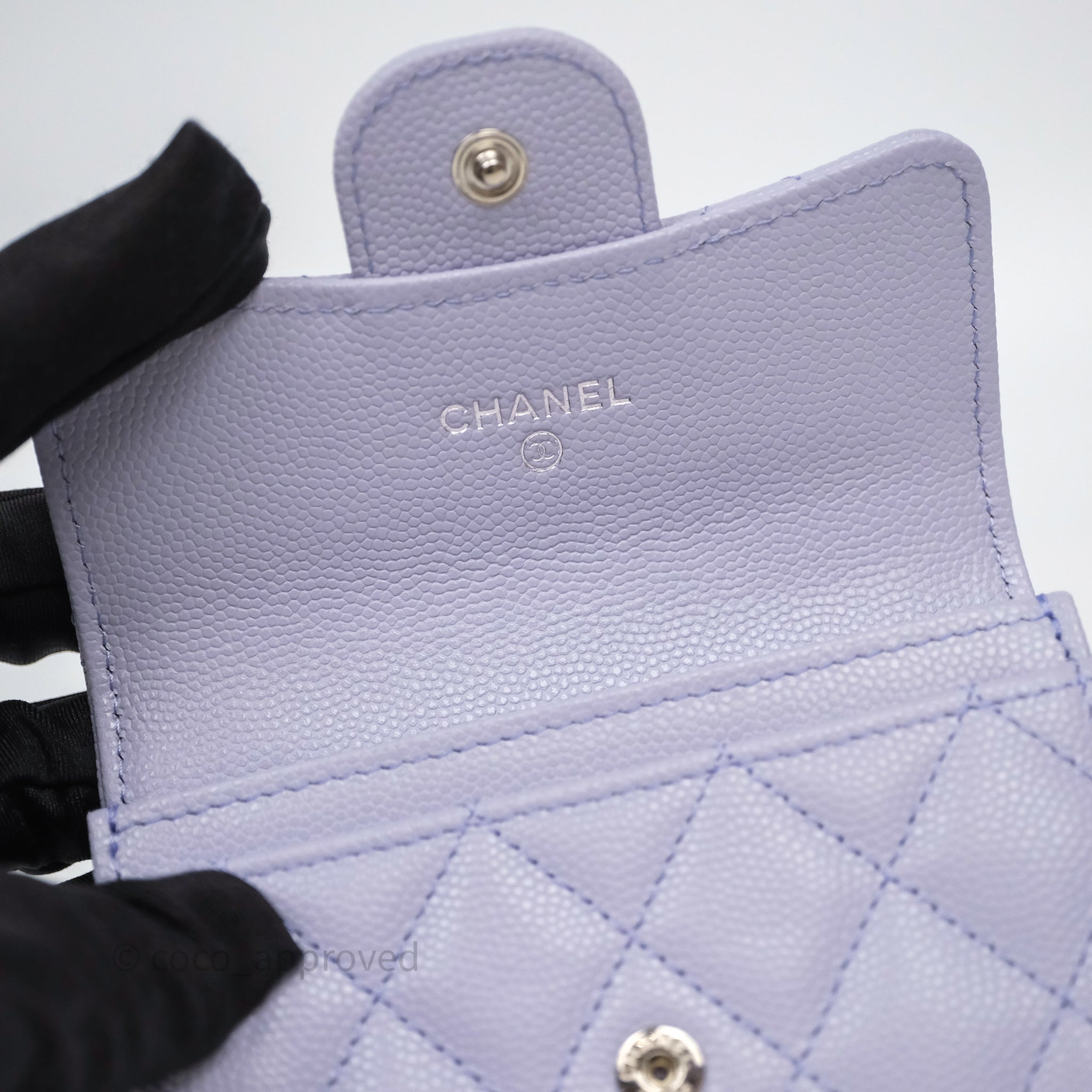 Chanel Quilted Flap Card Holder Lilac Caviar Silver Hardware