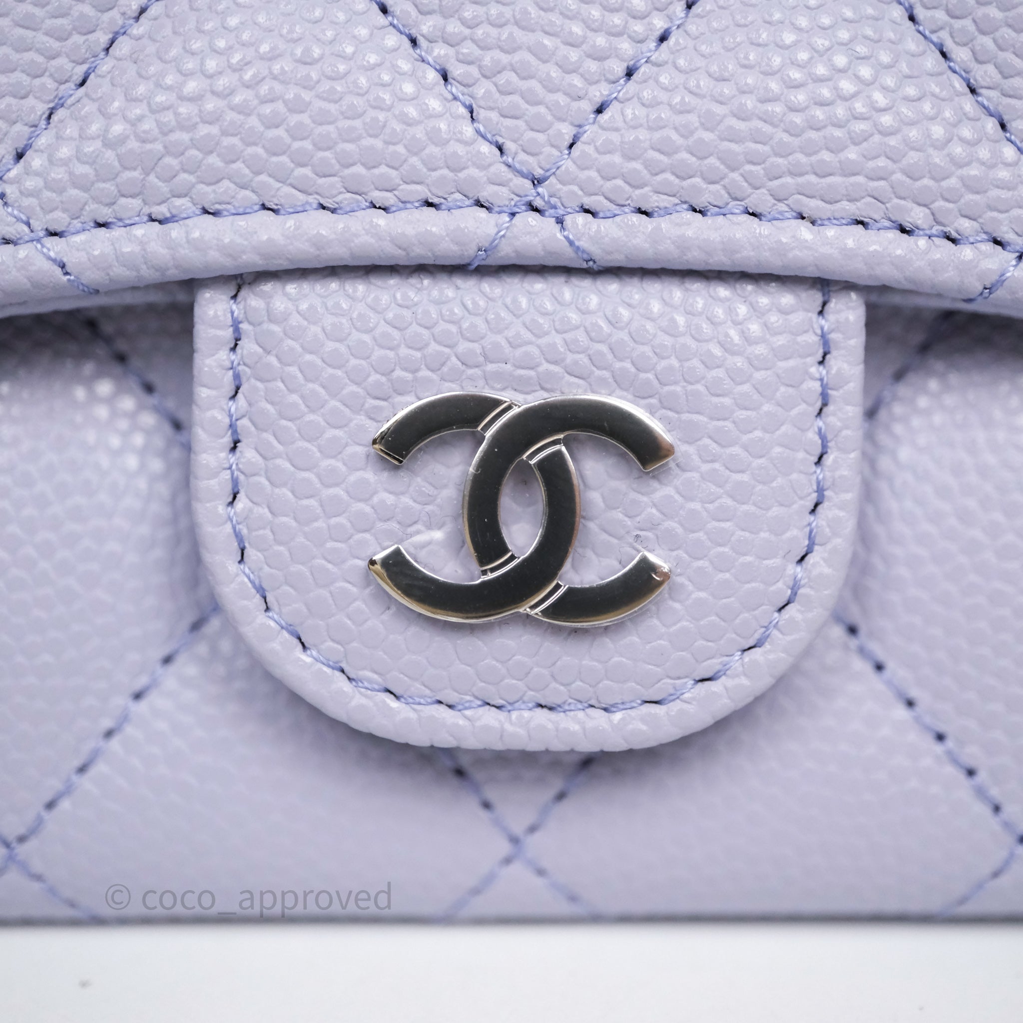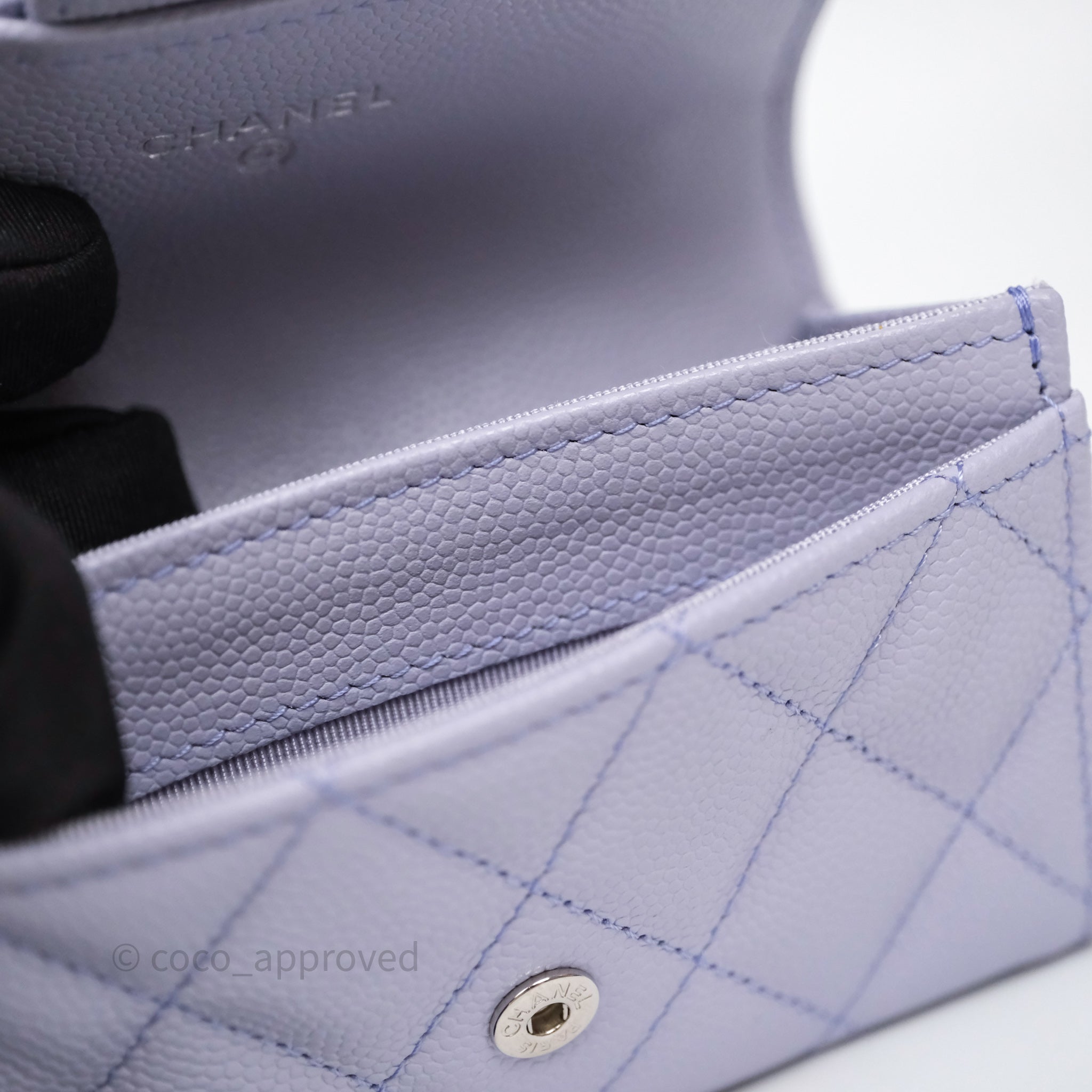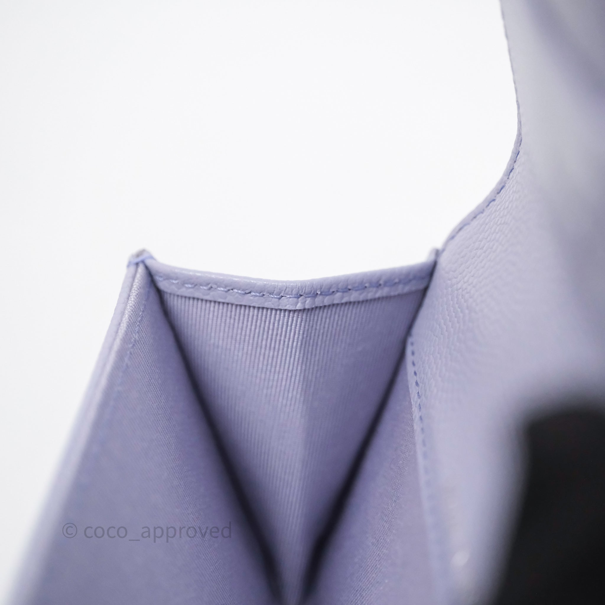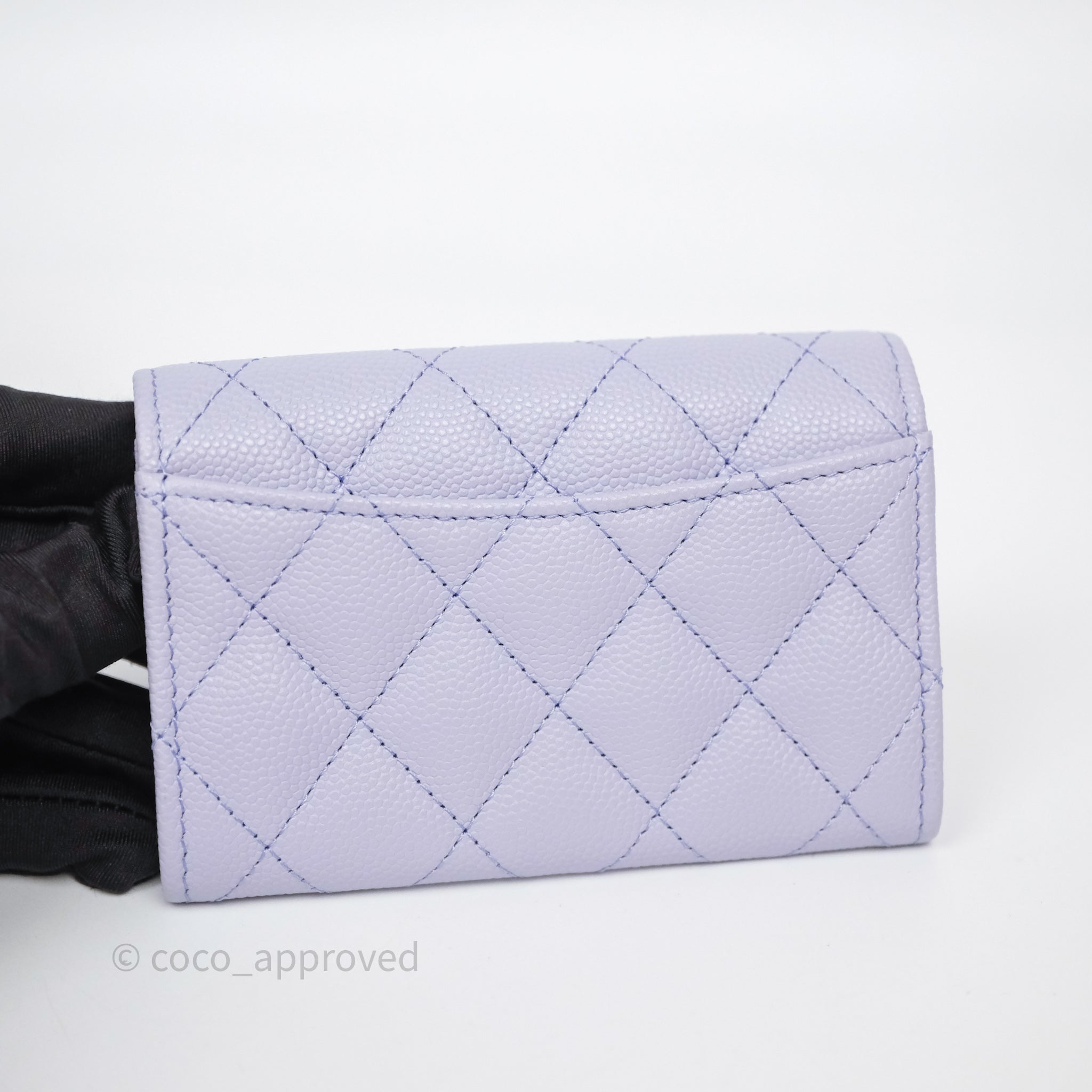 Chanel Quilted Flap Card Holder Lilac Caviar Silver Hardware