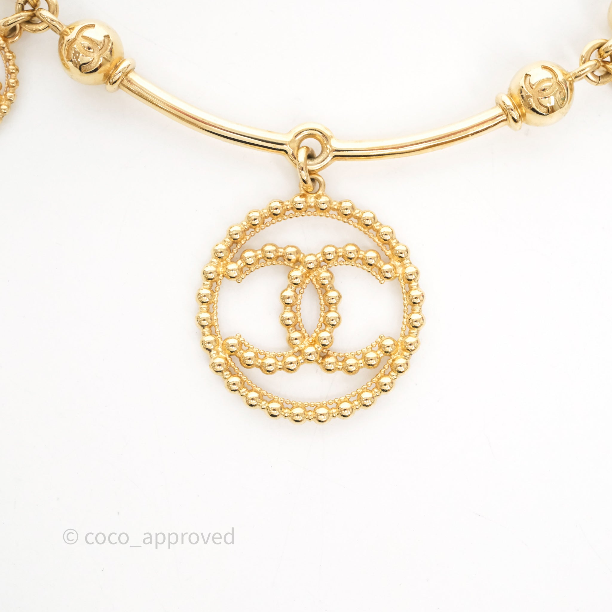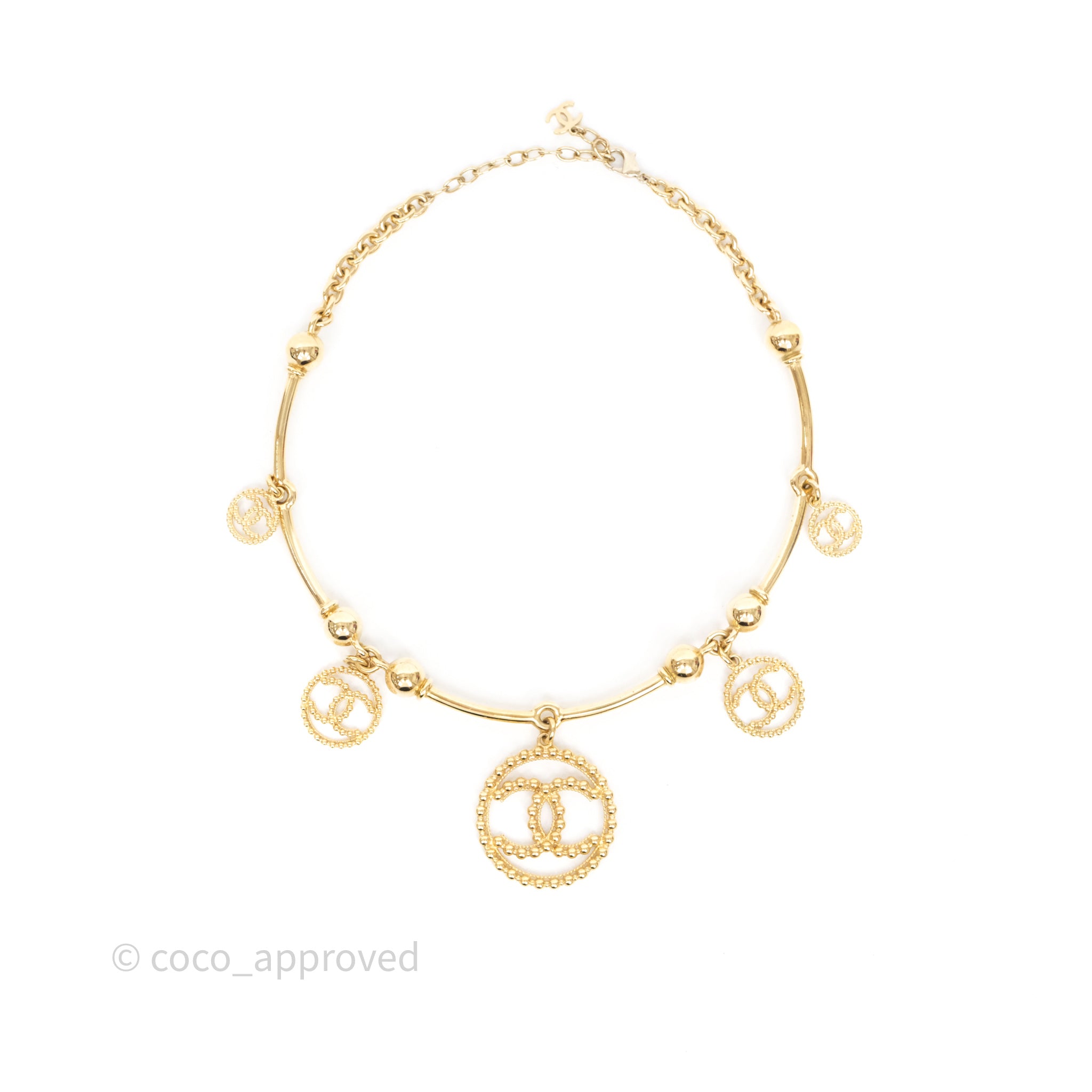 Chanel Round CC Necklace Gold Tone 22C