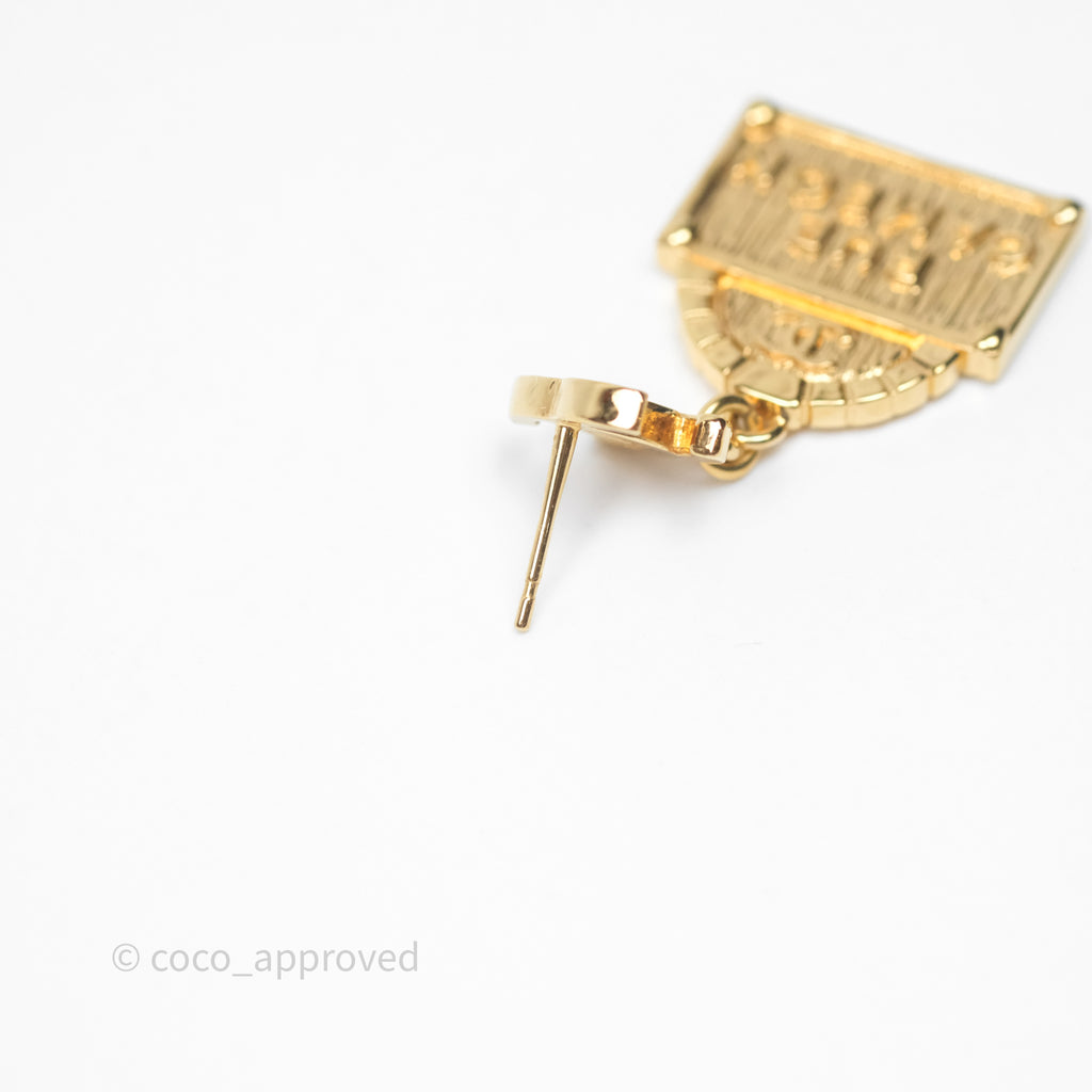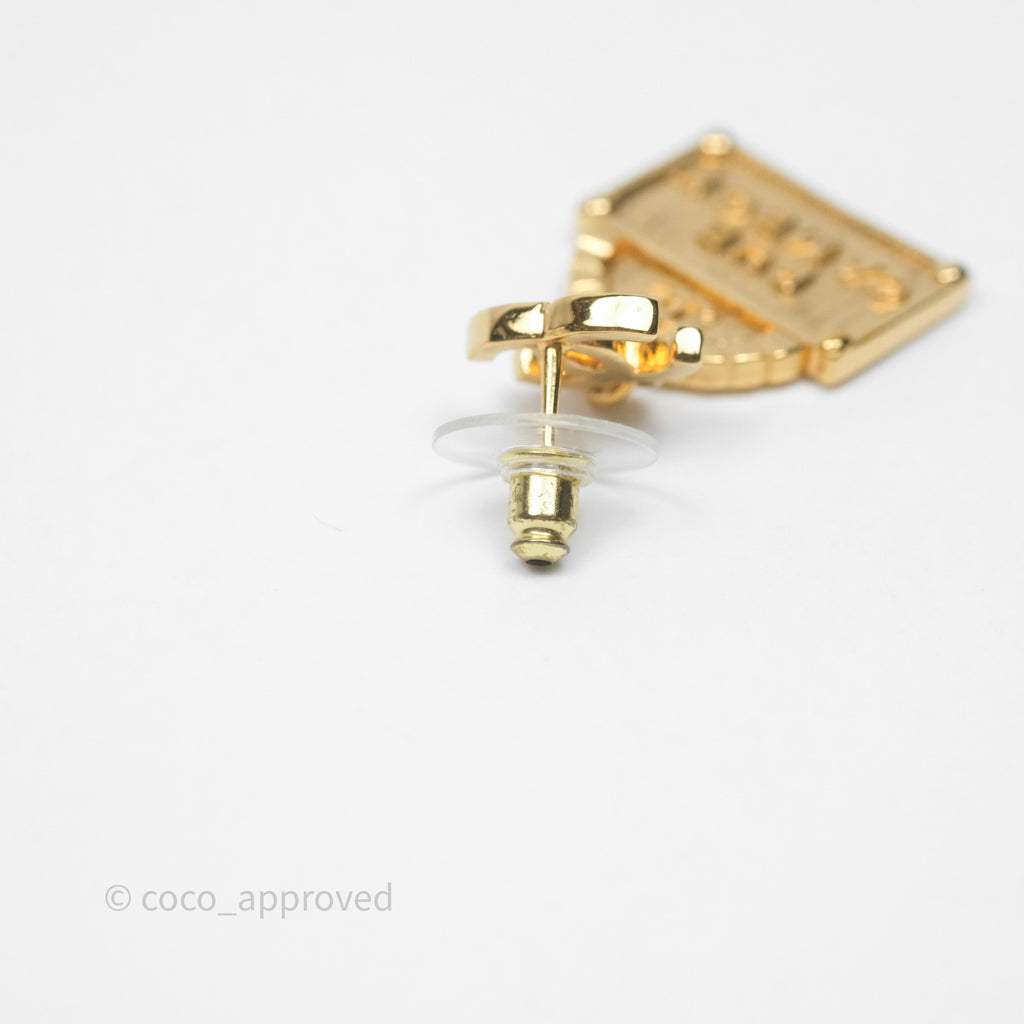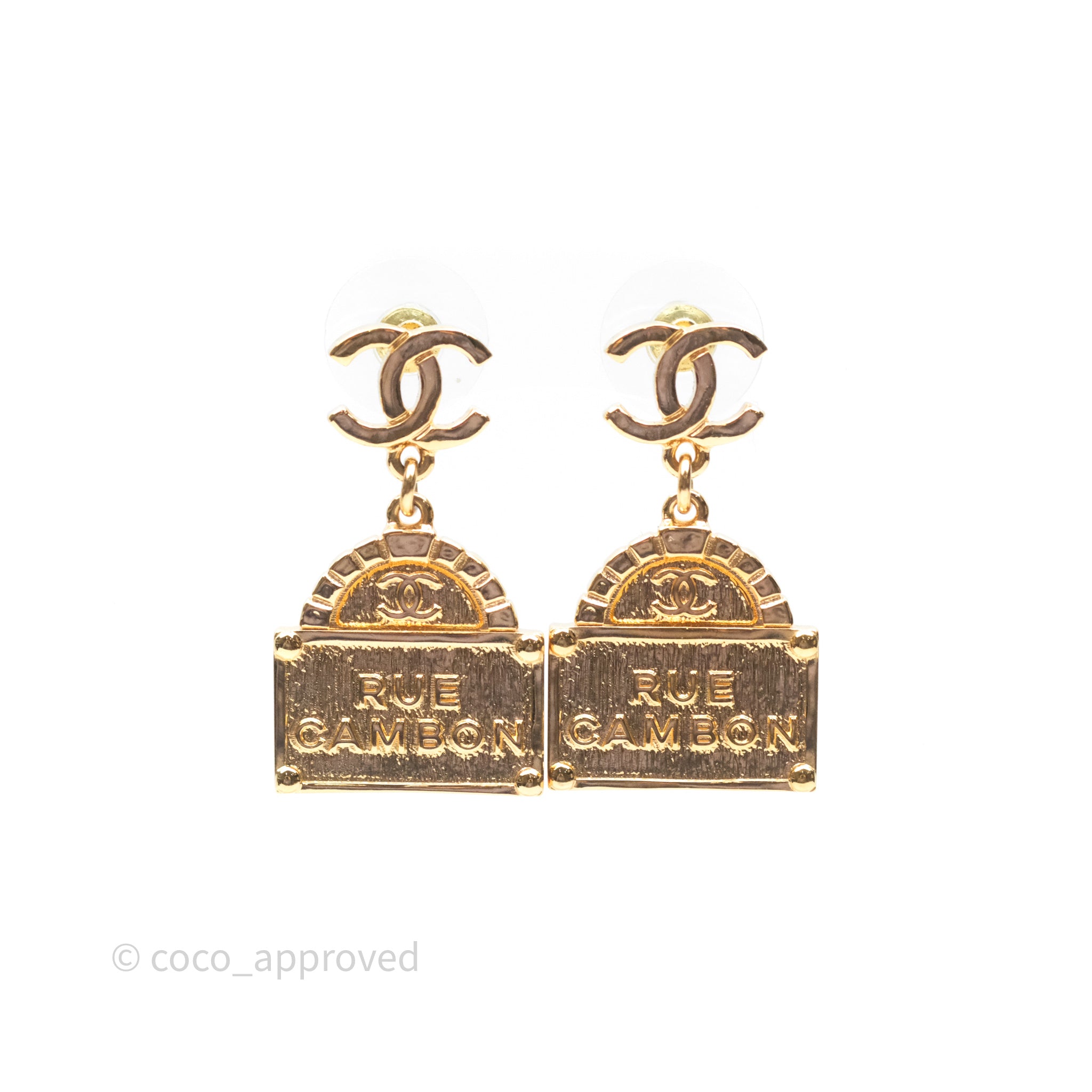 Chanel Rue Cambon CC Drop Earrings Gold Tone 22A