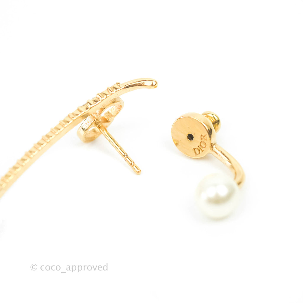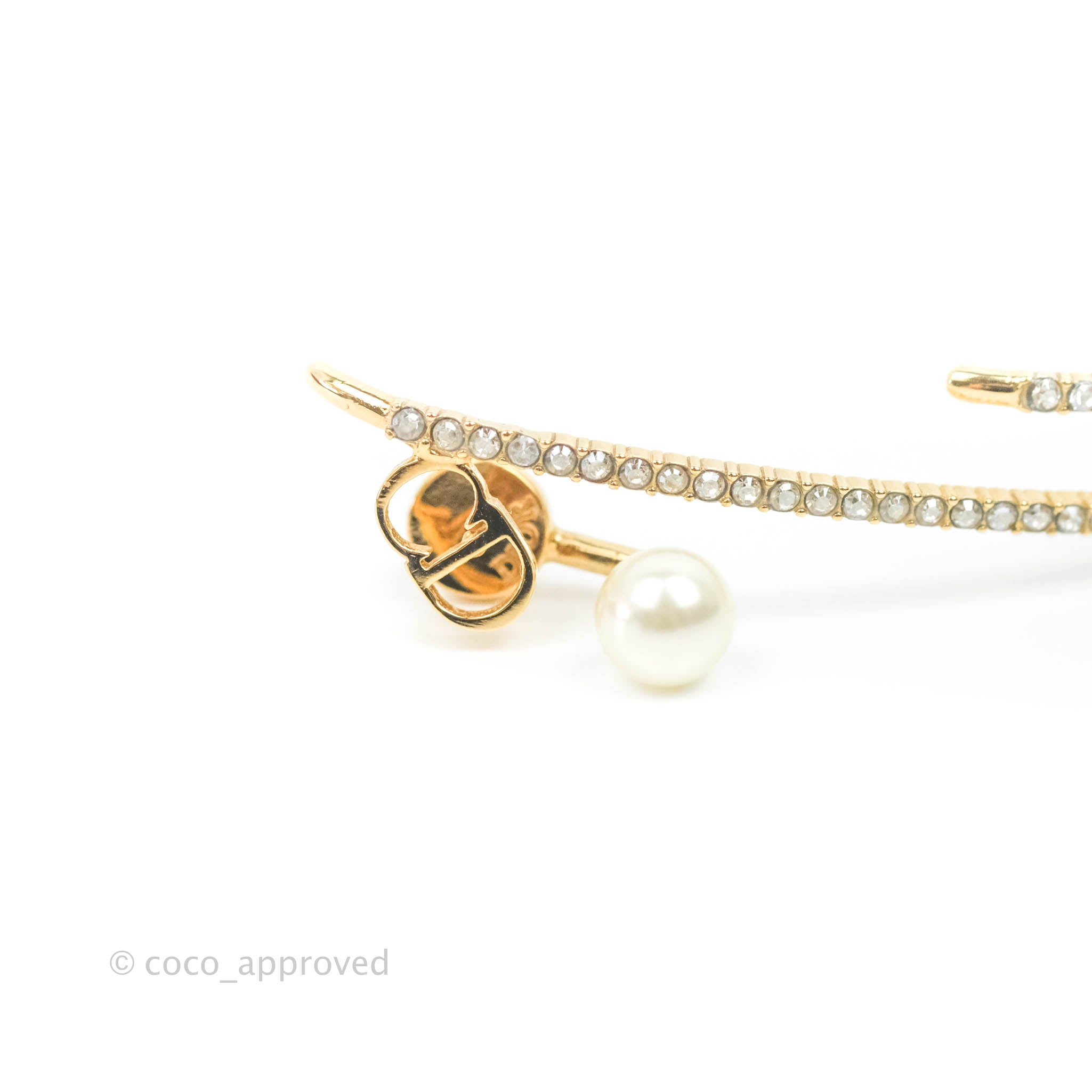 Christian Dior Faux Pearl & Crystal Ear Cuff Gold Tone