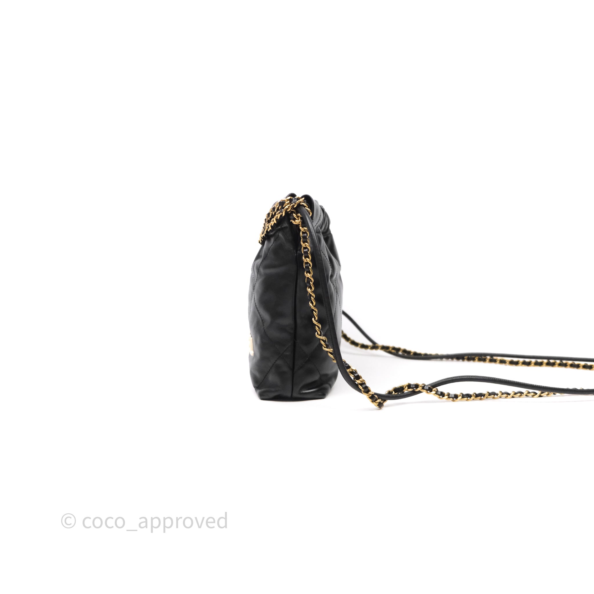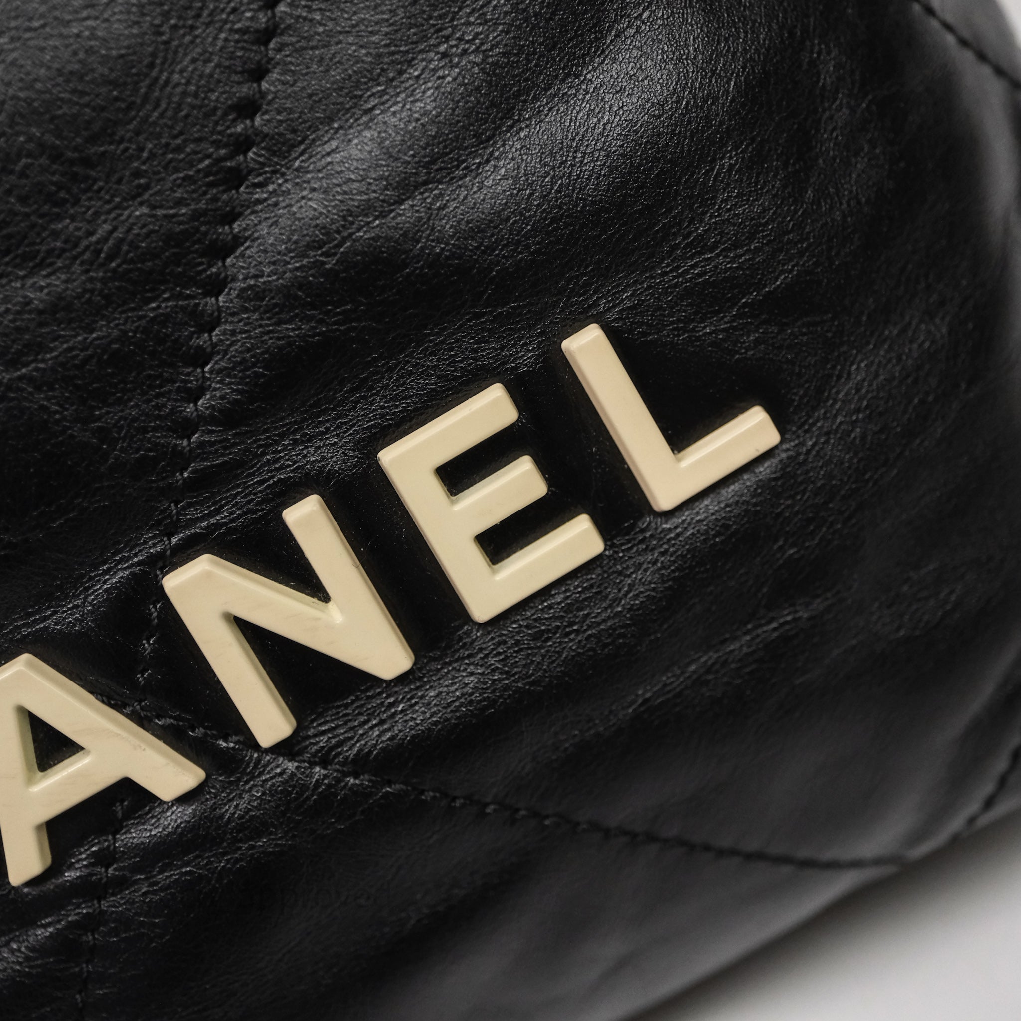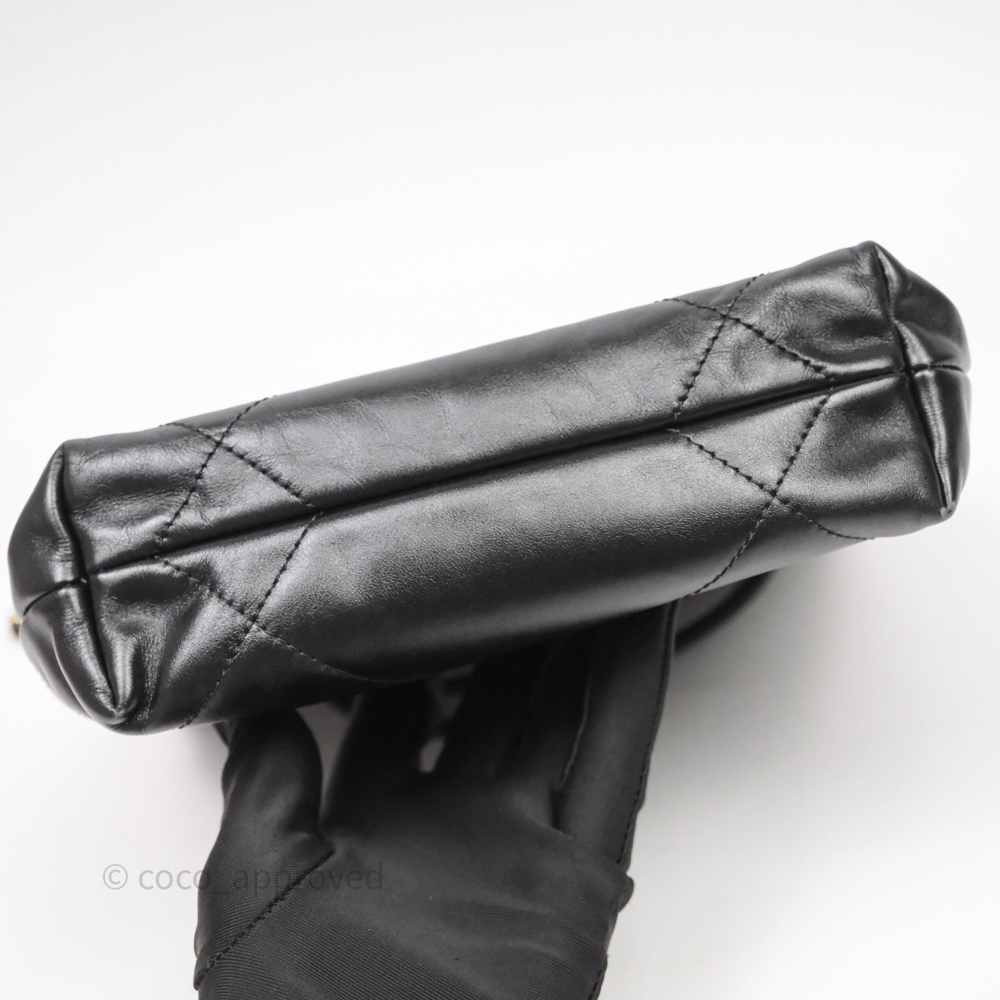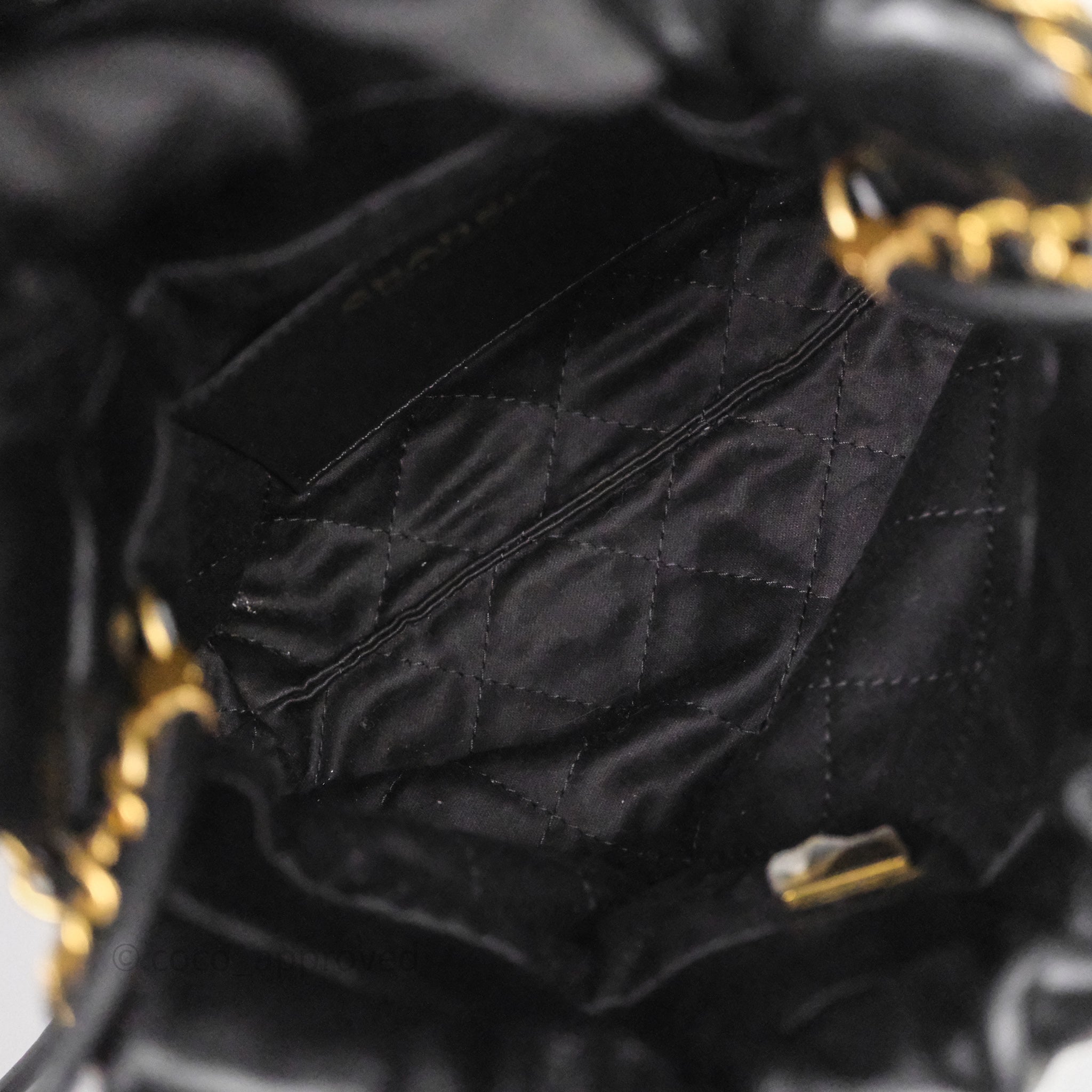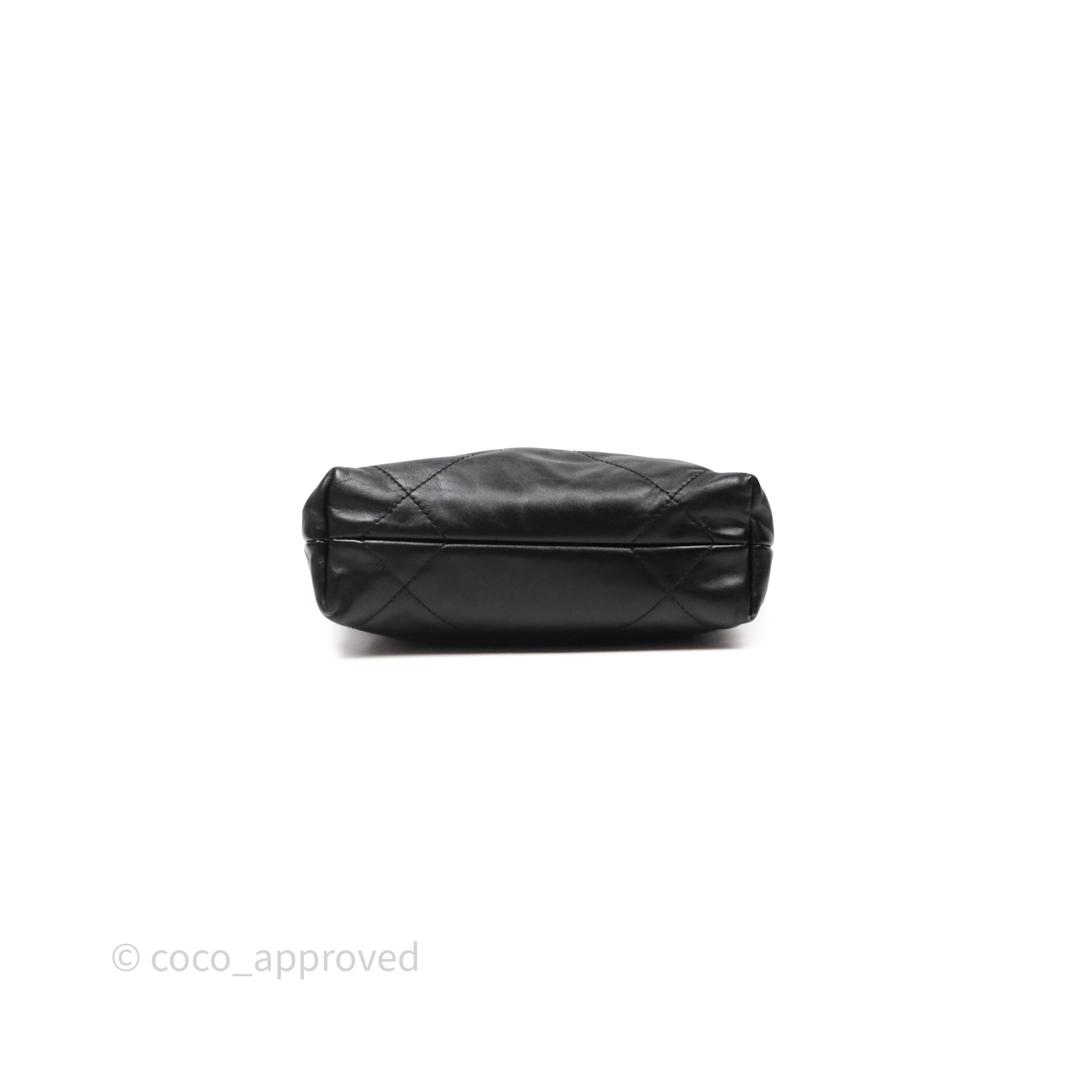 Chanel 22 Mini Bag Black Crumpled Calfskin White Lacquered Metal Logo