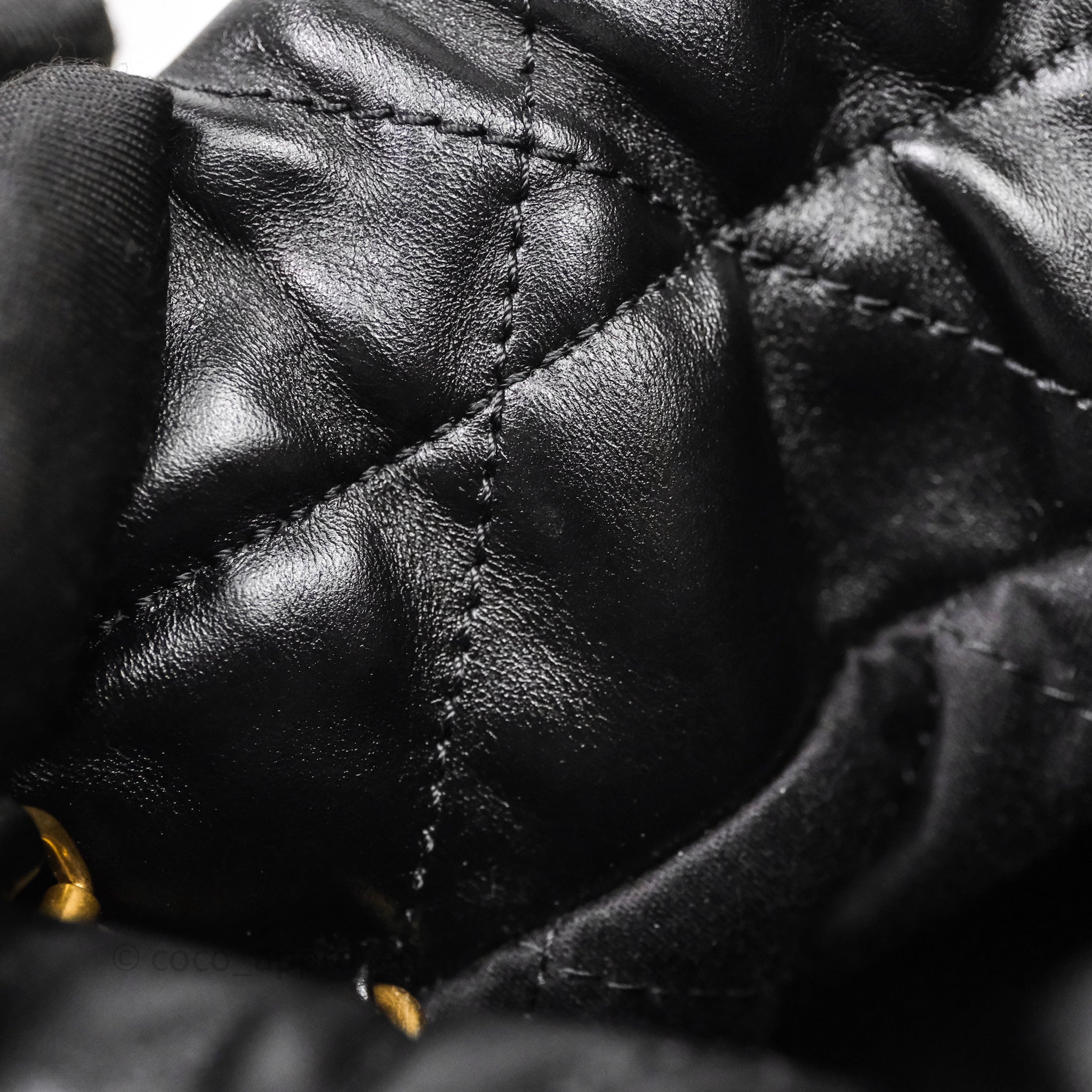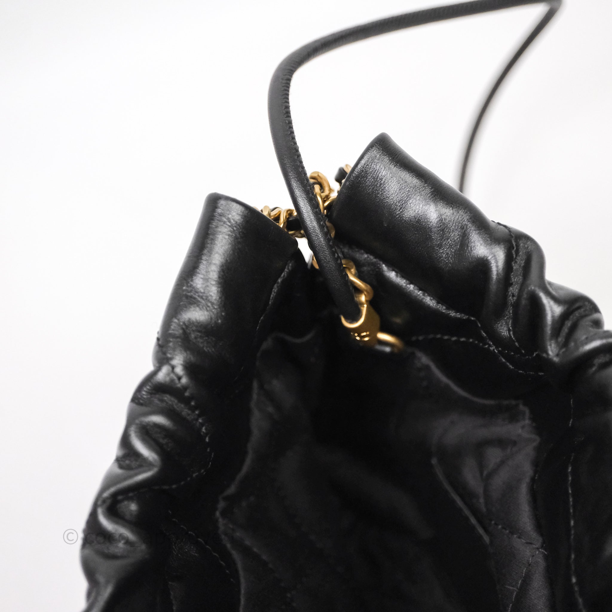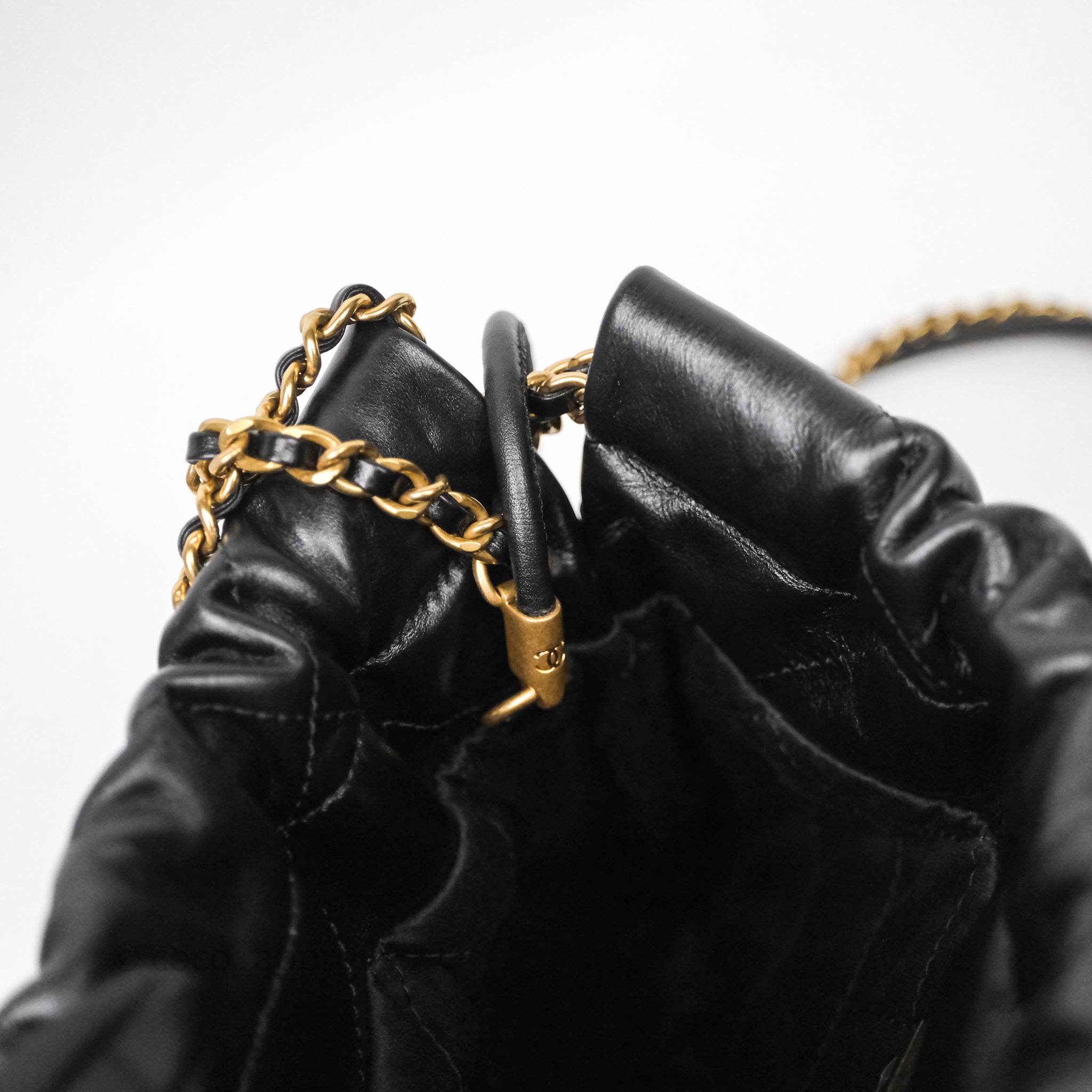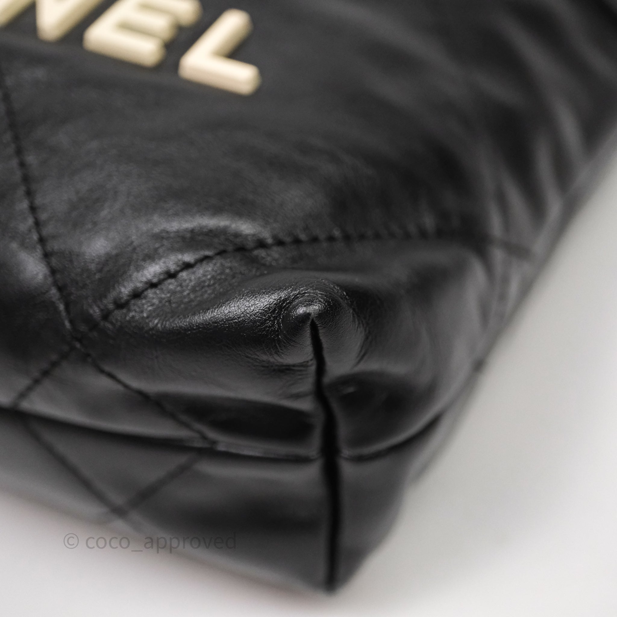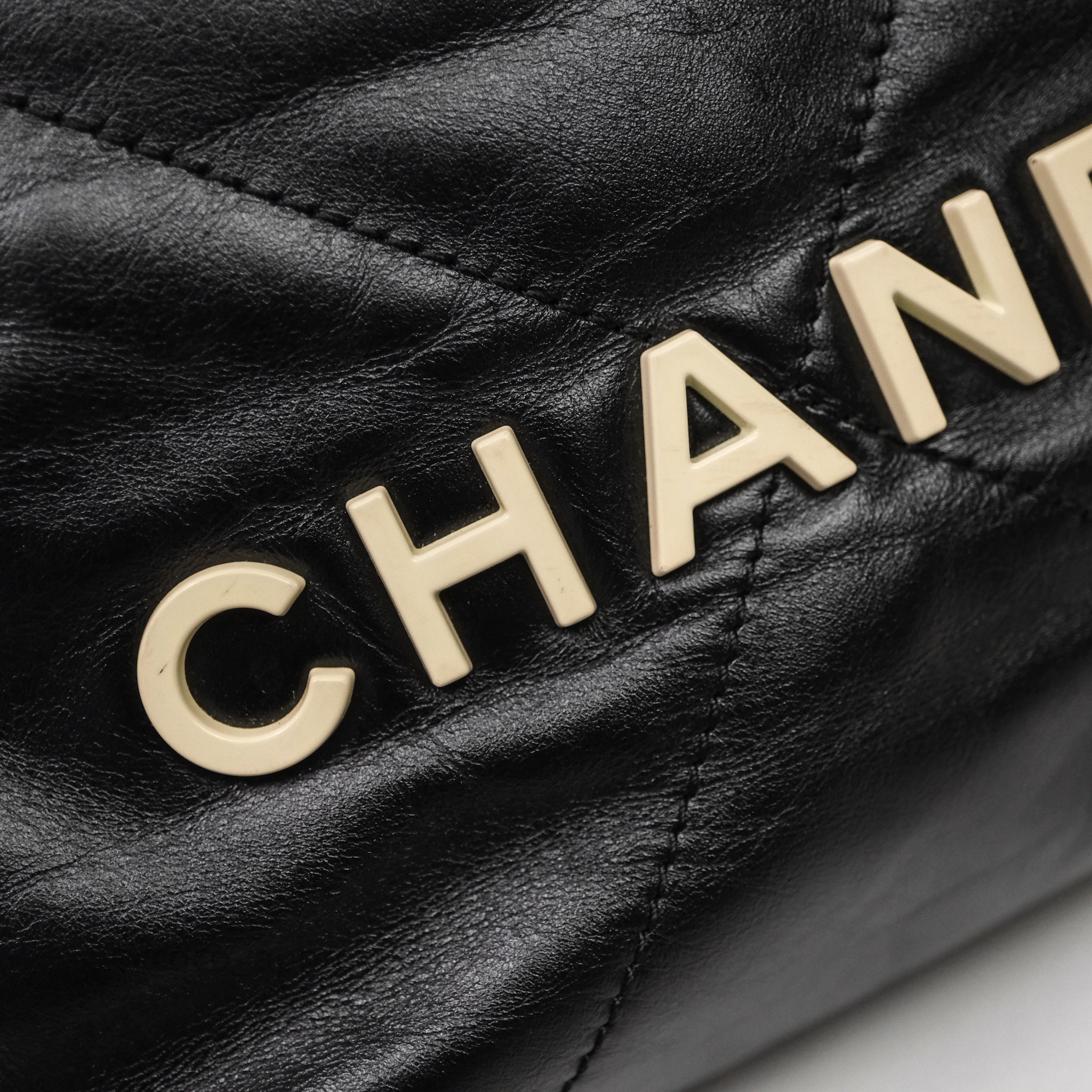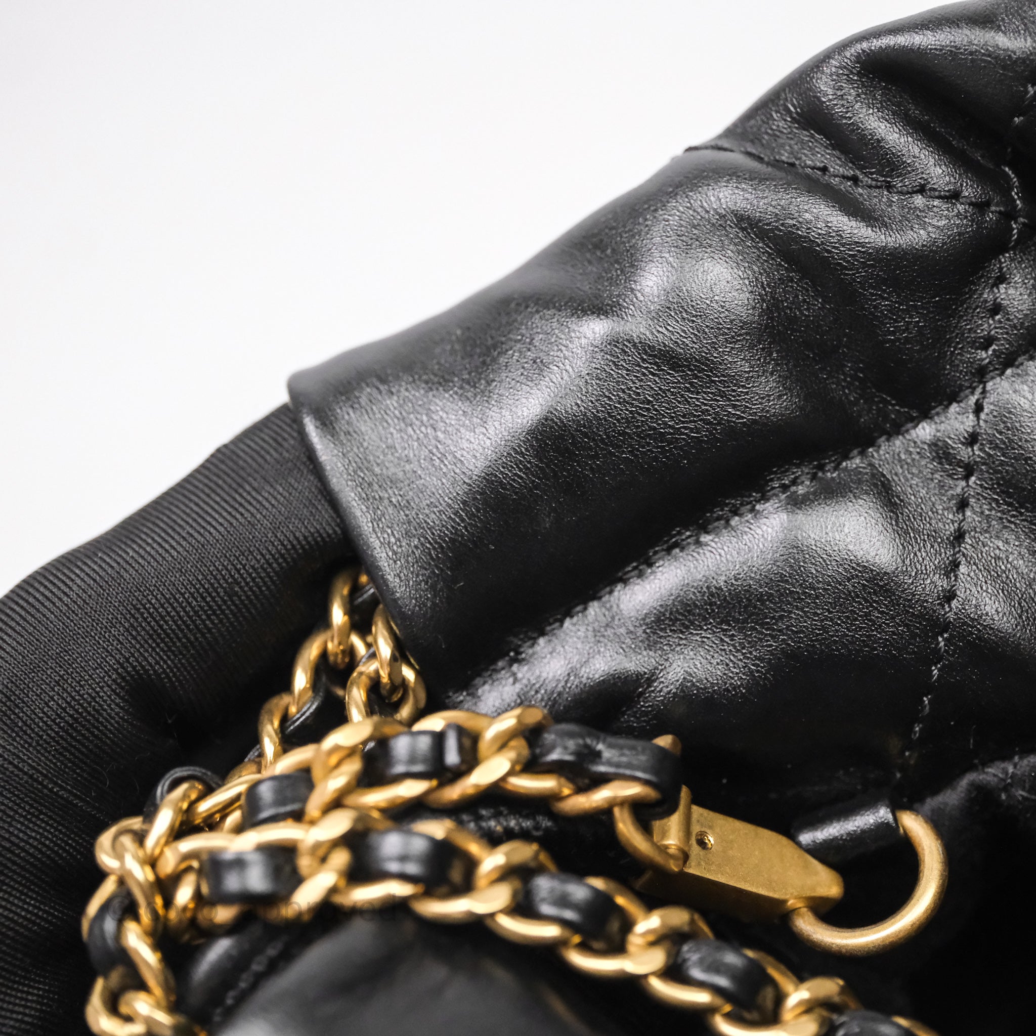 Chanel 22 Mini Bag Black Crumpled Calfskin White Lacquered Metal Logo