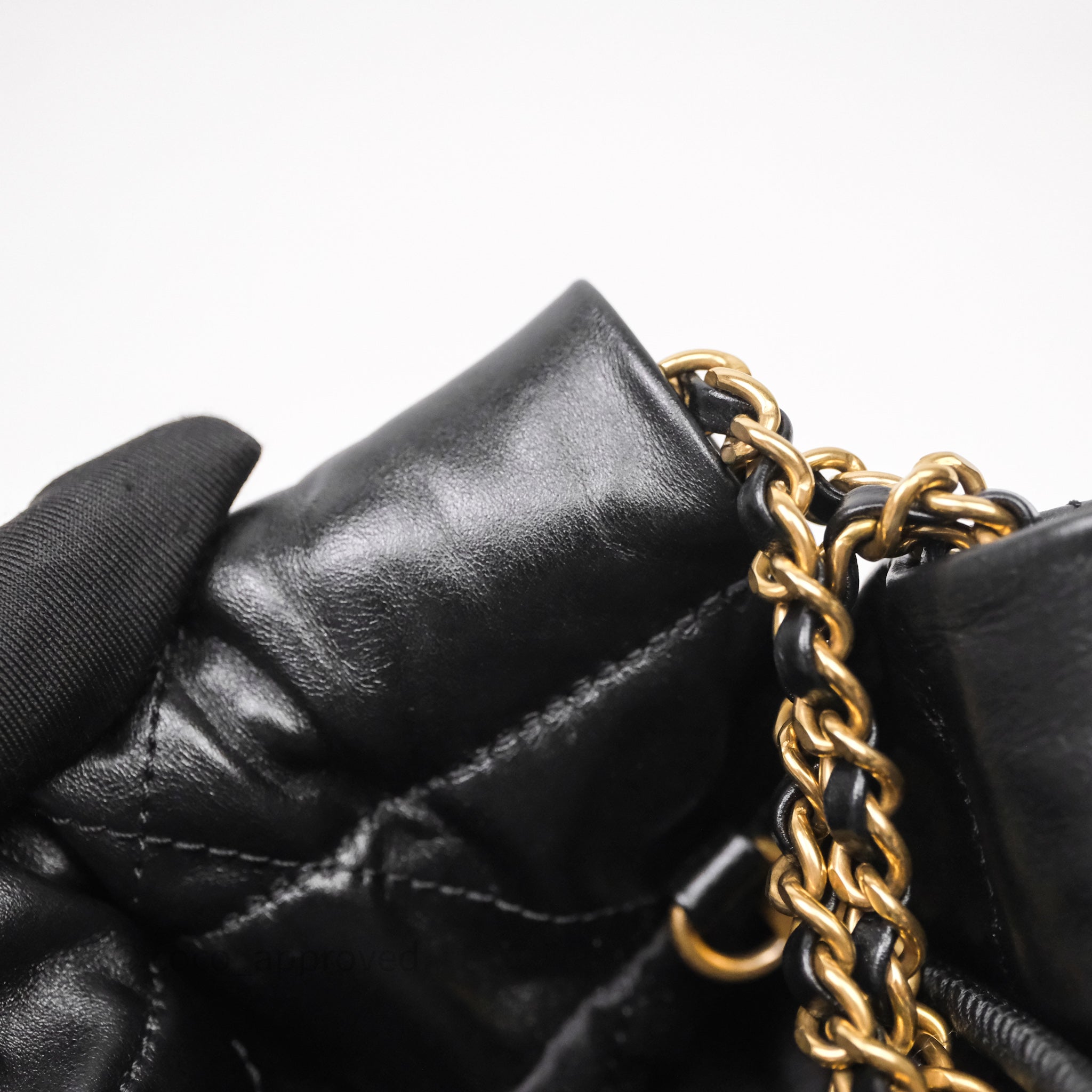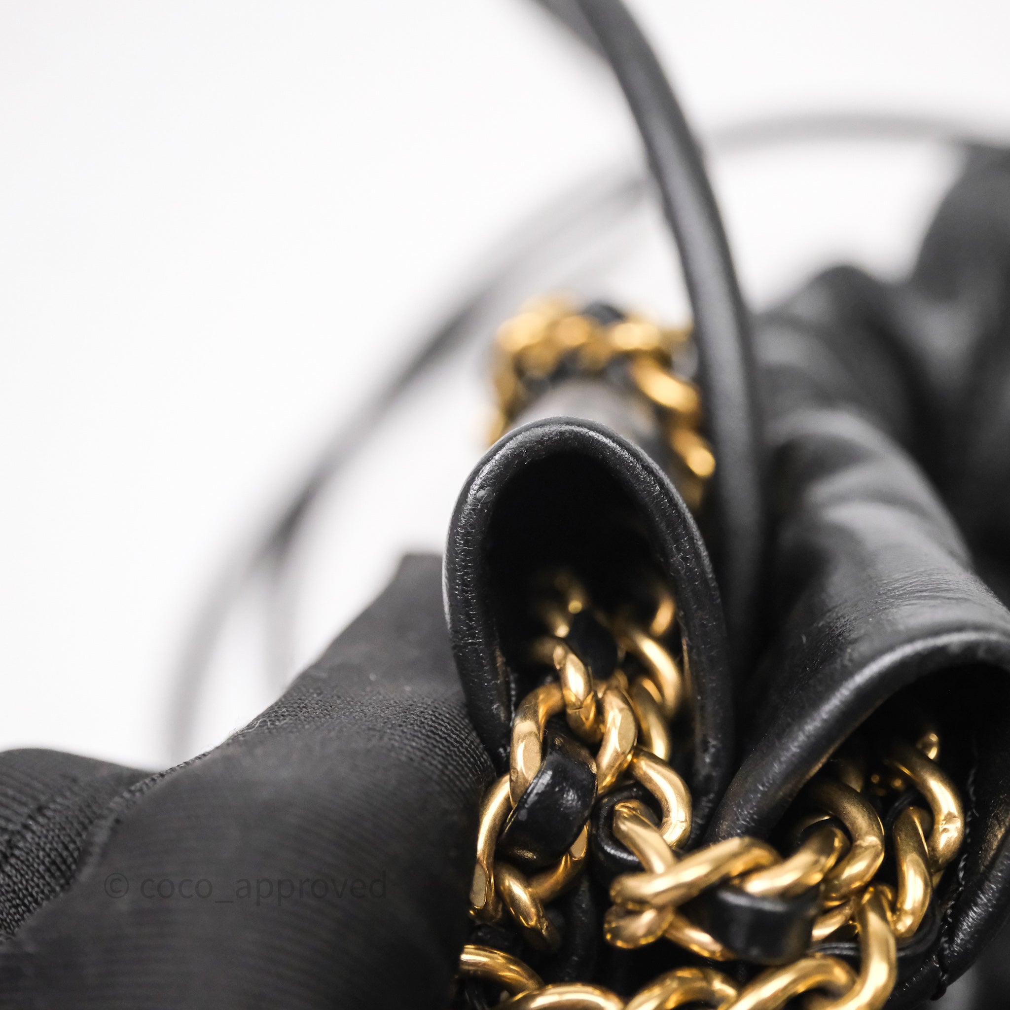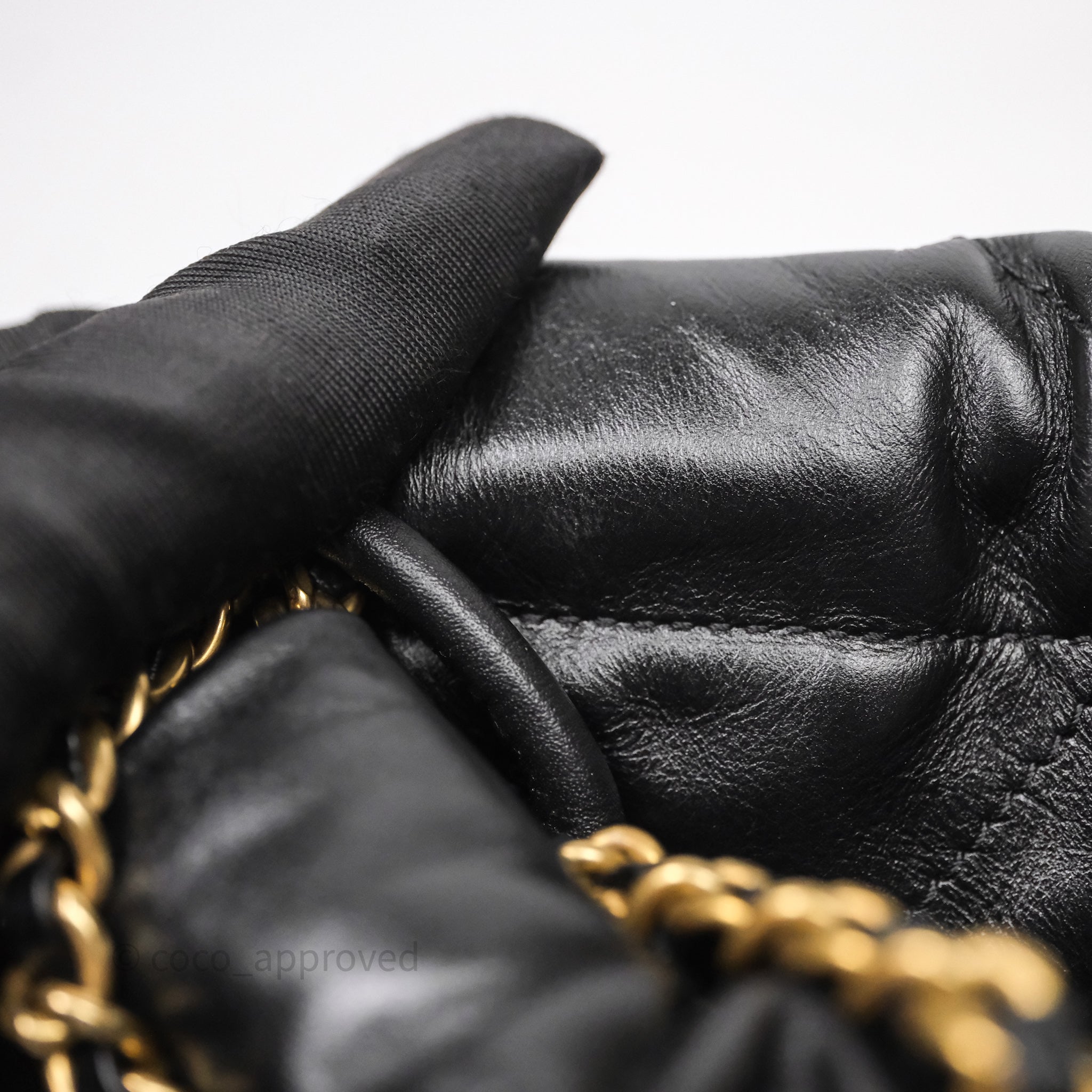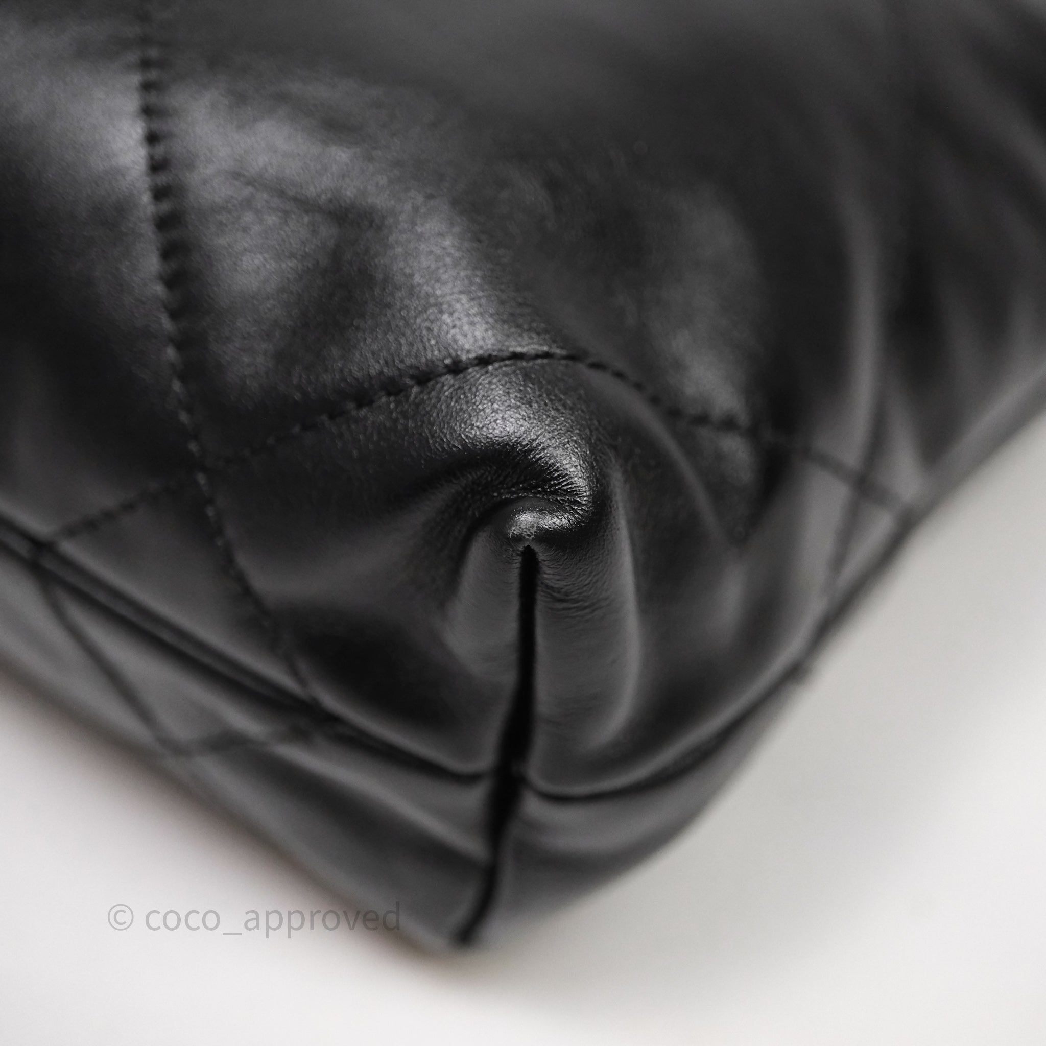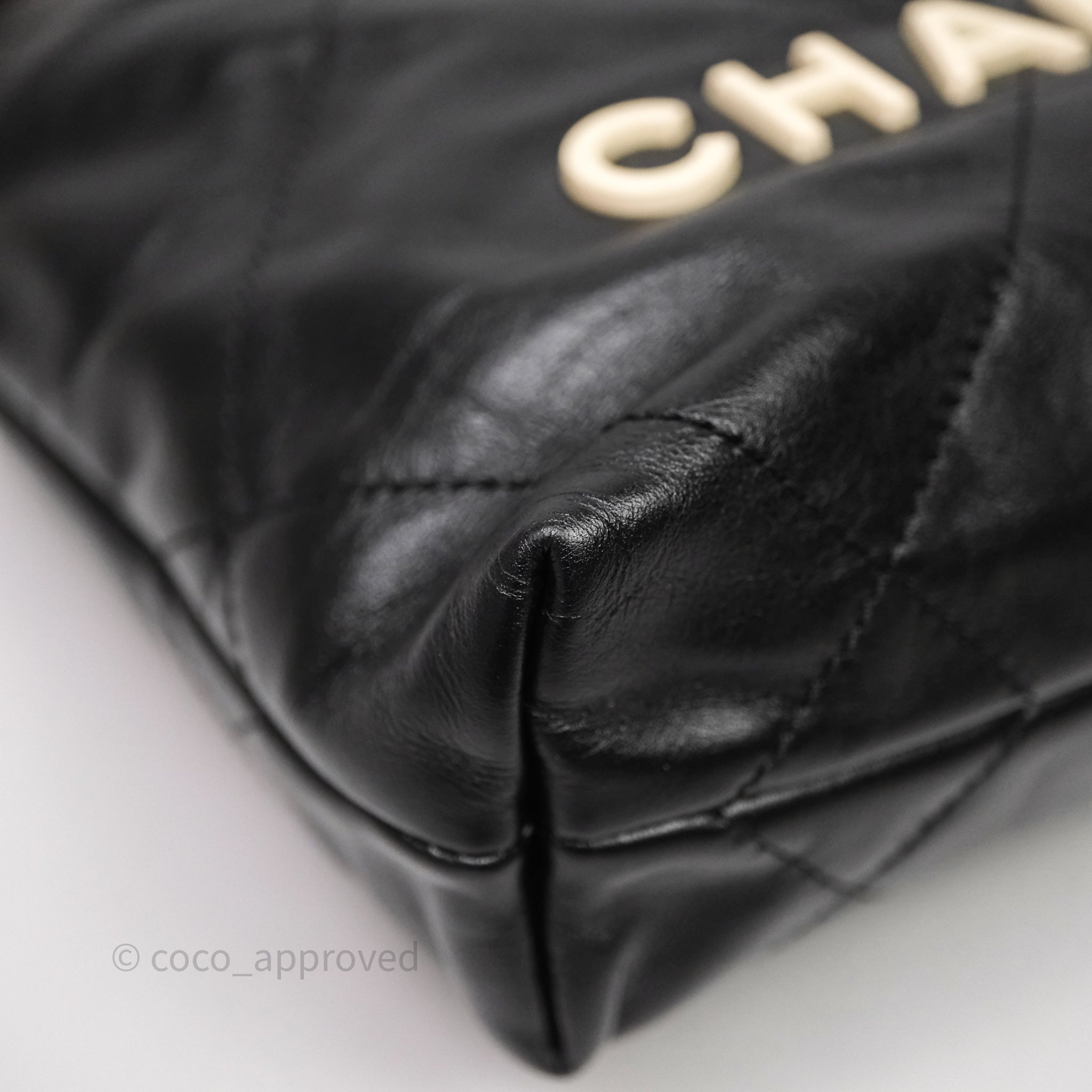 Chanel 22 Mini Bag Black Crumpled Calfskin White Lacquered Metal Logo