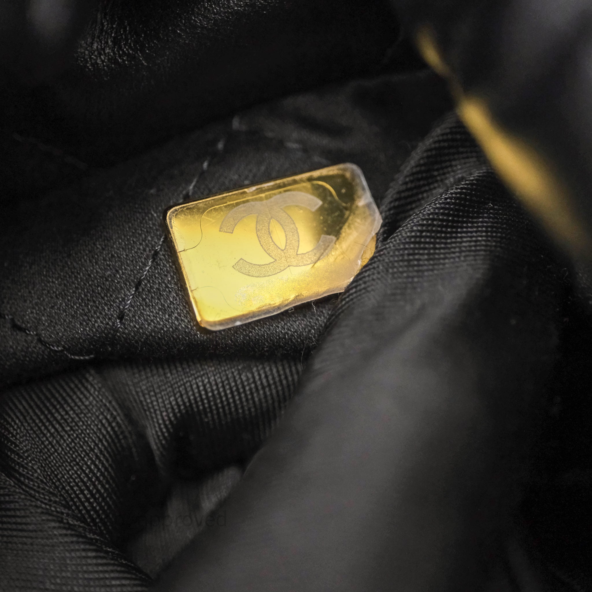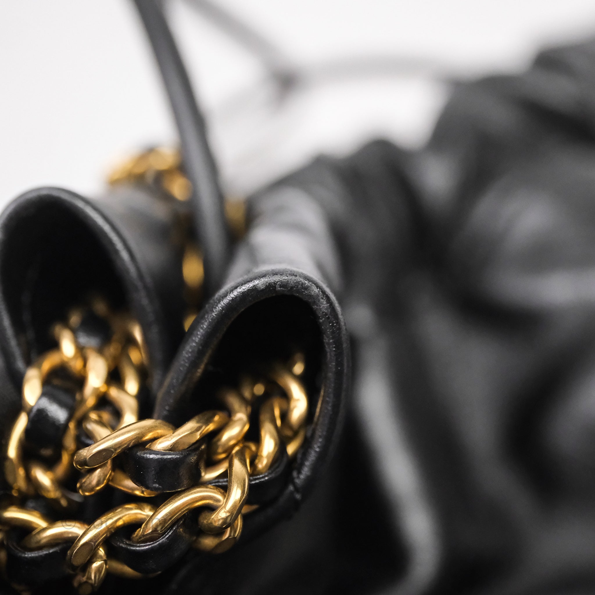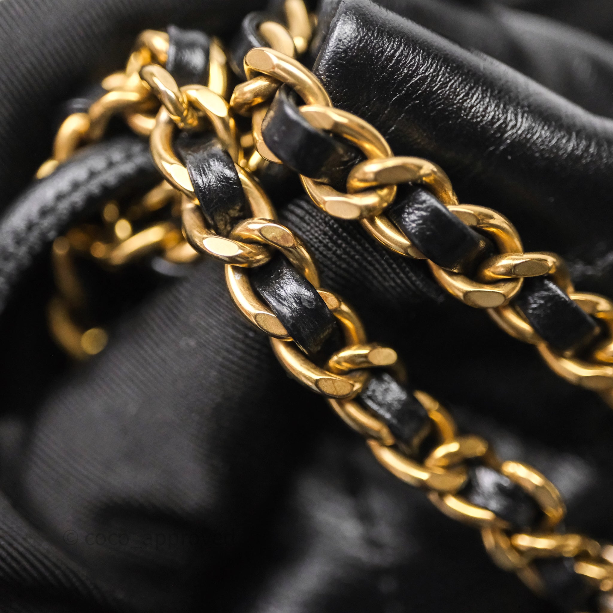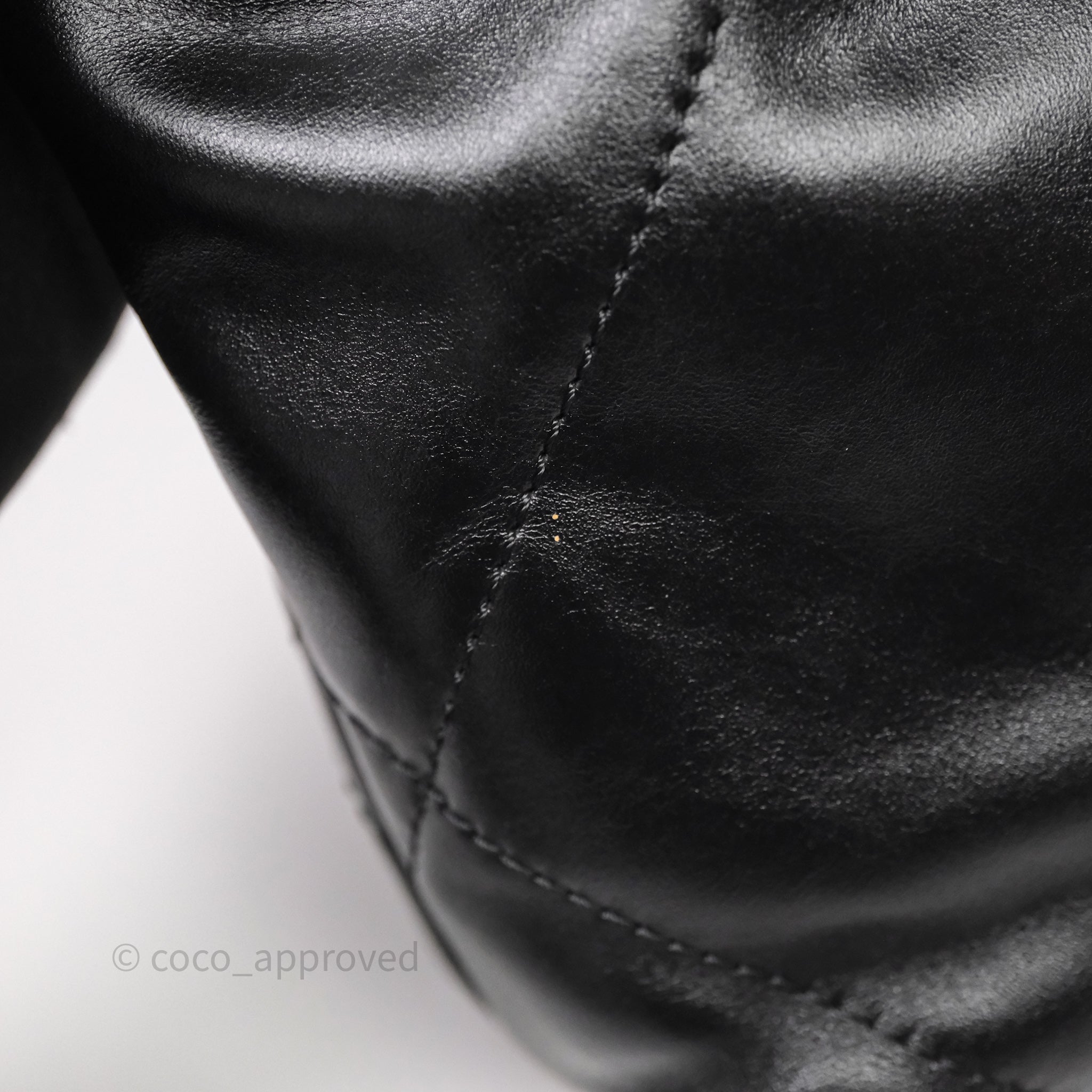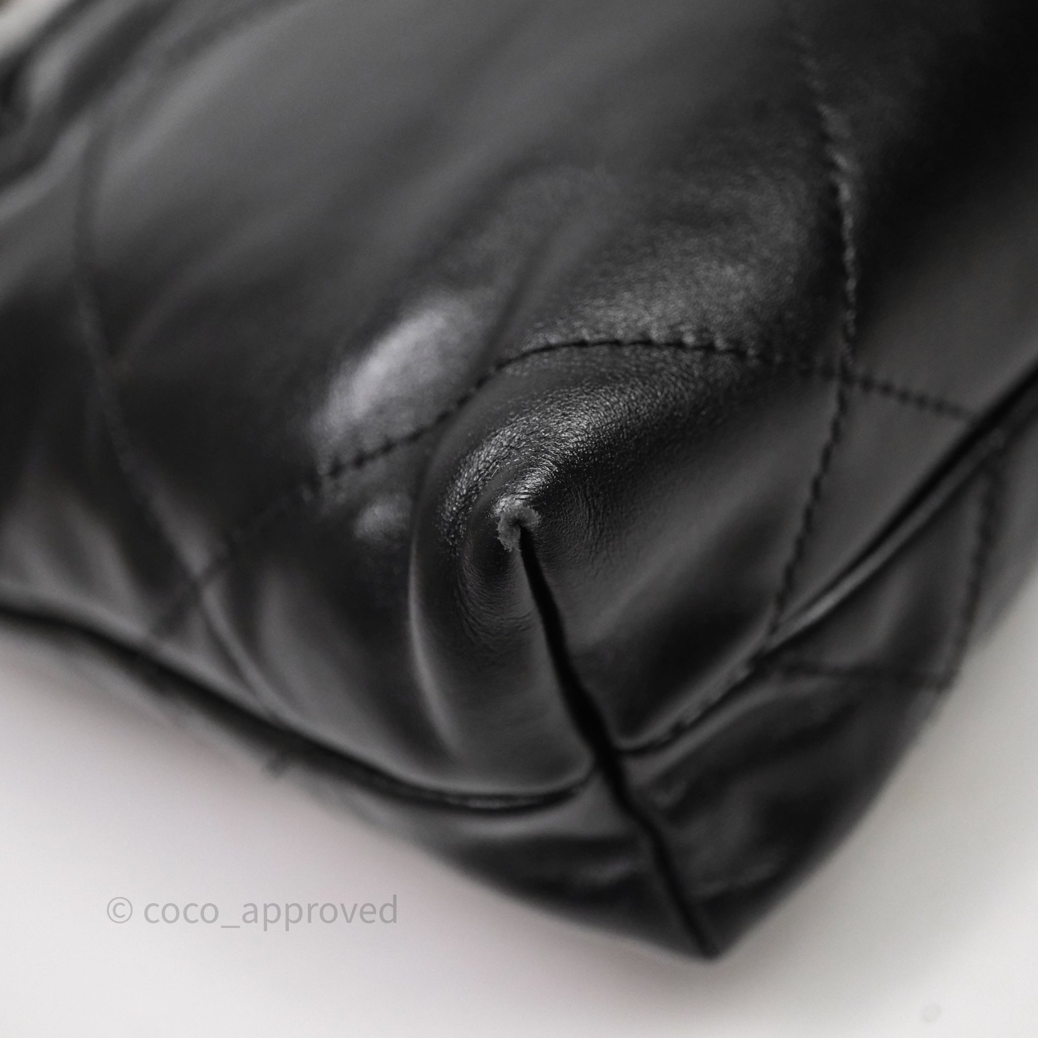 Chanel 22 Mini Bag Black Crumpled Calfskin White Lacquered Metal Logo