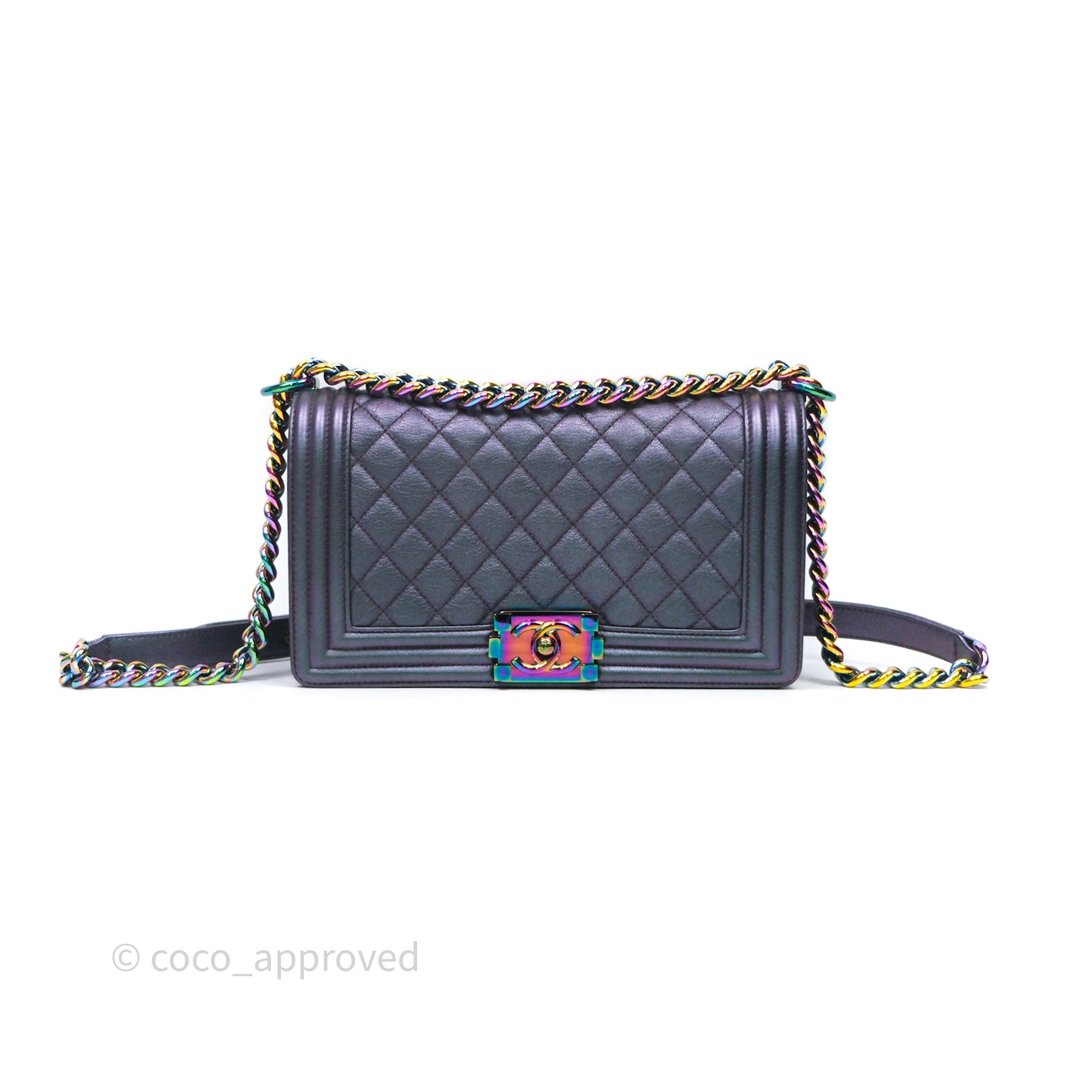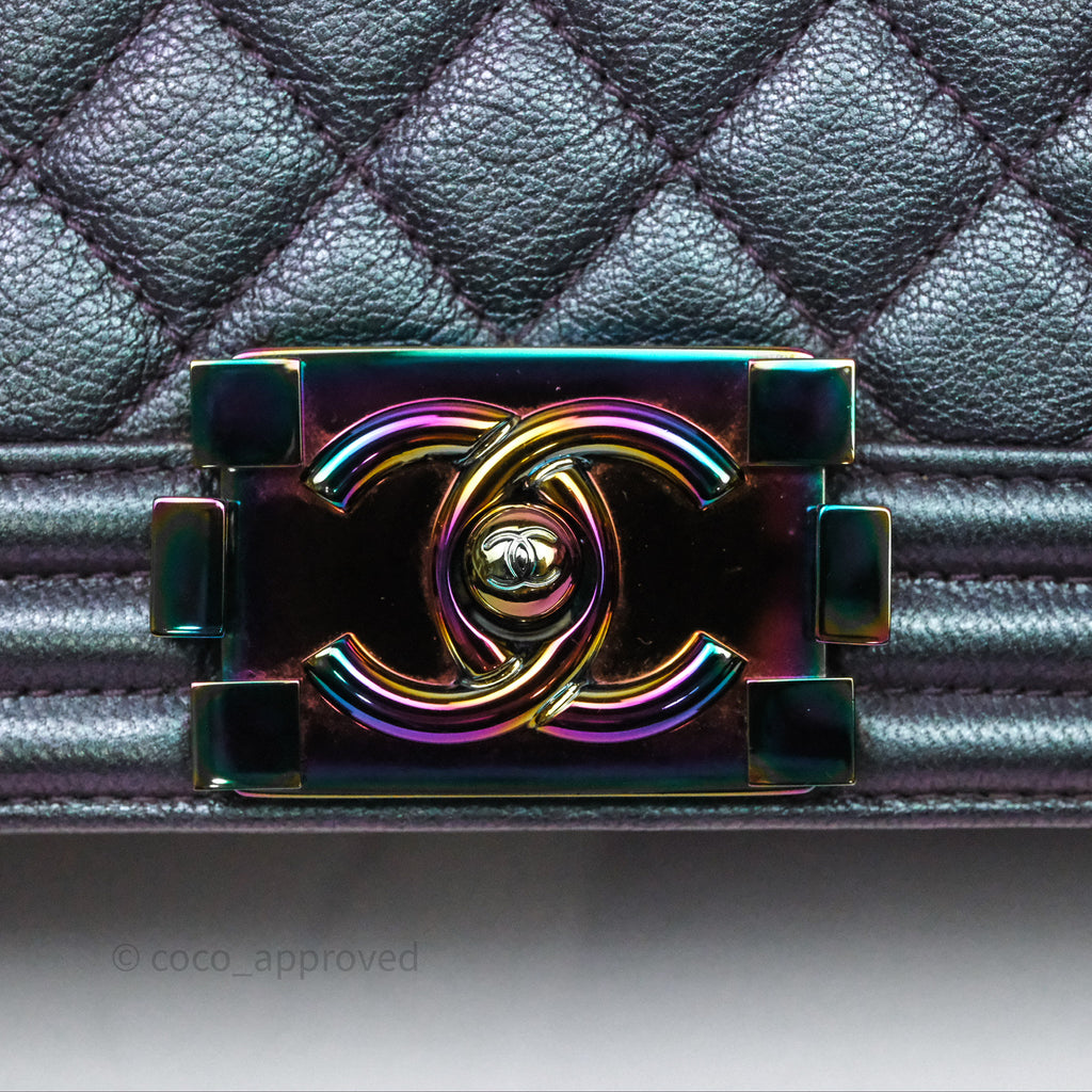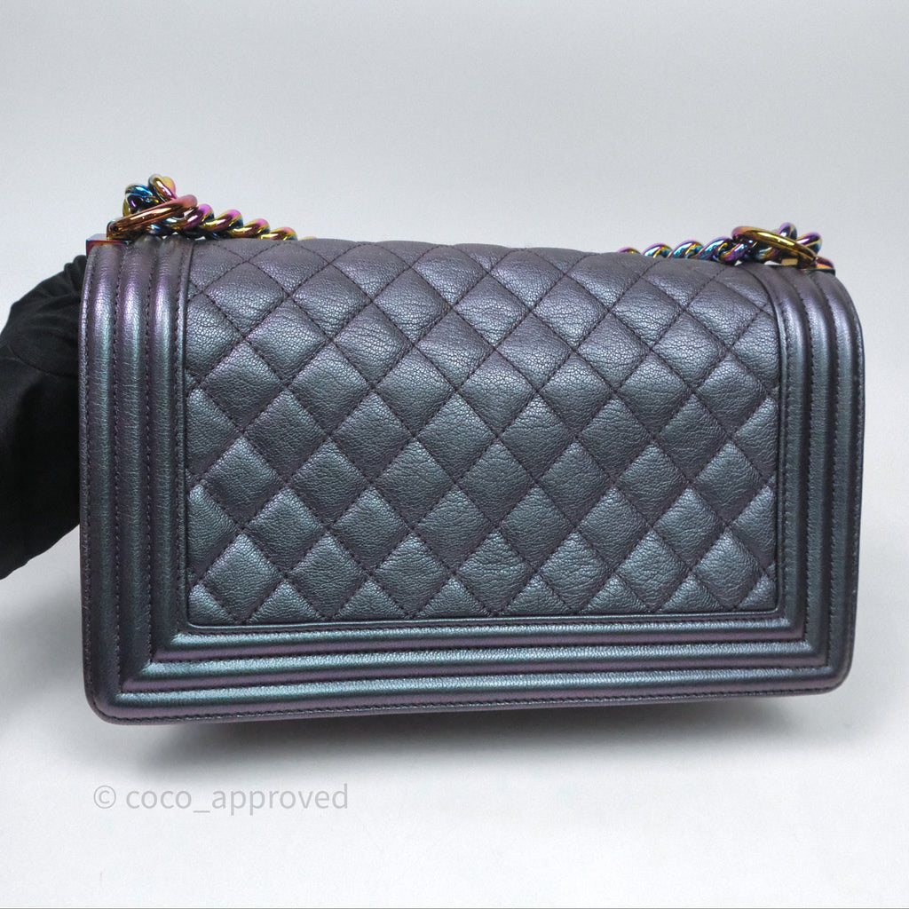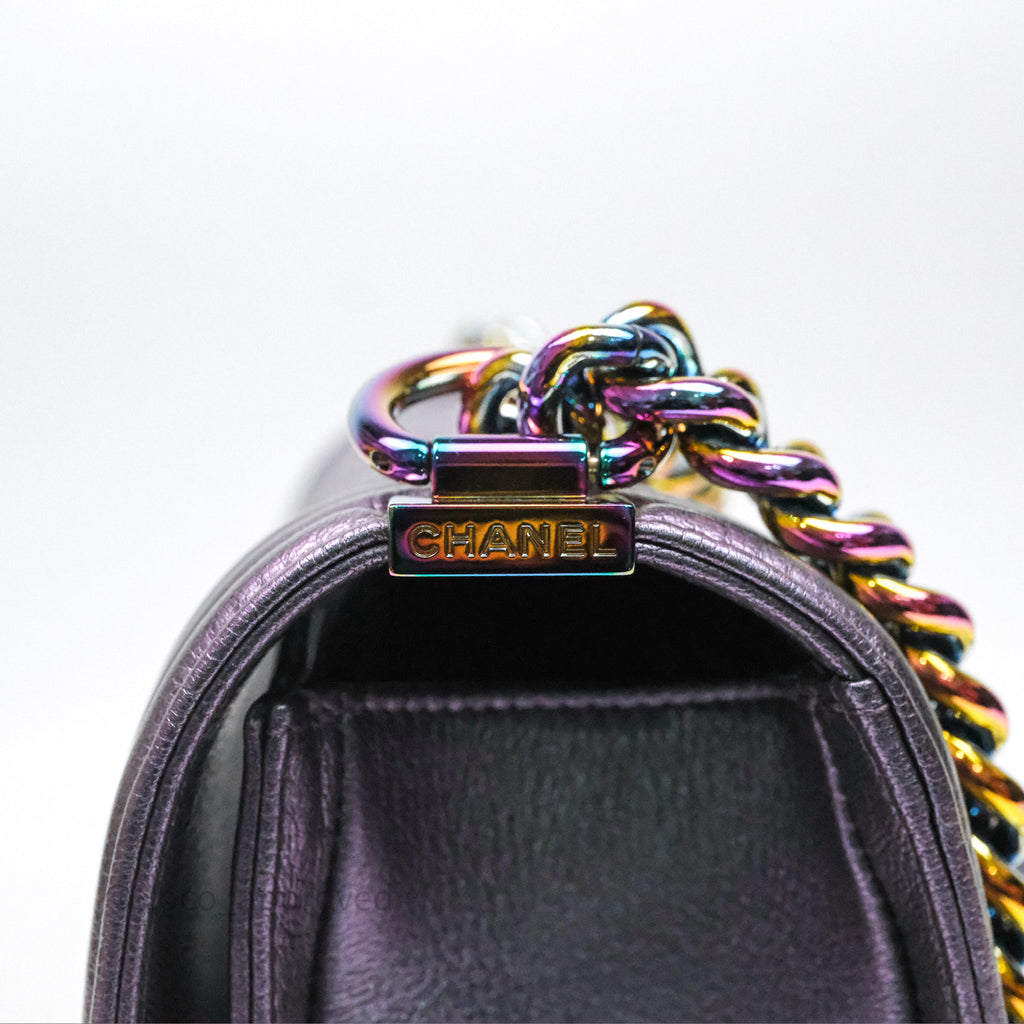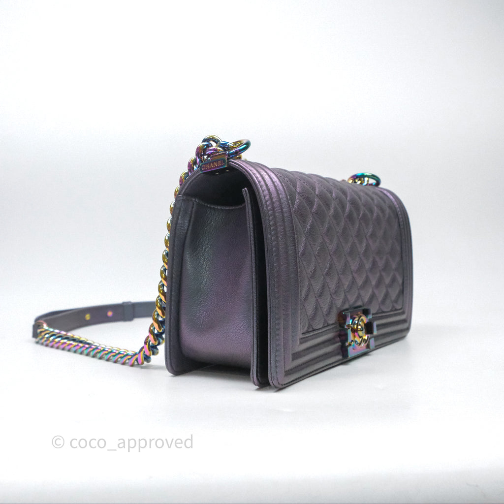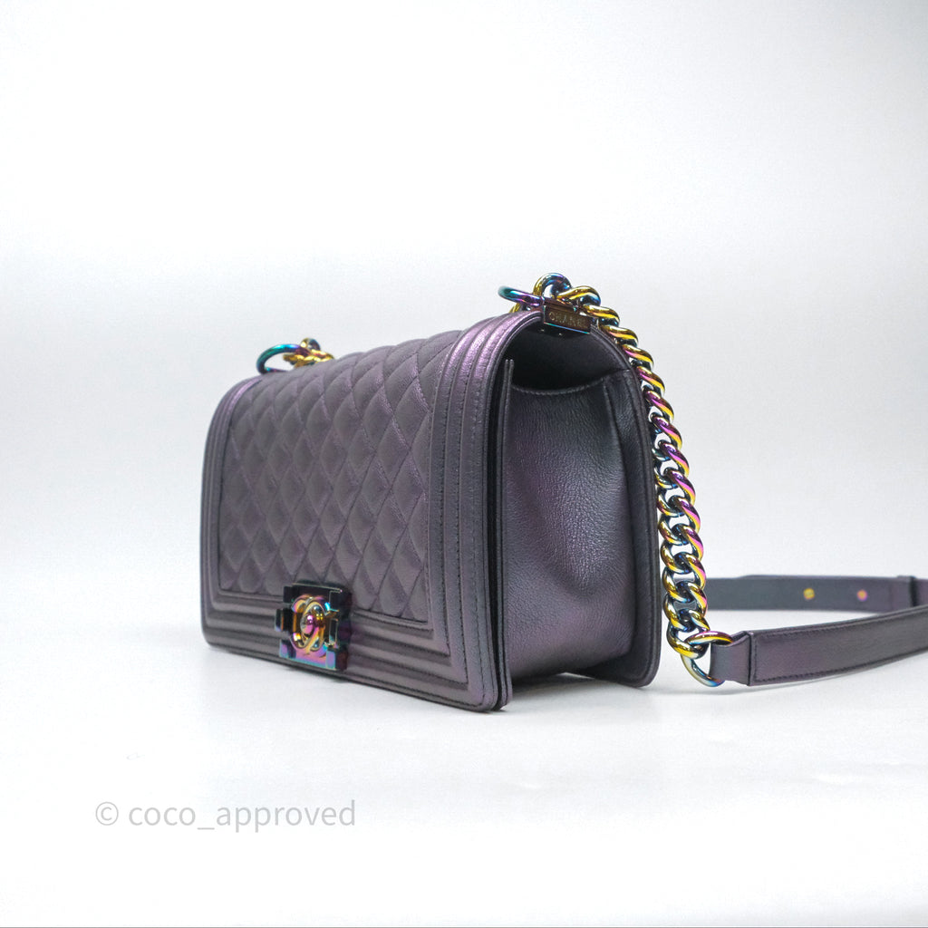 Chanel Boy Medium Quilted Boy Purple Mermaid Iridescent Calfskin