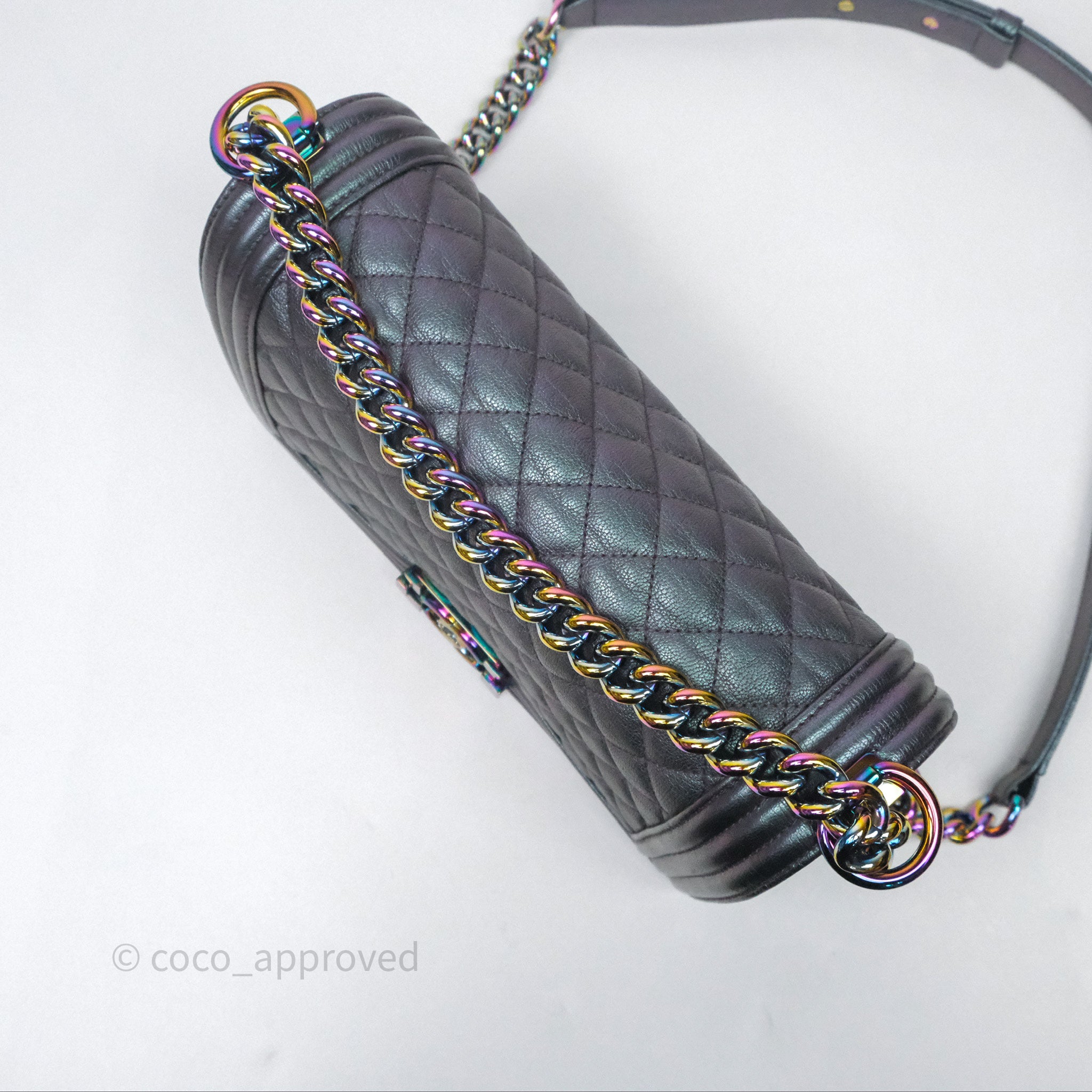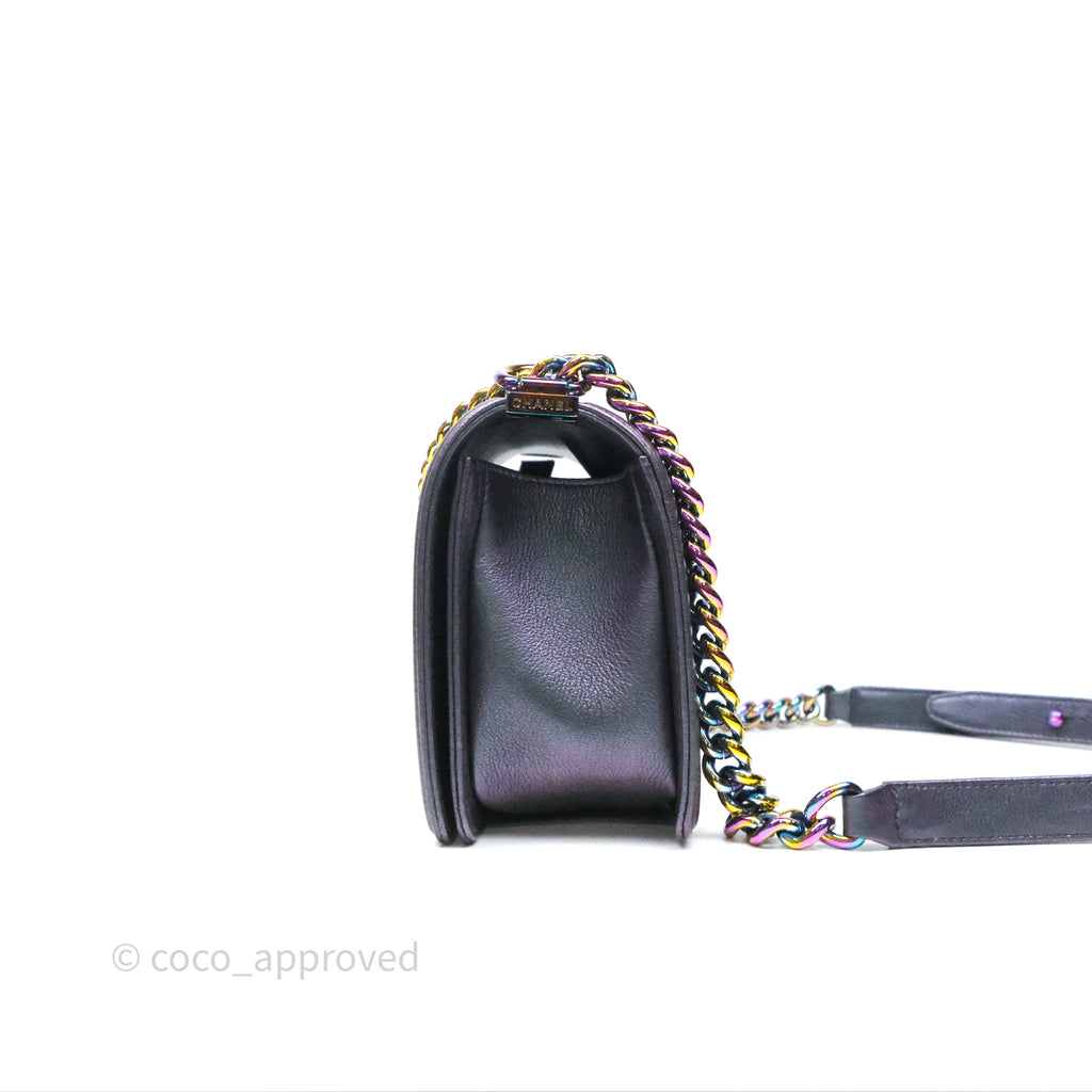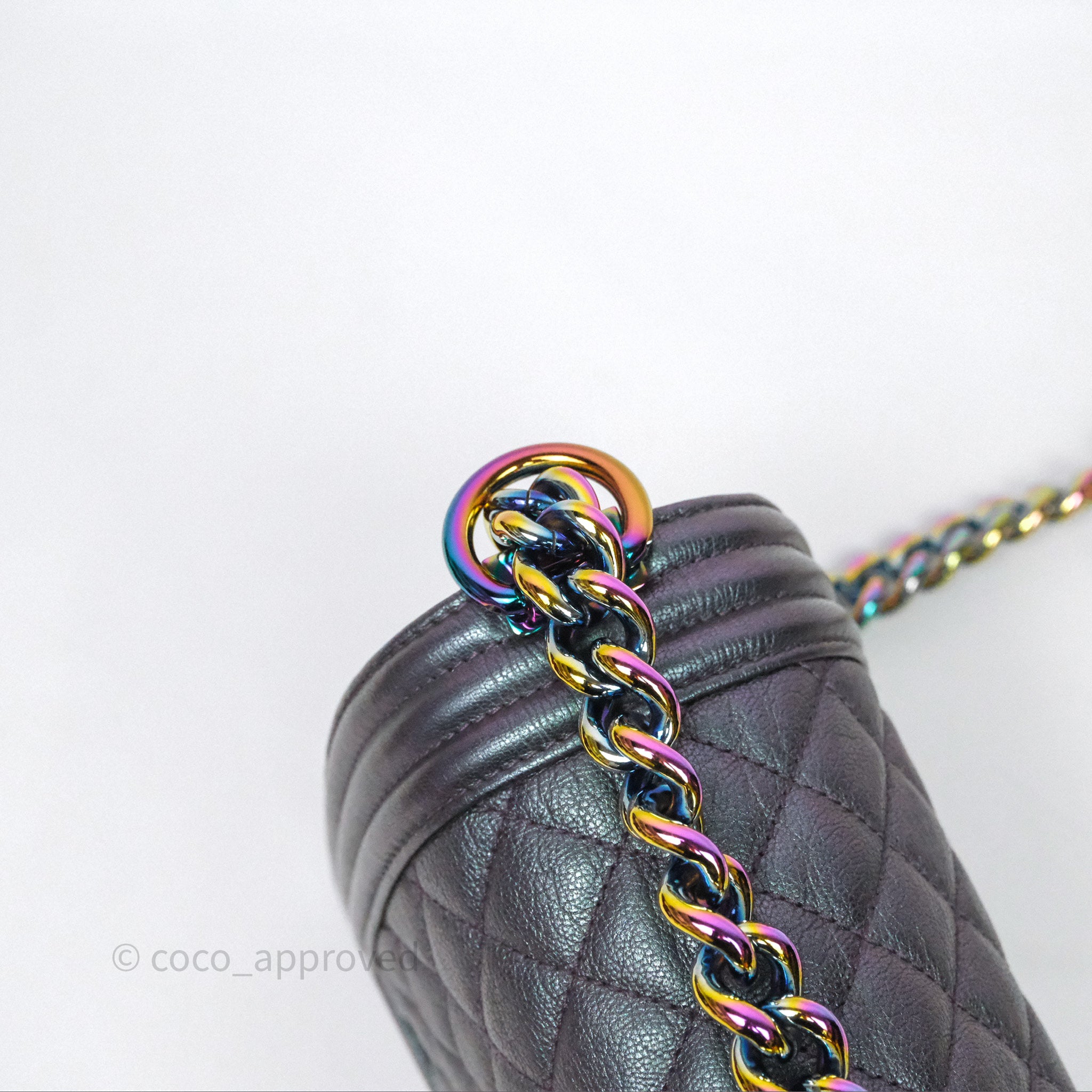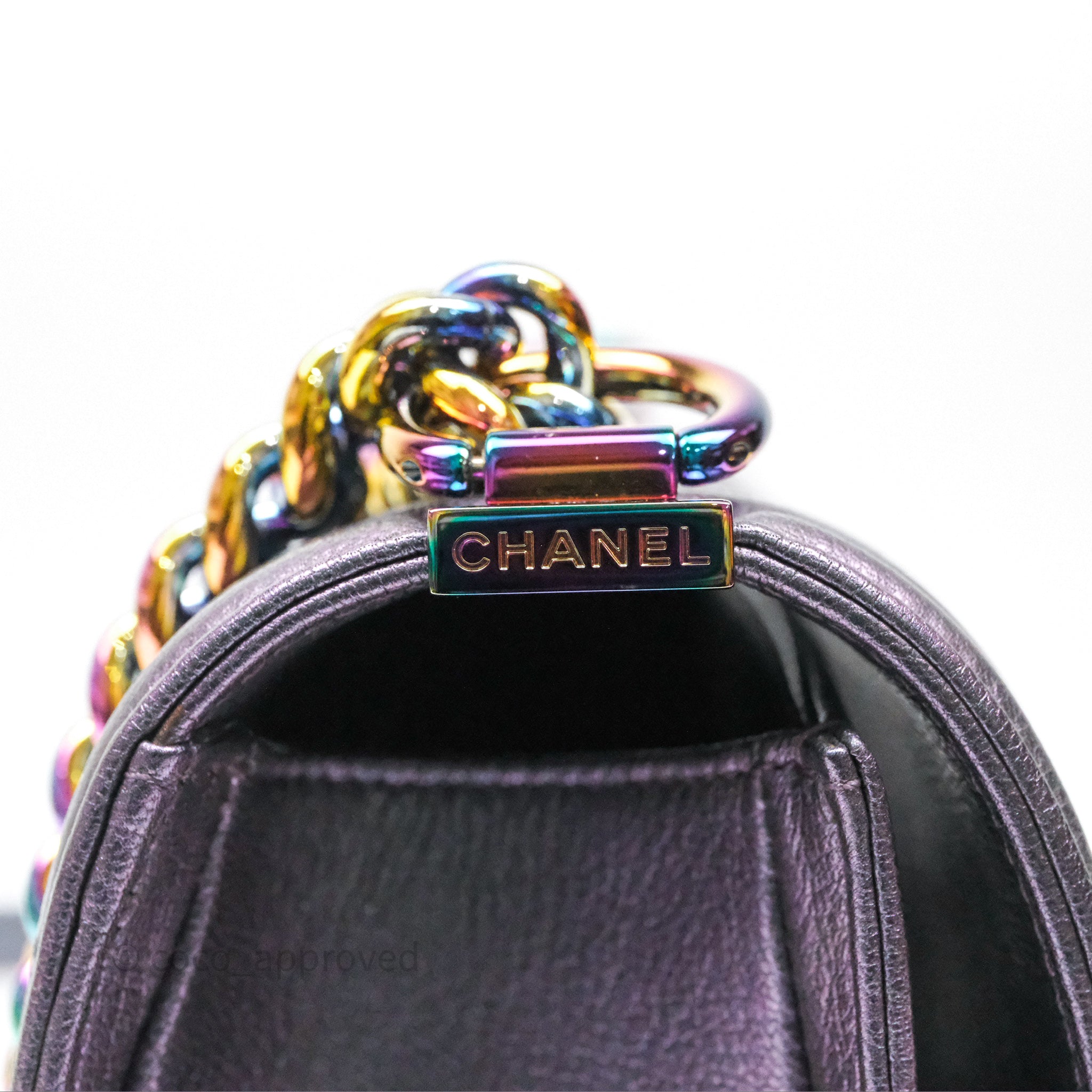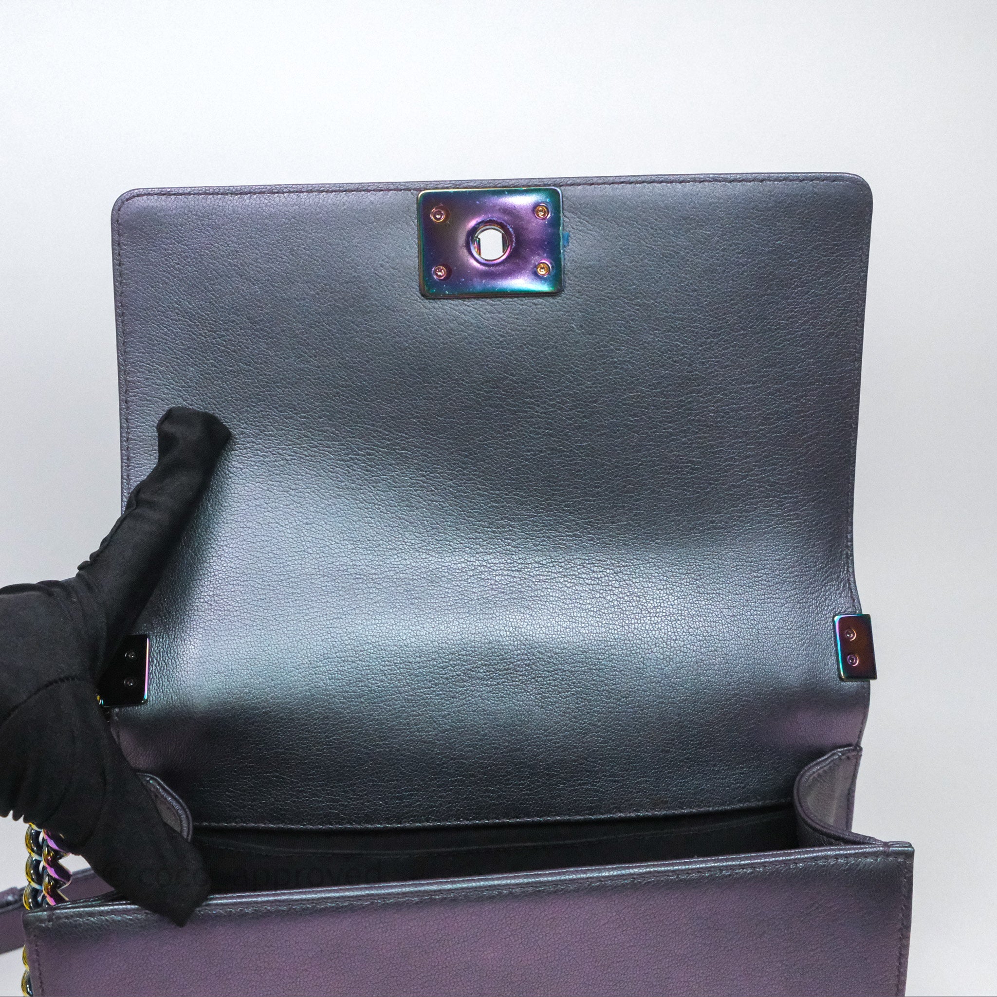 Chanel Boy Medium Quilted Boy Purple Mermaid Iridescent Calfskin