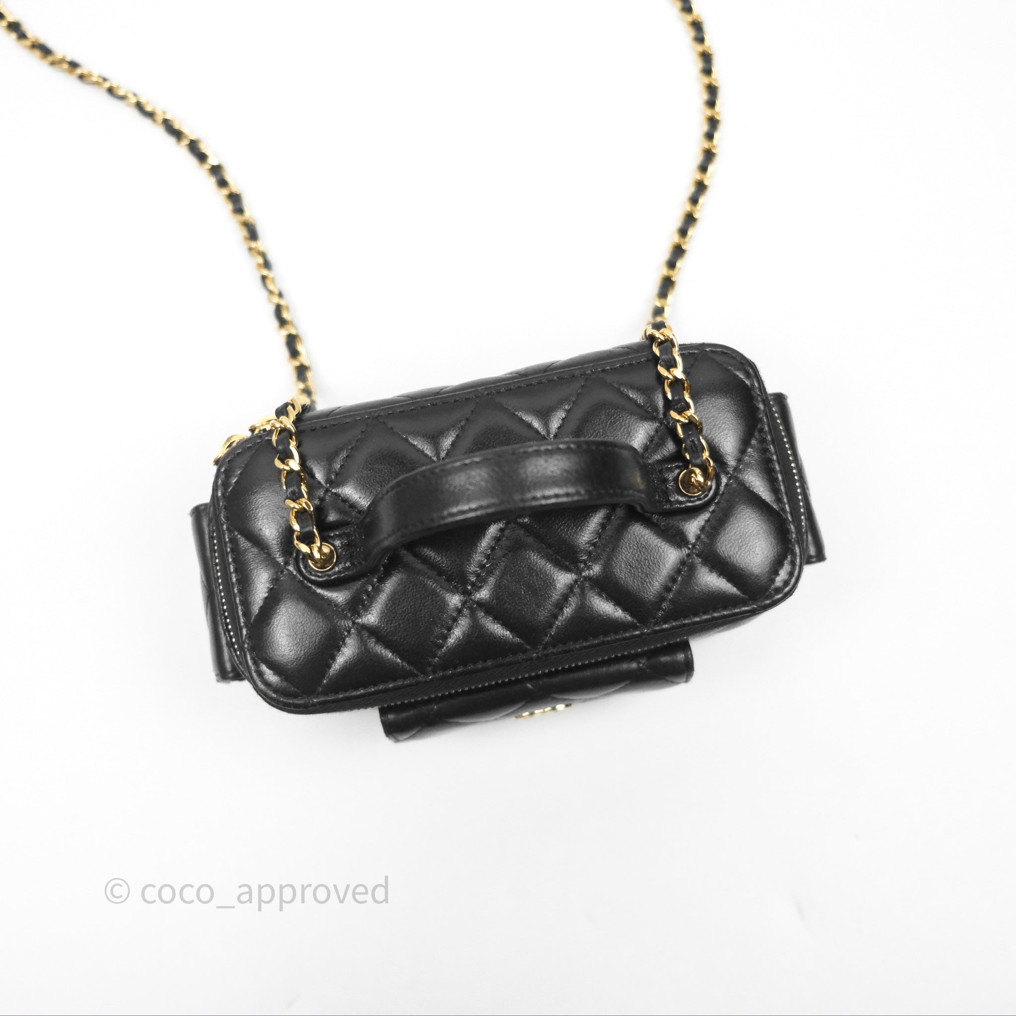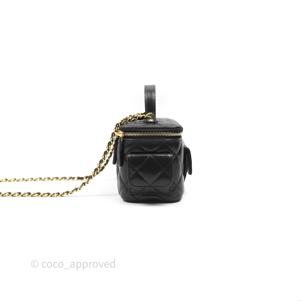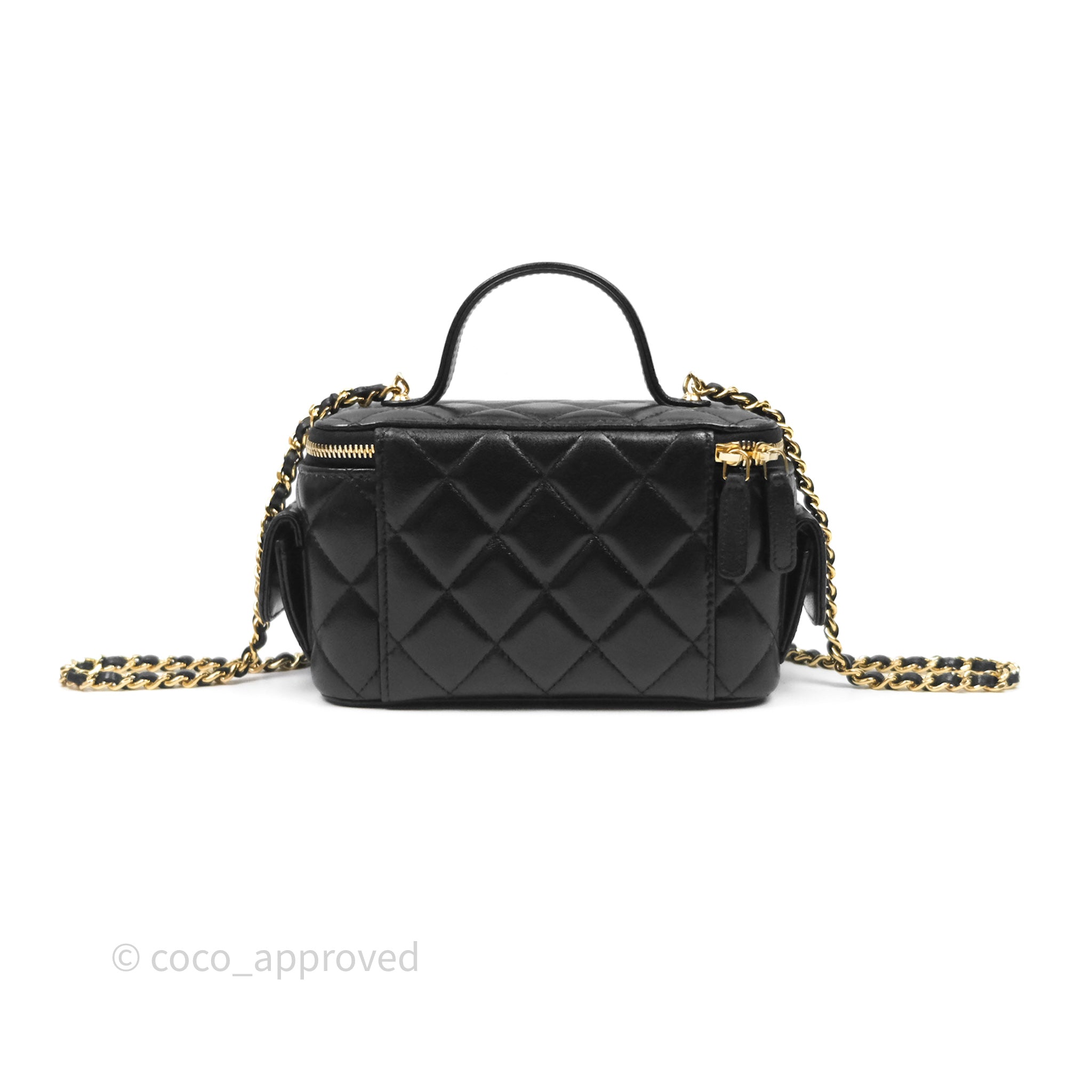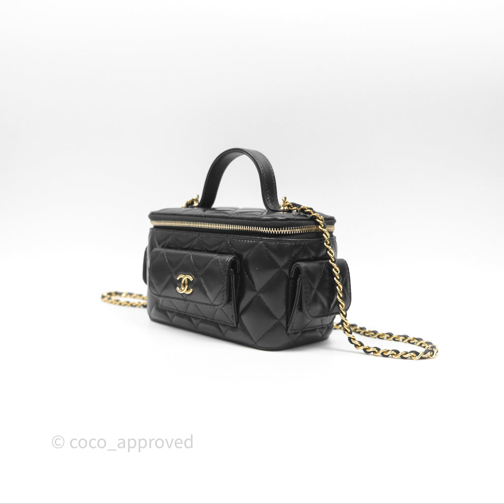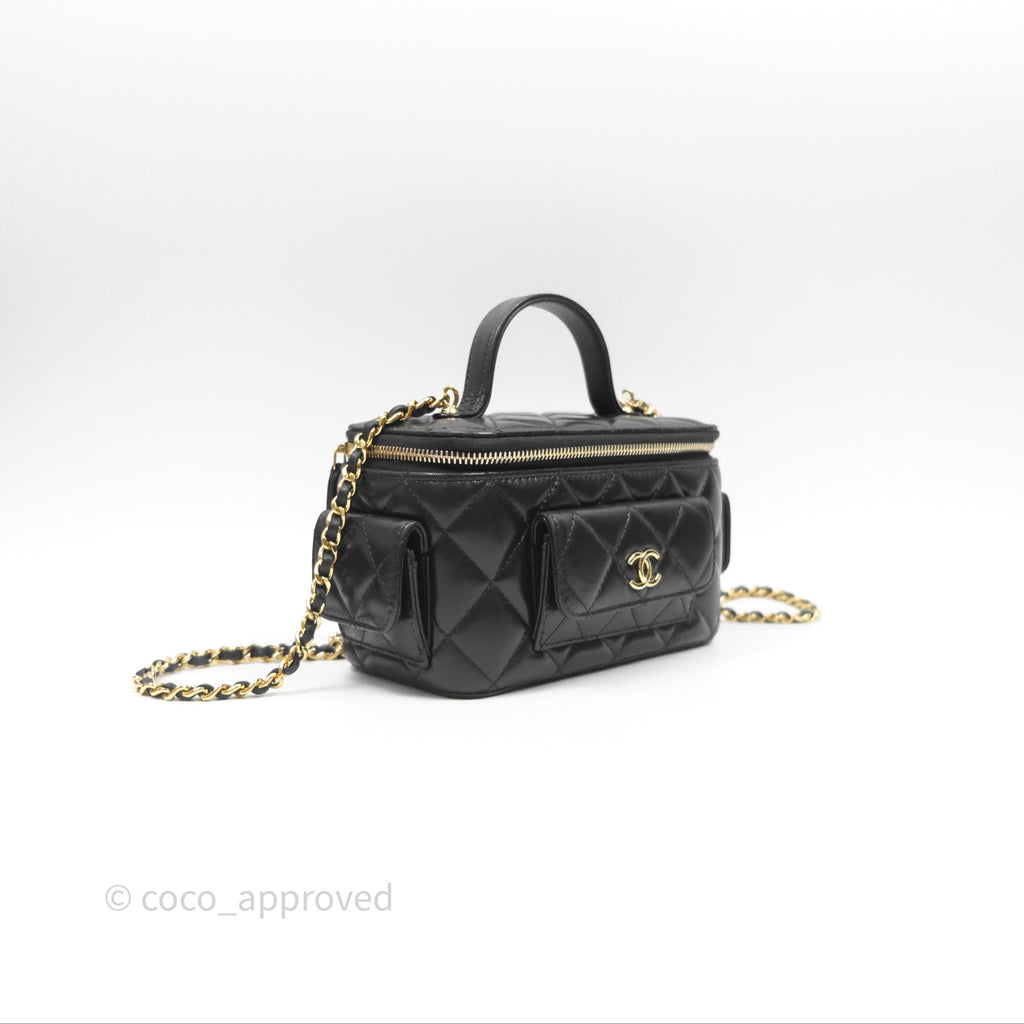 Chanel Cargo Pocket Top Handle Vanity with Chain Black Shiny Lambskin Gold Hardware 22K