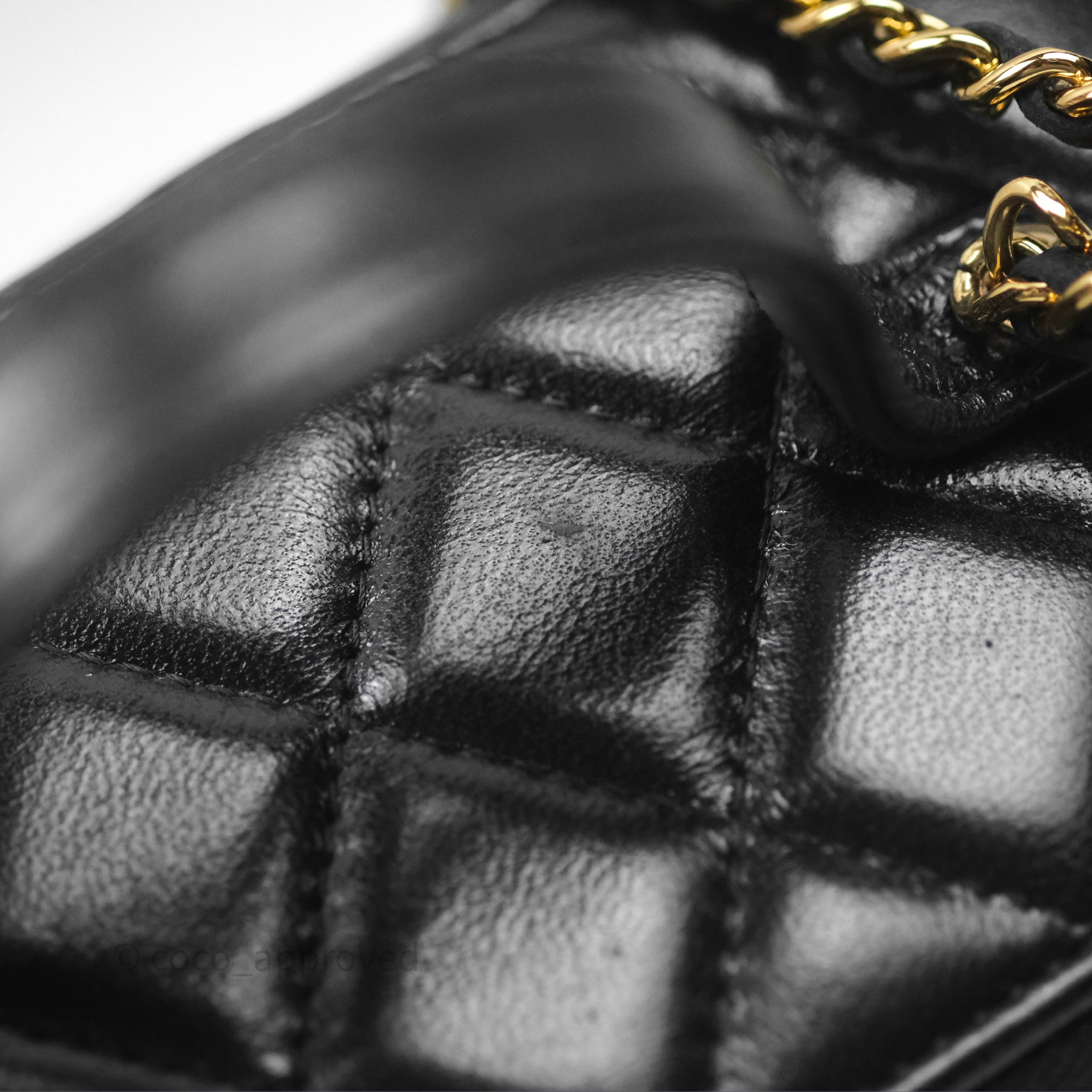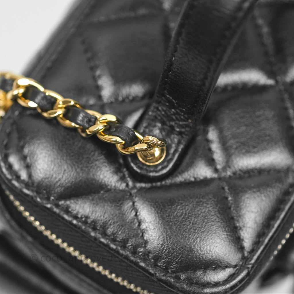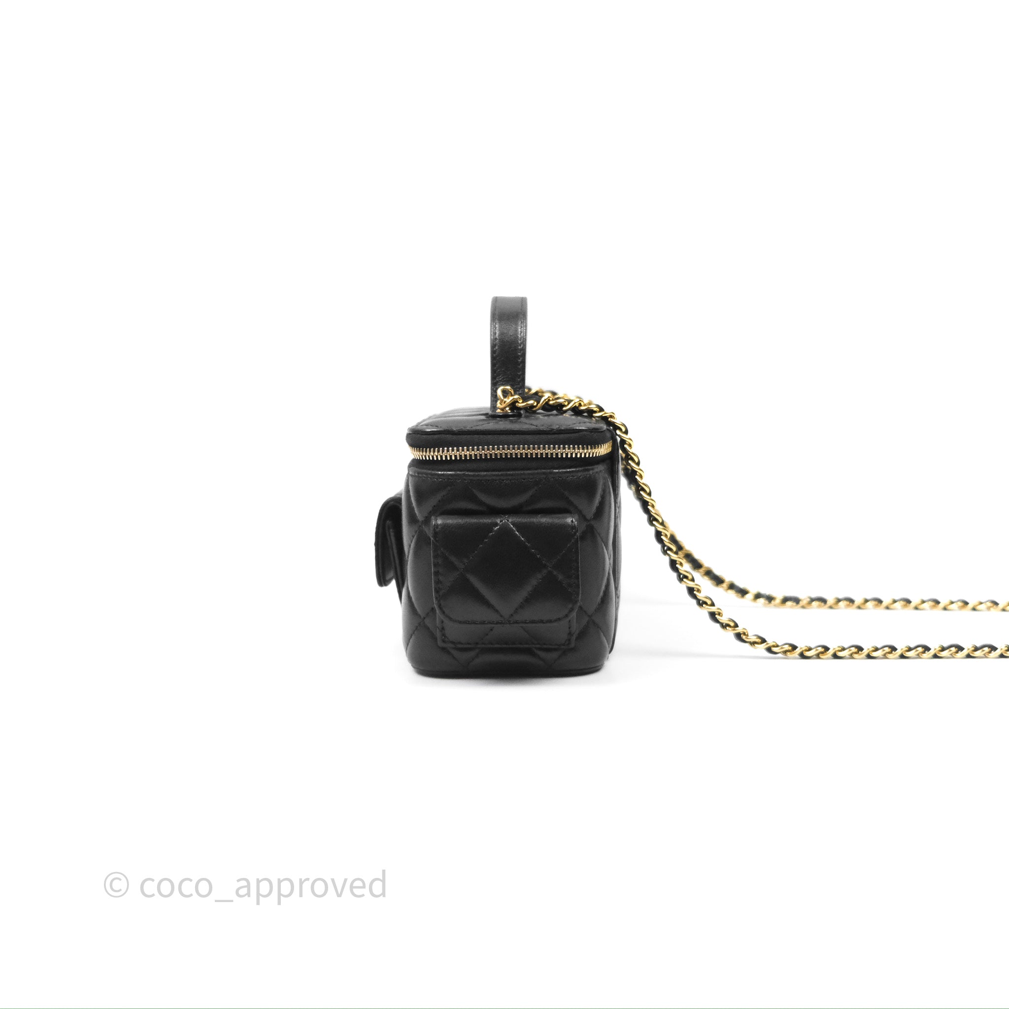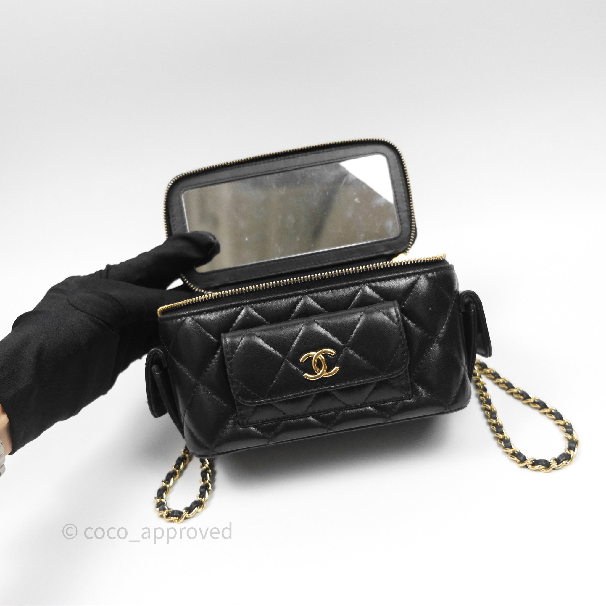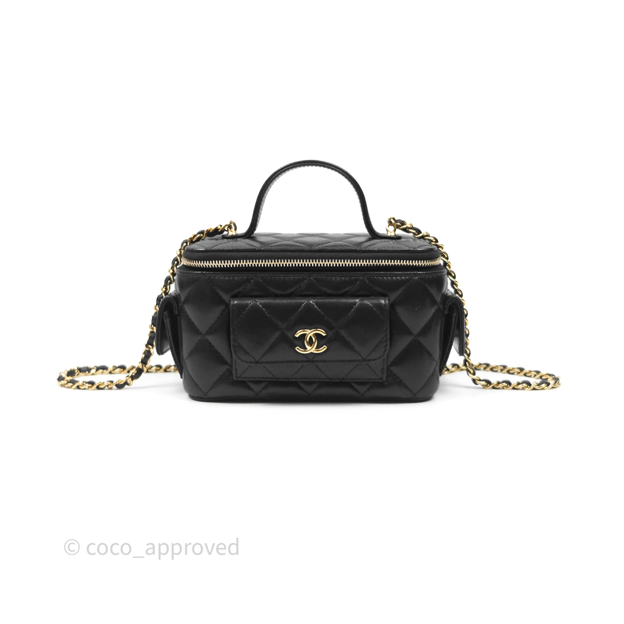 Chanel Cargo Pocket Top Handle Vanity with Chain Black Shiny Lambskin Gold Hardware 22K