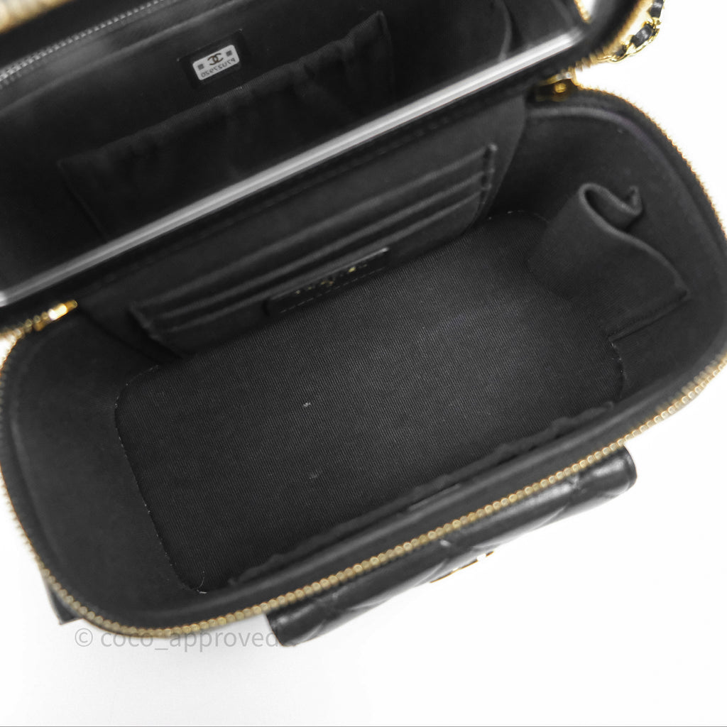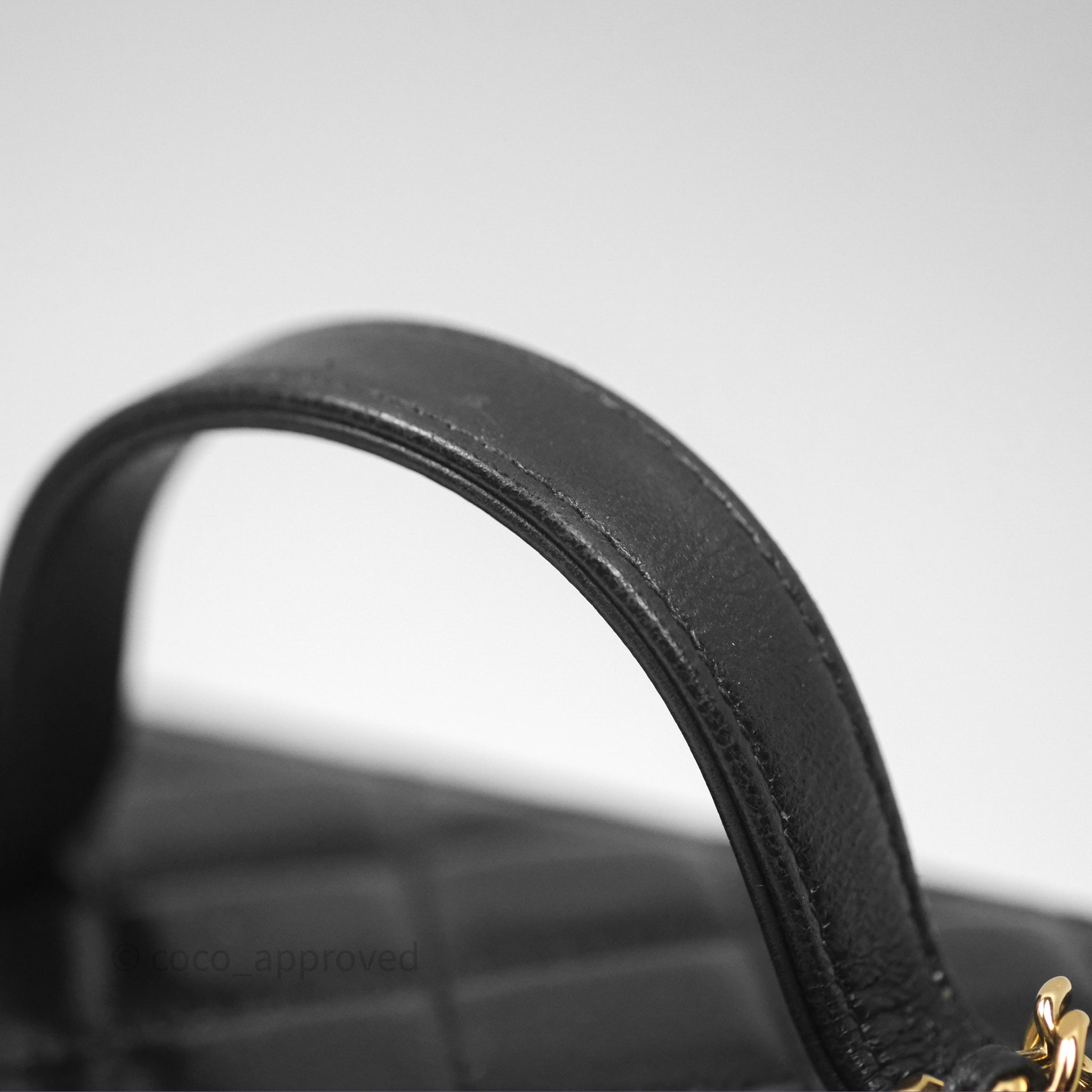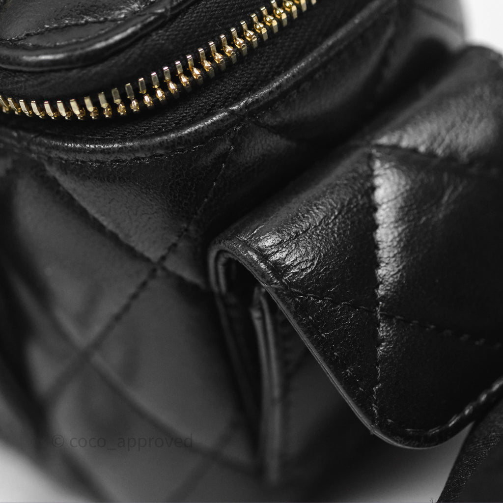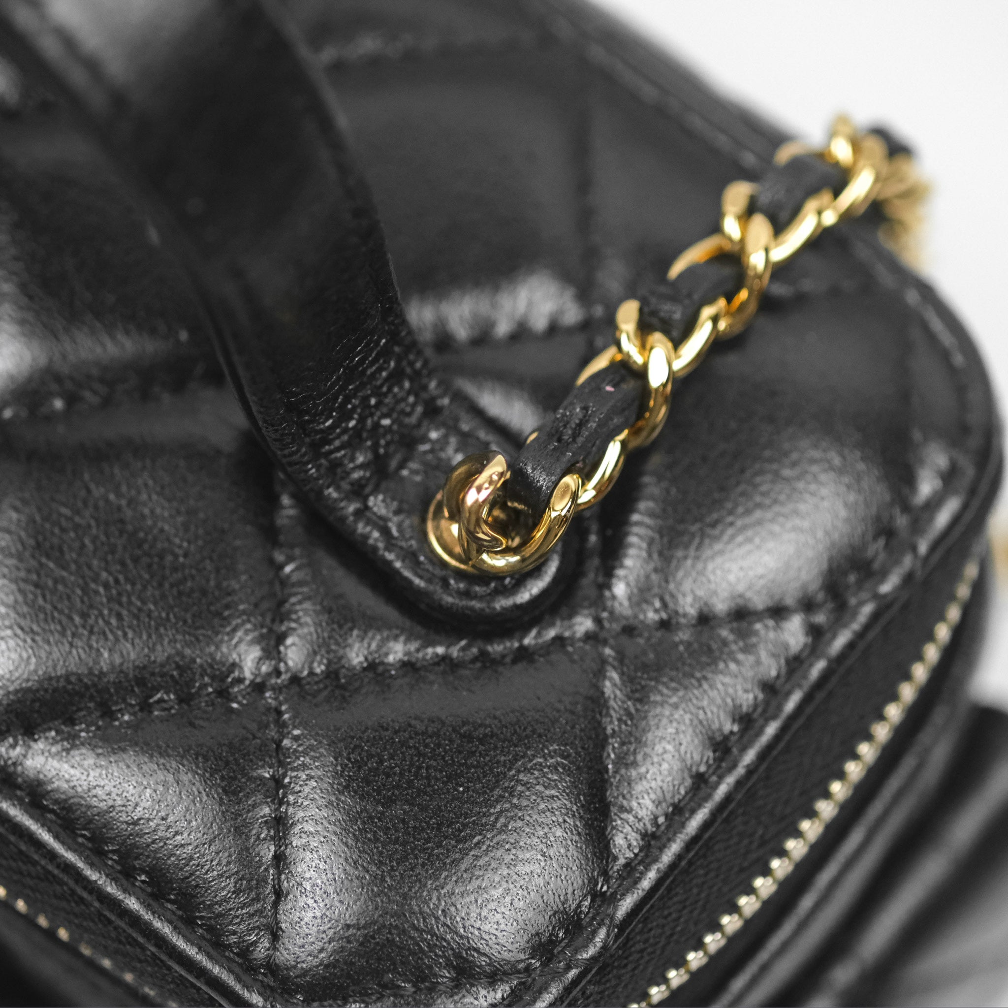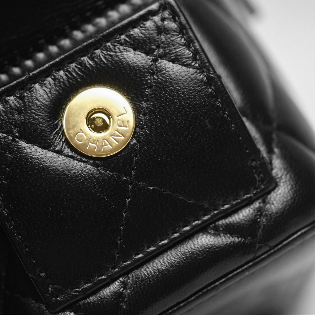 Chanel Cargo Pocket Top Handle Vanity with Chain Black Shiny Lambskin Gold Hardware 22K