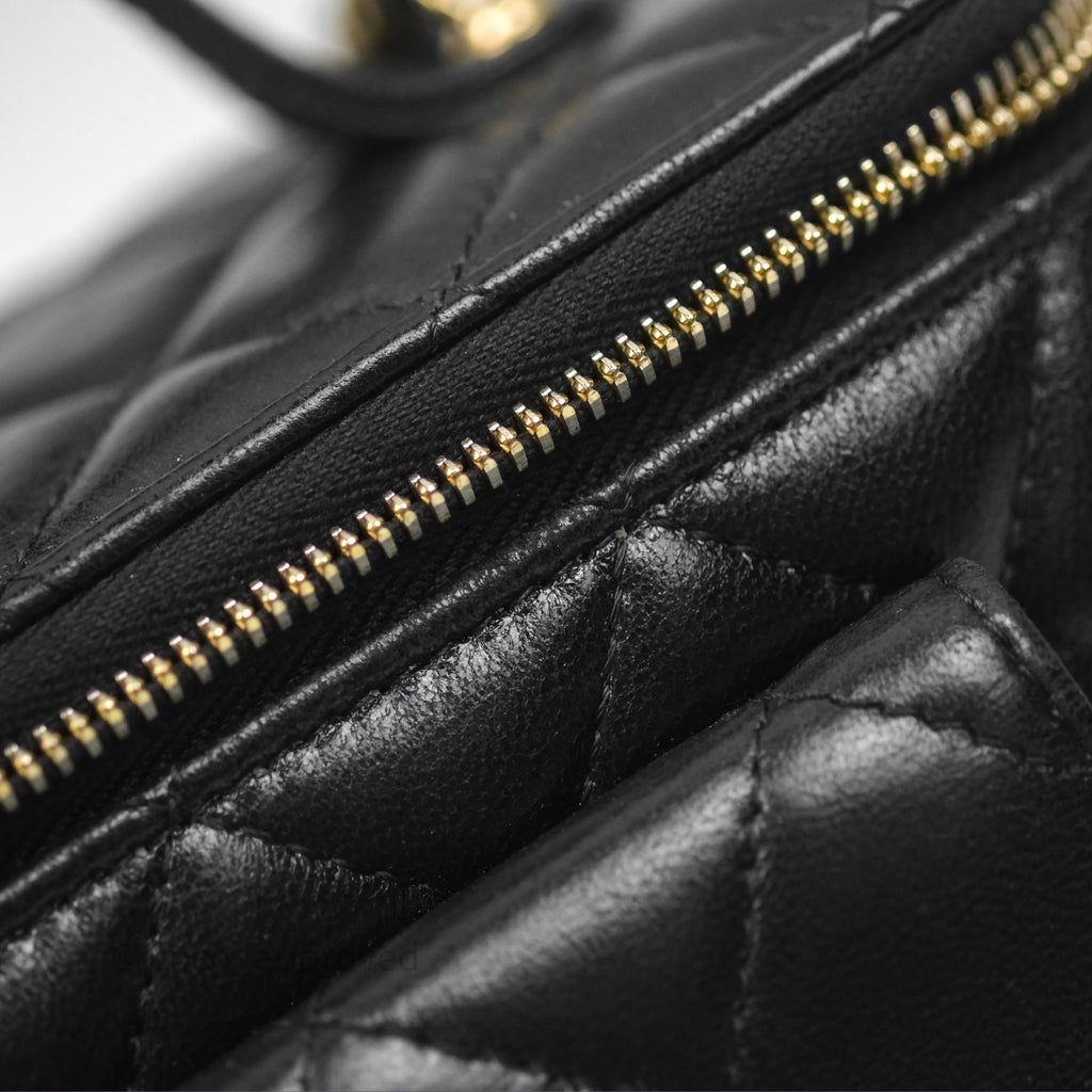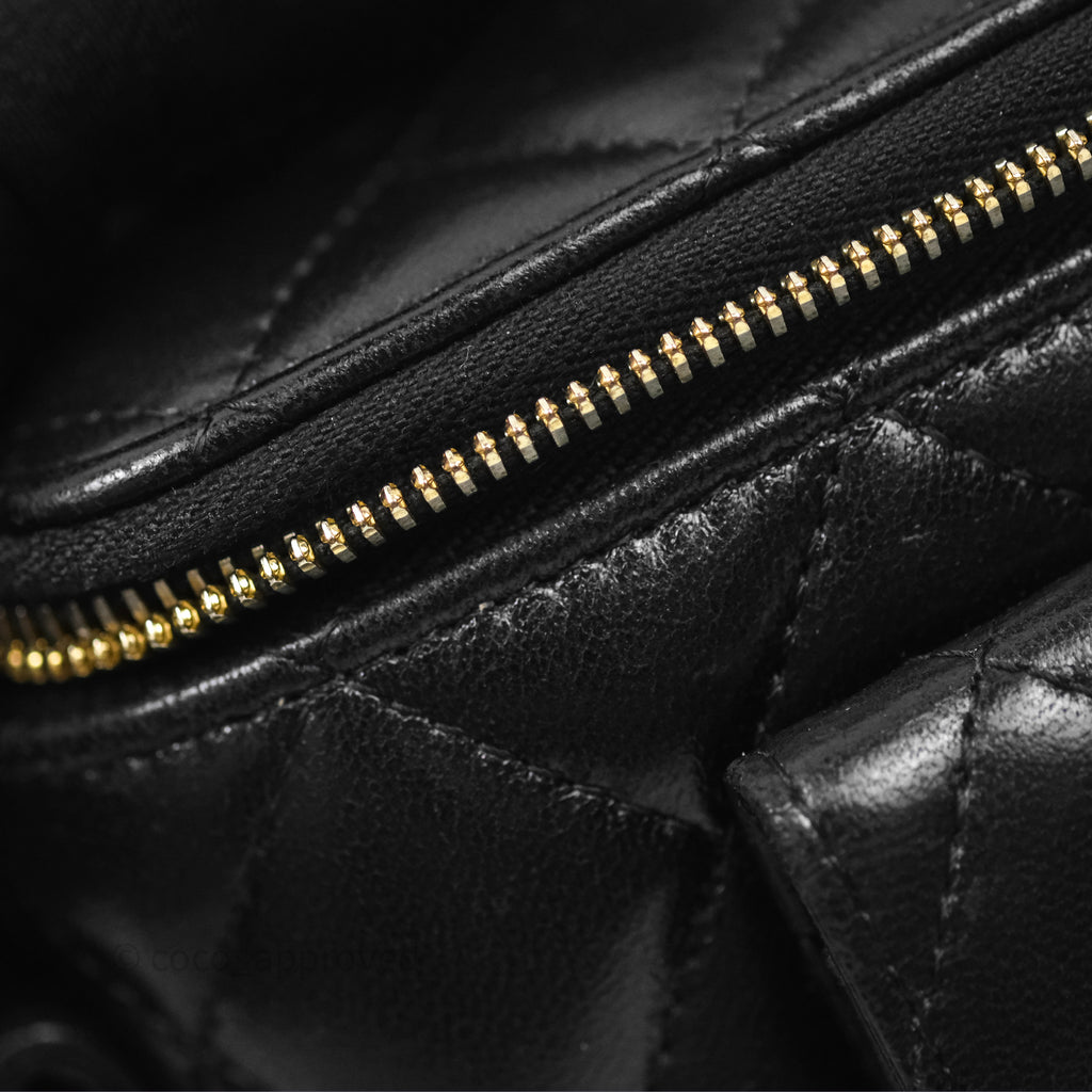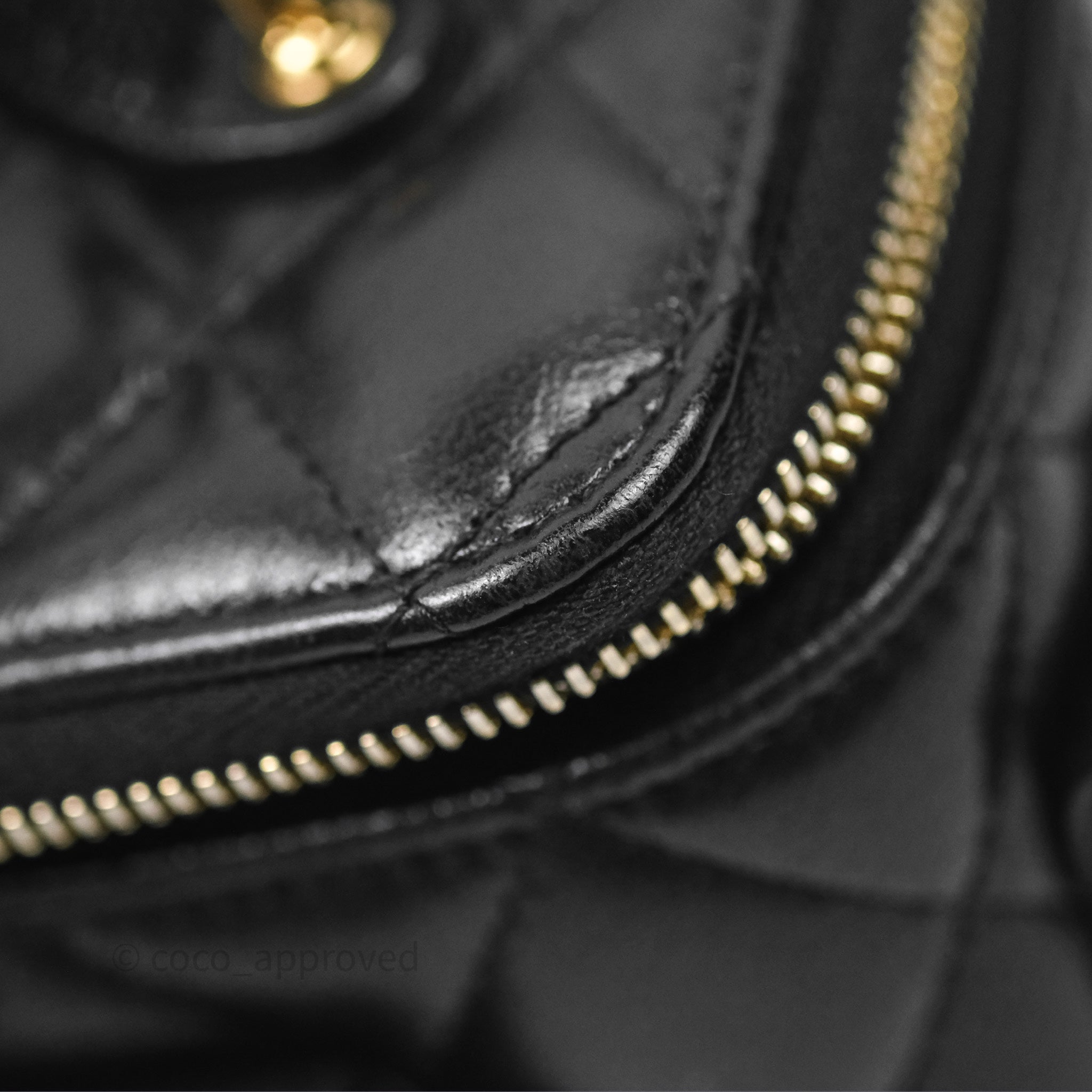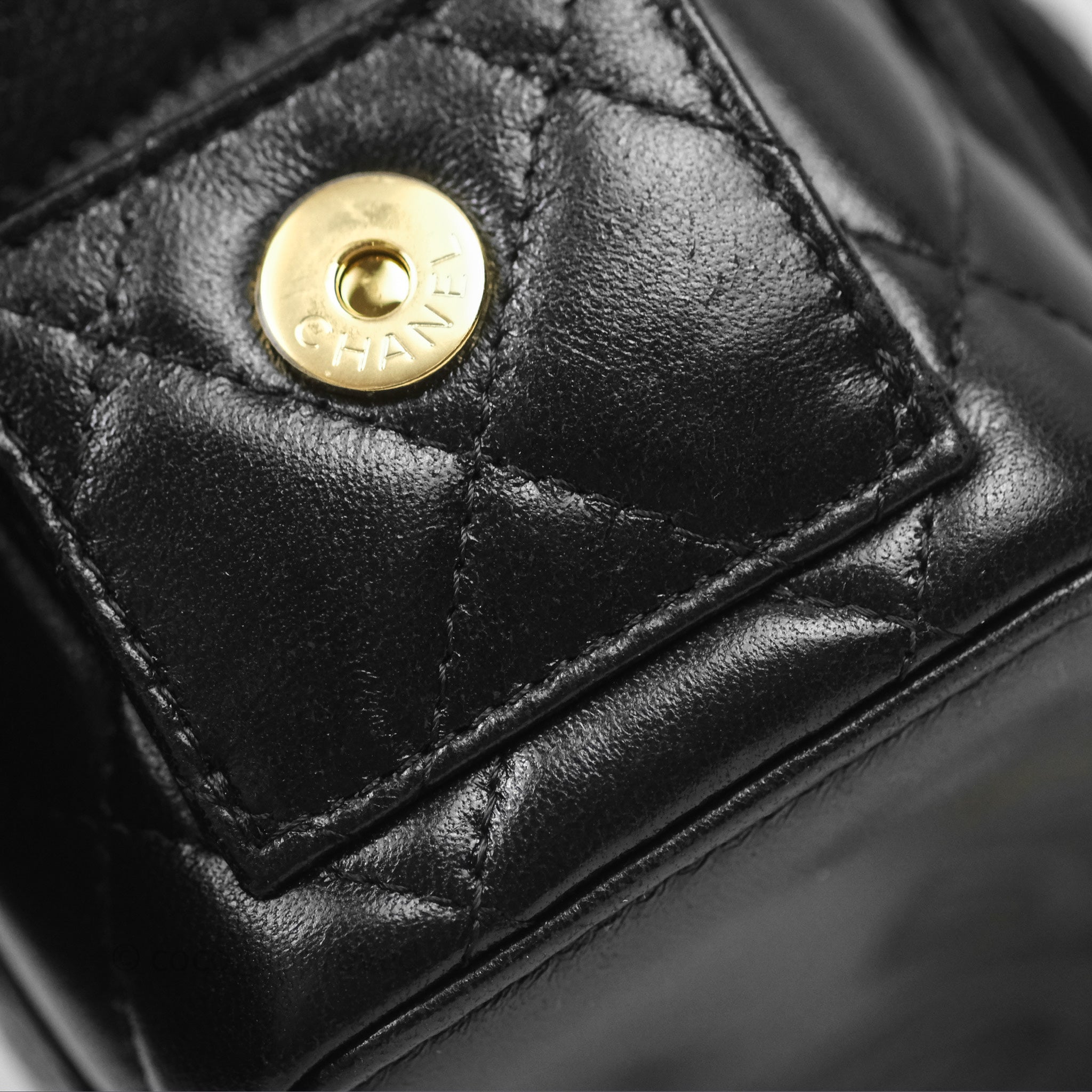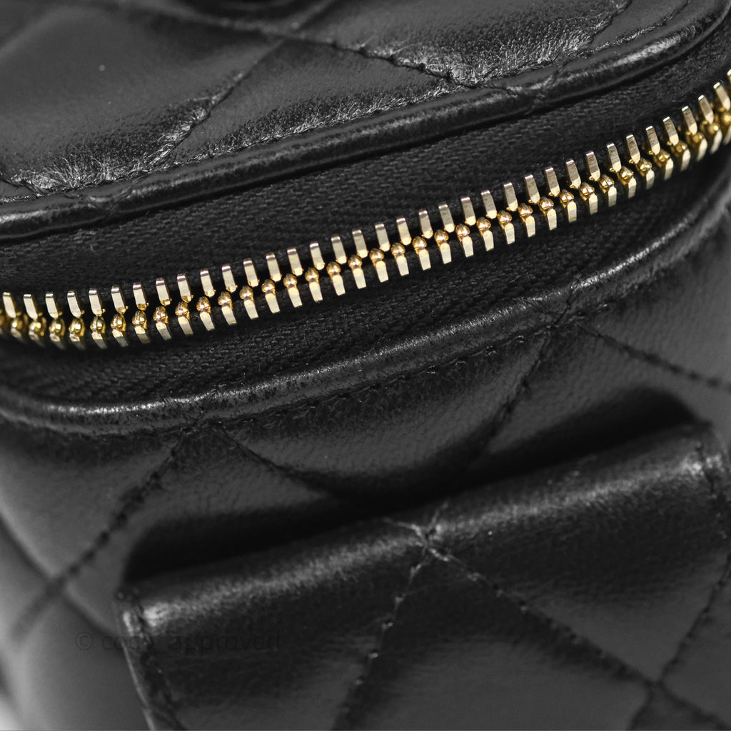 Chanel Cargo Pocket Top Handle Vanity with Chain Black Shiny Lambskin Gold Hardware 22K