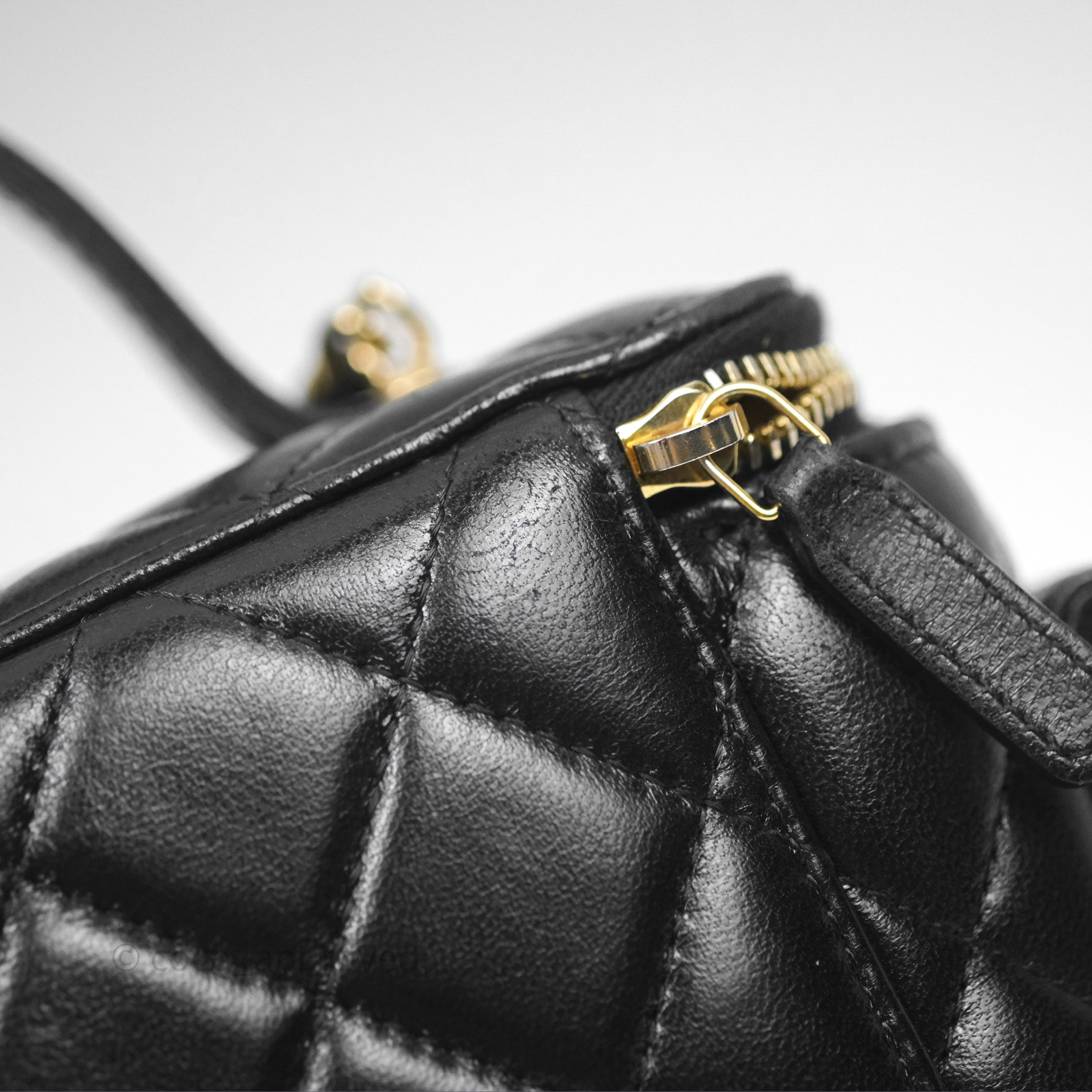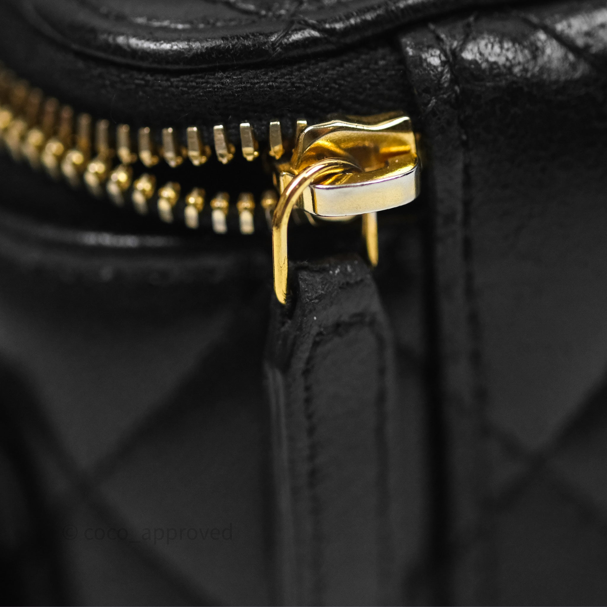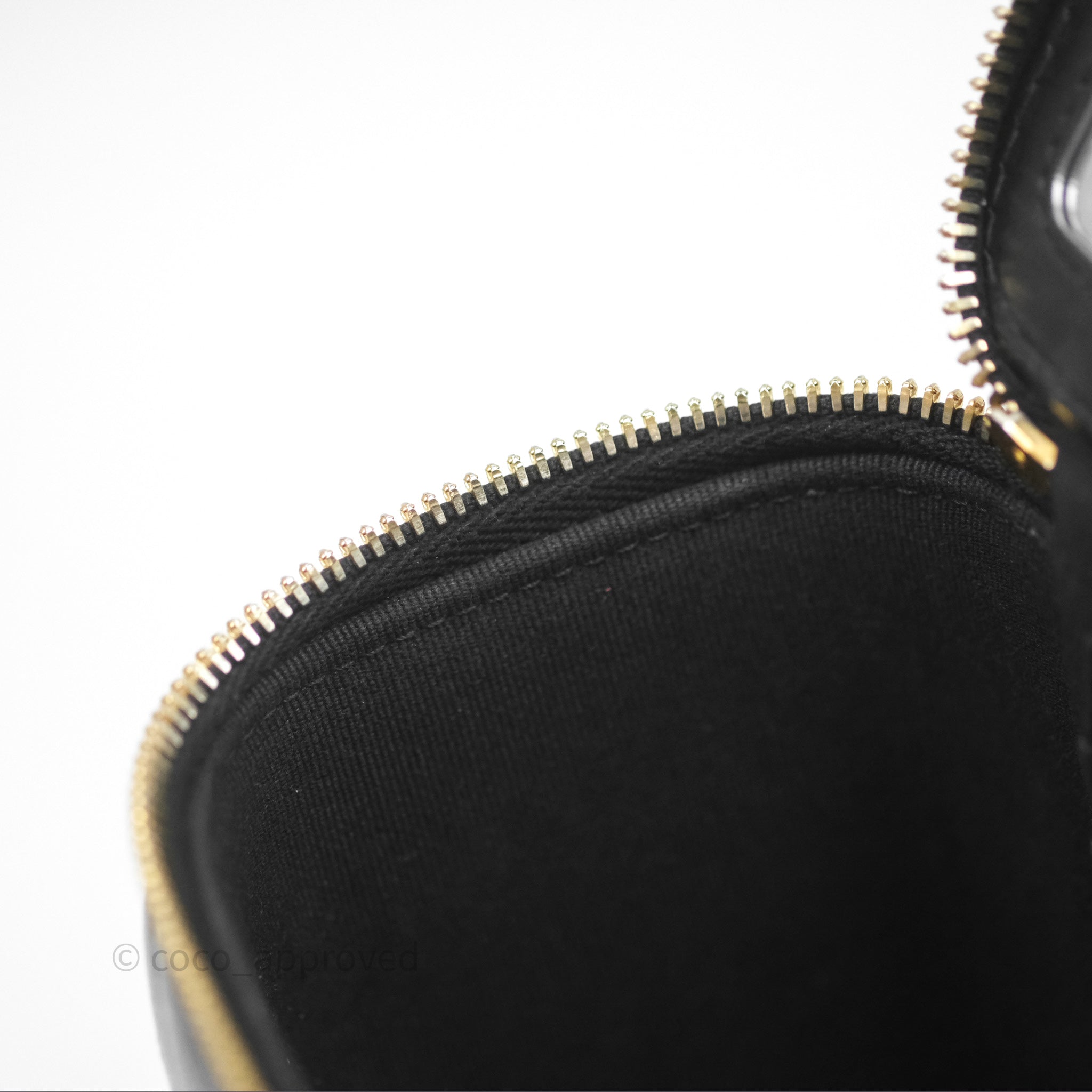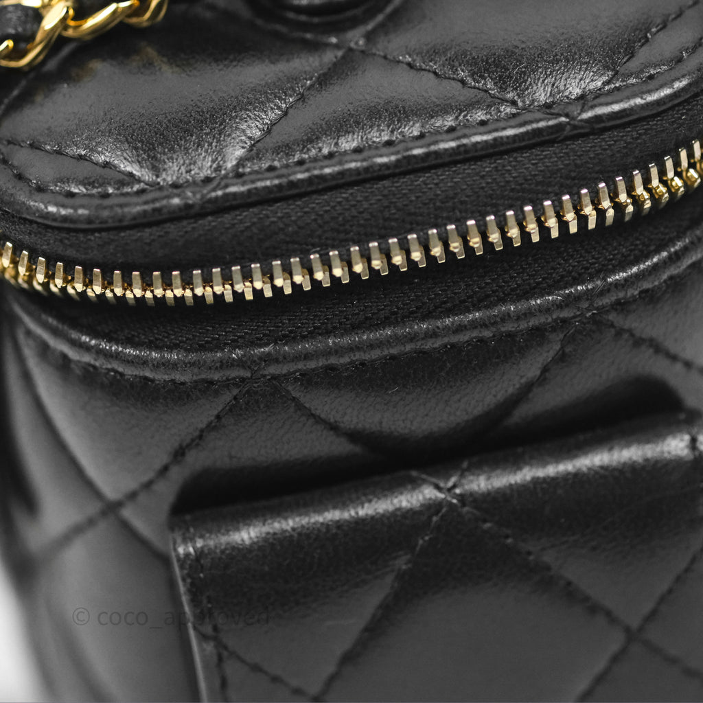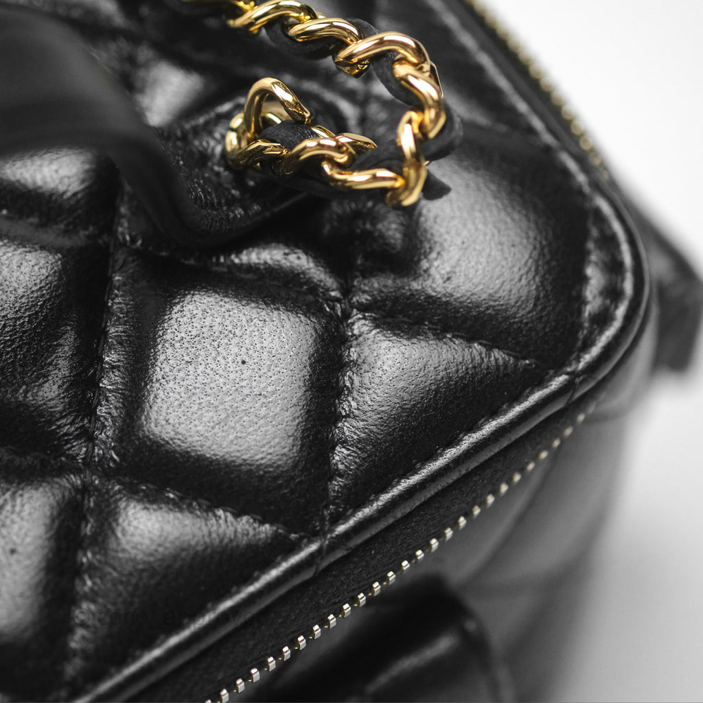 Chanel Cargo Pocket Top Handle Vanity with Chain Black Shiny Lambskin Gold Hardware 22K