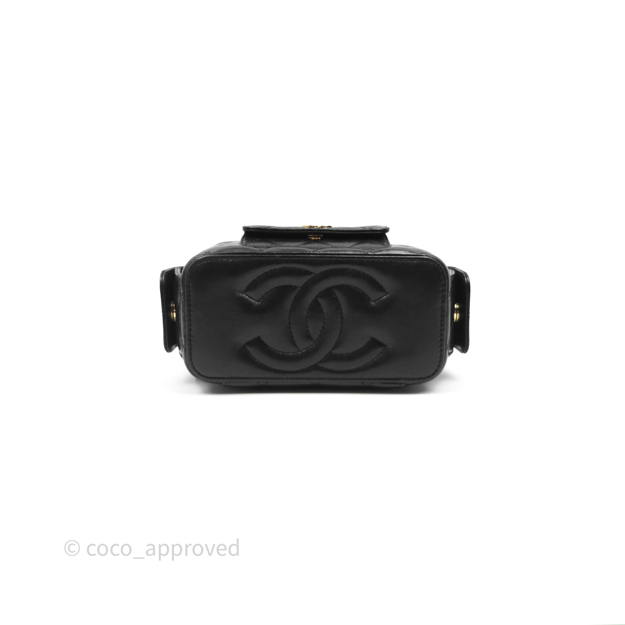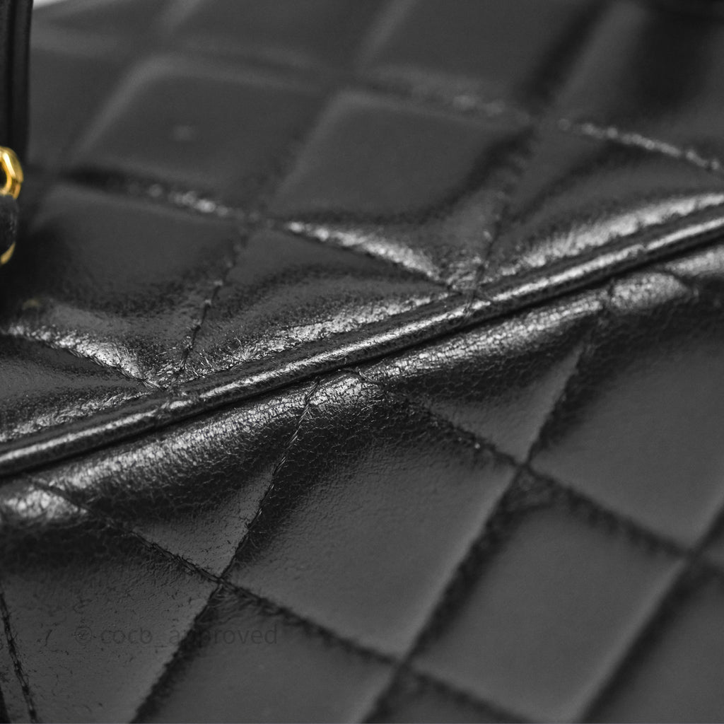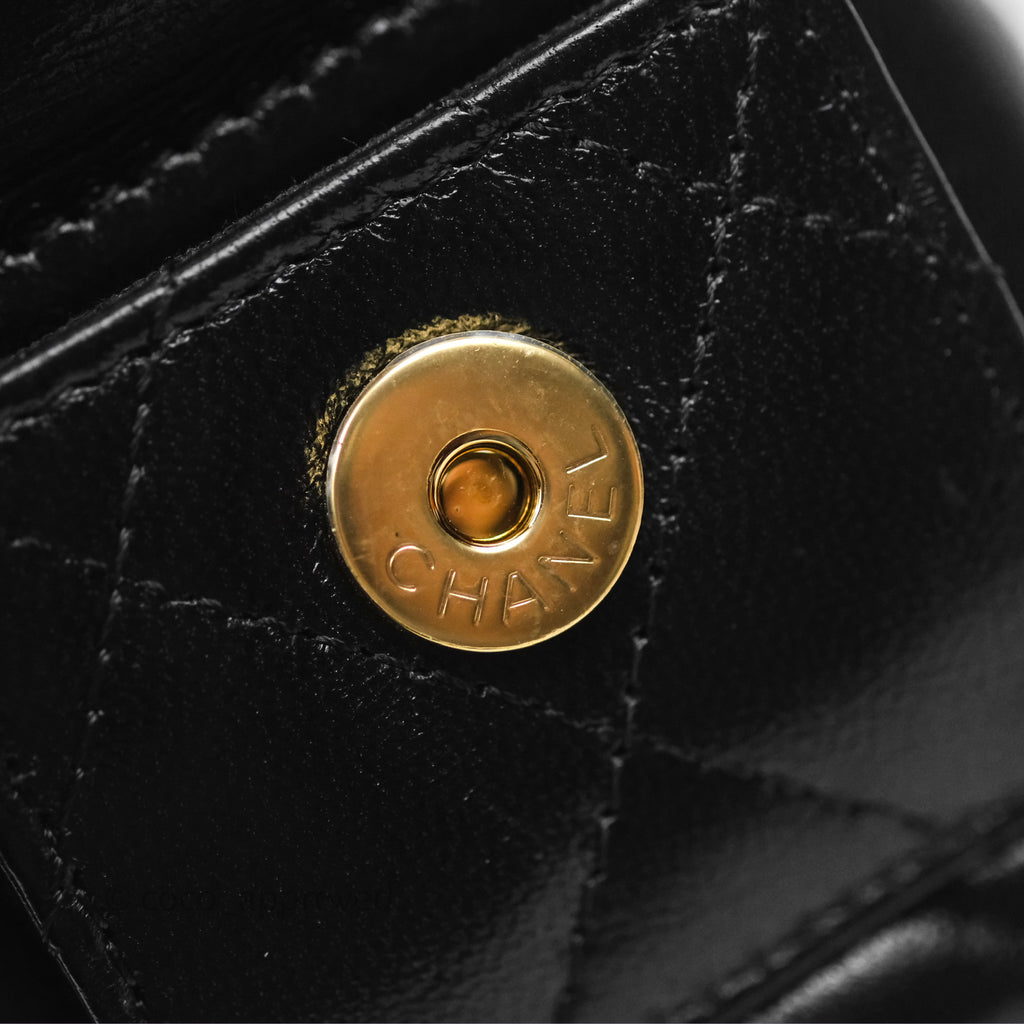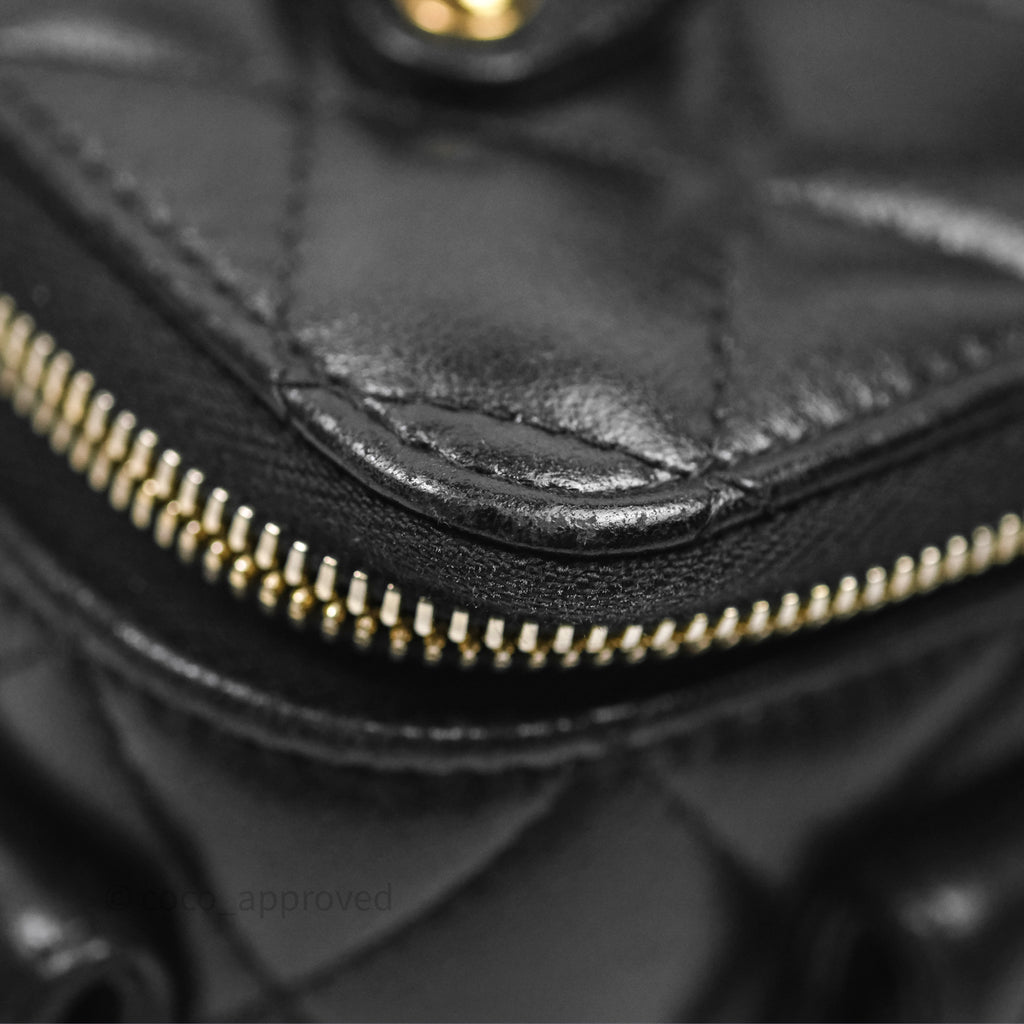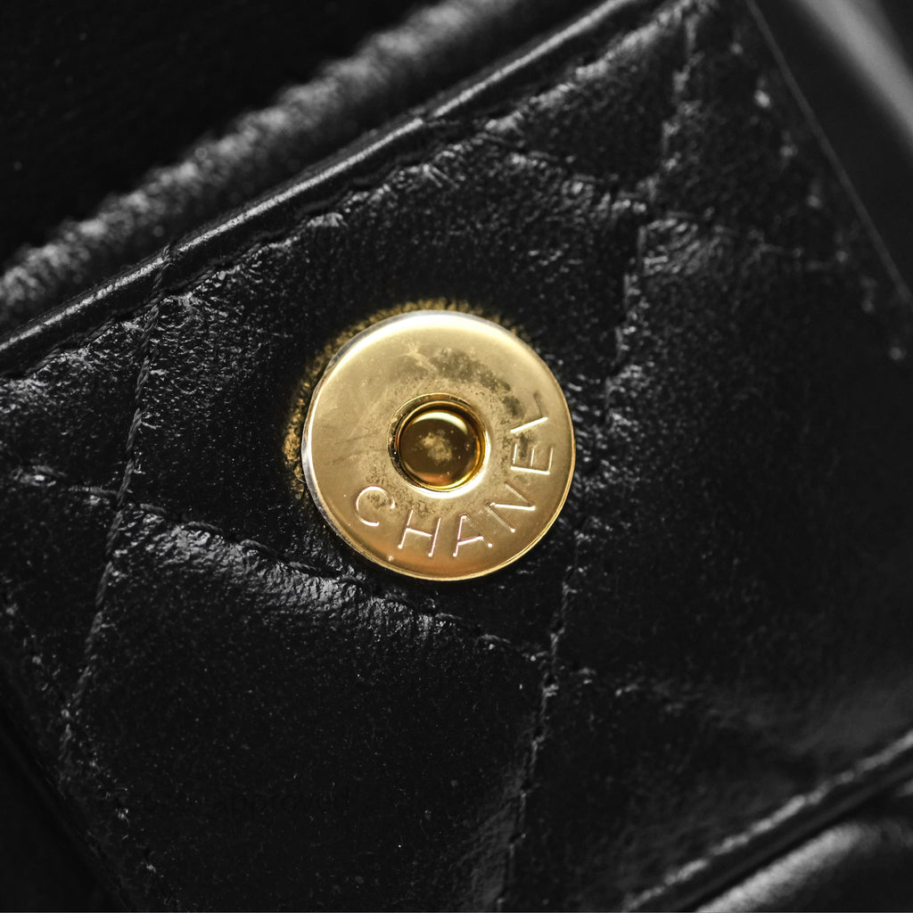 Chanel Cargo Pocket Top Handle Vanity with Chain Black Shiny Lambskin Gold Hardware 22K