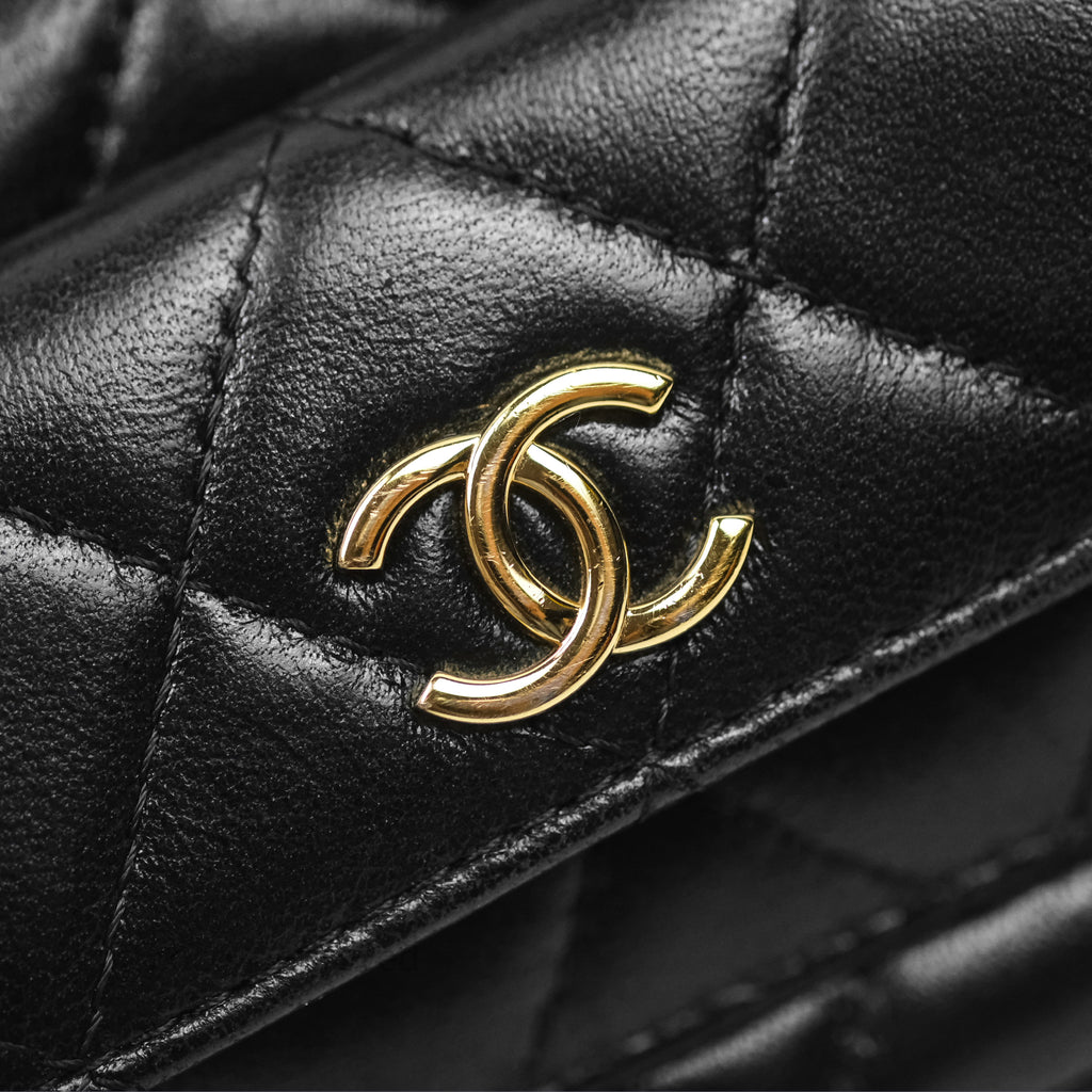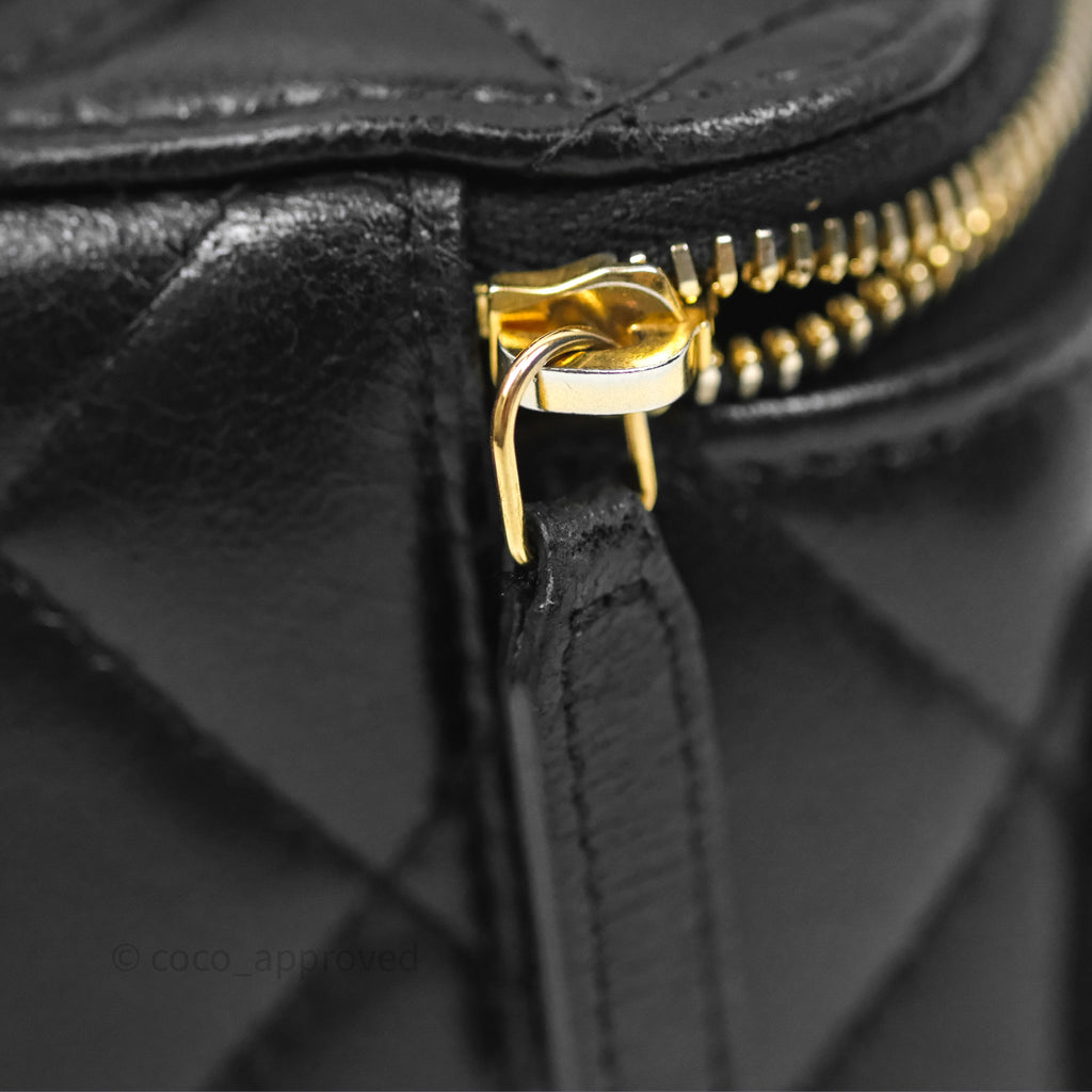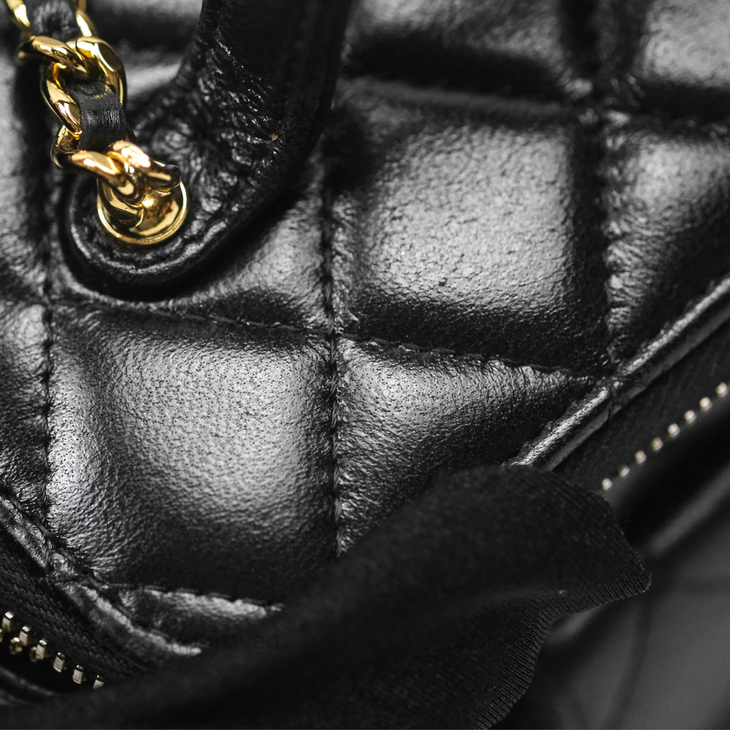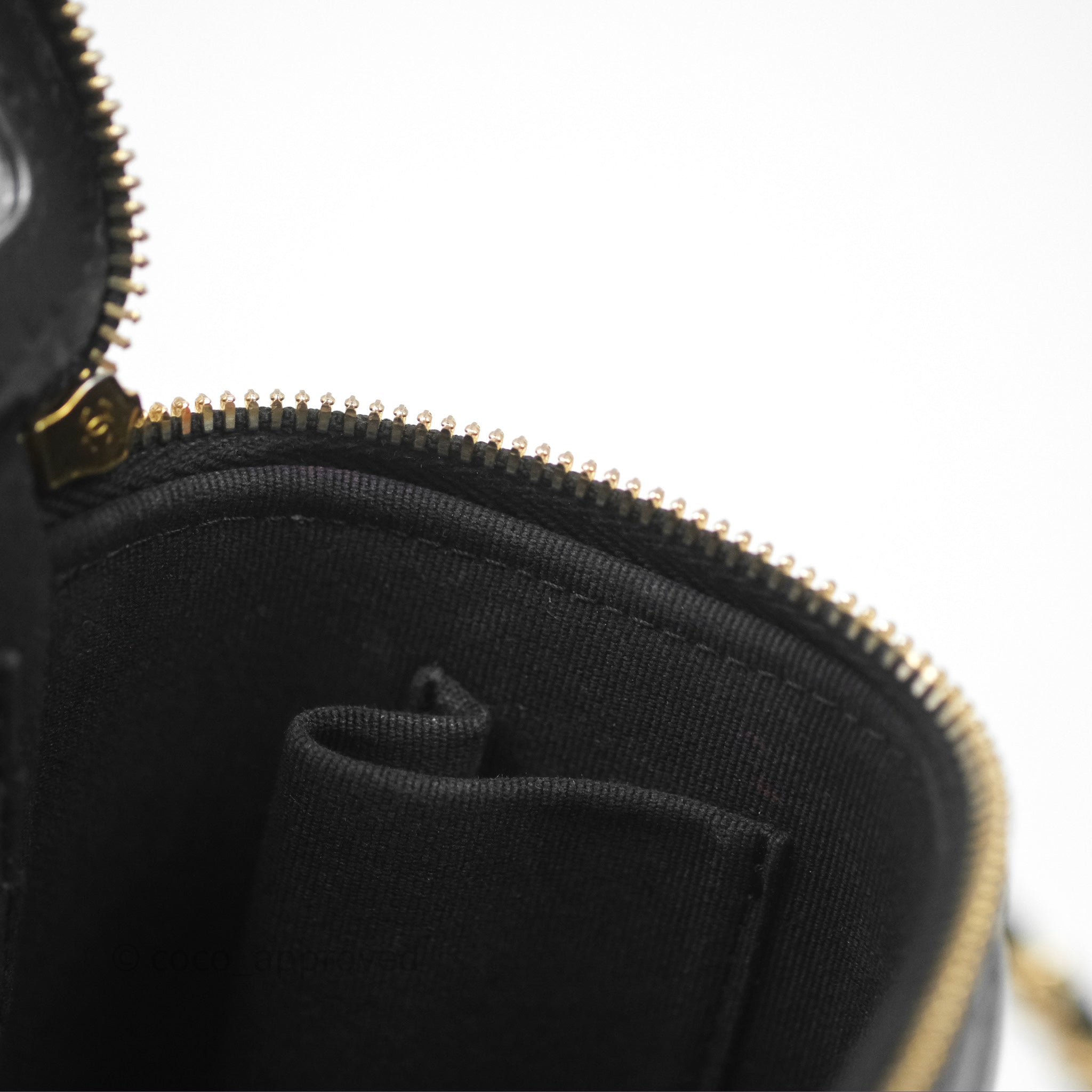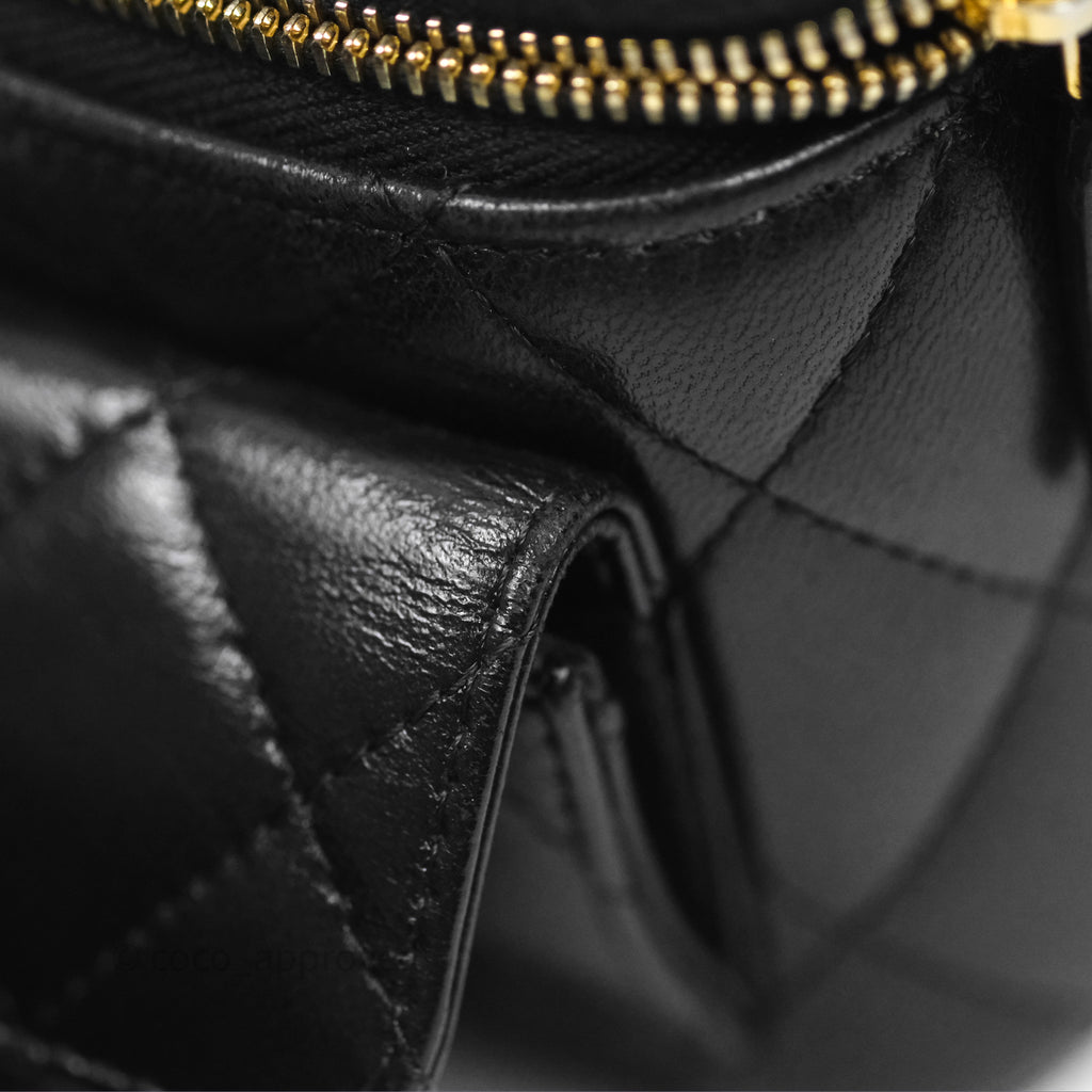 Chanel Cargo Pocket Top Handle Vanity with Chain Black Shiny Lambskin Gold Hardware 22K