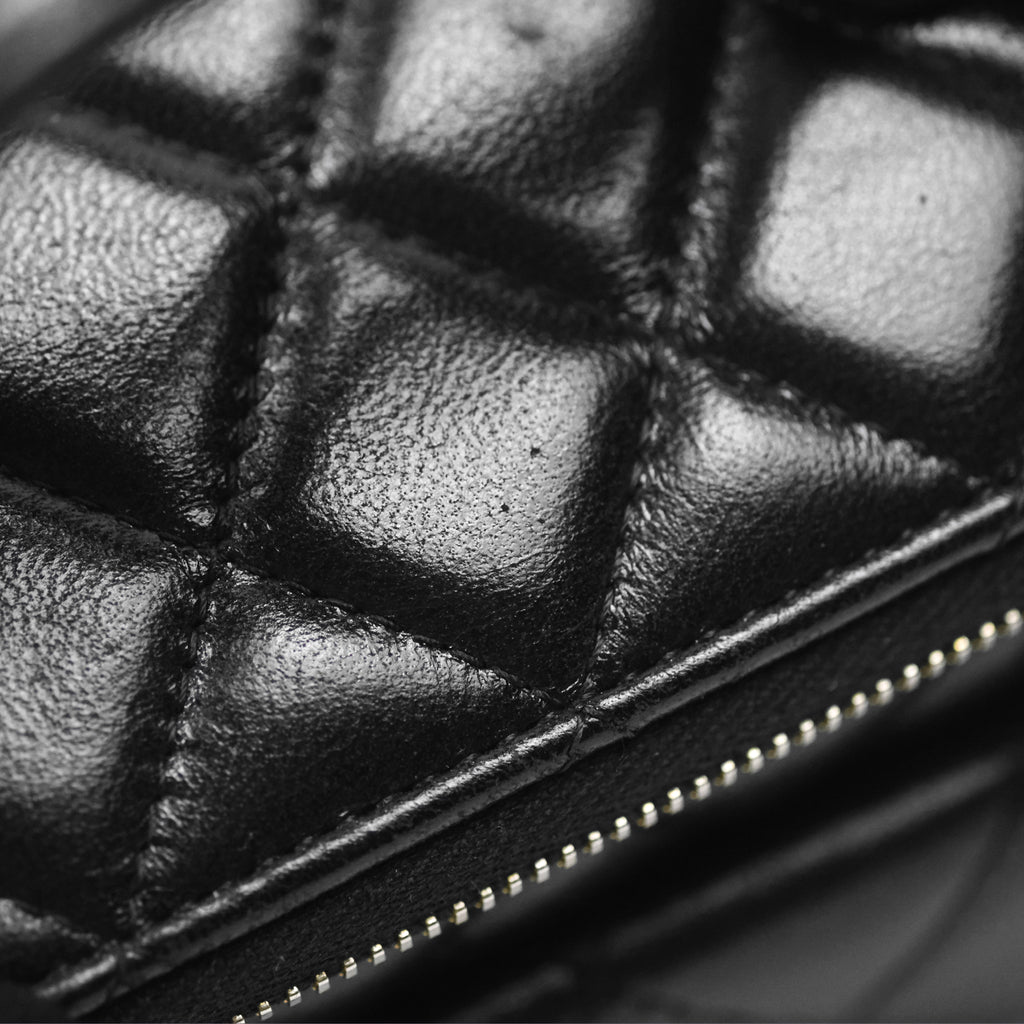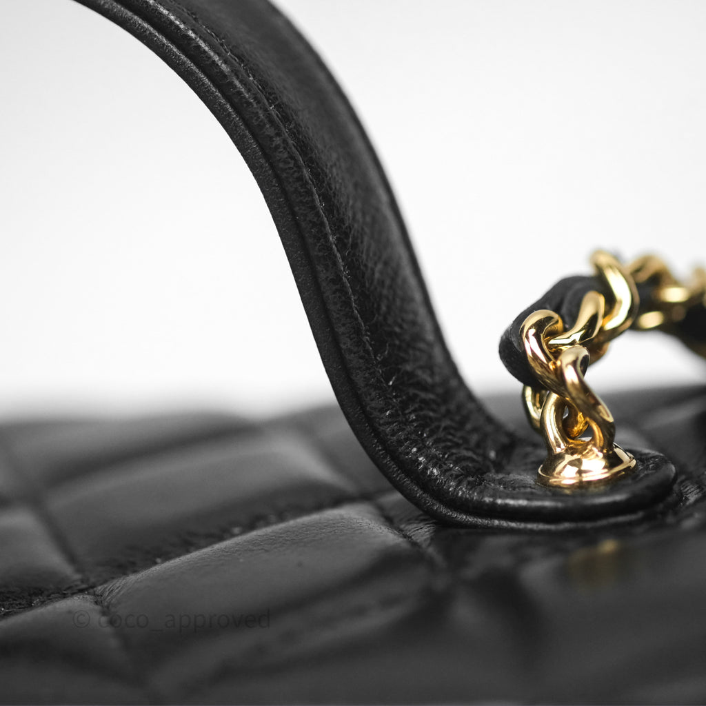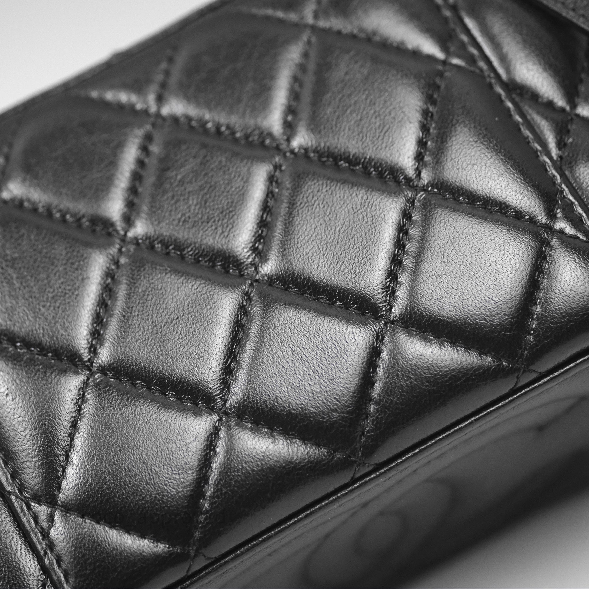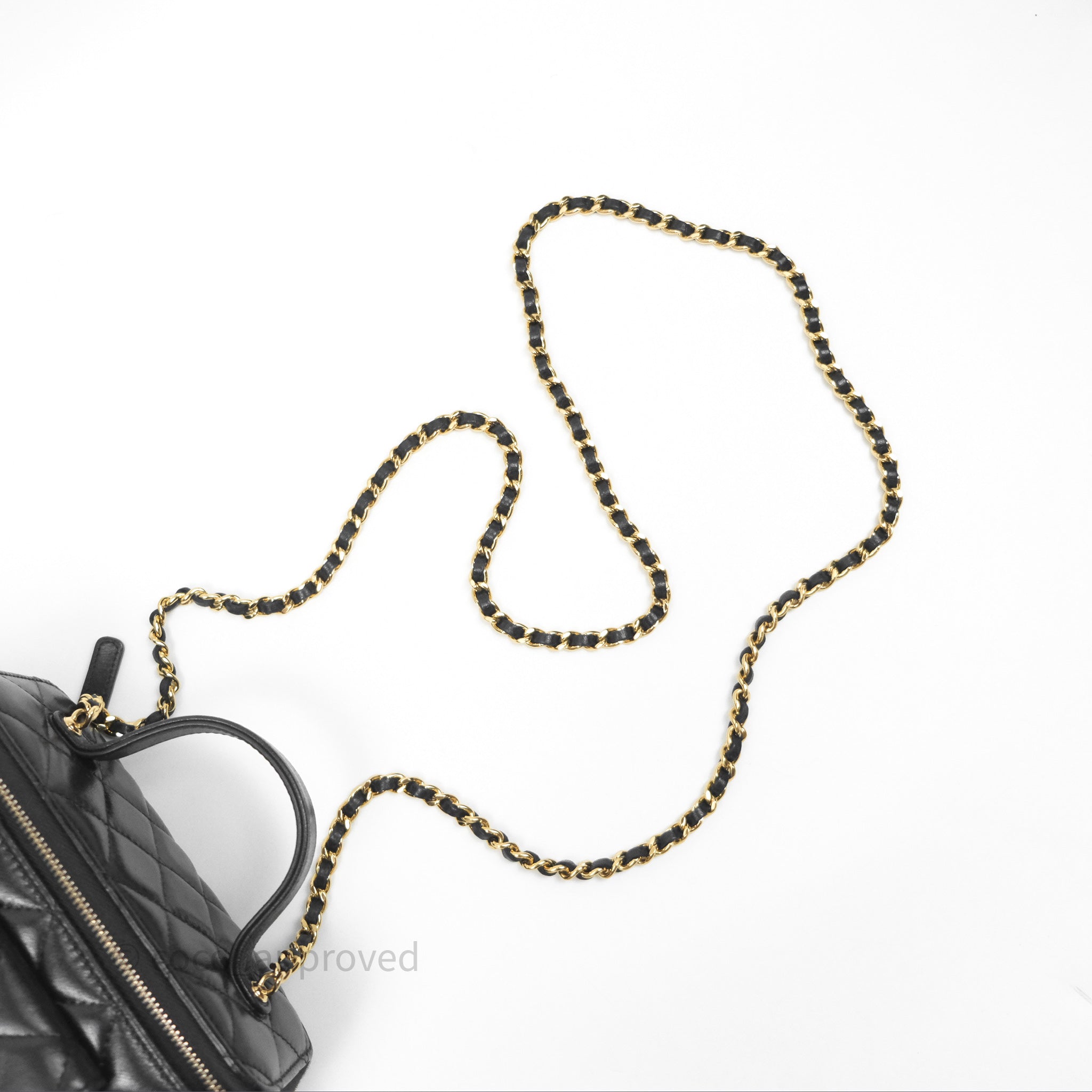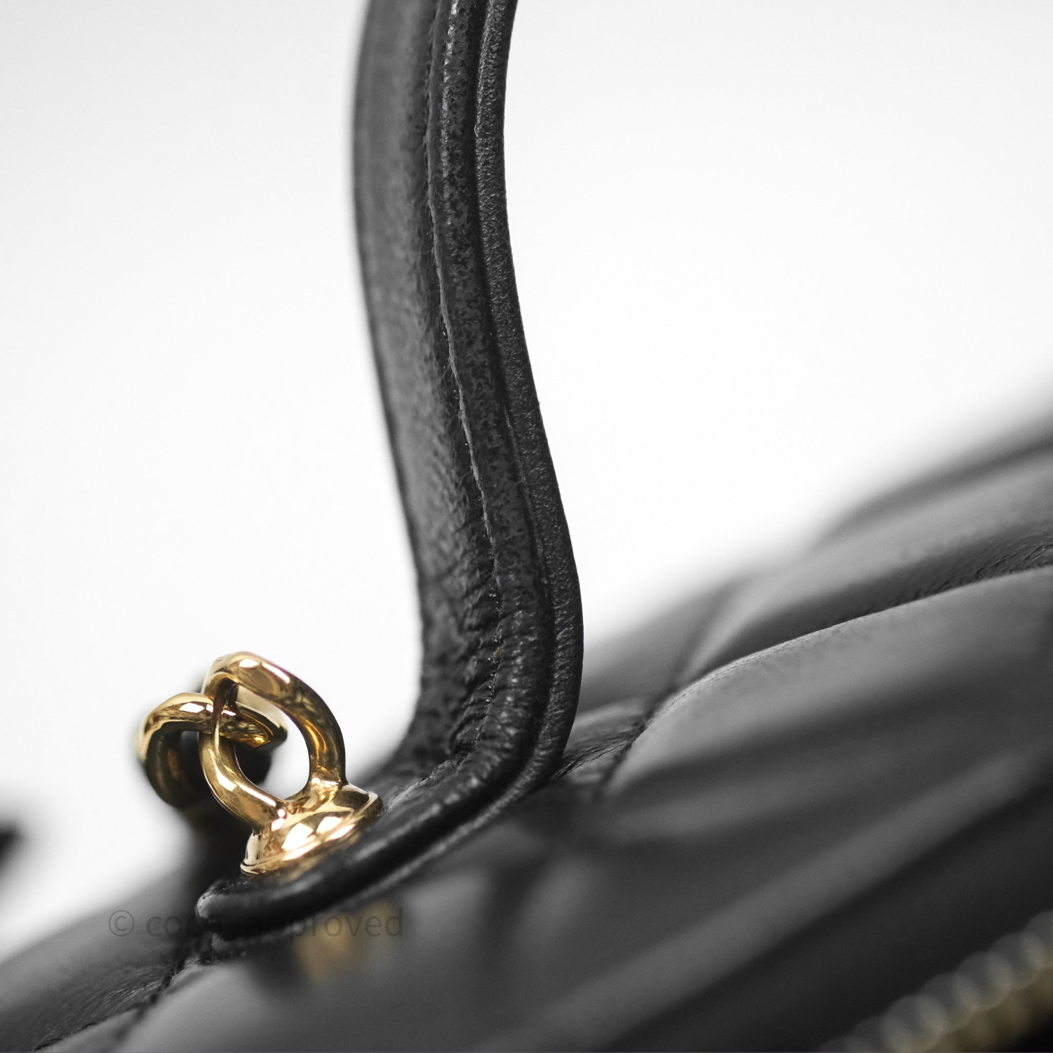 Chanel Cargo Pocket Top Handle Vanity with Chain Black Shiny Lambskin Gold Hardware 22K