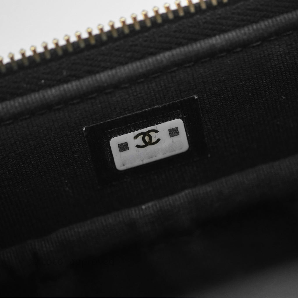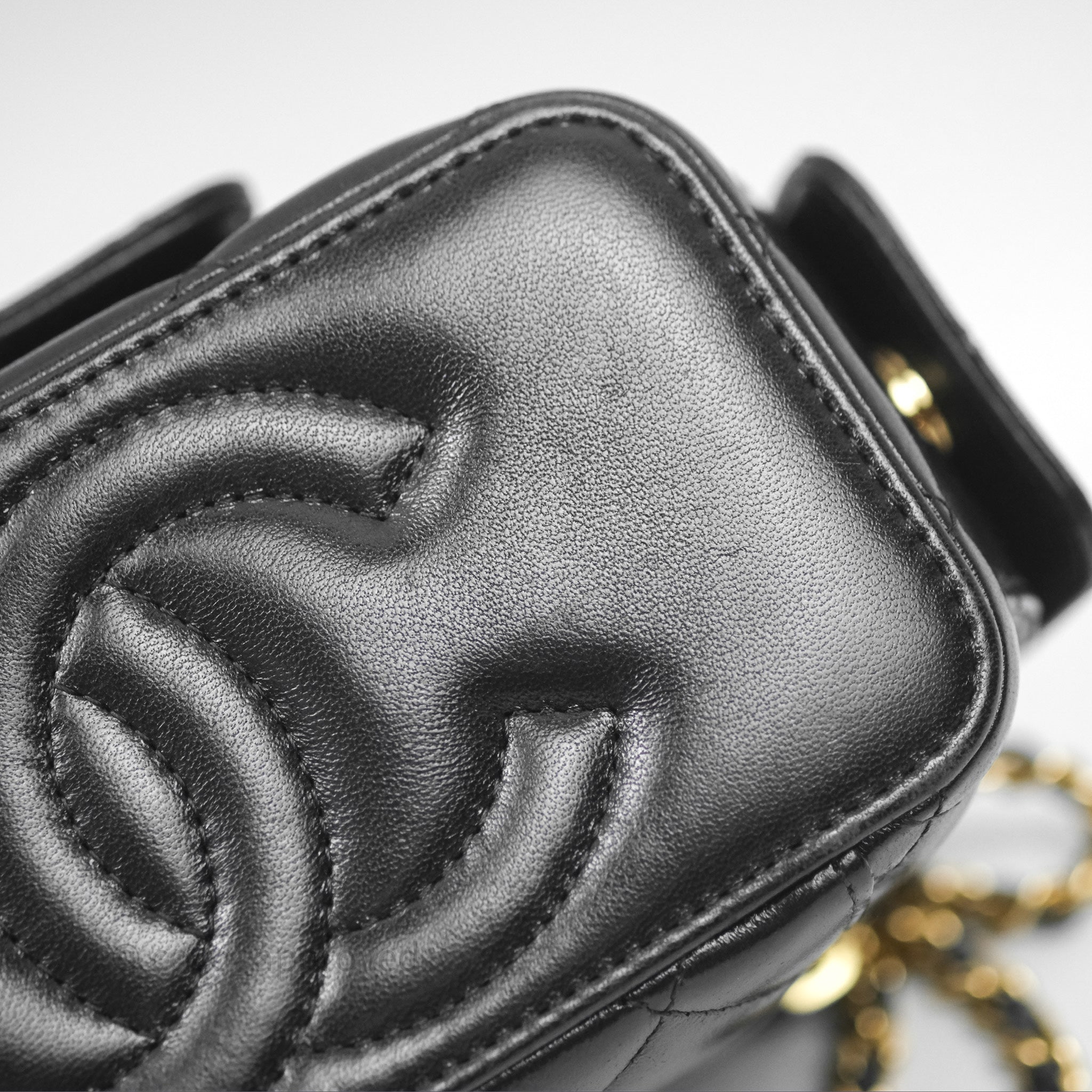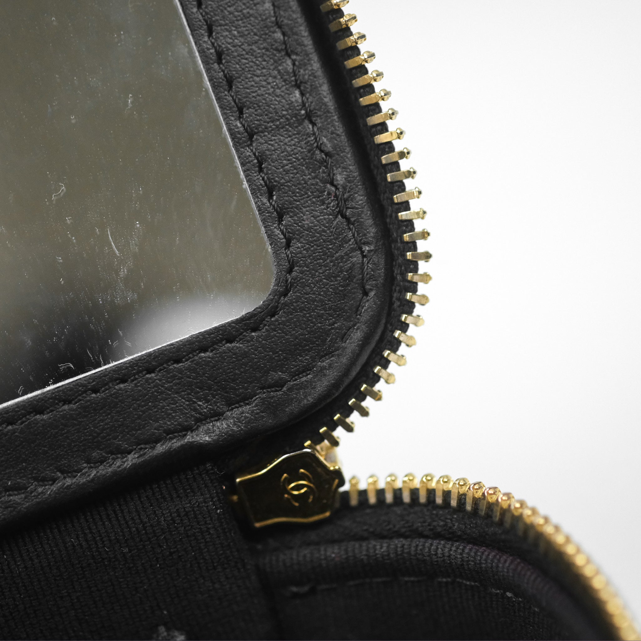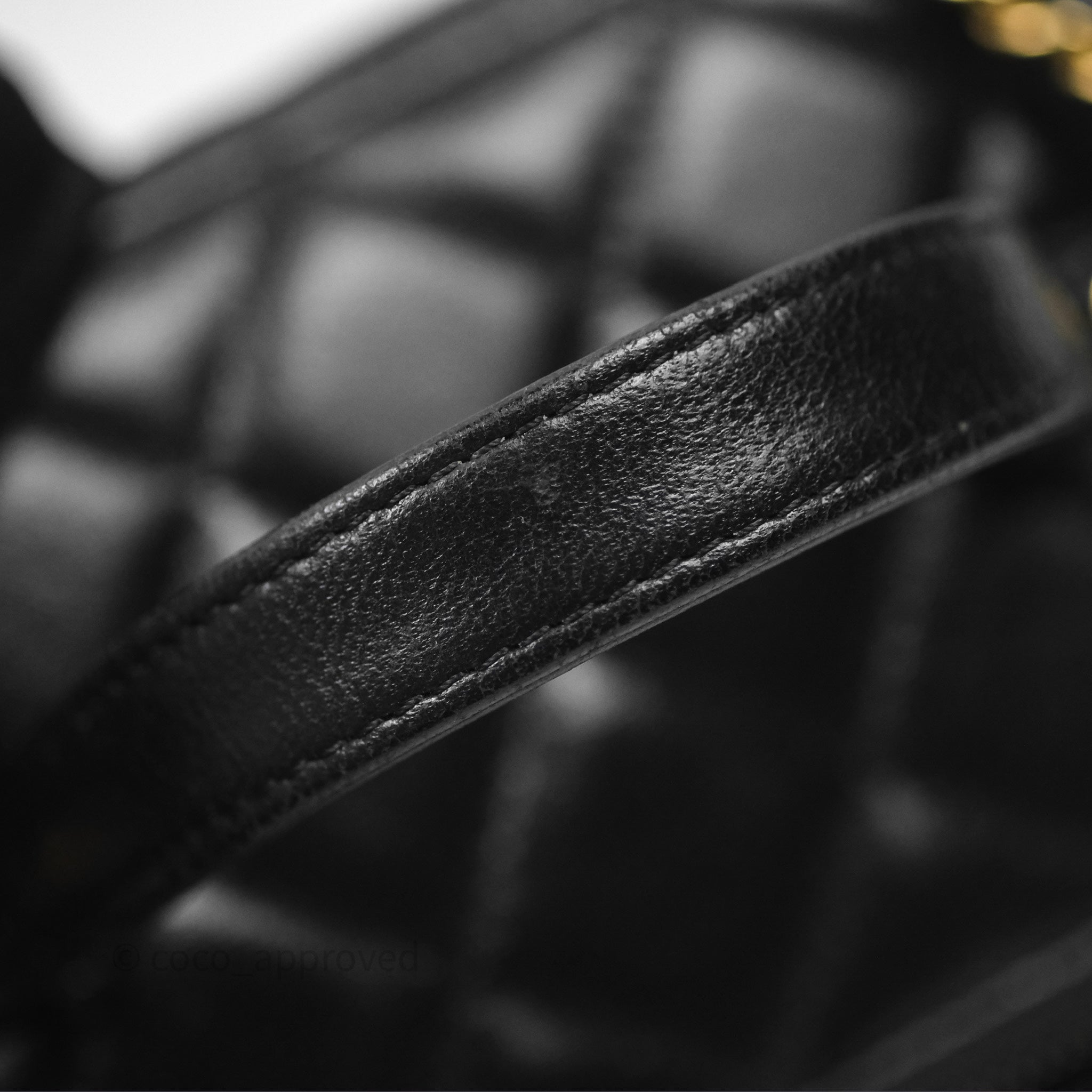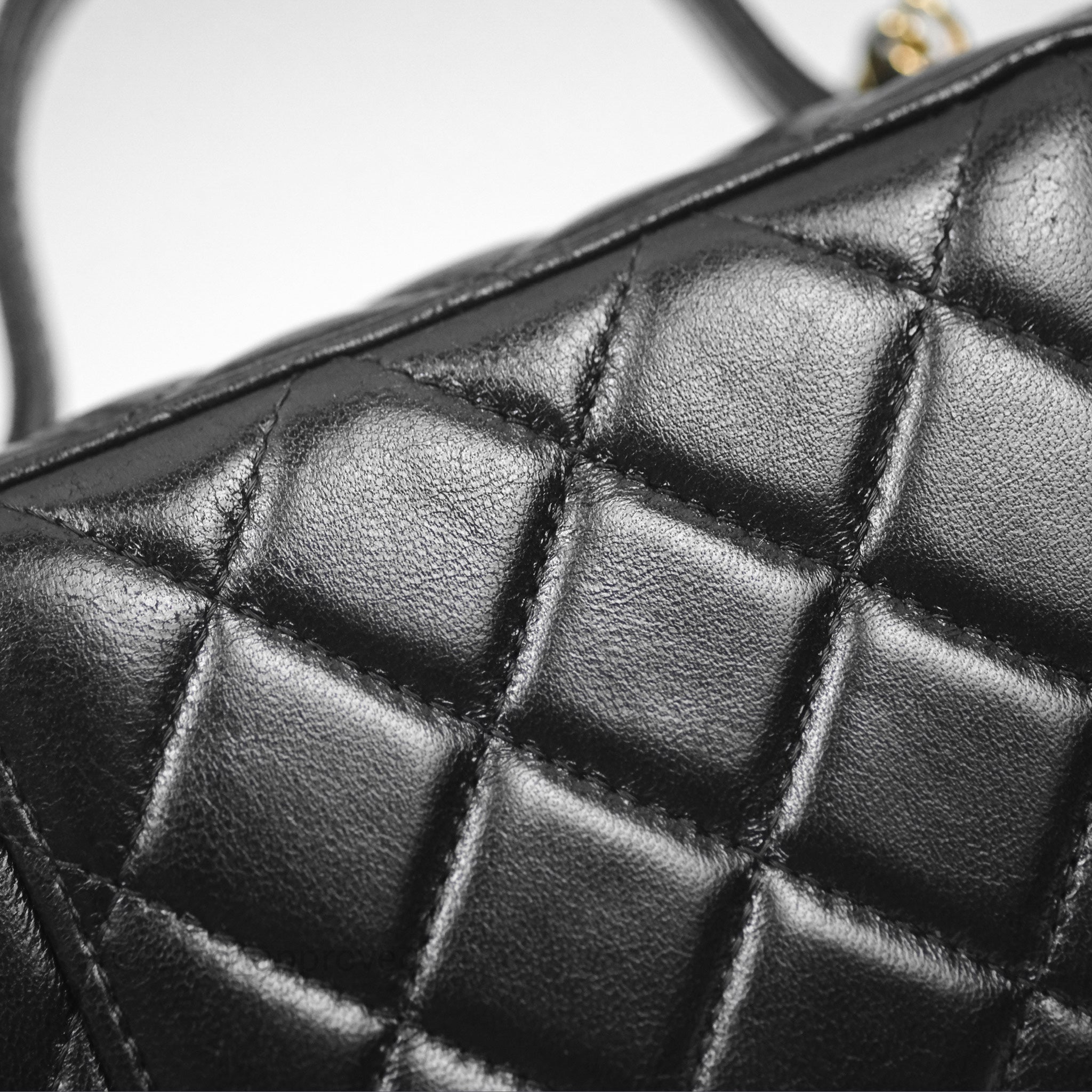 Chanel Cargo Pocket Top Handle Vanity with Chain Black Shiny Lambskin Gold Hardware 22K
