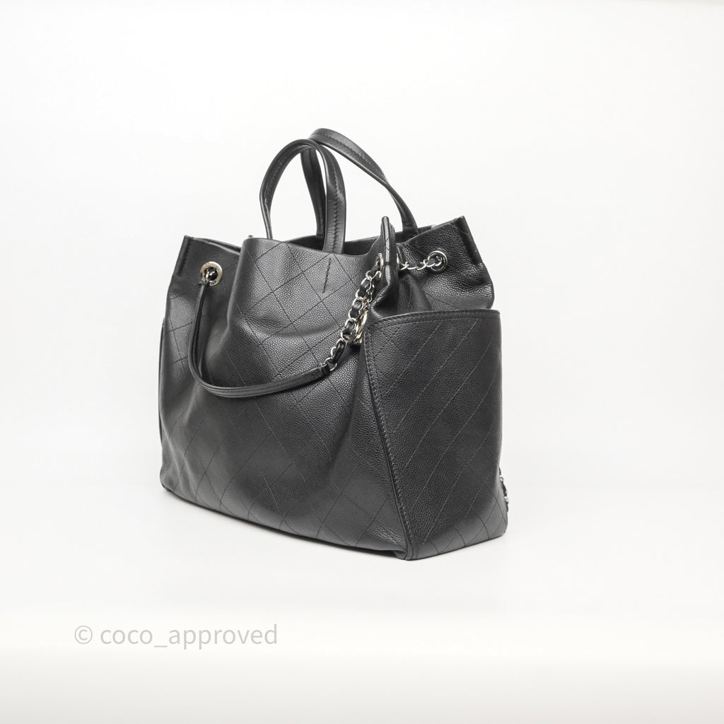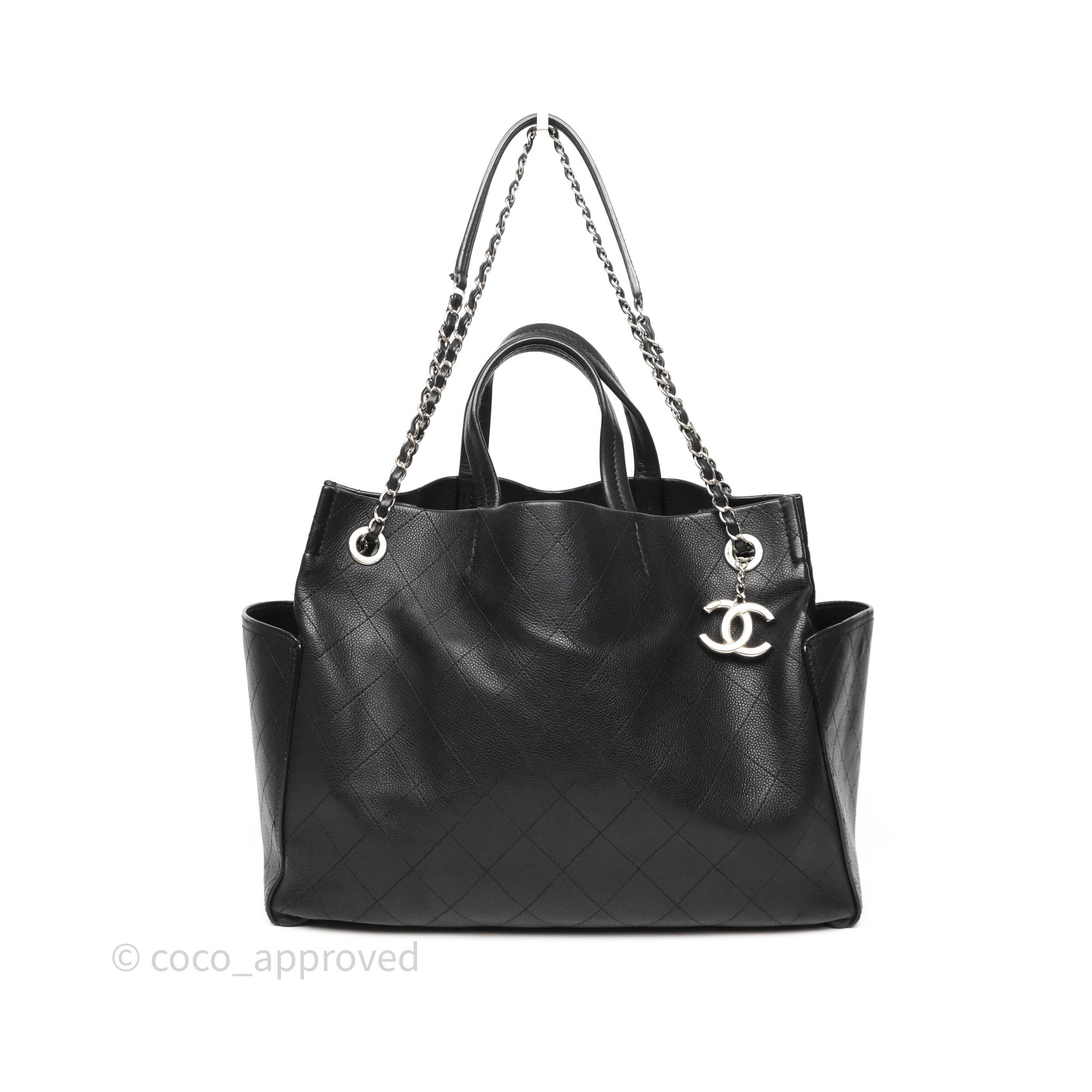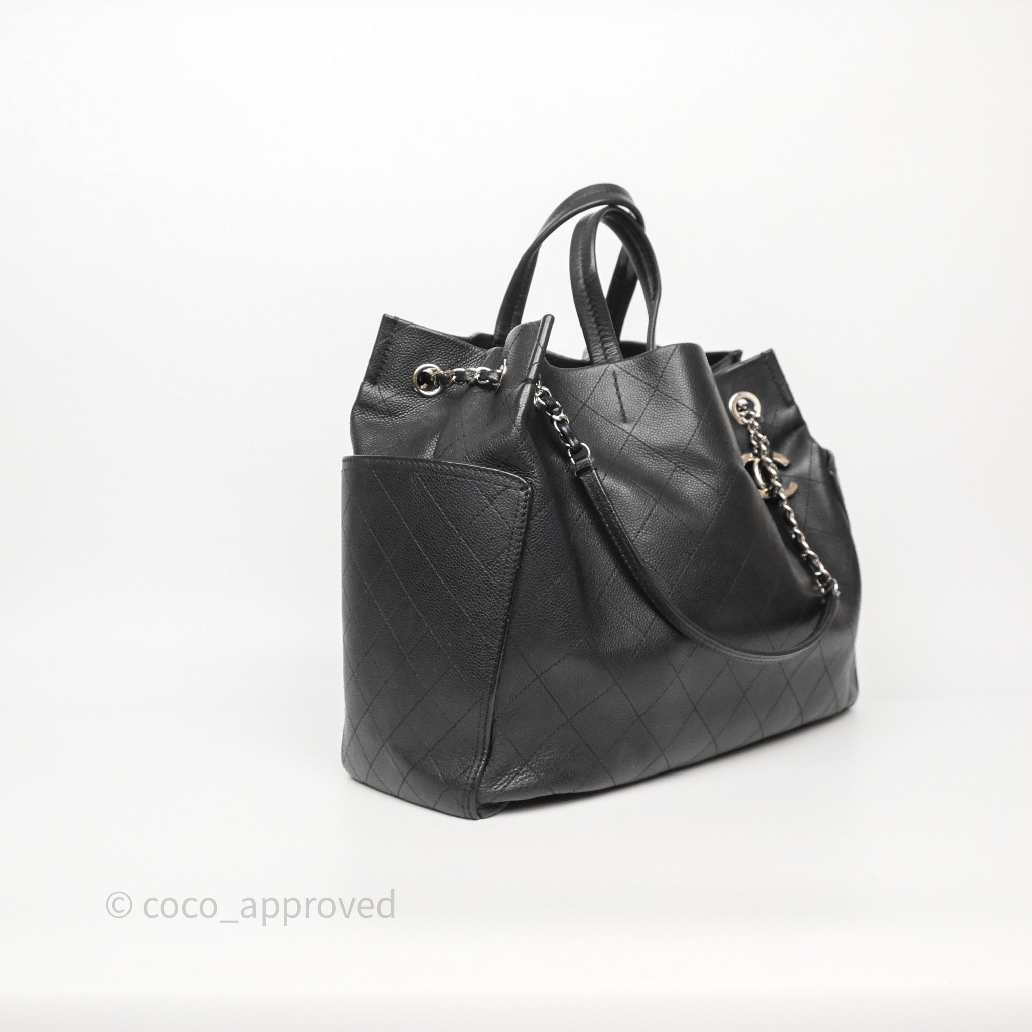 Chanel CC Pocket Tote Bag Black Caviar Silver Hardware