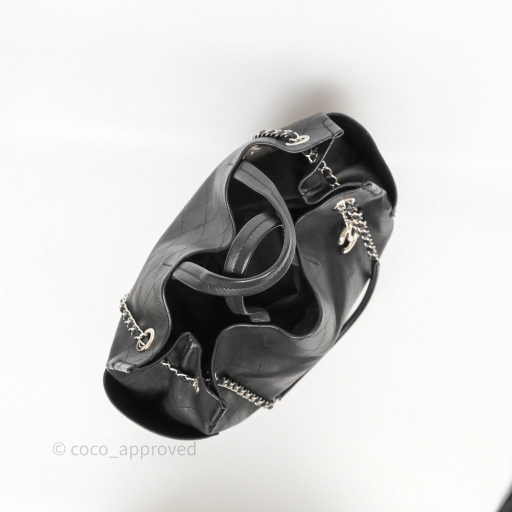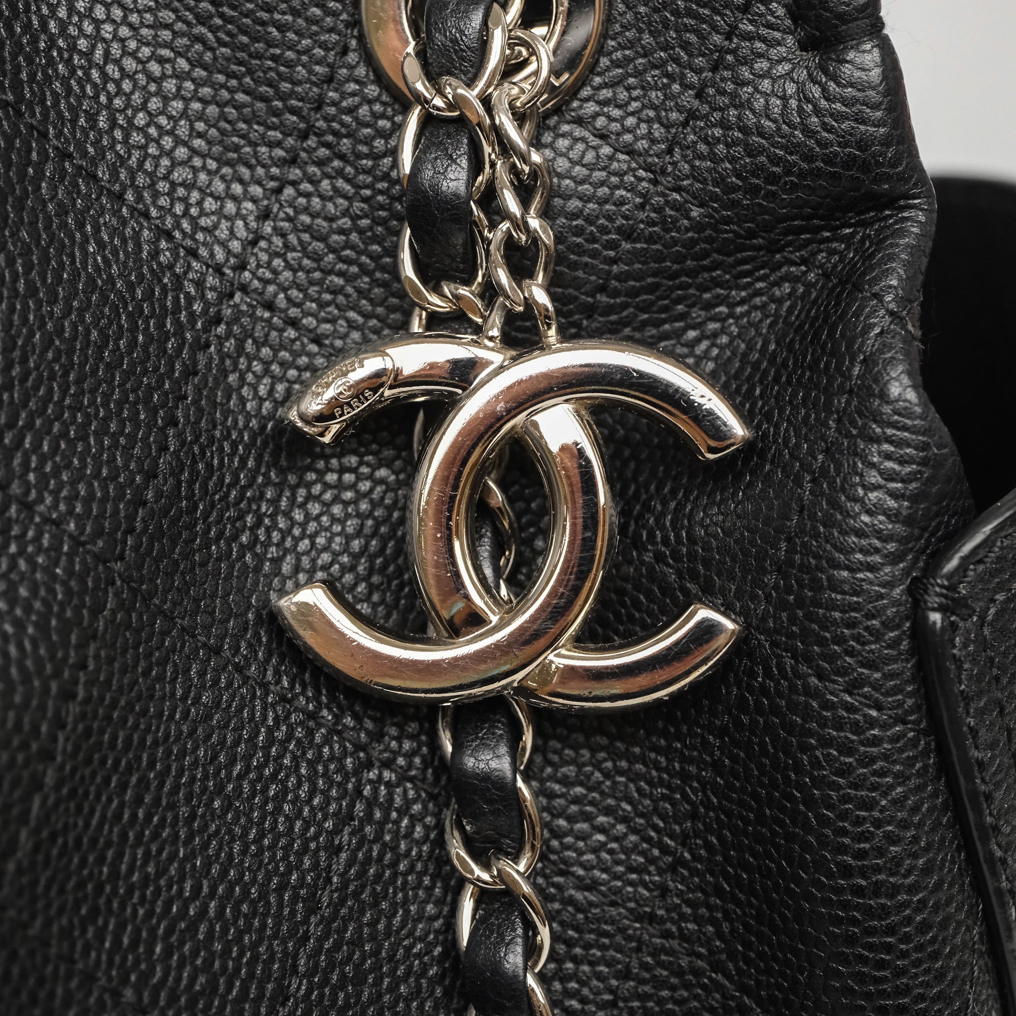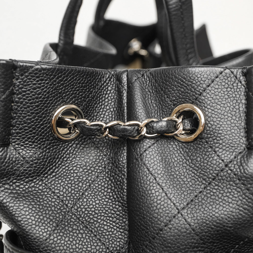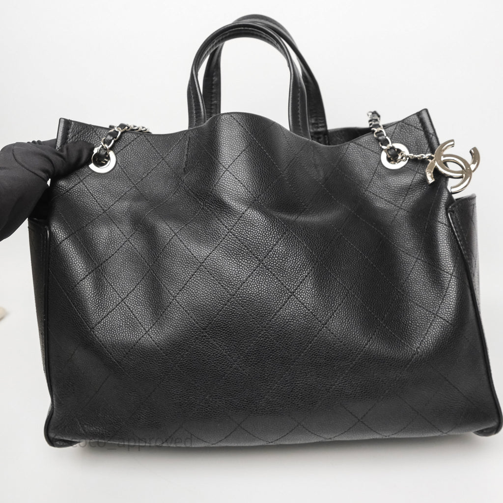 Chanel CC Pocket Tote Bag Black Caviar Silver Hardware
