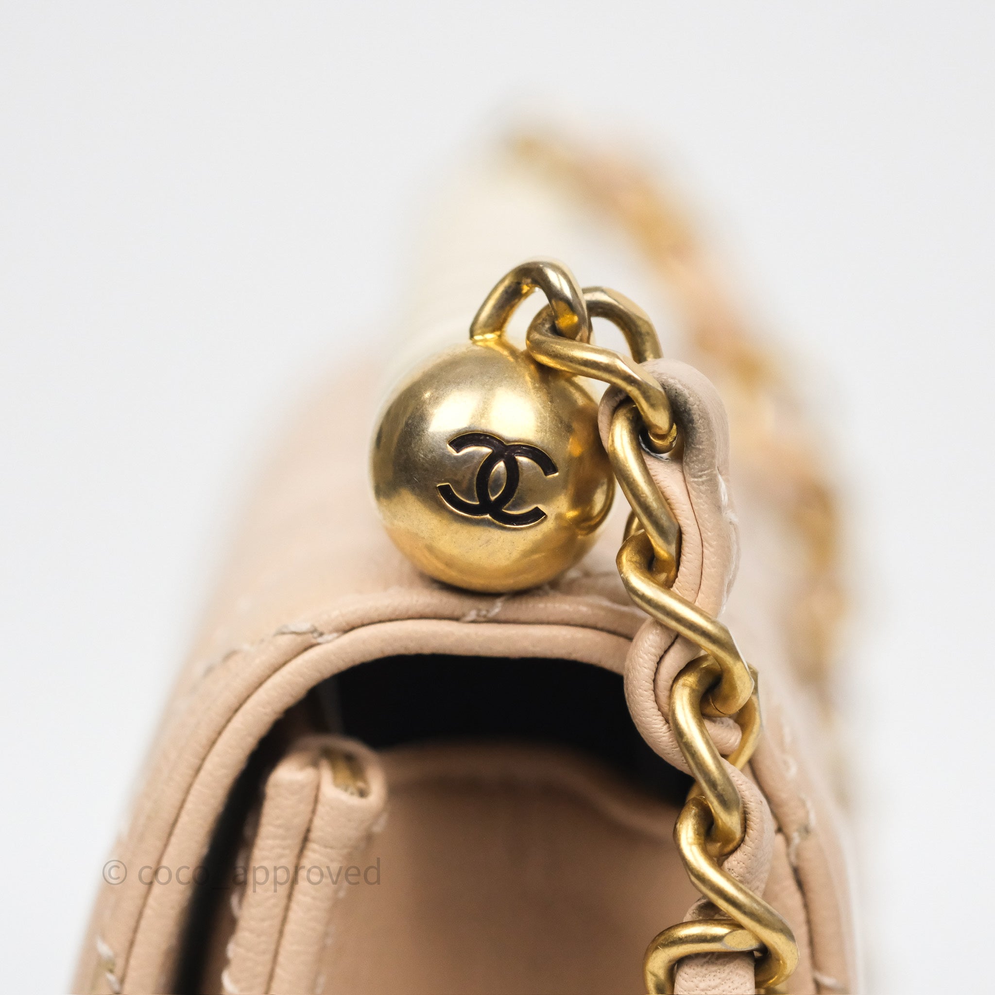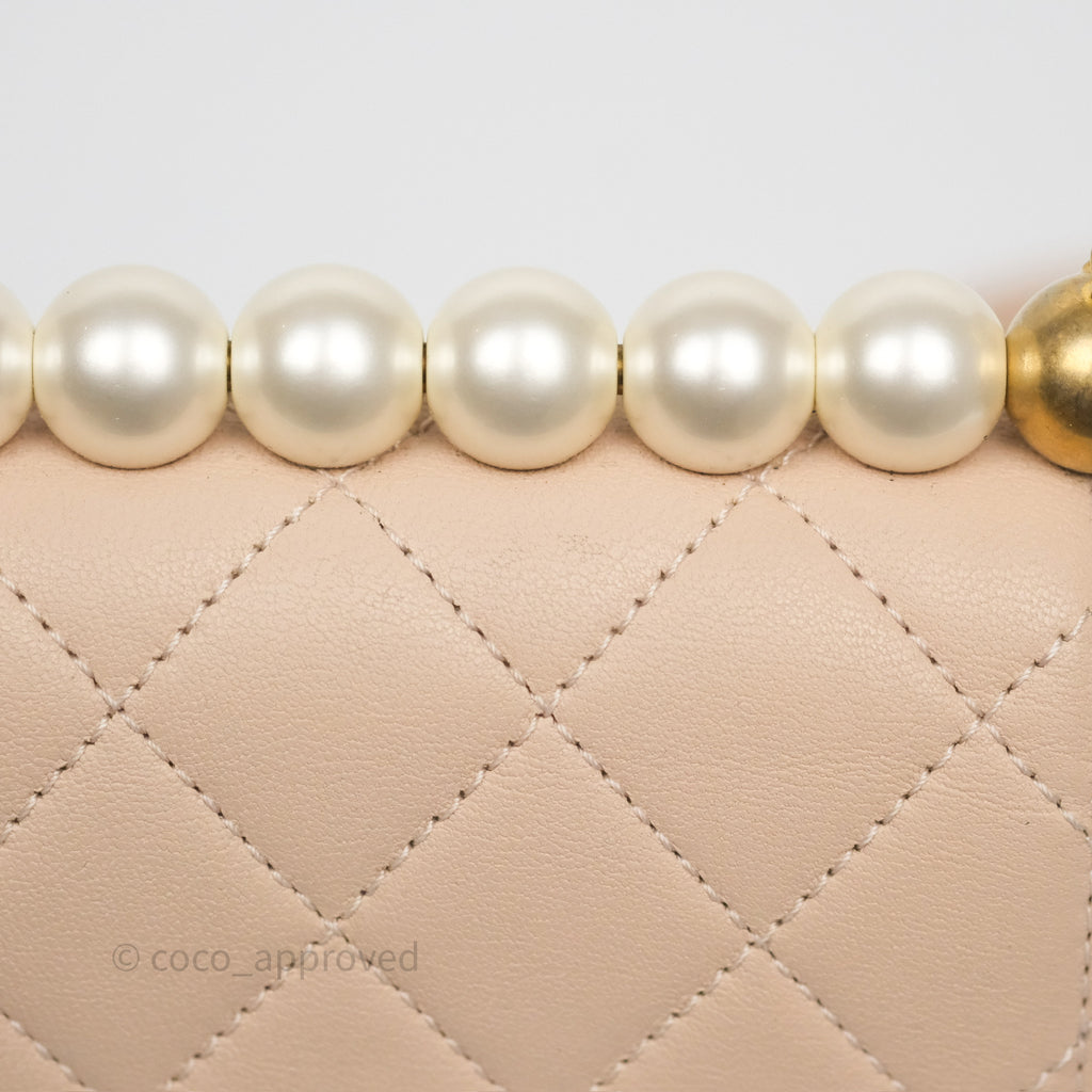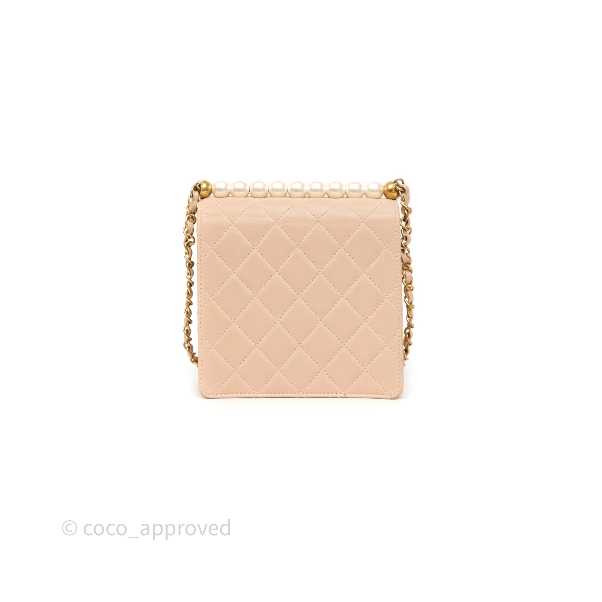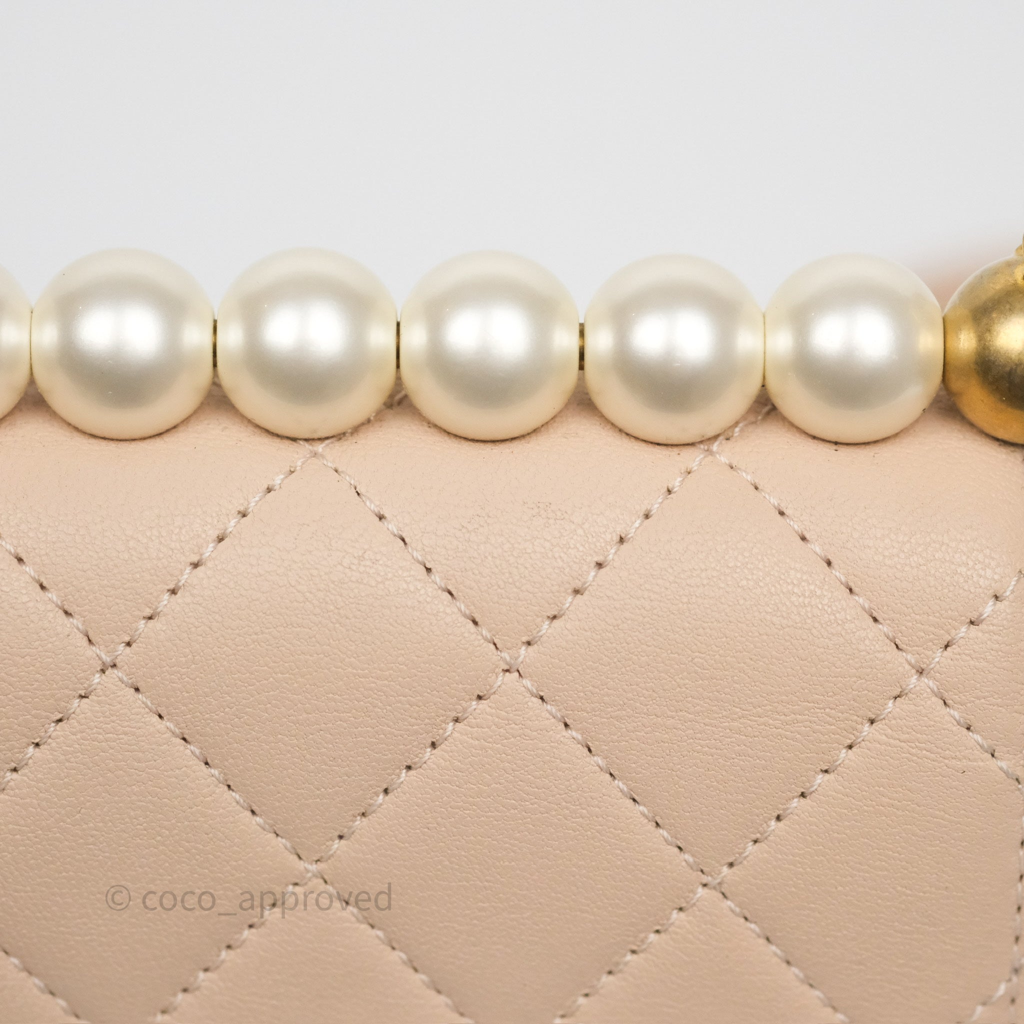 Chanel Chic Pearls Flap Quilted Beige Pink Goatskin Aged Gold Hardware