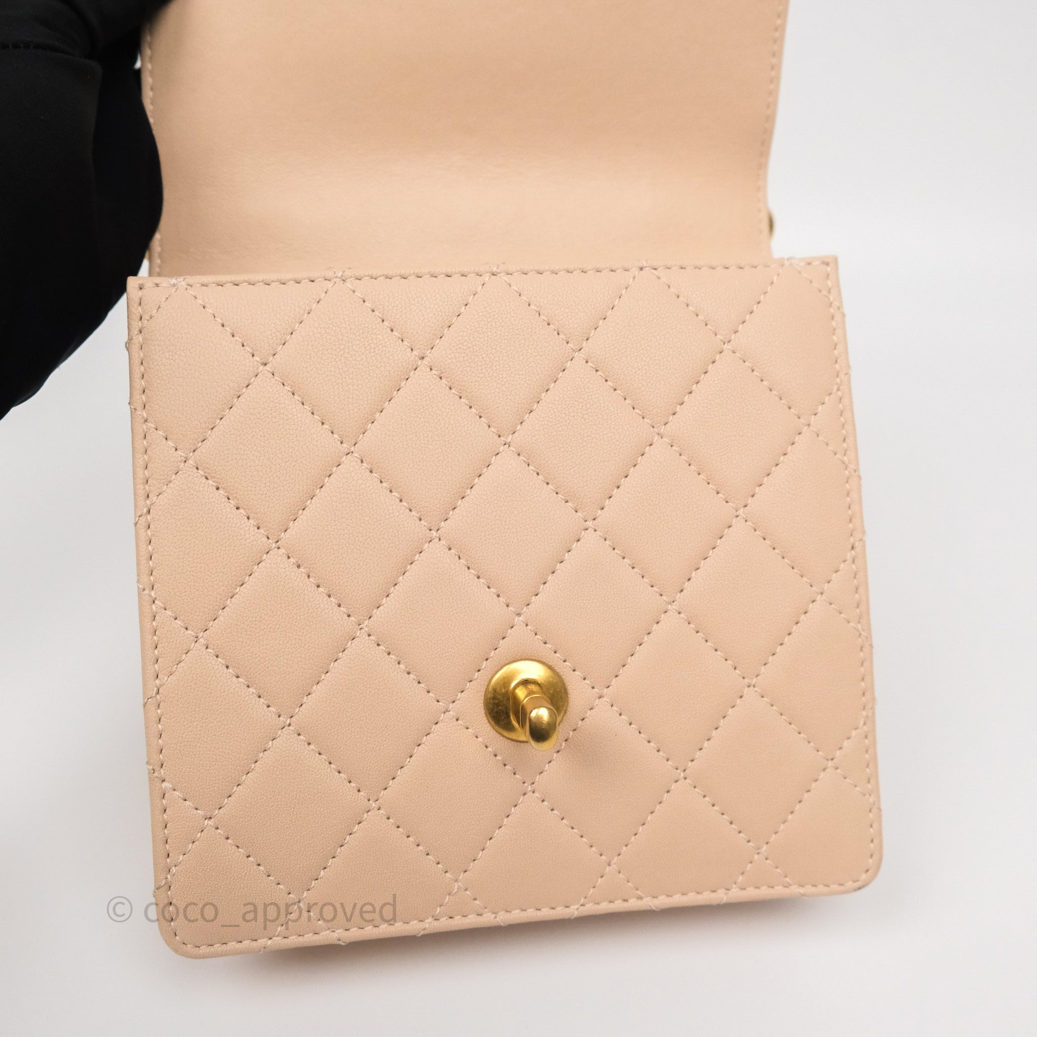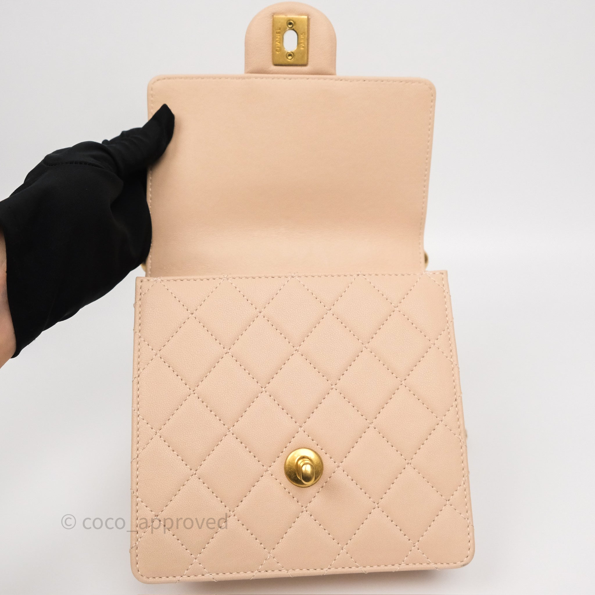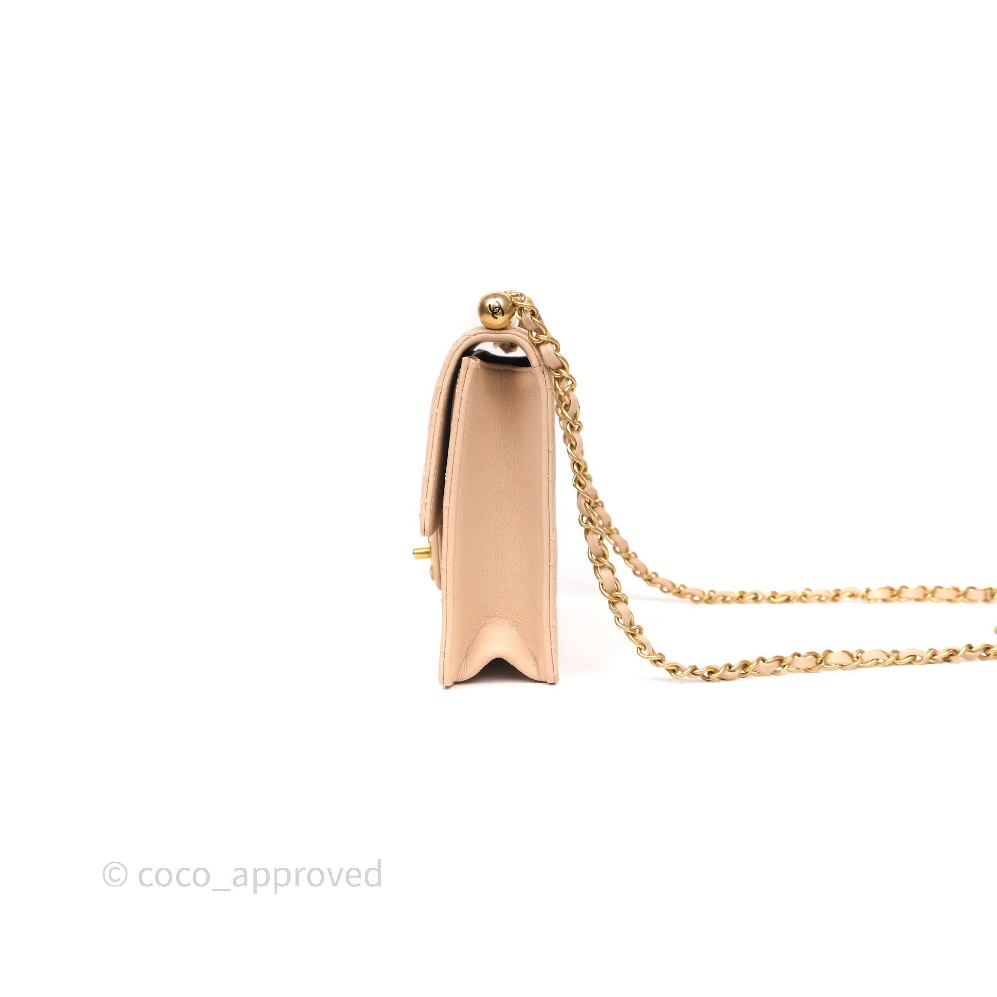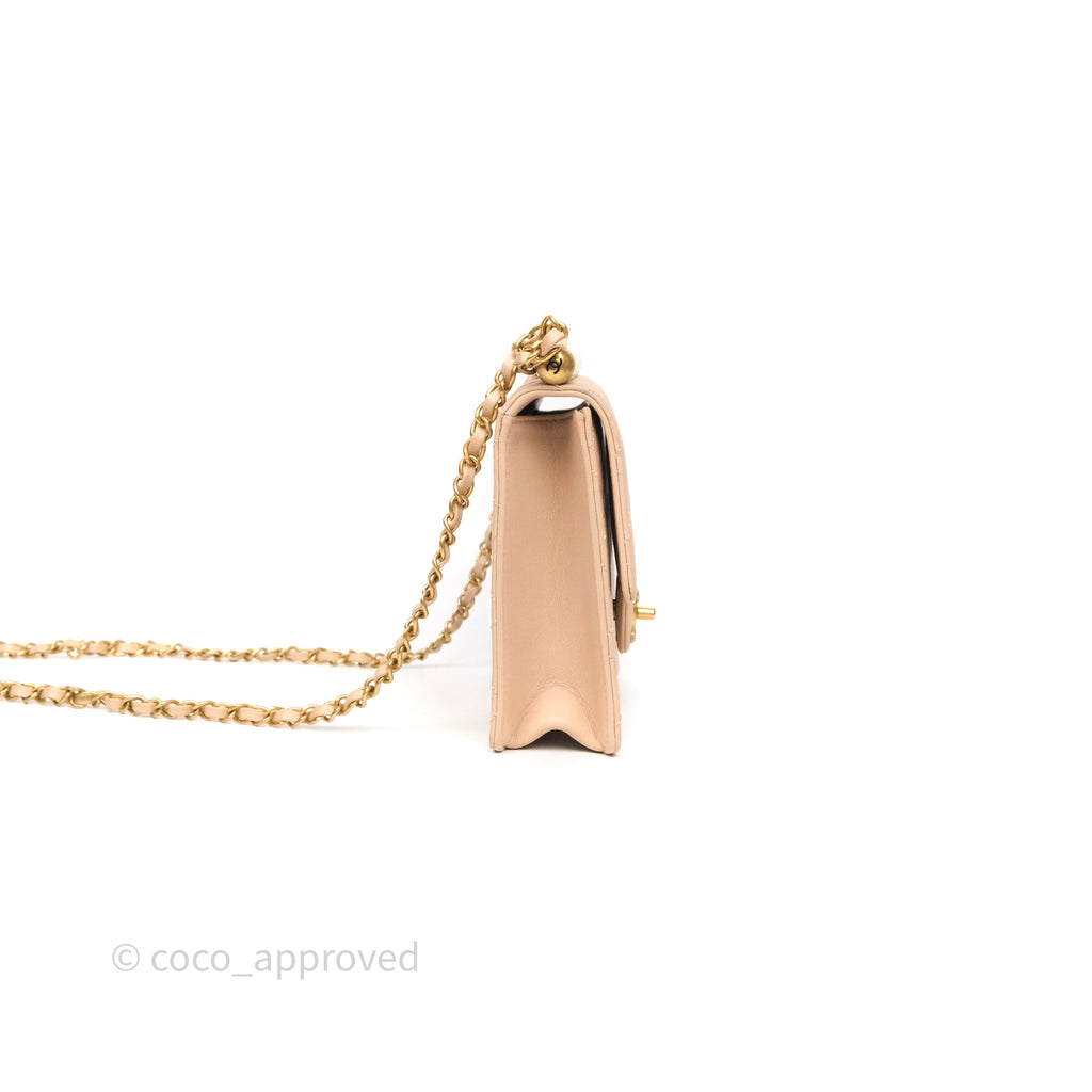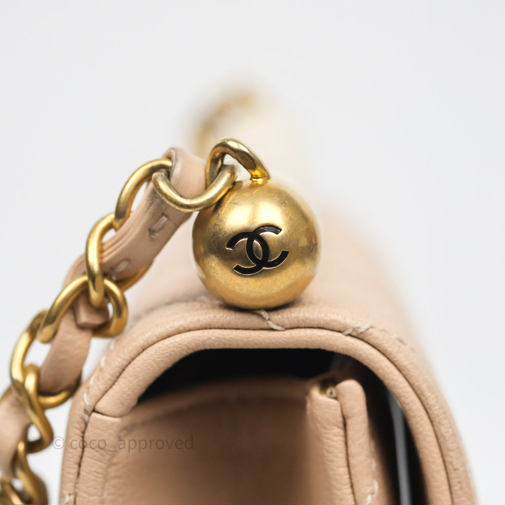 Chanel Chic Pearls Flap Quilted Beige Pink Goatskin Aged Gold Hardware