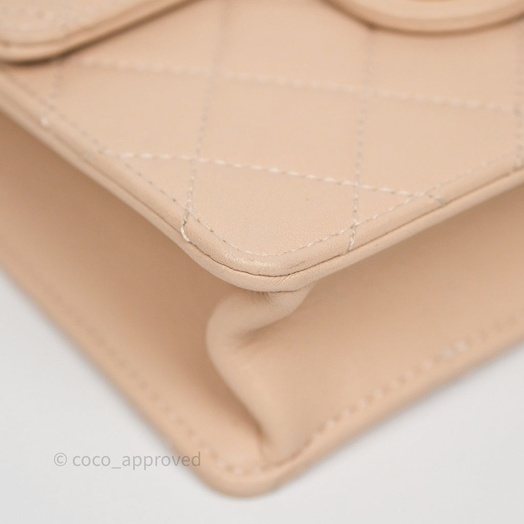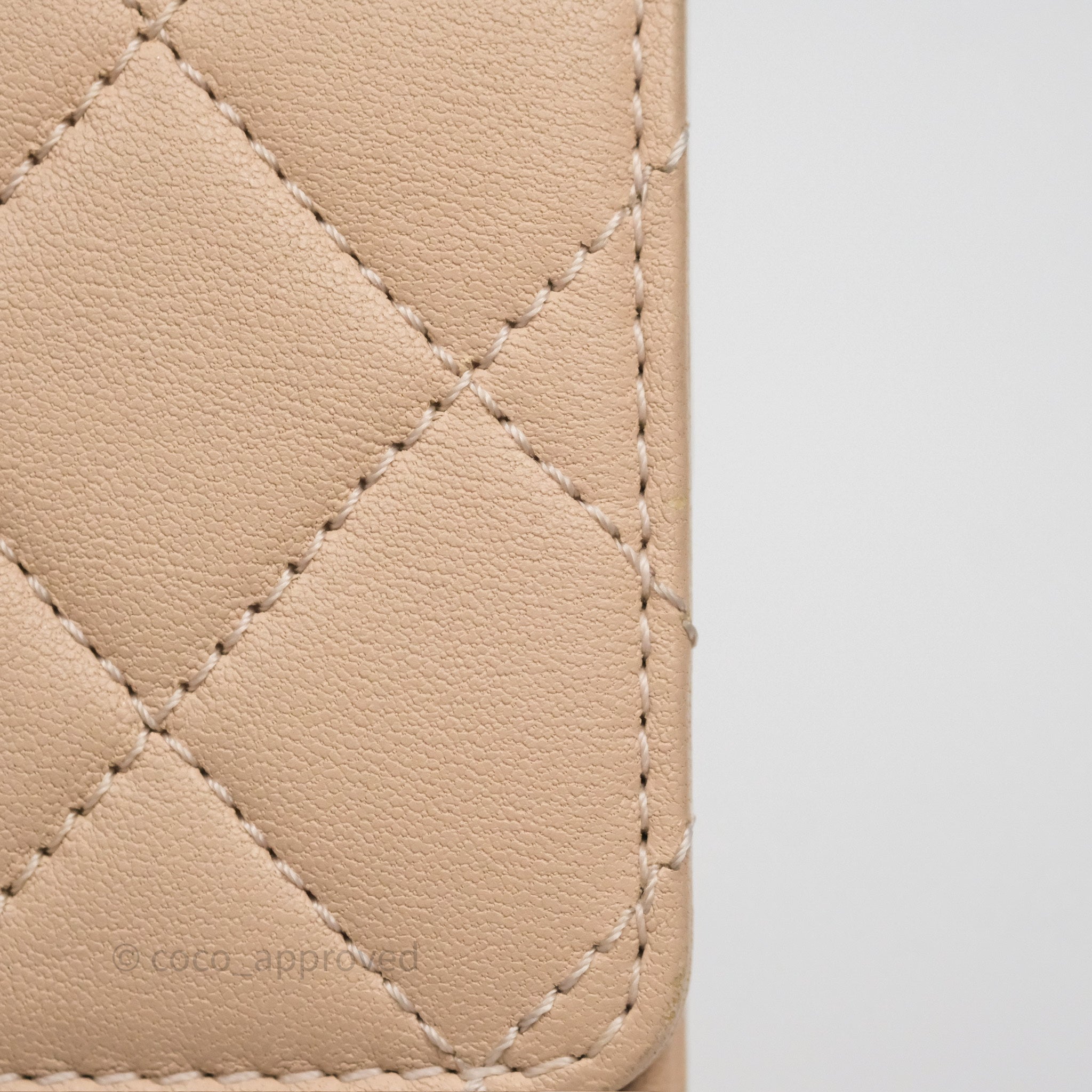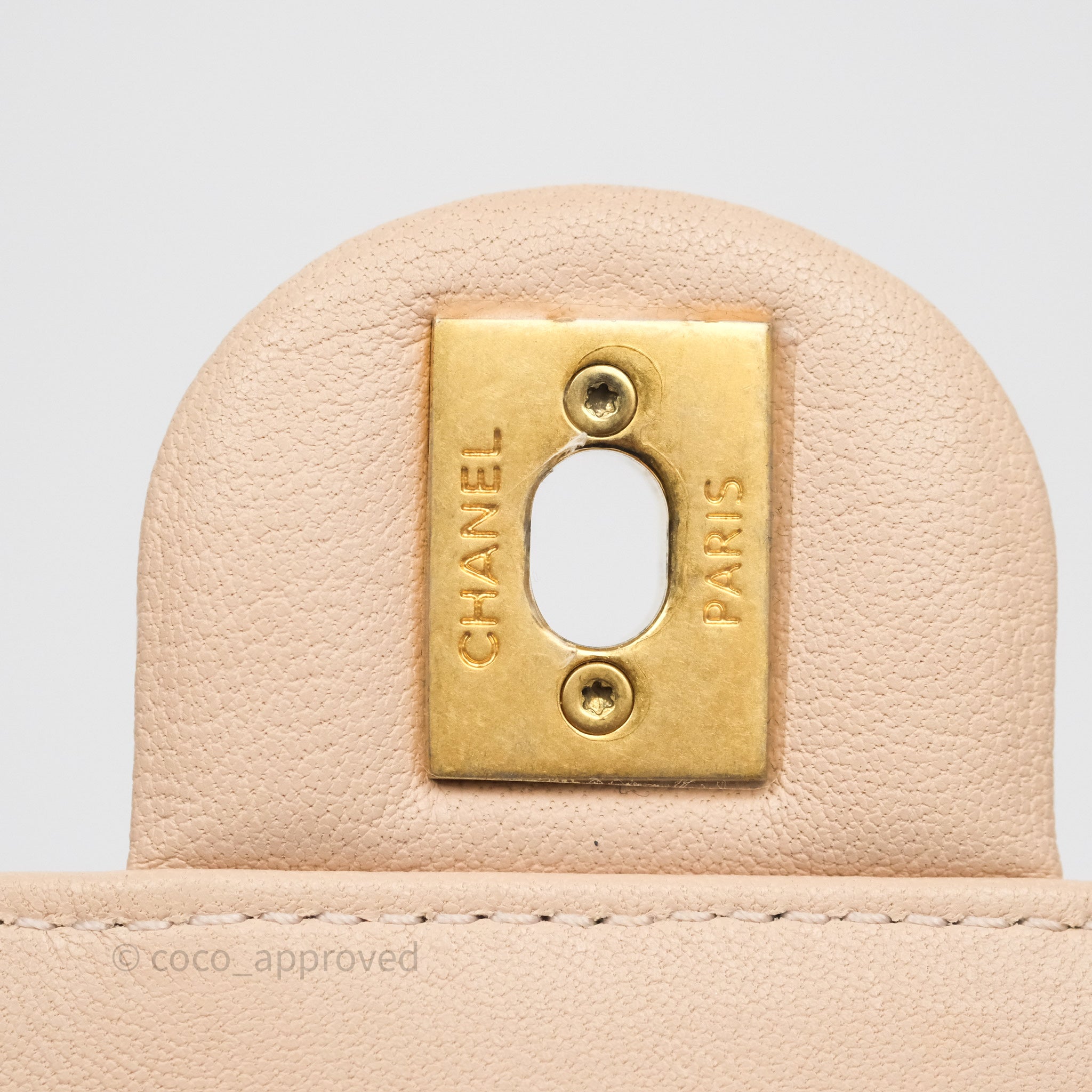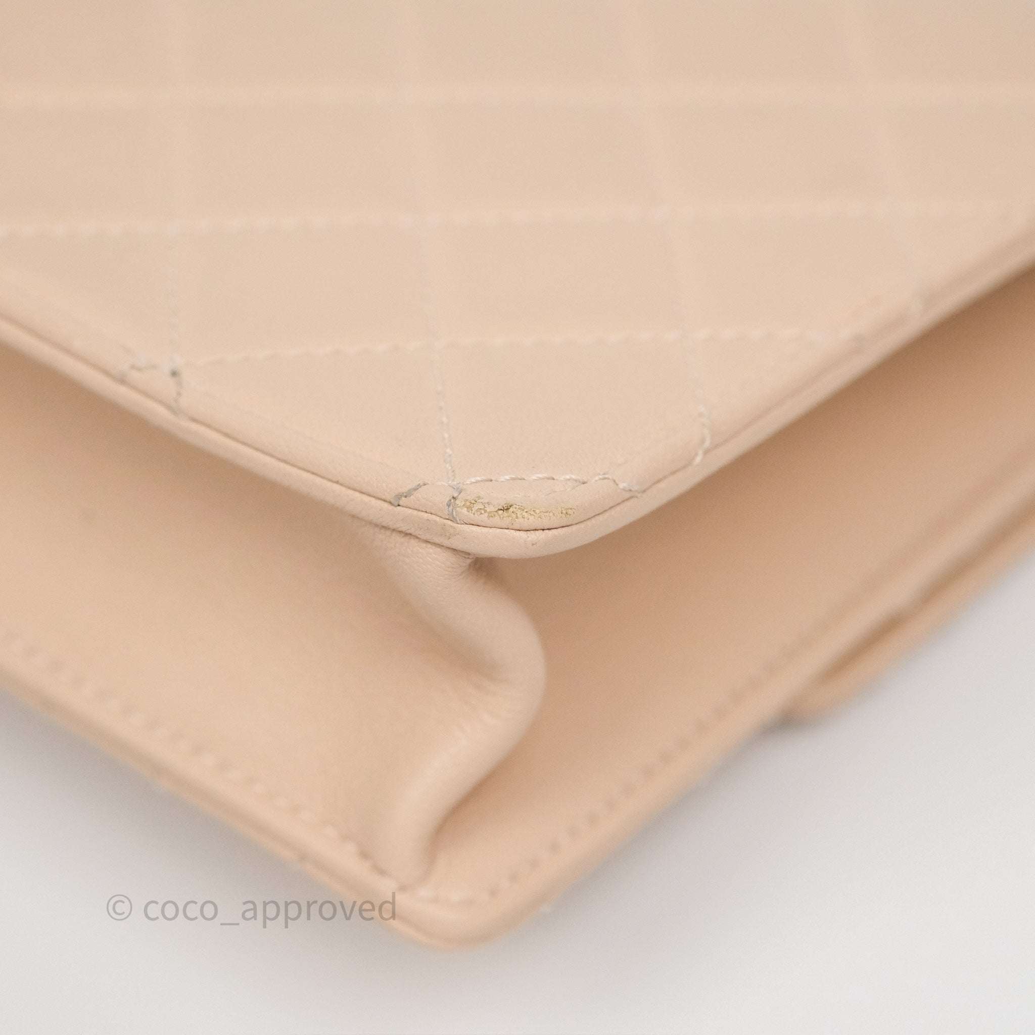 Chanel Chic Pearls Flap Quilted Beige Pink Goatskin Aged Gold Hardware