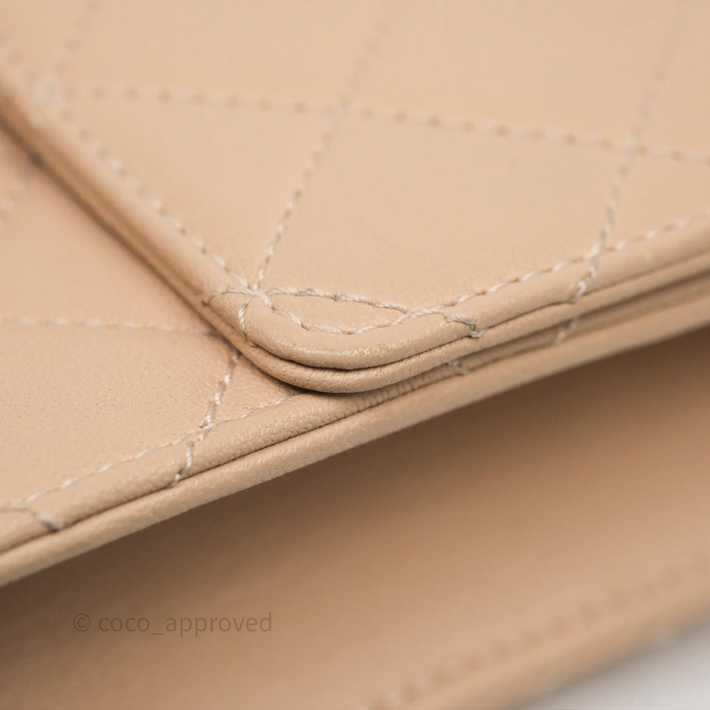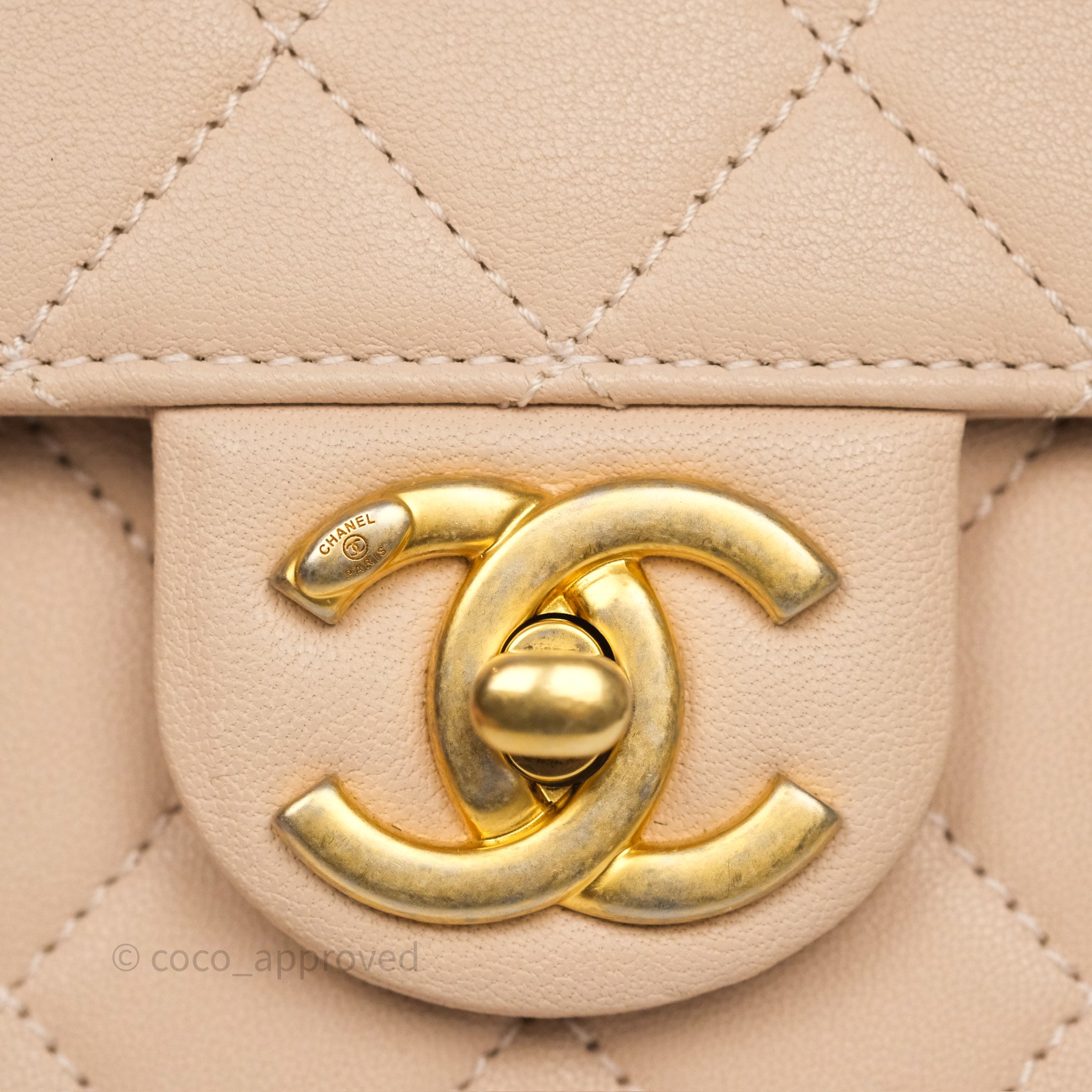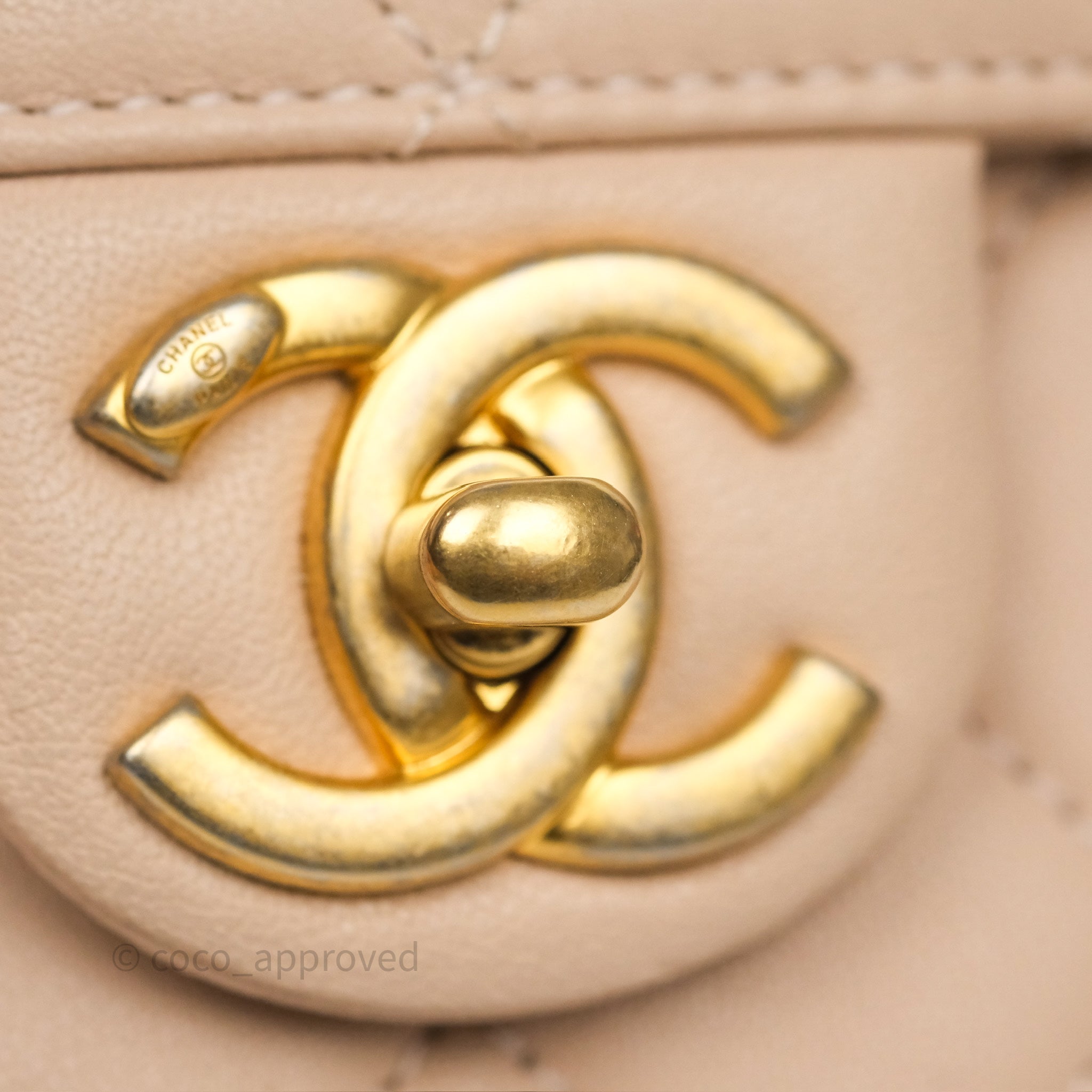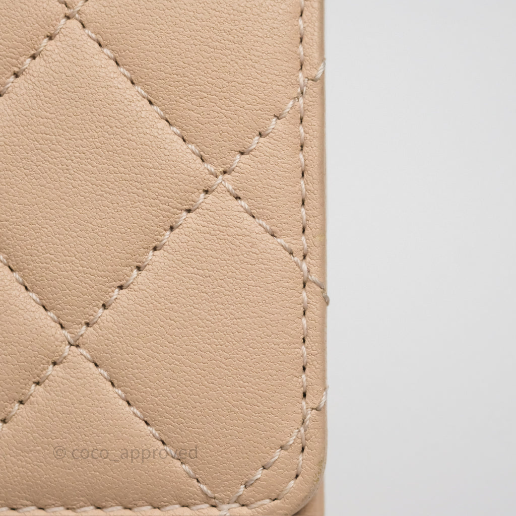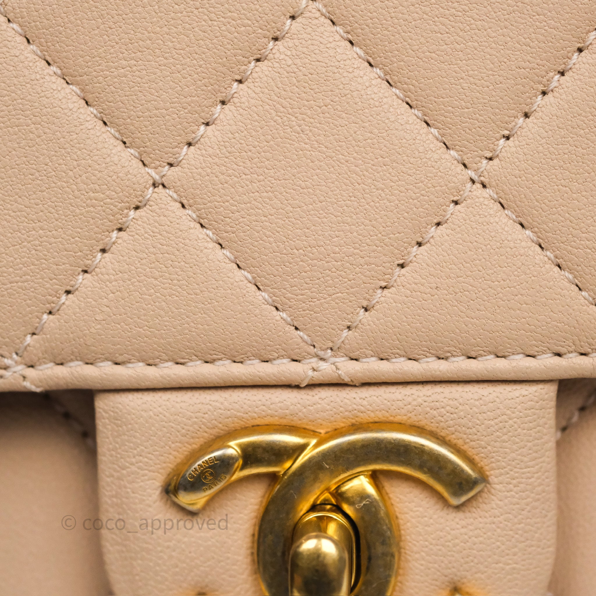 Chanel Chic Pearls Flap Quilted Beige Pink Goatskin Aged Gold Hardware
