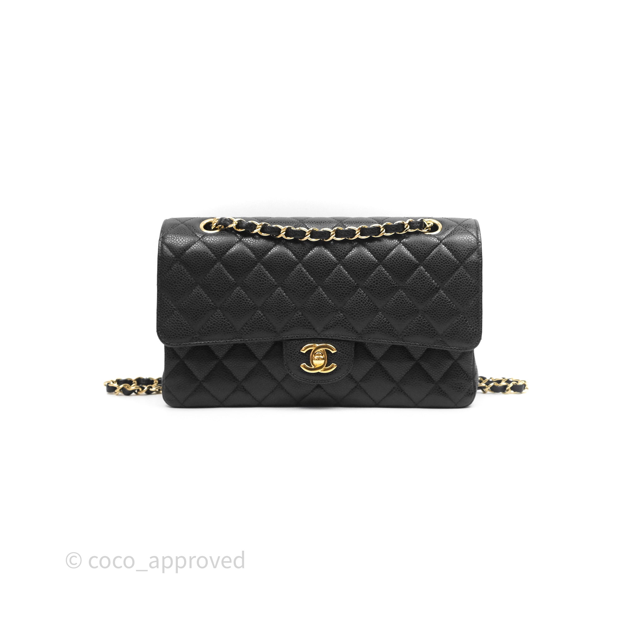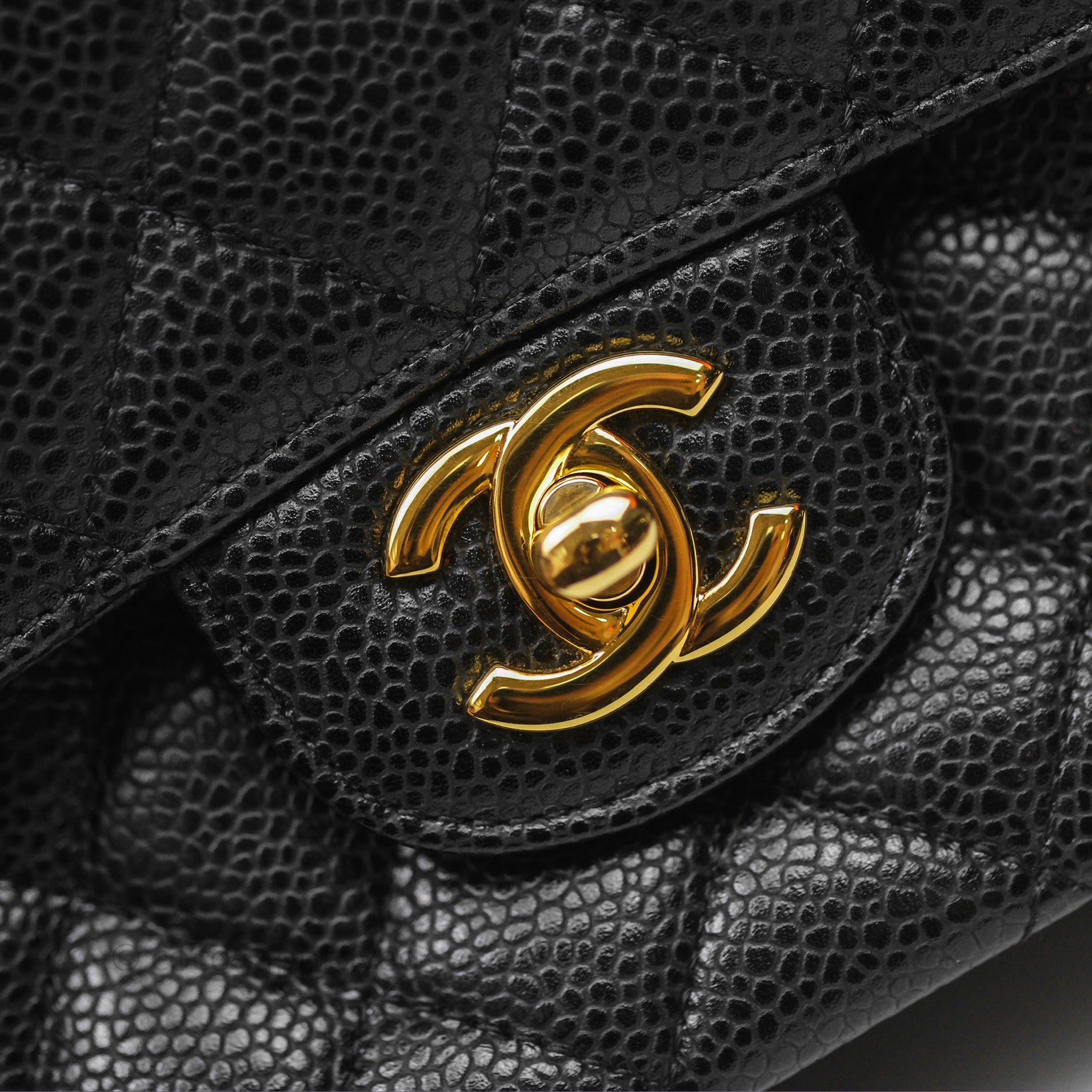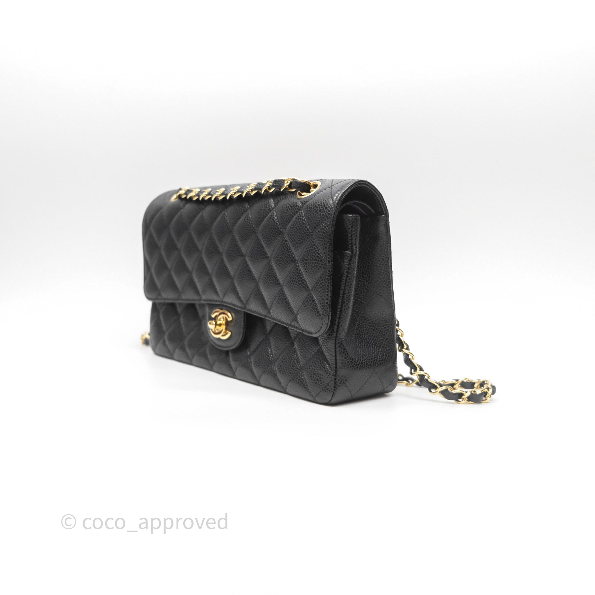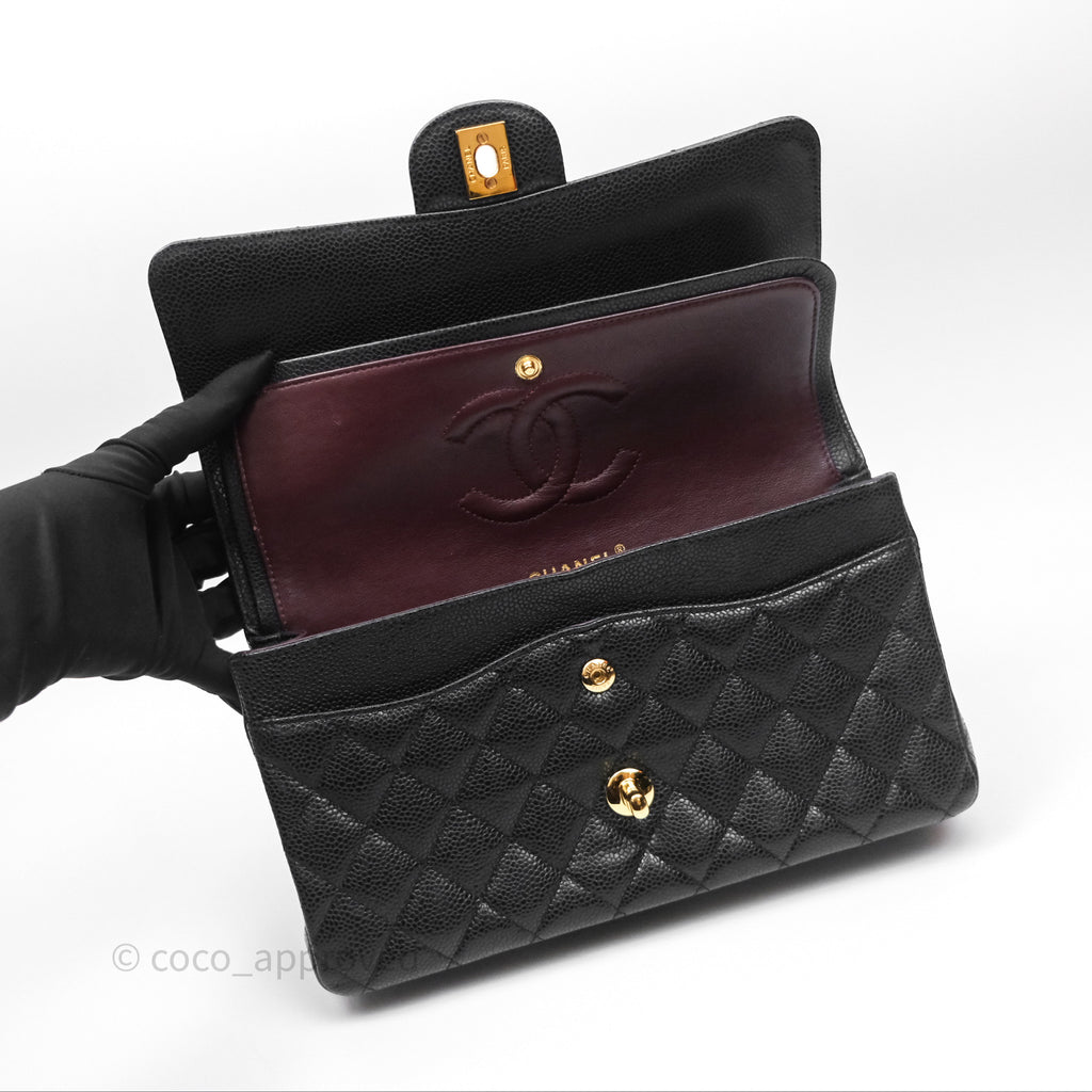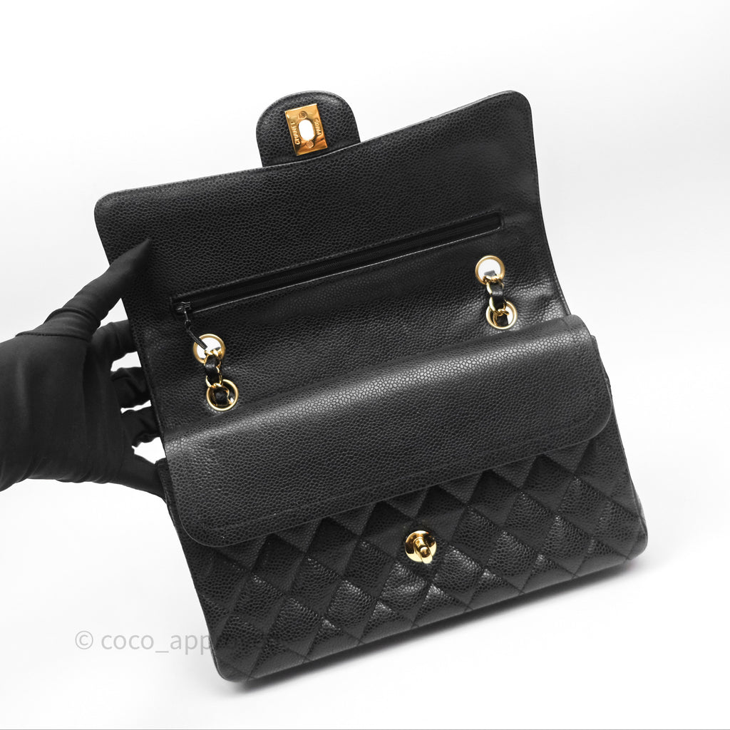Chanel Classic M/L Medium Flap Quilted Black Caviar Gold Hardware