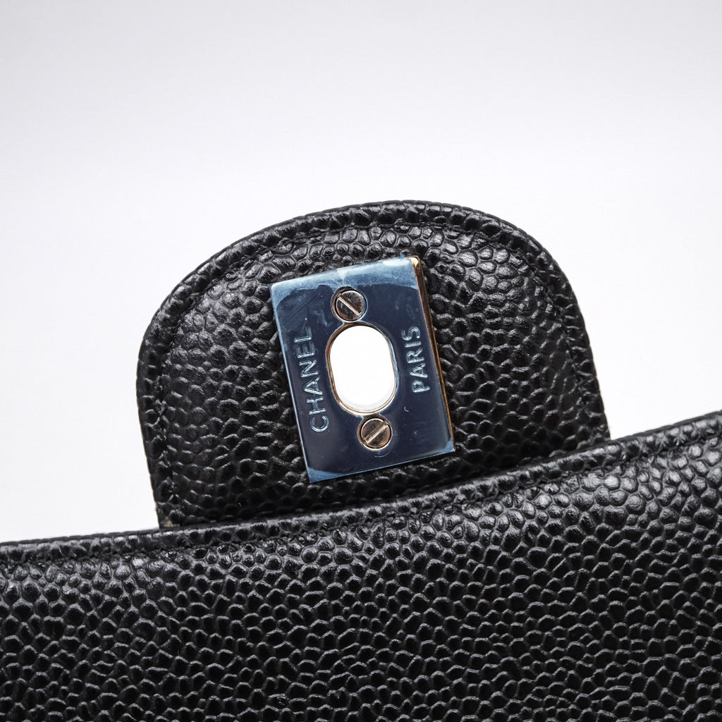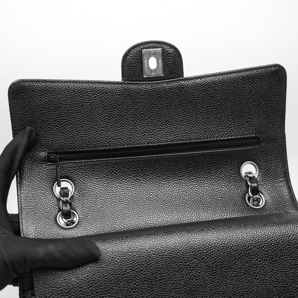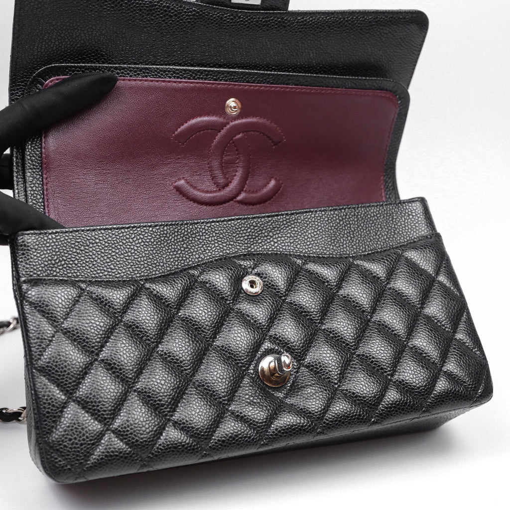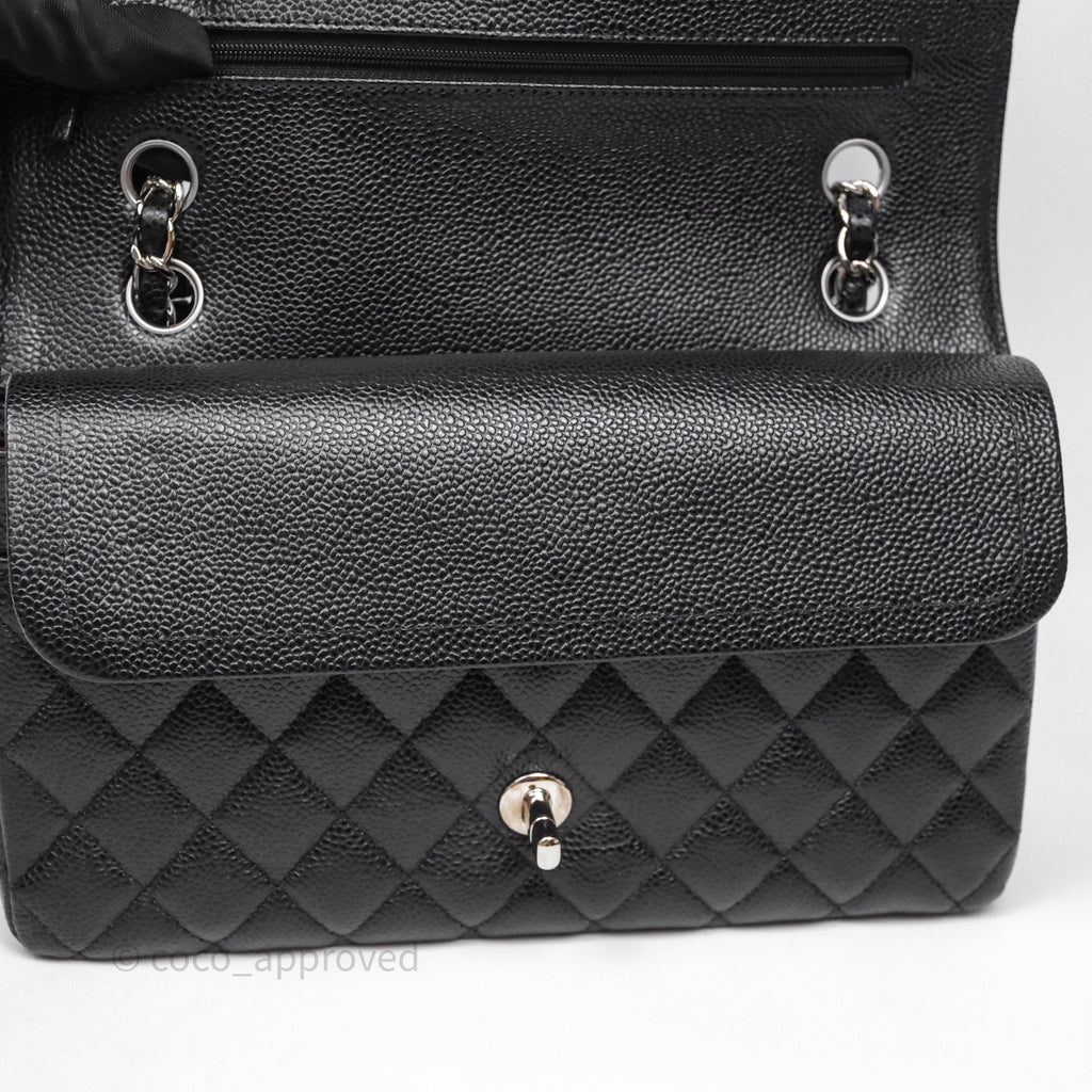 Chanel Classic M/L Medium Flap Quilted Black Caviar Silver Hardware
