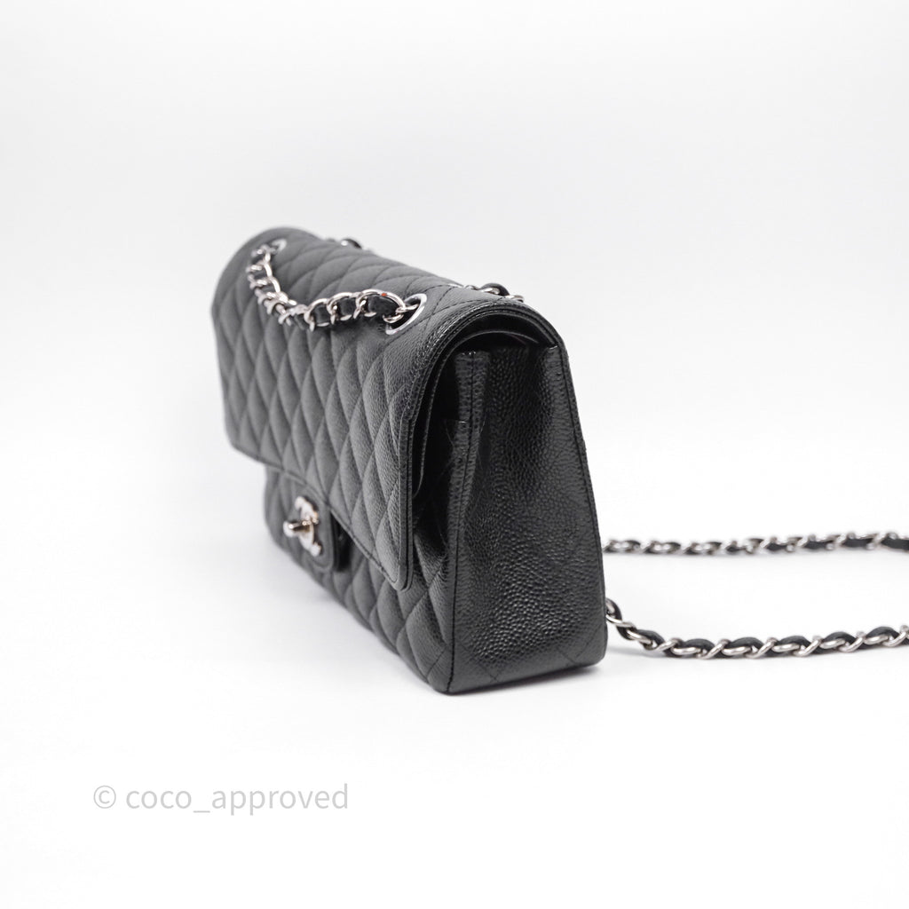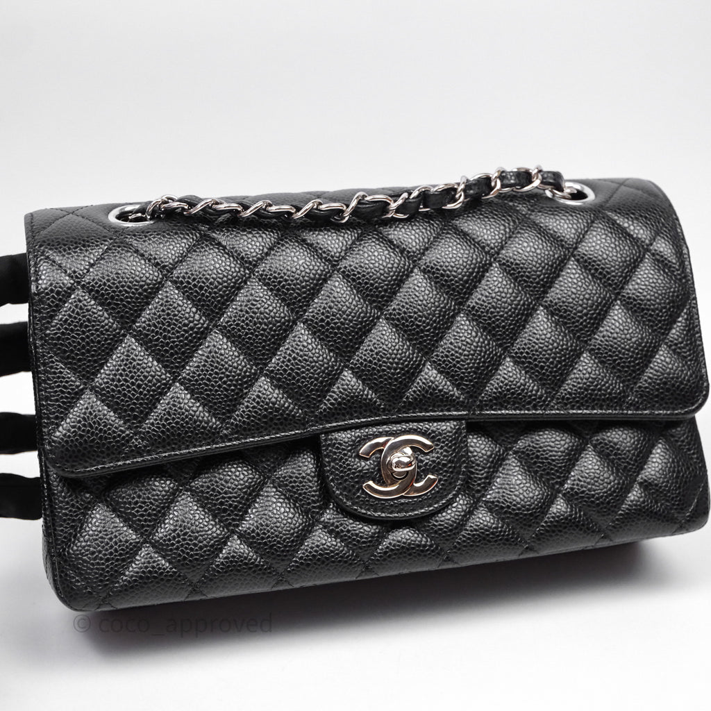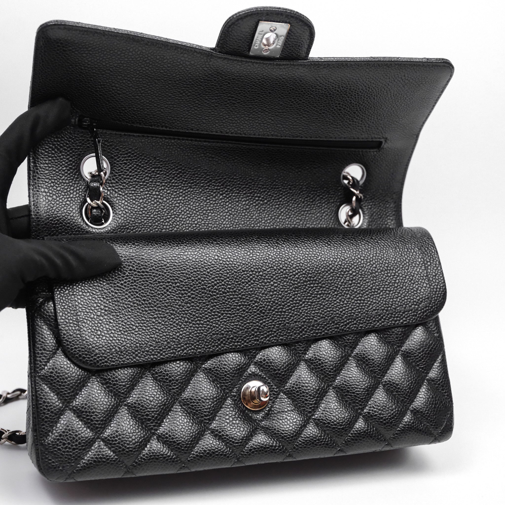 Chanel Classic M/L Medium Flap Quilted Black Caviar Silver Hardware