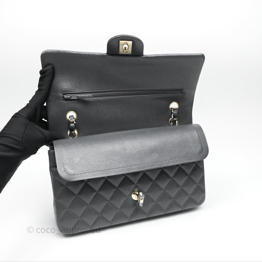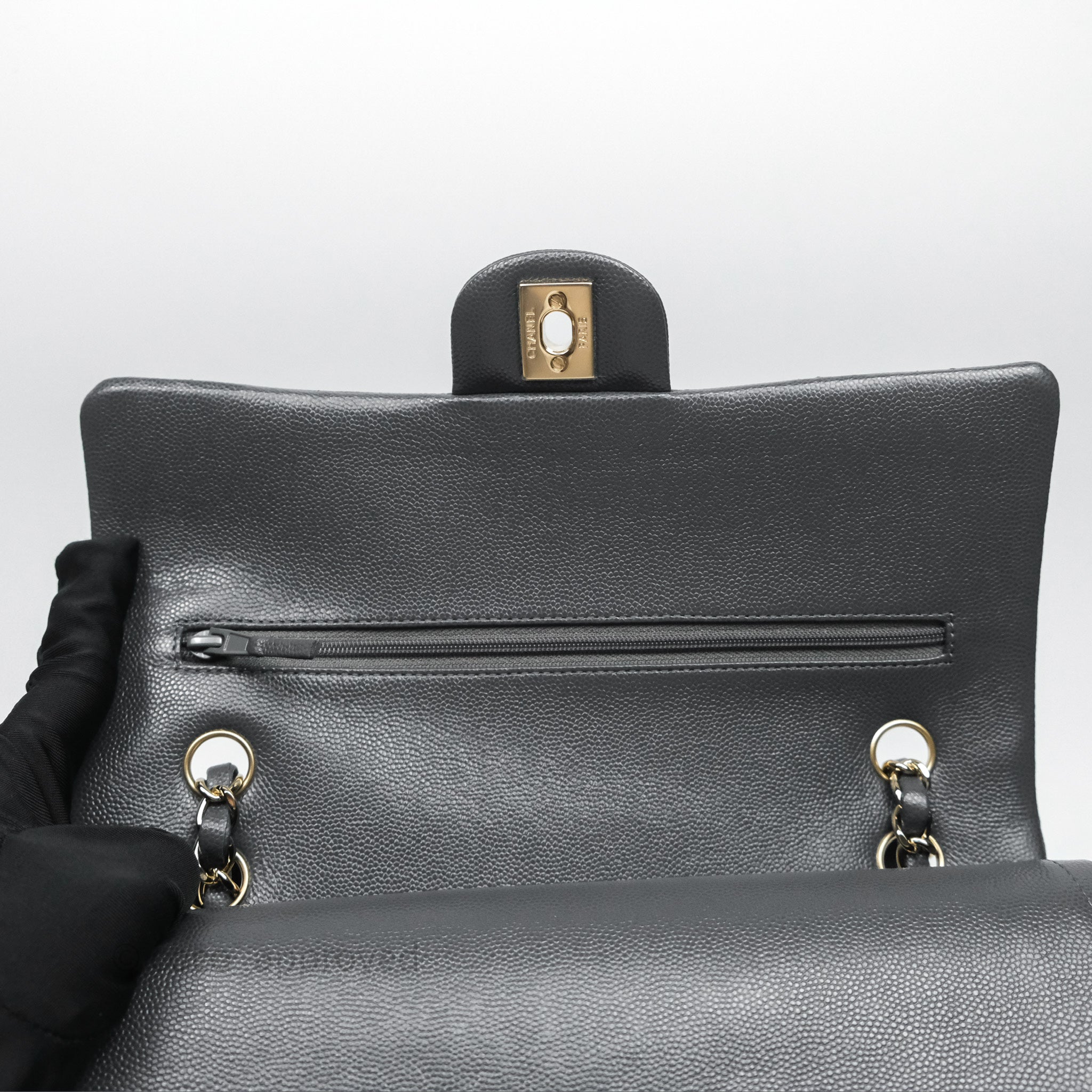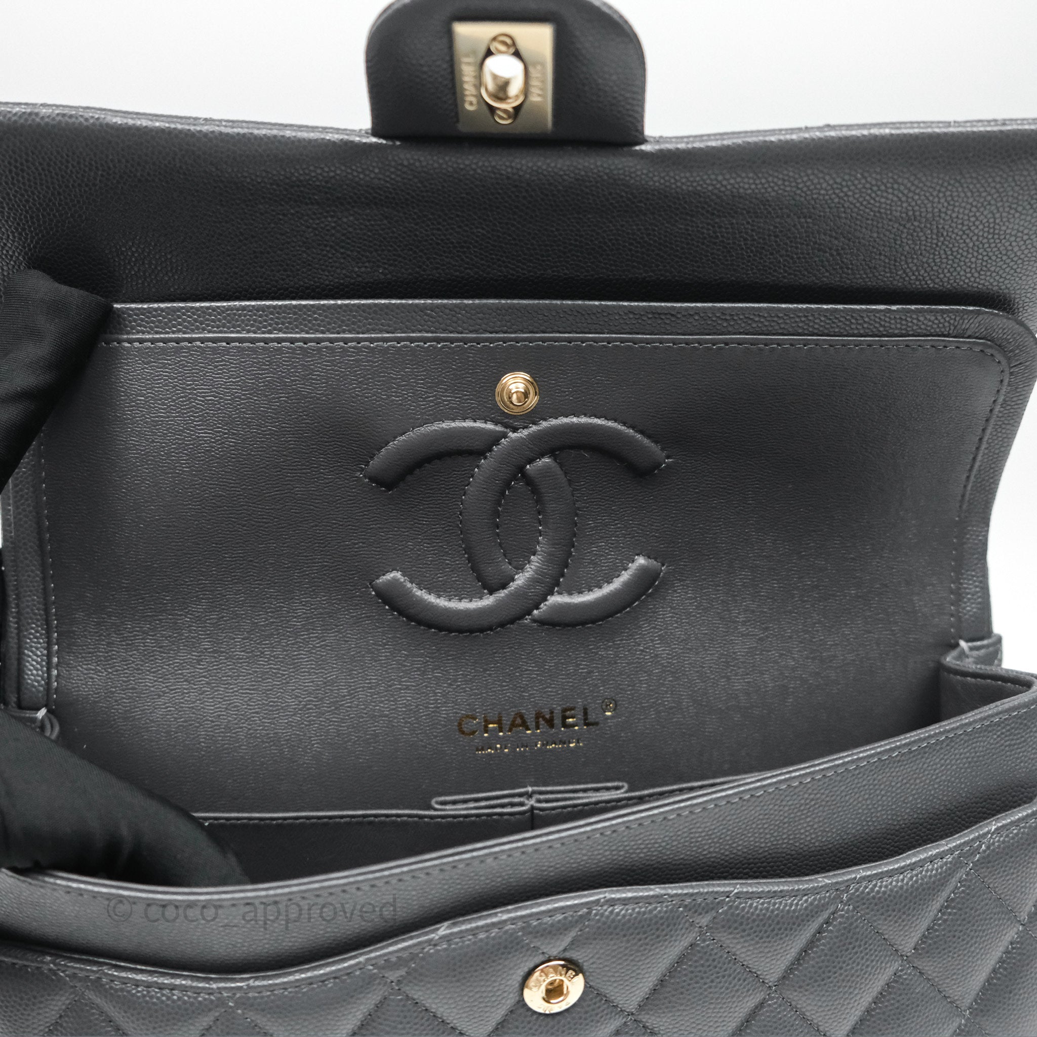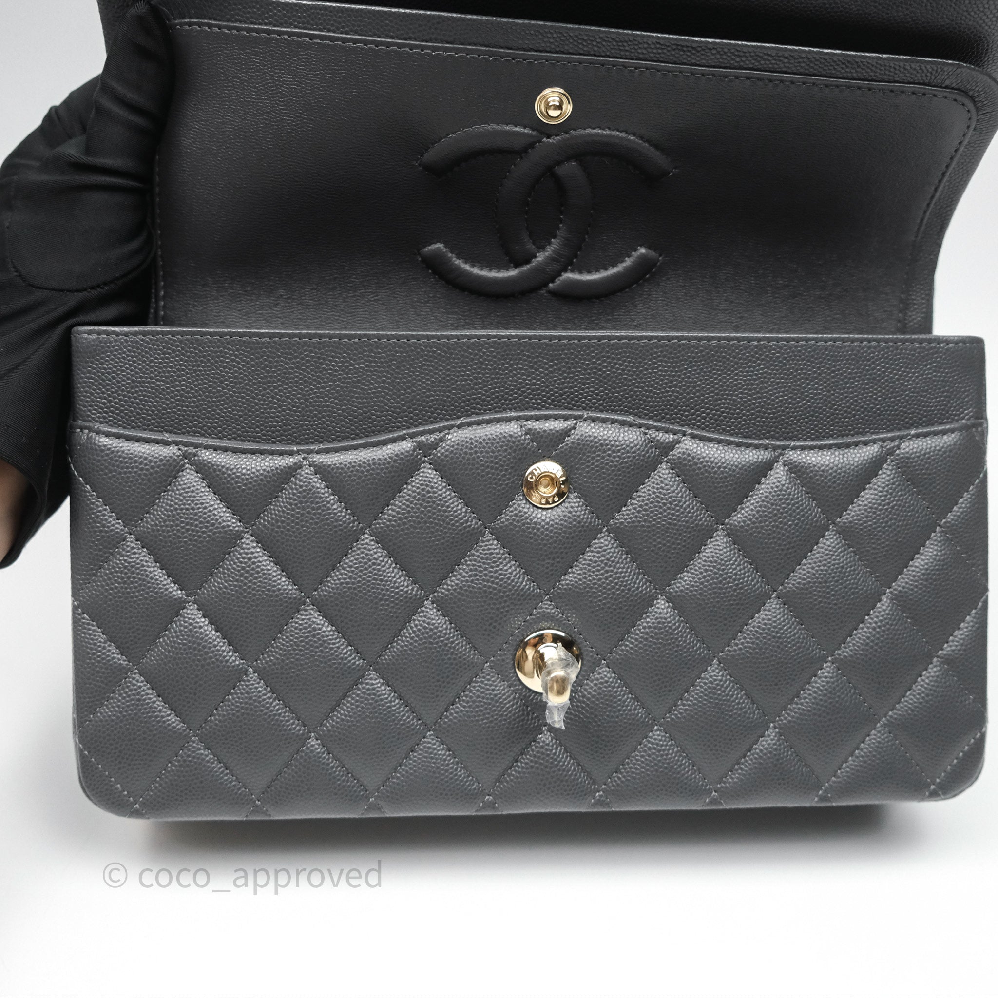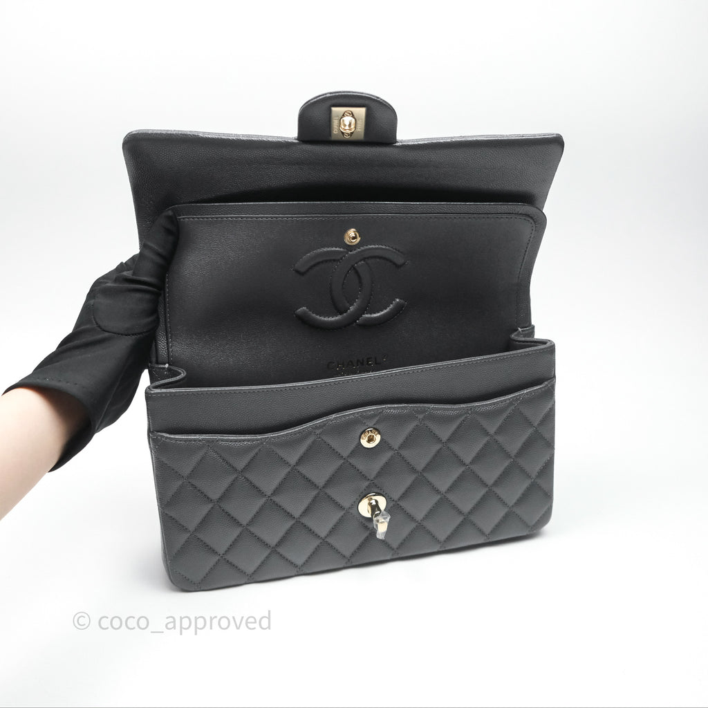 Chanel Classic M/L Medium Flap Quilted Dark Grey Caviar Gold Hardware